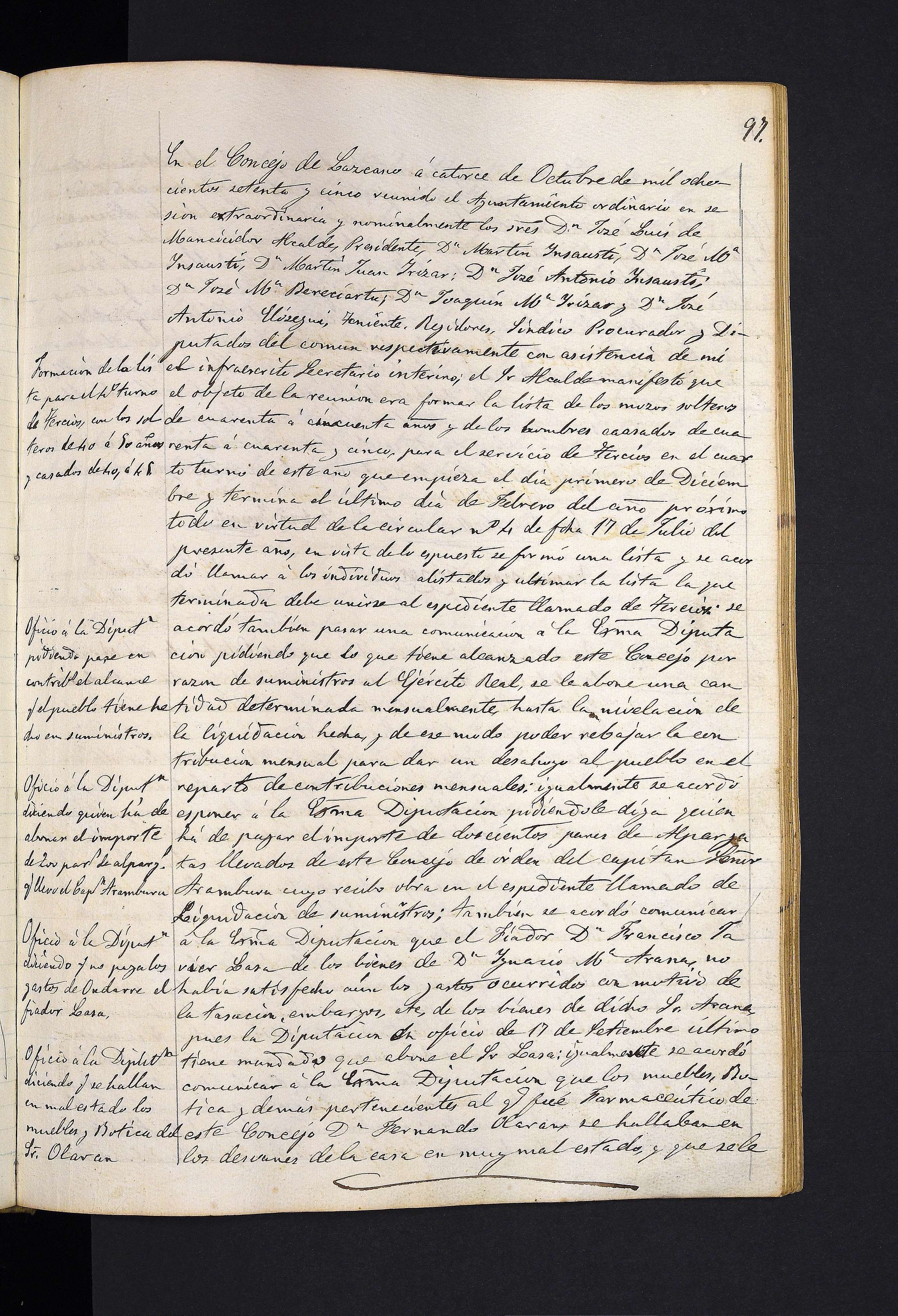 Tertzioetan sartu behar diren gizonen zerrenda osatzea # Gerra-zerga eta ordainketak # Udalak aldundiari abisua pasako dio Fernando Olaranen ondasunak oso egoera txarrean daudela esanez # Altsasuko alkateari idatziko dio udalak Altsasun jaiotakoa den Serapio umearen txirotegiko gastuak eskatuz.