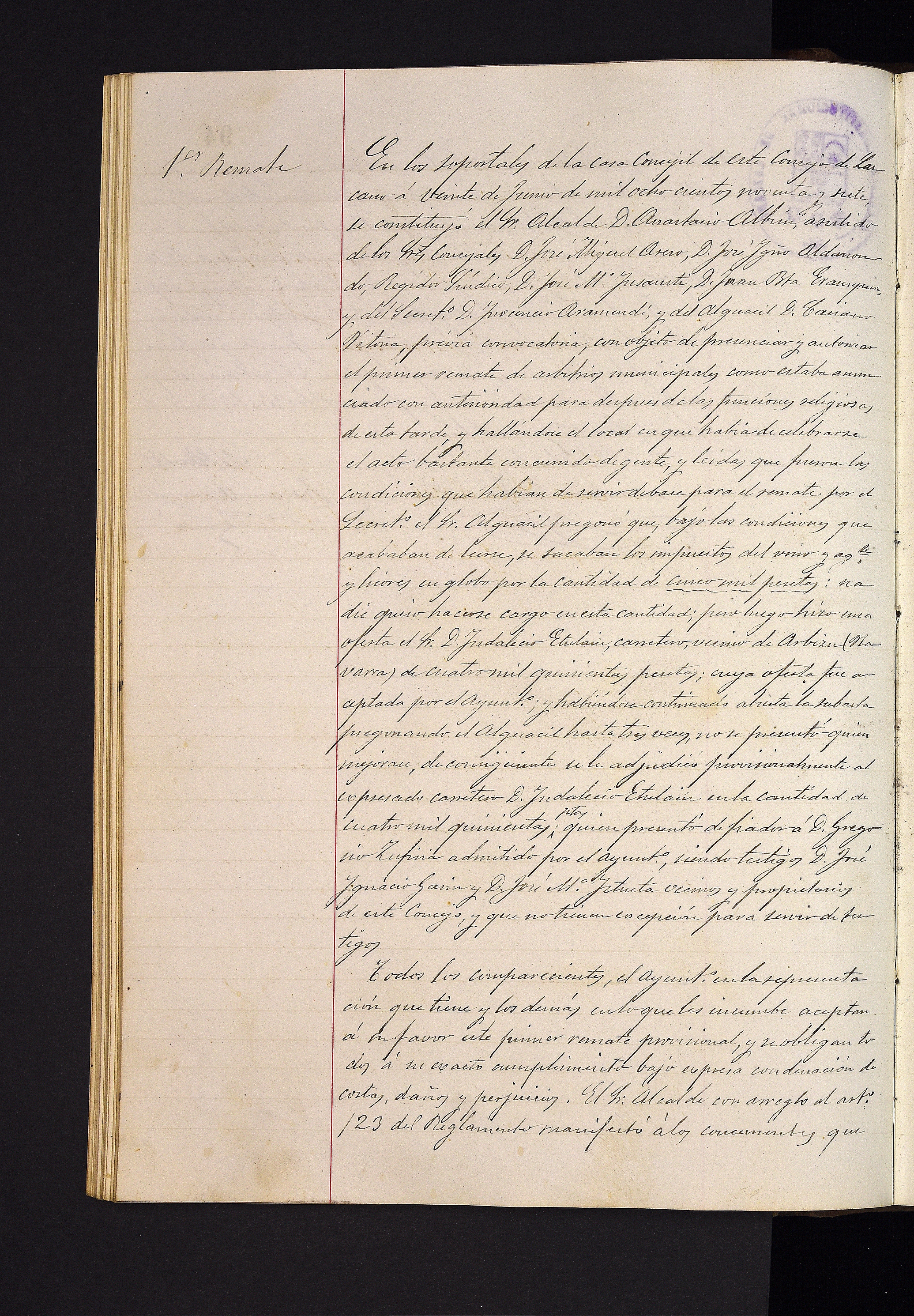 Udalak Indalezio Etrilain arbizuarraren alde egiten du arielen lehen errematea.