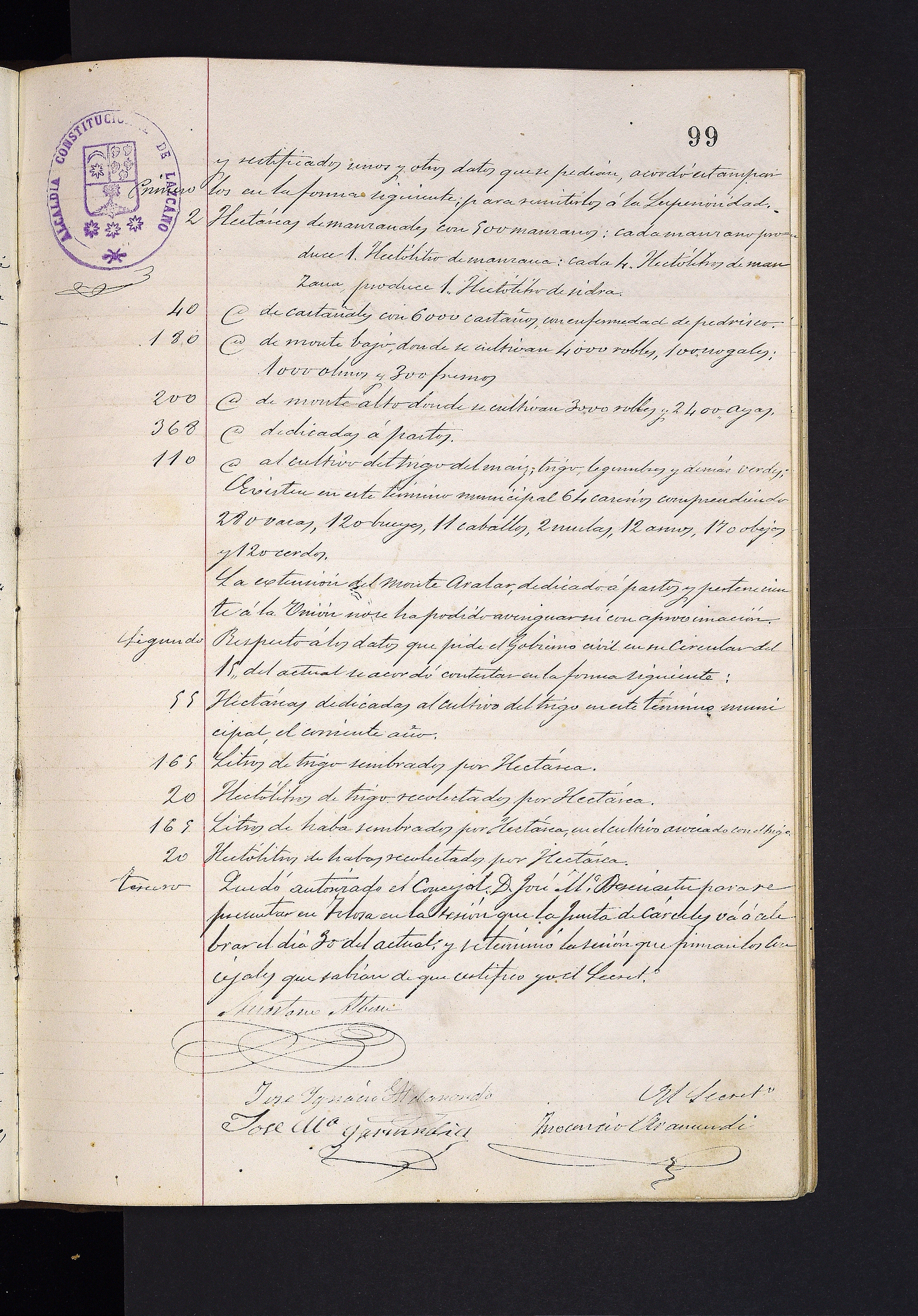 Ingeniari agronomoak eskaturiko lardaturiko sailen, produktuen eta uztaren txostena.