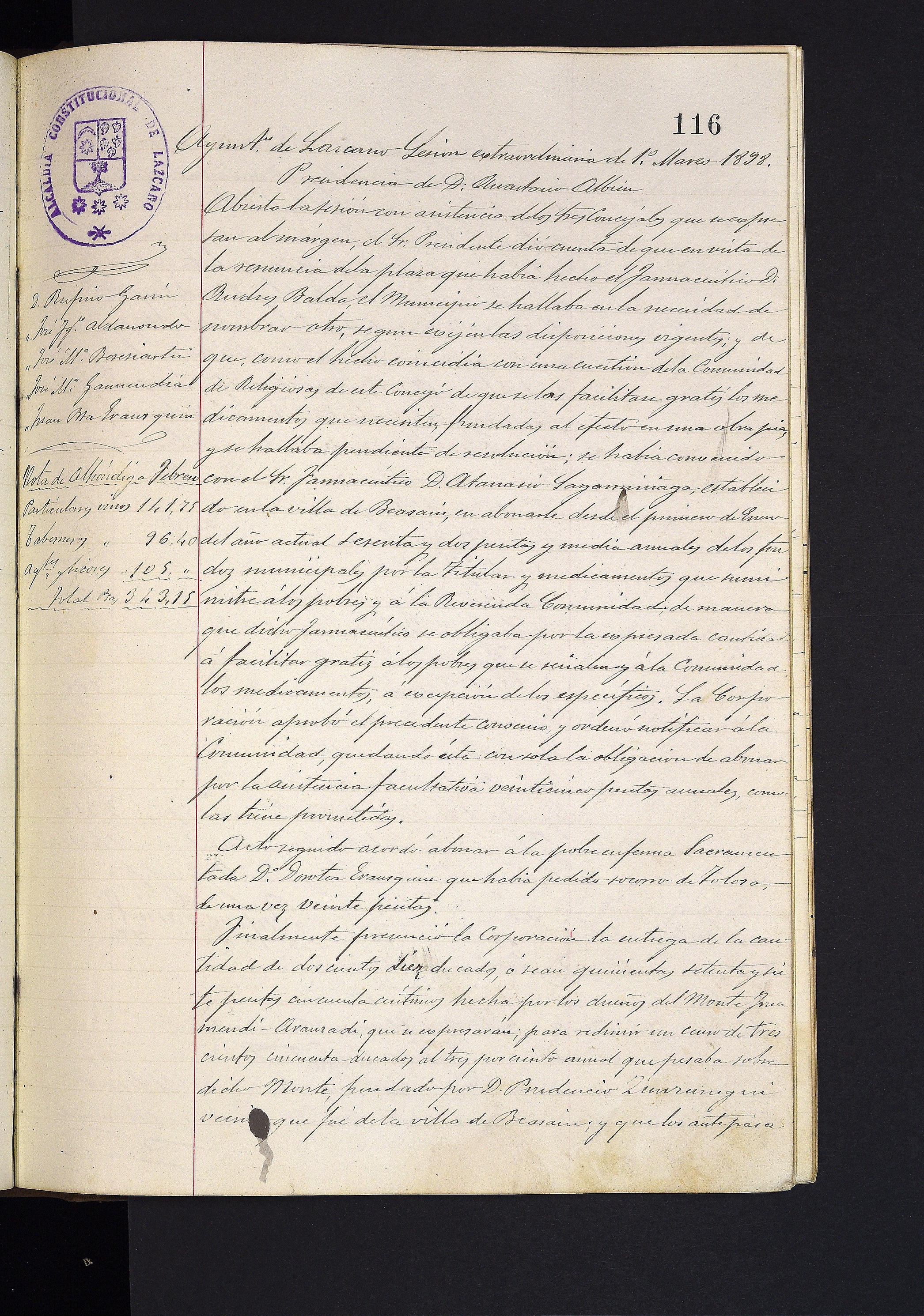 Andres Balda botikariak uko egiten dio bere lanpostuari # Ongintzarako diru laguntzak # Iramendi- Aranzadi medien jabeei mailegatutako zentsuaren interesak ordaintzen zaizkio.