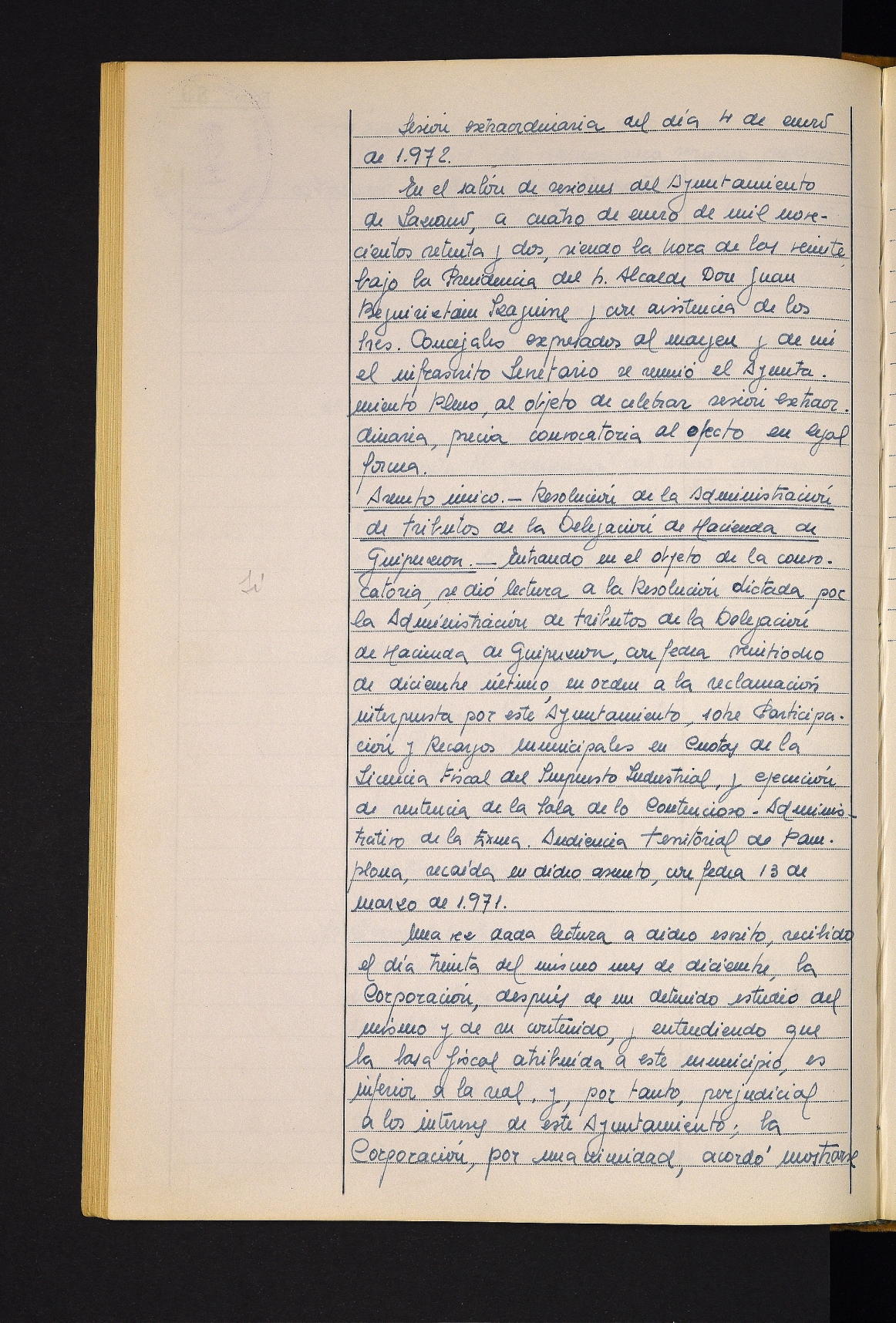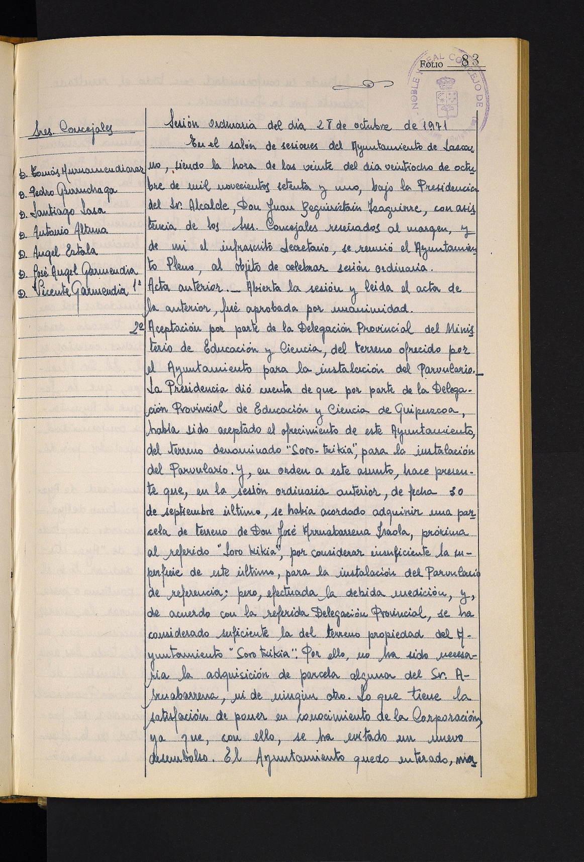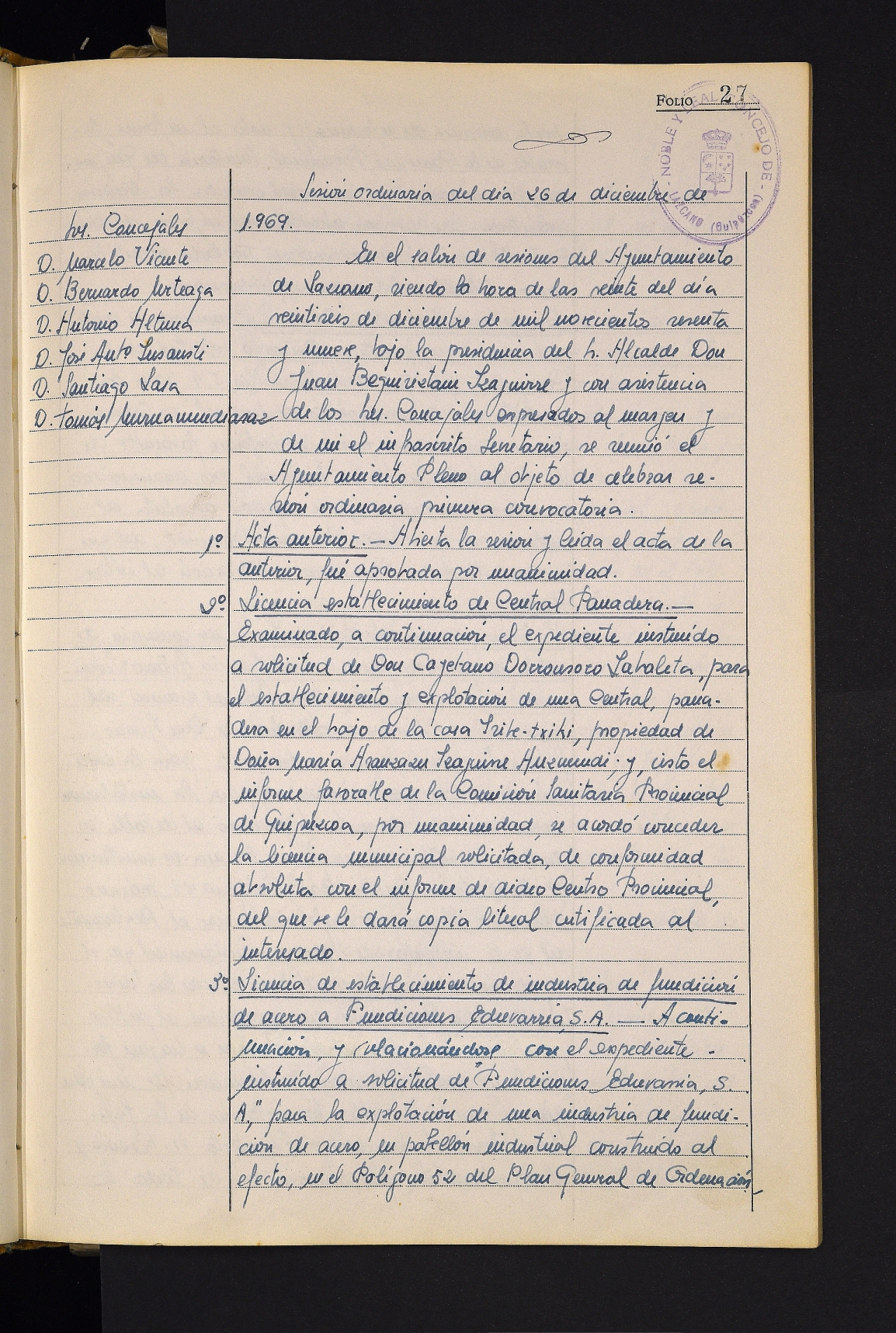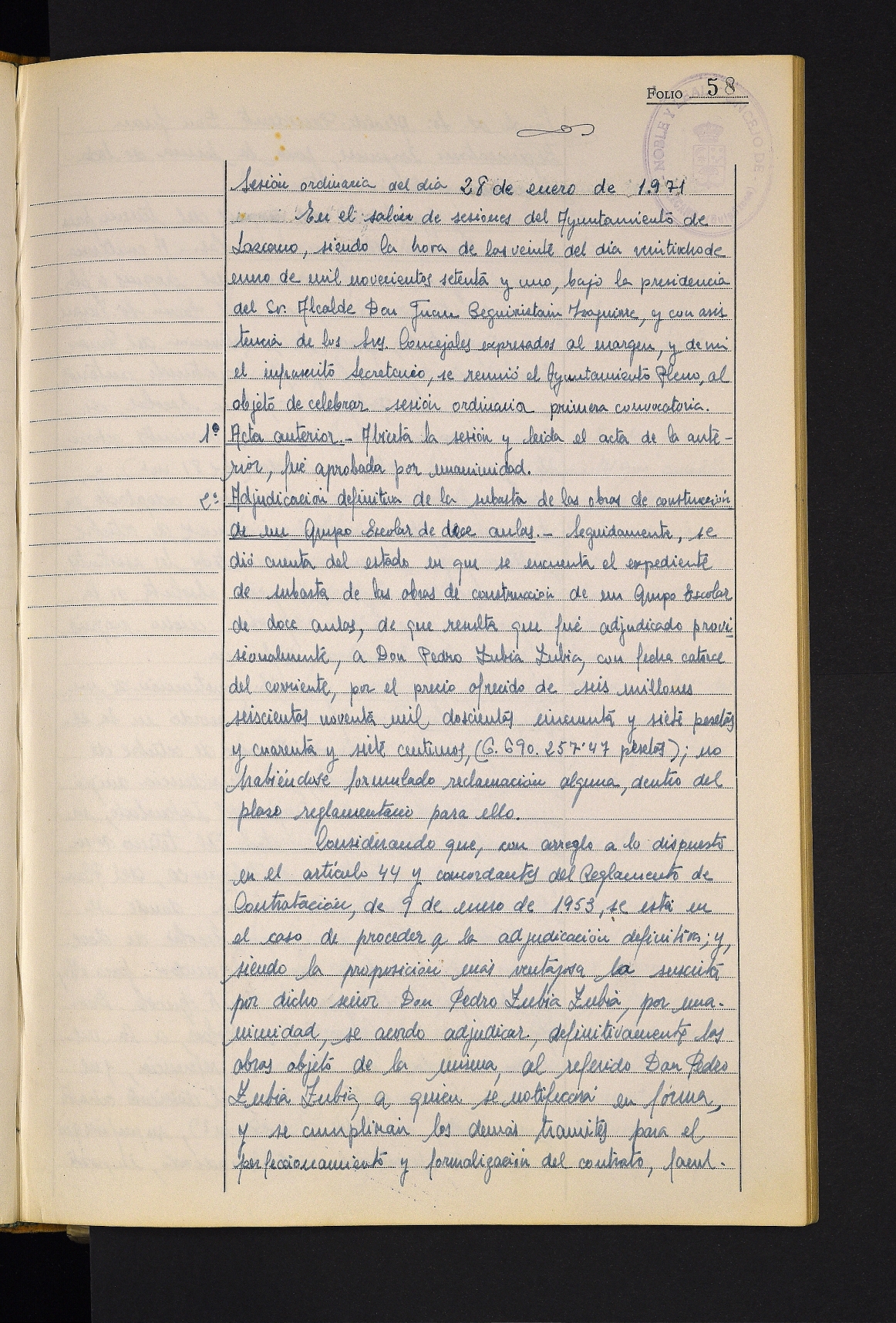 Log in to post commentsEdukiakSailkapenaFuntsaLazkaoko Udal ArtxiboaAtalakUdal AktakSailkapena1.1.4. Osoko Bilkuraren akta liburuakSailkapen berriaOsoko Bilkurako akta liburuakMultimediaIrudiakIdentifikazioaSignaturaakta liburua I-028Hasiera1968-12-26Amaiera1973-01-25AutoritateakTokiaLazkaoLog in to post commentsAkta eratu