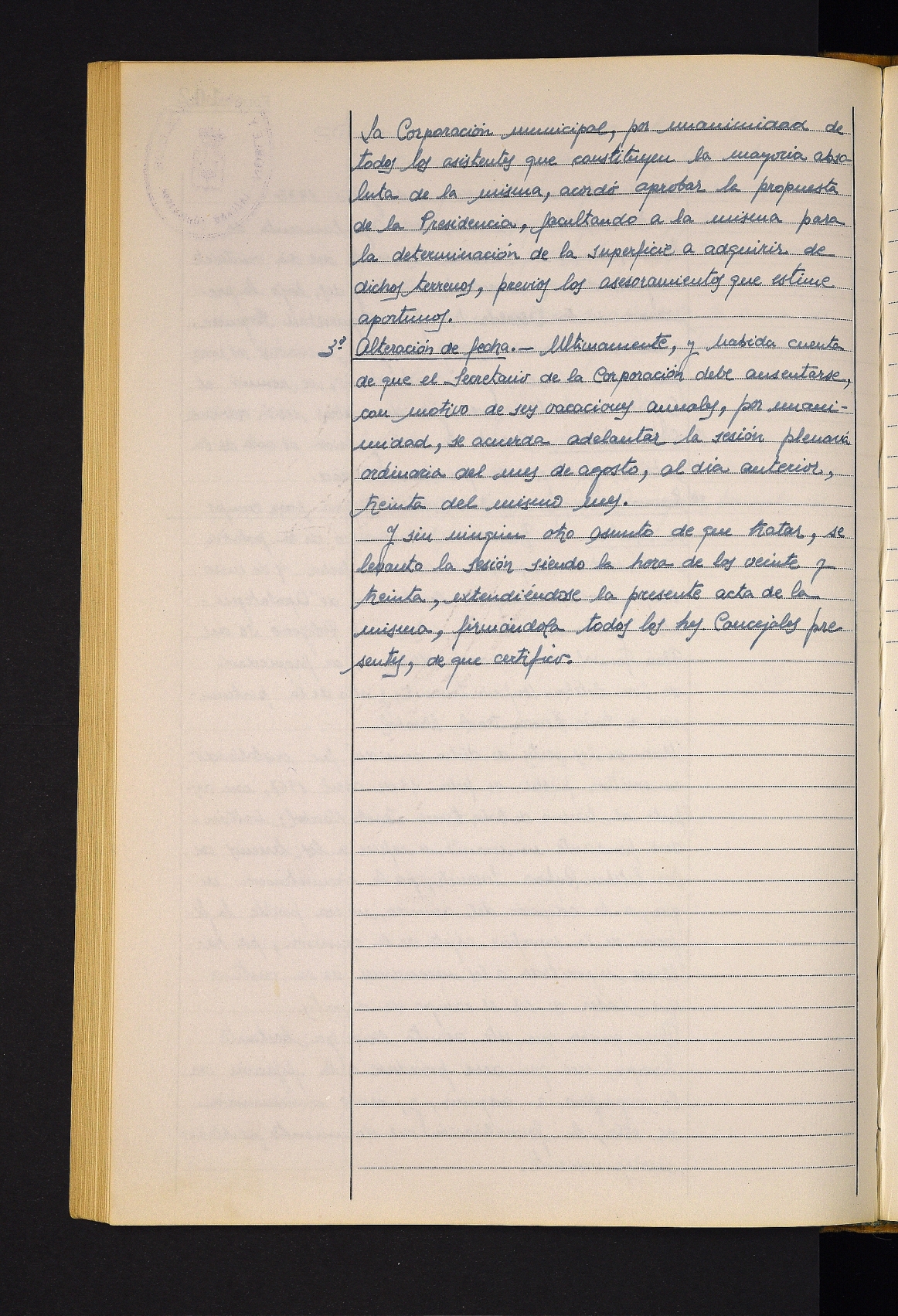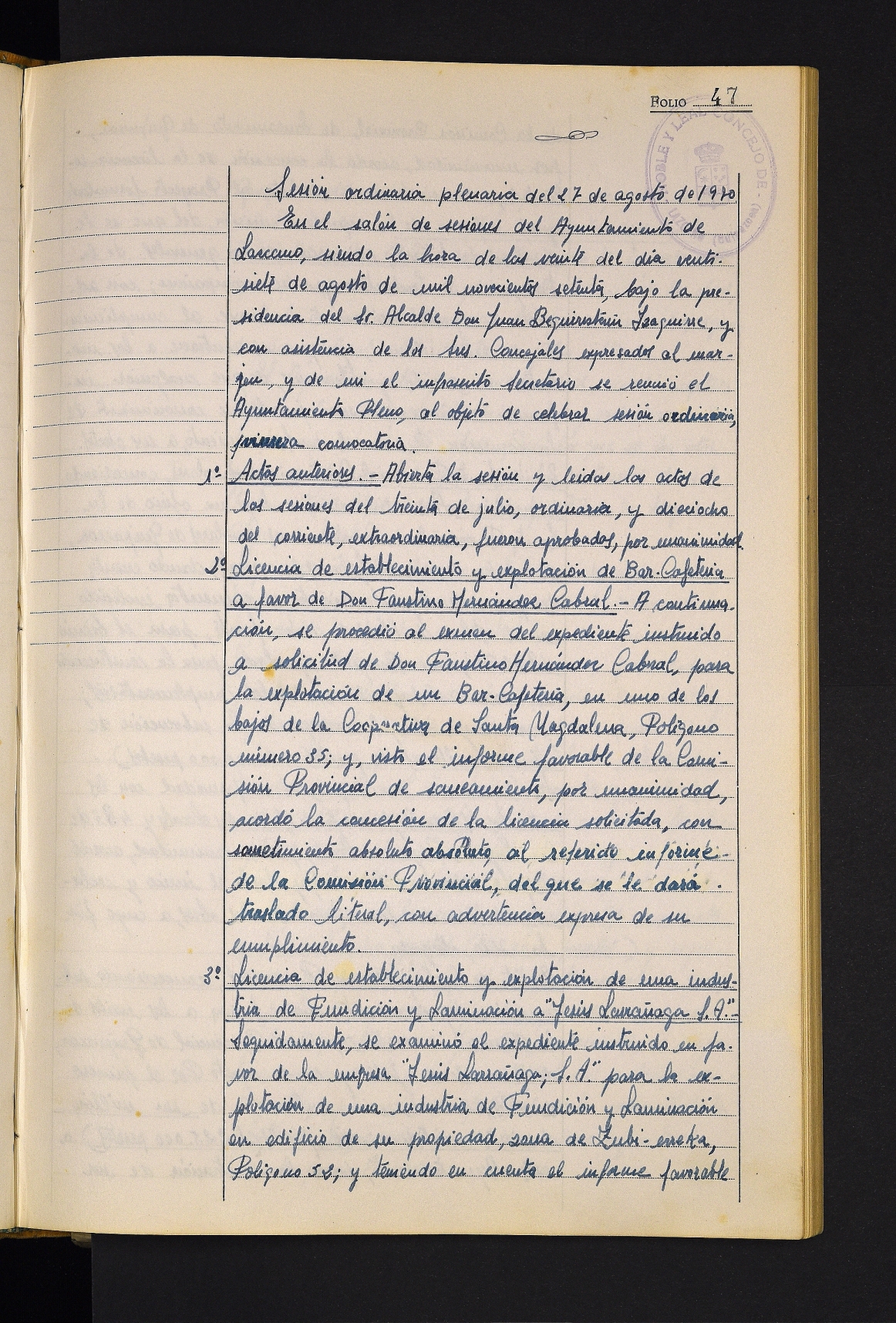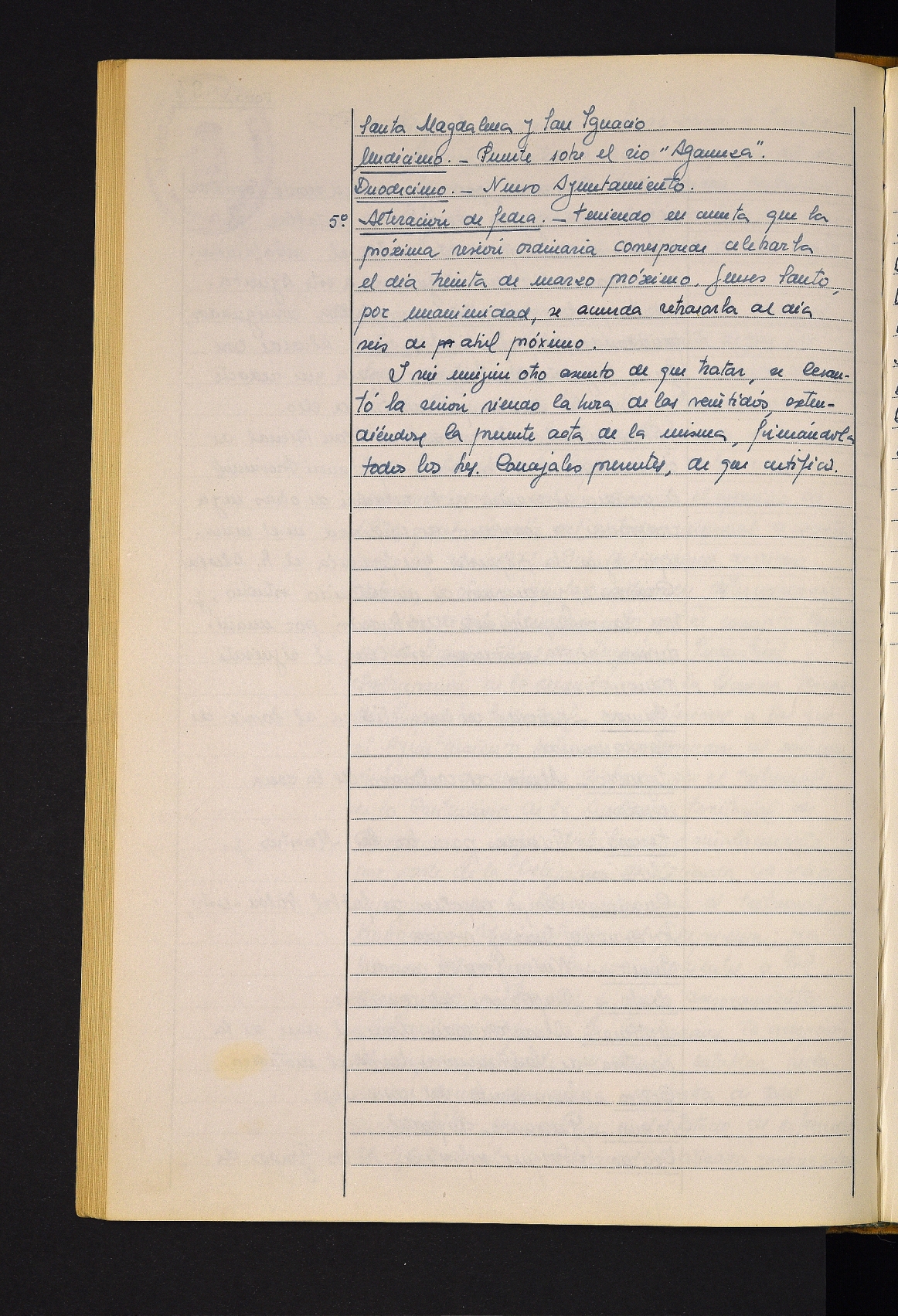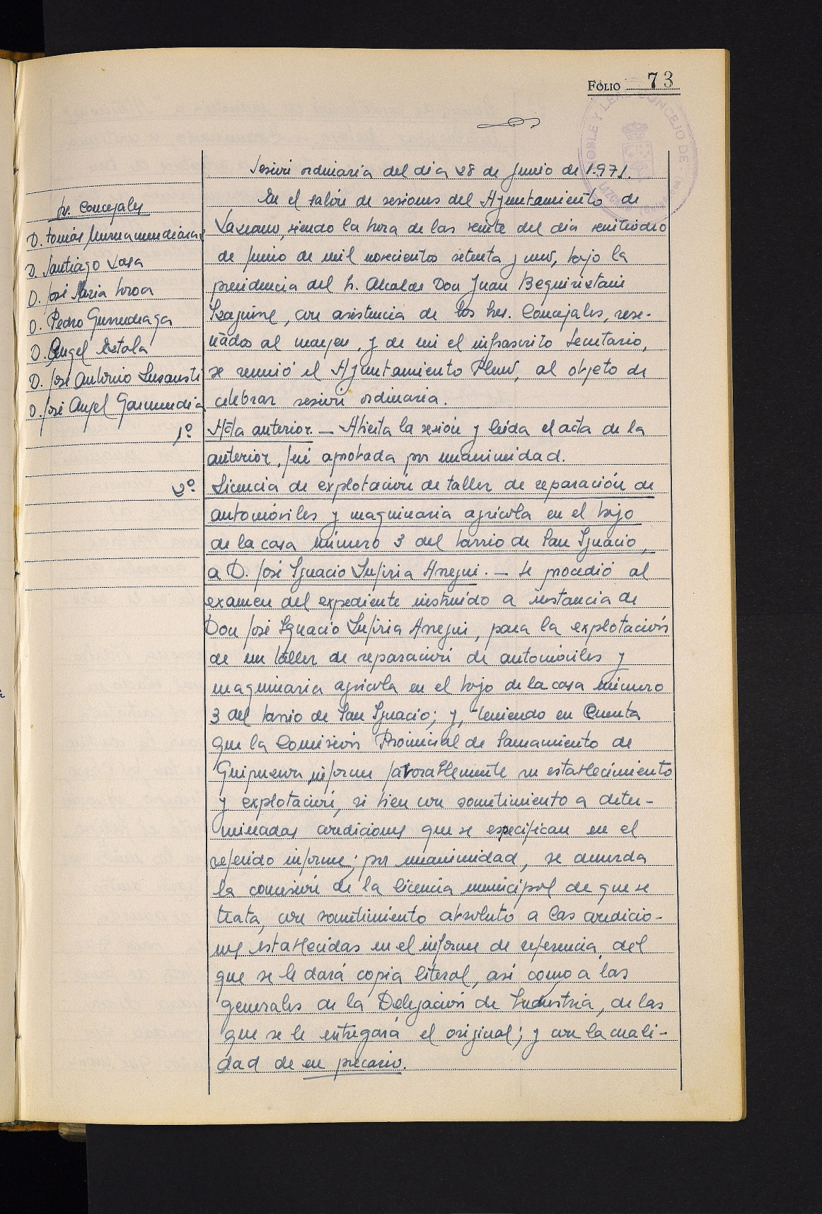 Log in to post commentsEdukiakSailkapenaFuntsaLazkaoko Udal ArtxiboaAtalakUdal AktakSailkapena1.1.4. Osoko Bilkuraren akta liburuakSailkapen berriaOsoko Bilkurako akta liburuakMultimediaIrudiakIdentifikazioaSignaturaakta liburua I-028Hasiera1968-12-26Amaiera1973-01-25AutoritateakTokiaLazkaoLog in to post commentsAkta eratu