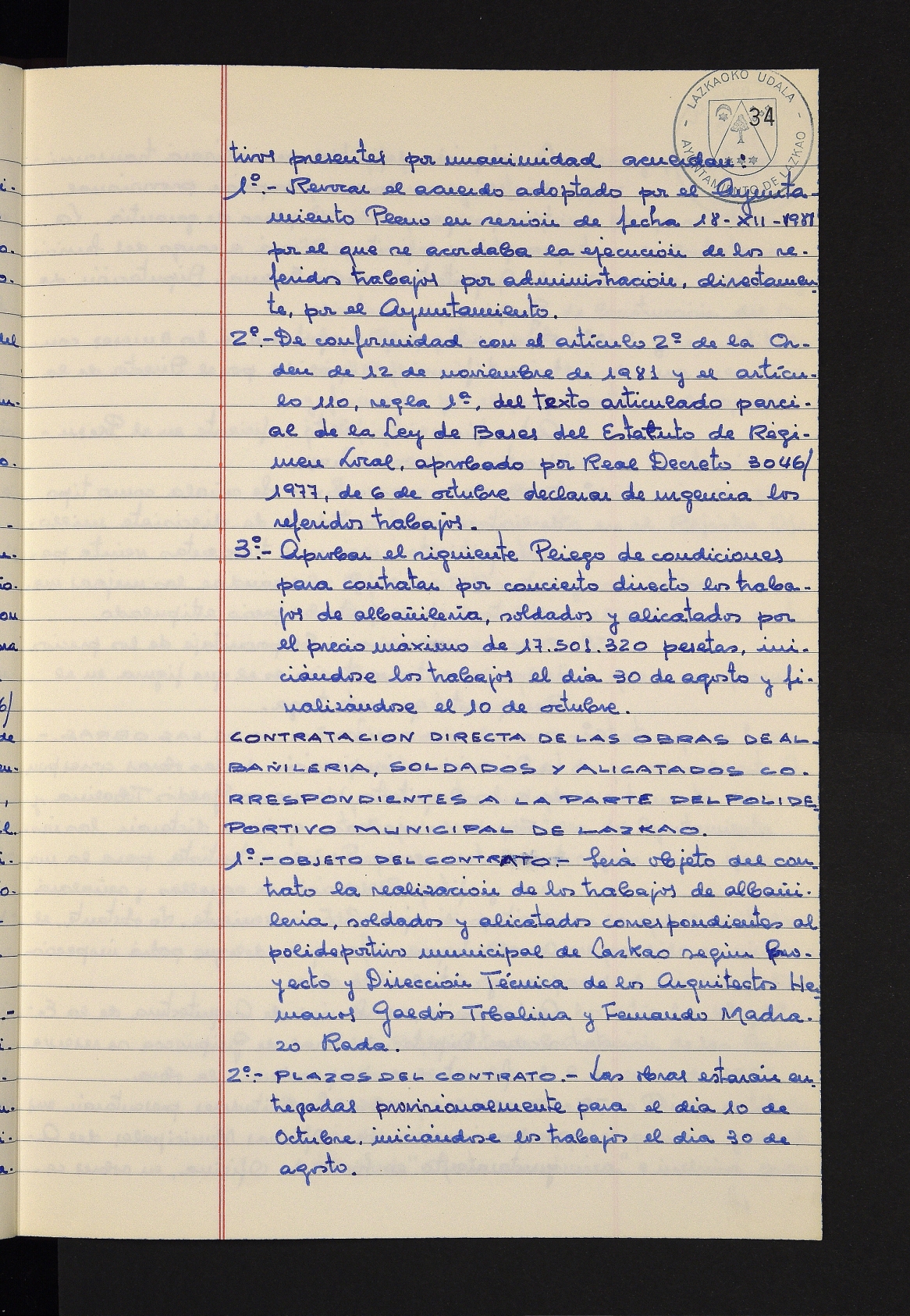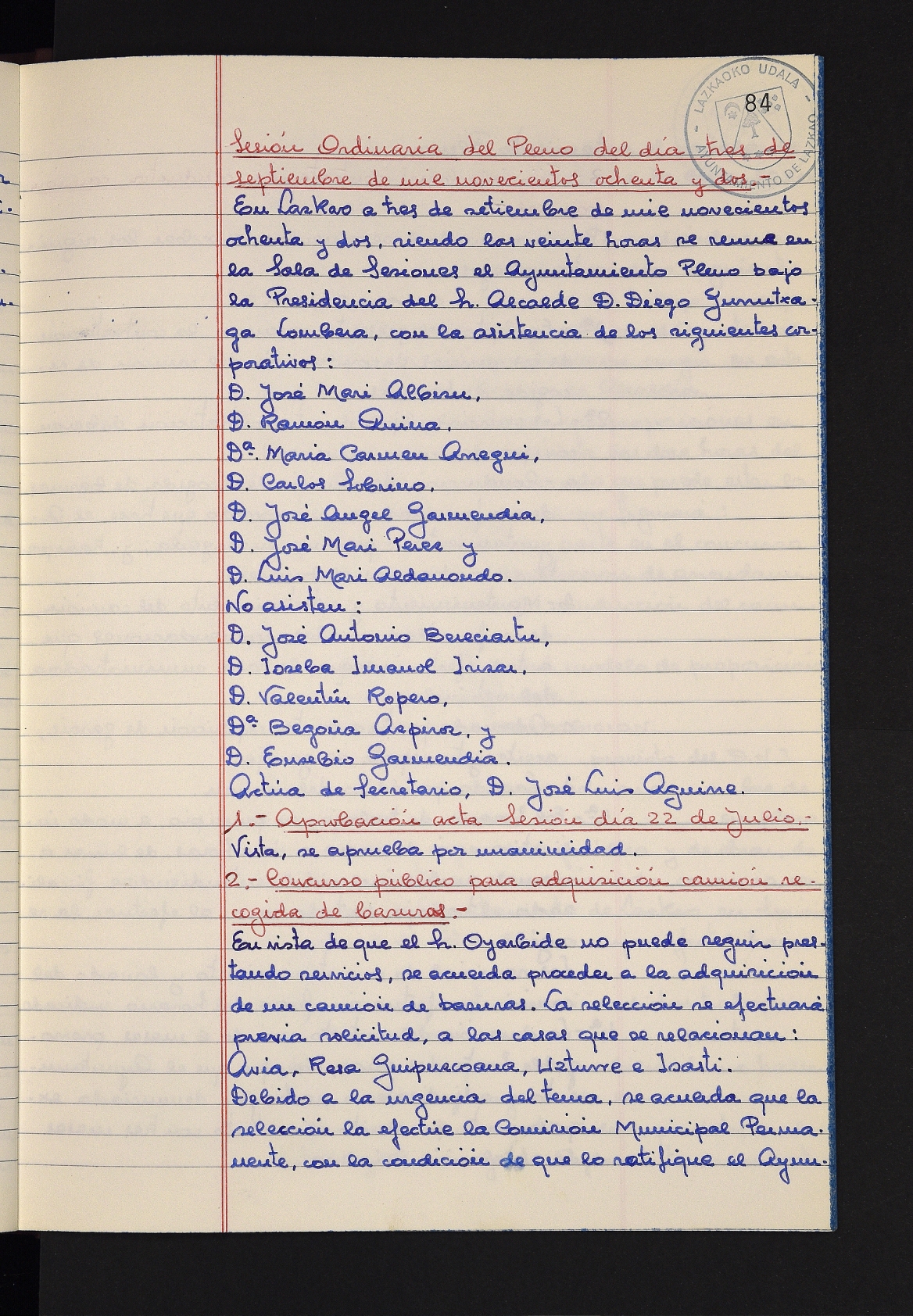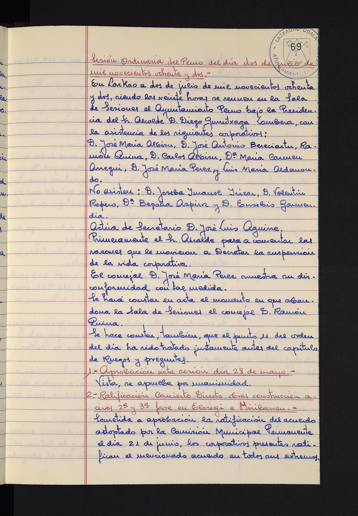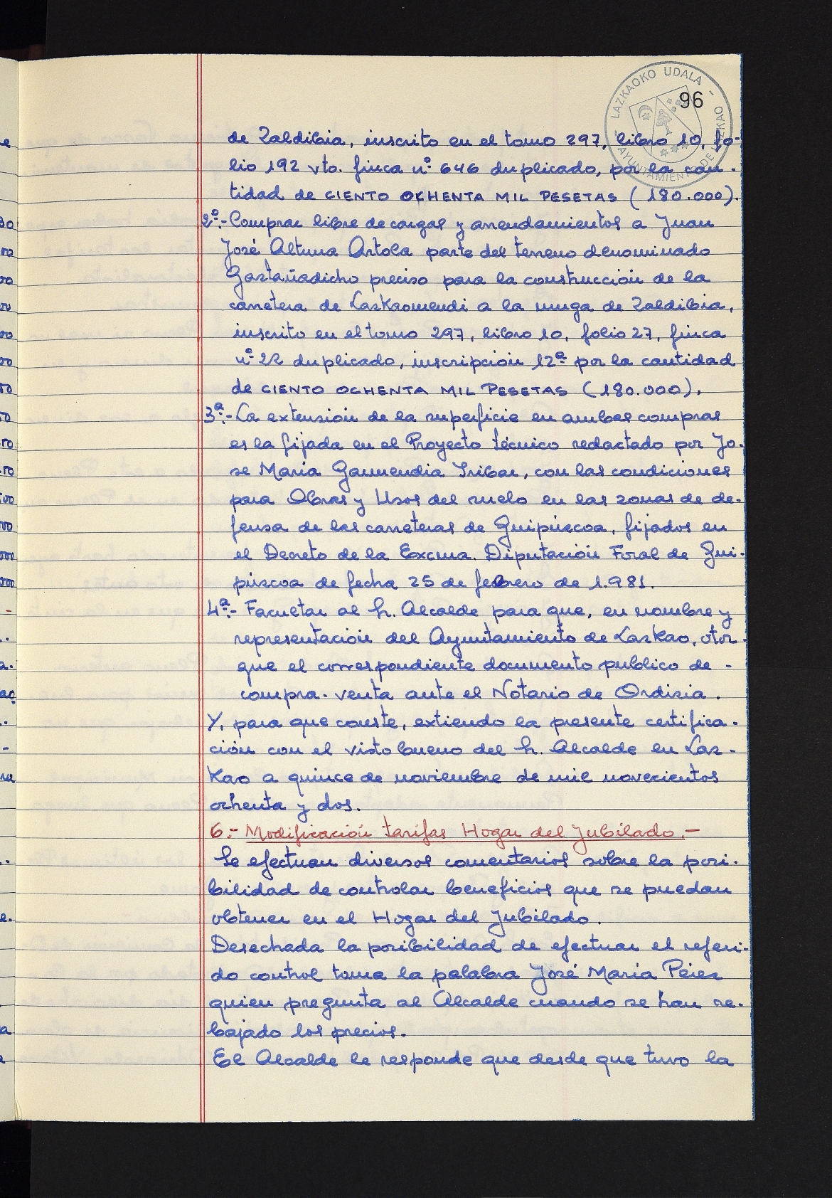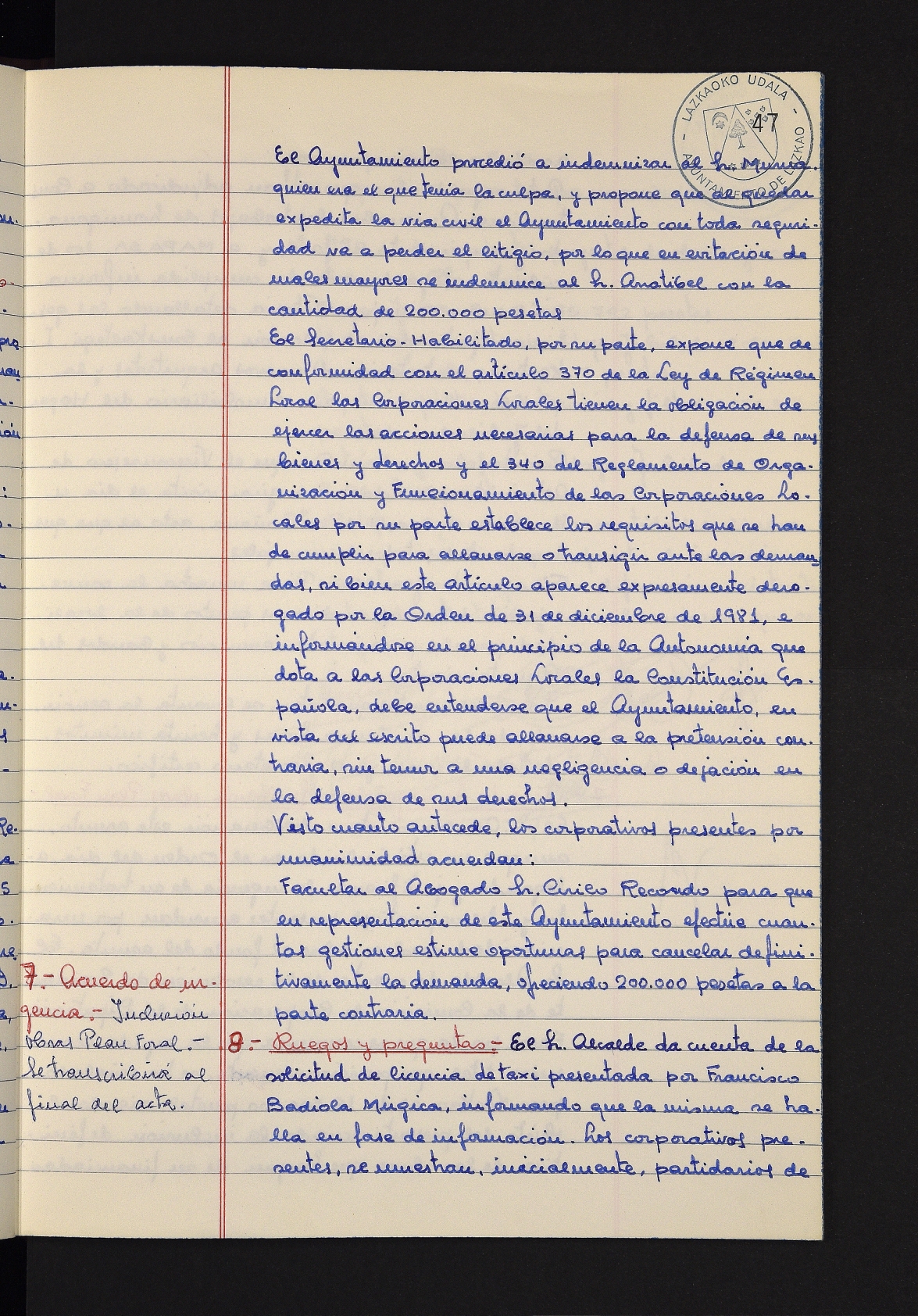 Log in to post commentsEdukiakSailkapenaFuntsaLazkaoko Udal ArtxiboaAtalakUdal AktakSailkapena1.1.4. Osoko Bilkuraren akta liburuakSailkapen berriaOsoko Bilkurako akta liburuakMultimediaIrudiakIdentifikazioaSignaturaakta liburua I-031Hasiera1981-11-27Amaiera1982-11-05AutoritateakTokiaLazkaoLog in to post commentsAkta eratu