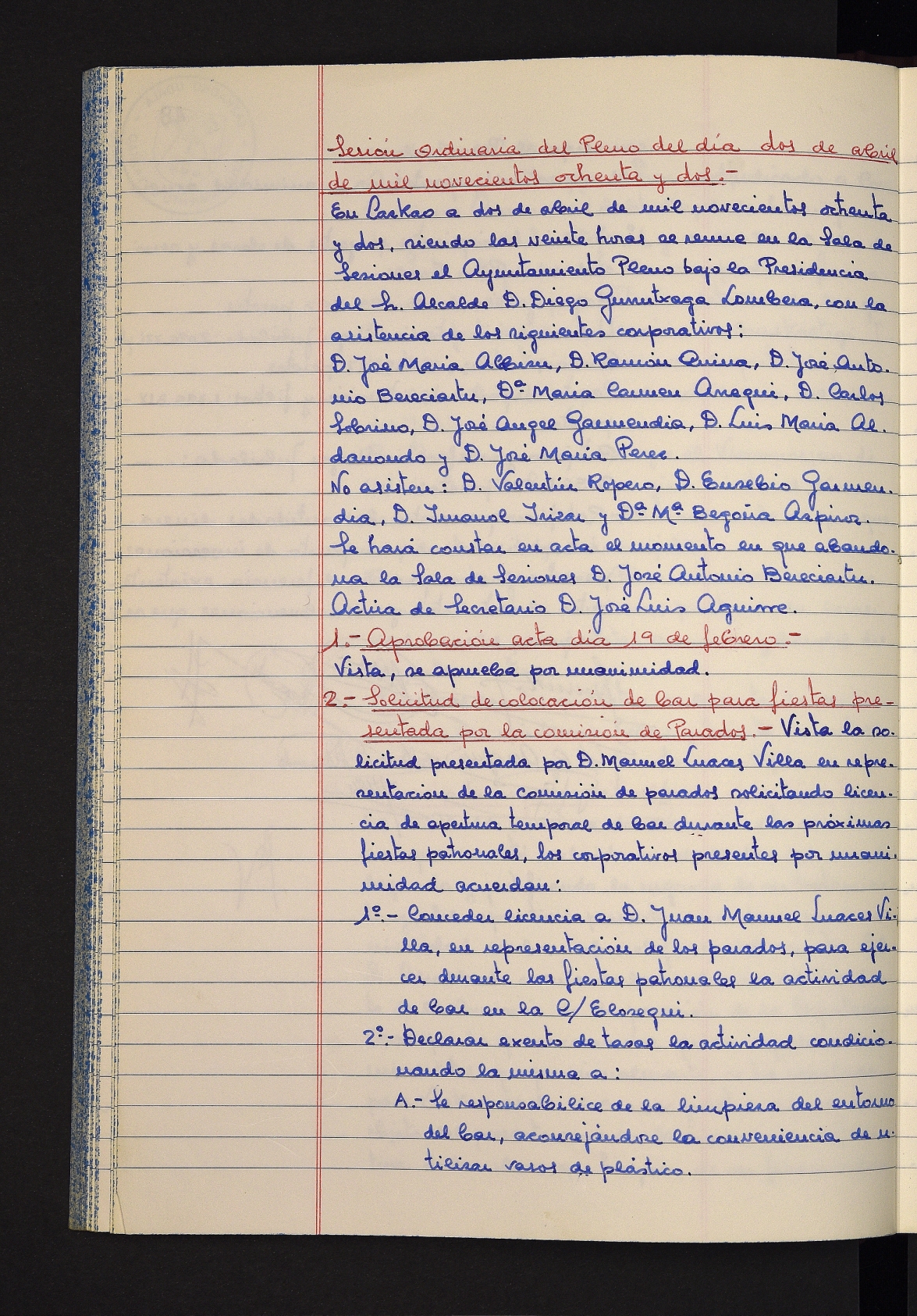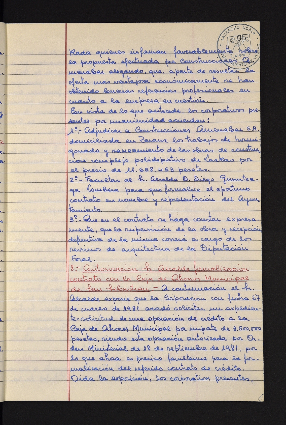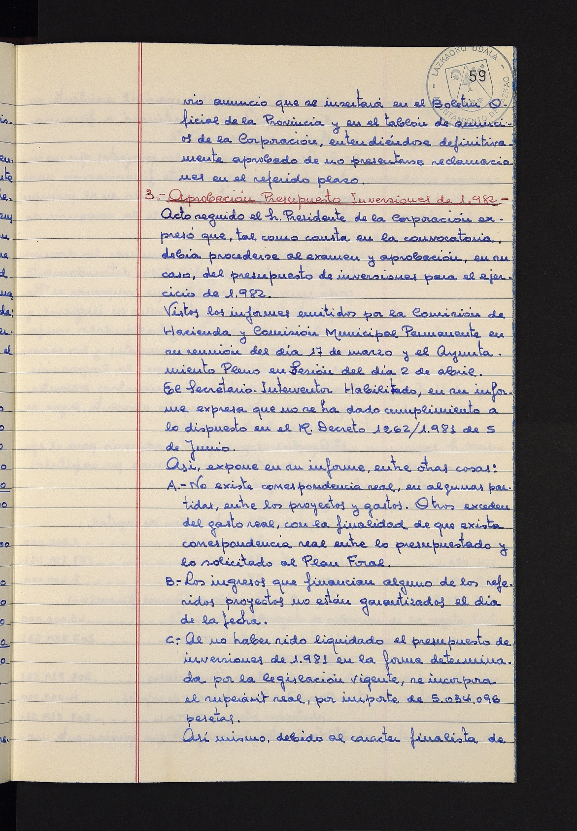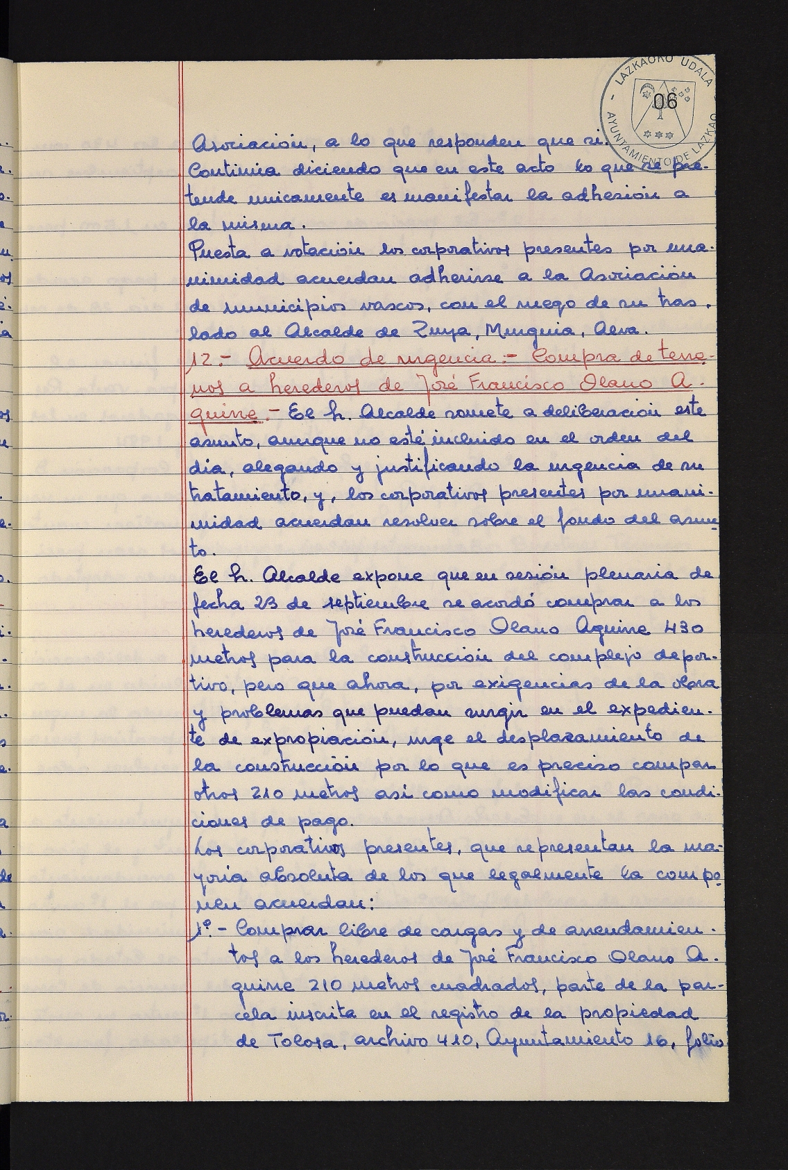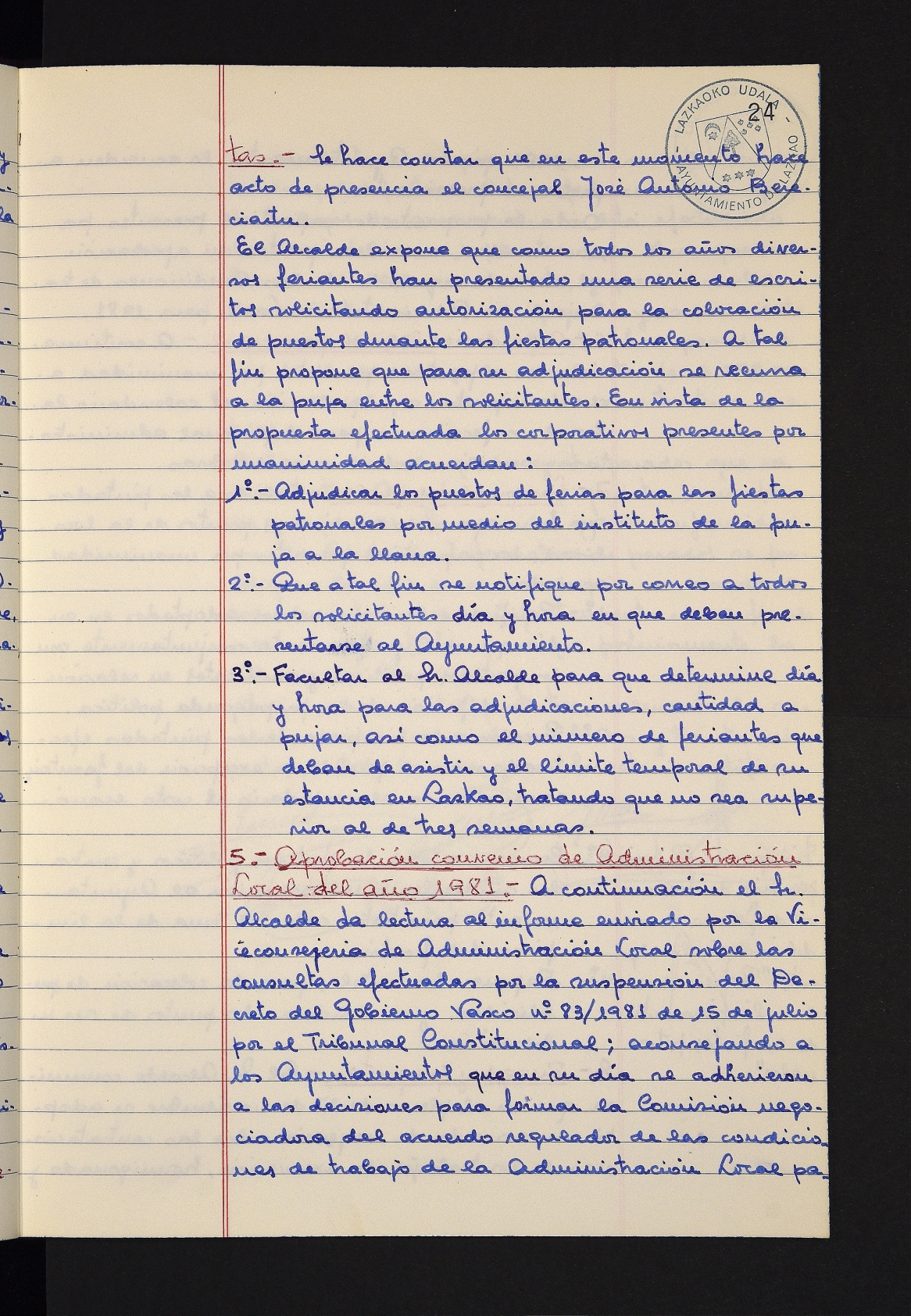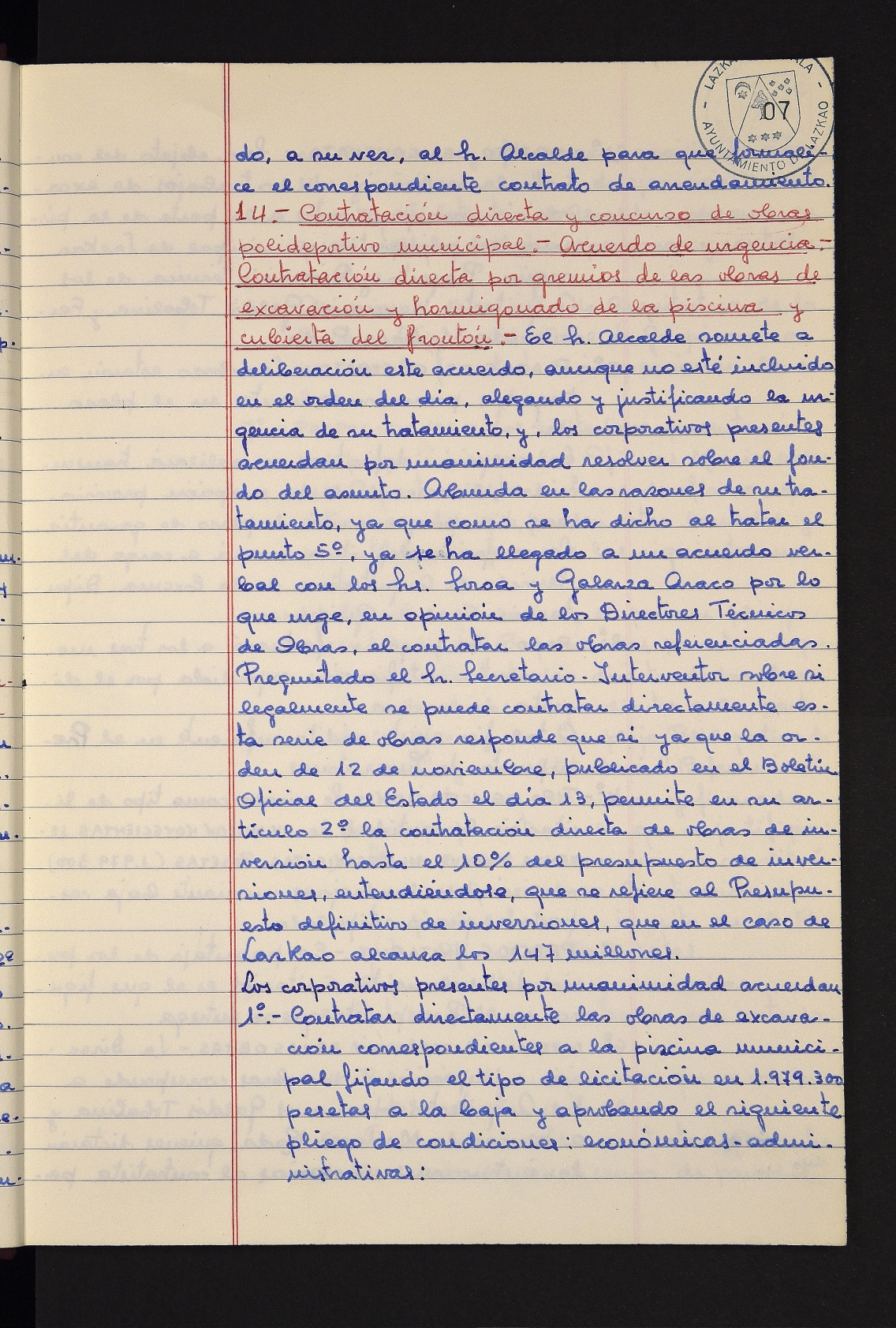 Log in to post commentsEdukiakSailkapenaFuntsaLazkaoko Udal ArtxiboaAtalakUdal AktakSailkapena1.1.4. Osoko Bilkuraren akta liburuakSailkapen berriaOsoko Bilkurako akta liburuakMultimediaIrudiakIdentifikazioaSignaturaakta liburua I-031Hasiera1981-11-27Amaiera1982-11-05AutoritateakTokiaLazkaoLog in to post commentsAkta eratu