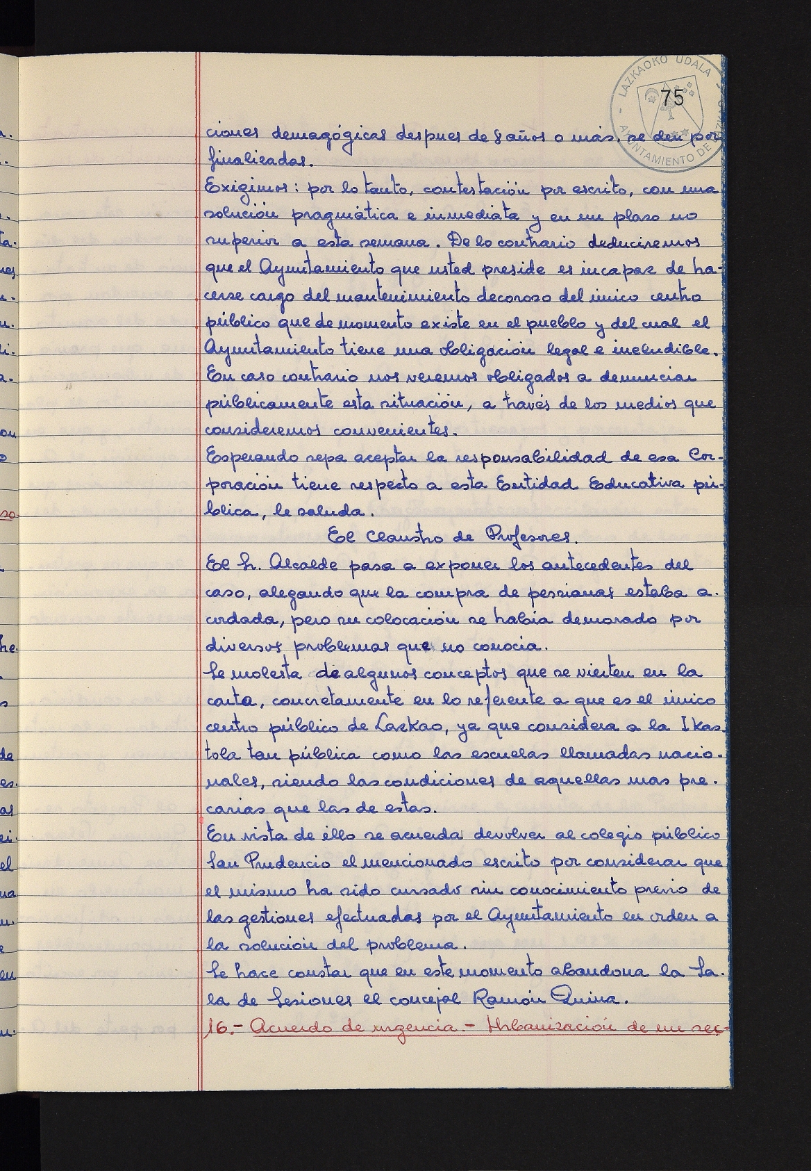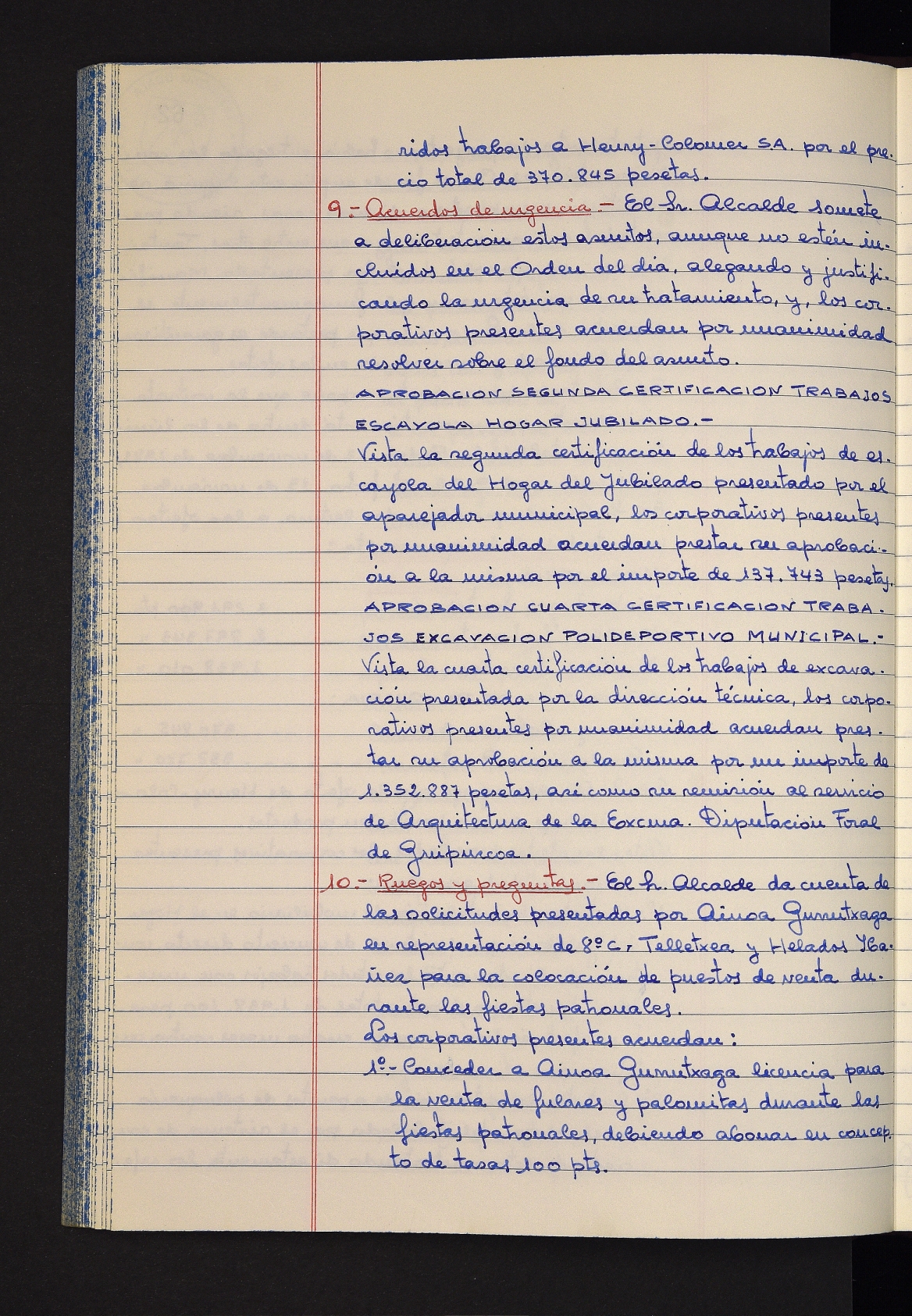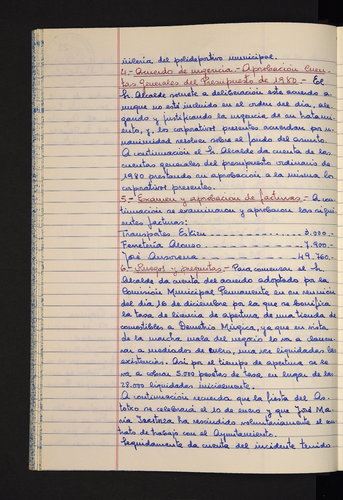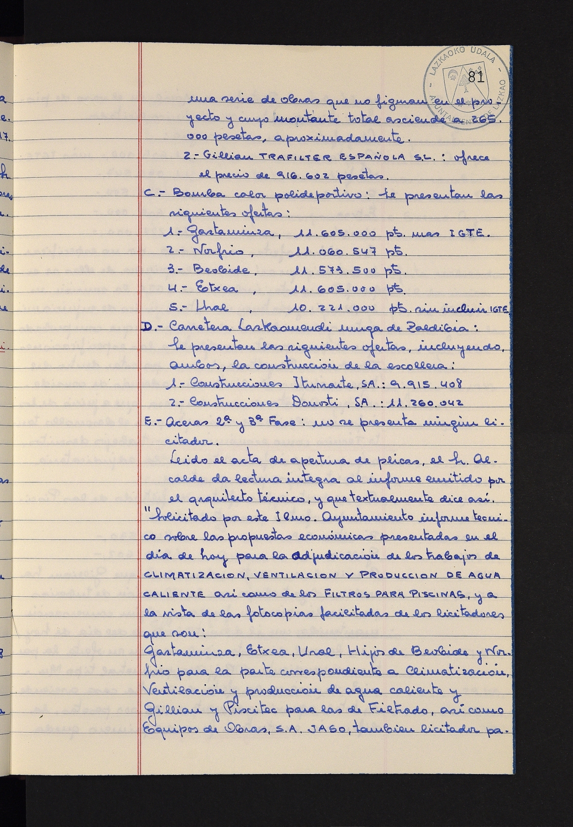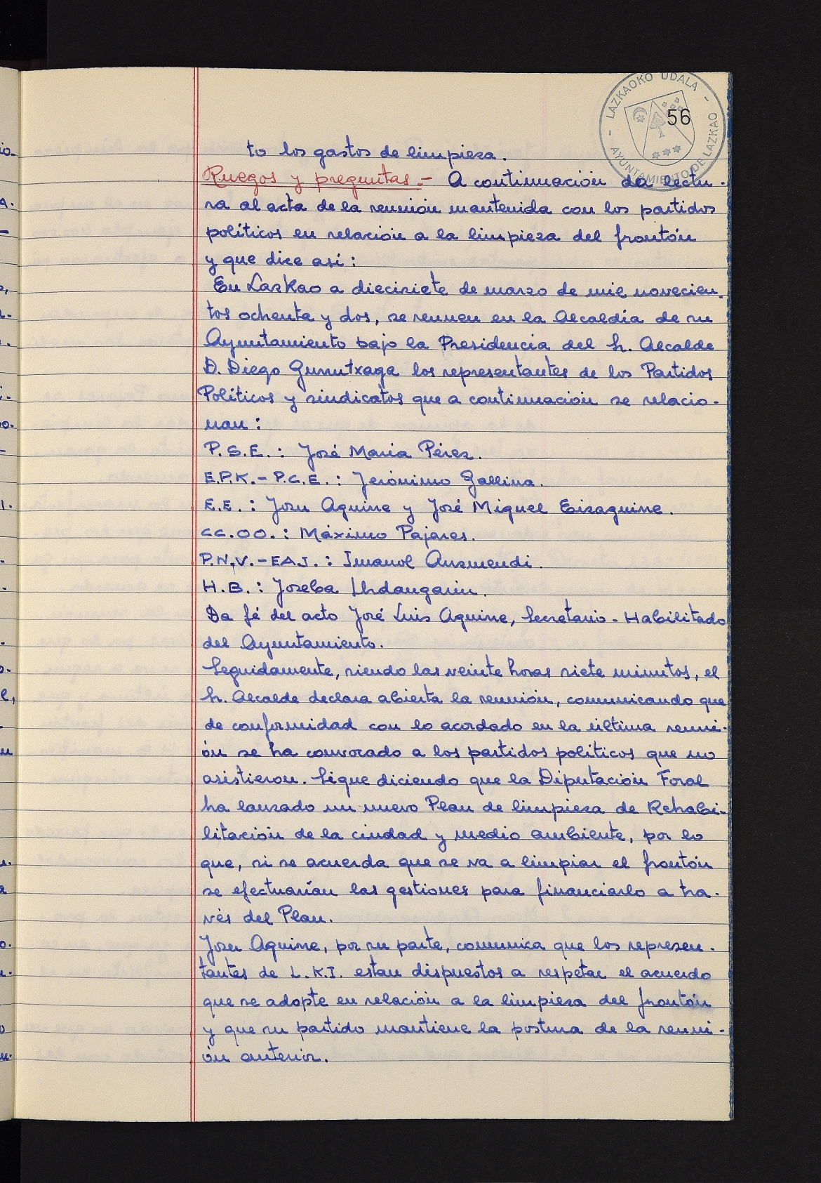 Log in to post commentsEdukiakSailkapenaFuntsaLazkaoko Udal ArtxiboaAtalakUdal AktakSailkapena1.1.4. Osoko Bilkuraren akta liburuakSailkapen berriaOsoko Bilkurako akta liburuakMultimediaIrudiakIdentifikazioaSignaturaakta liburua I-031Hasiera1981-11-27Amaiera1982-11-05AutoritateakTokiaLazkaoLog in to post commentsAkta eratu
