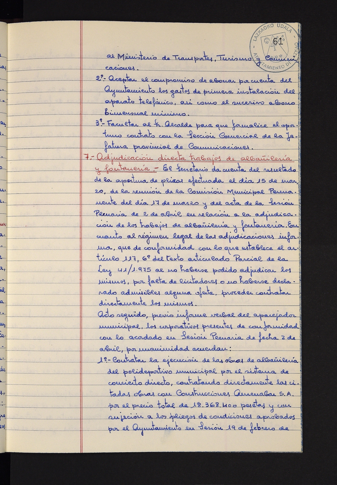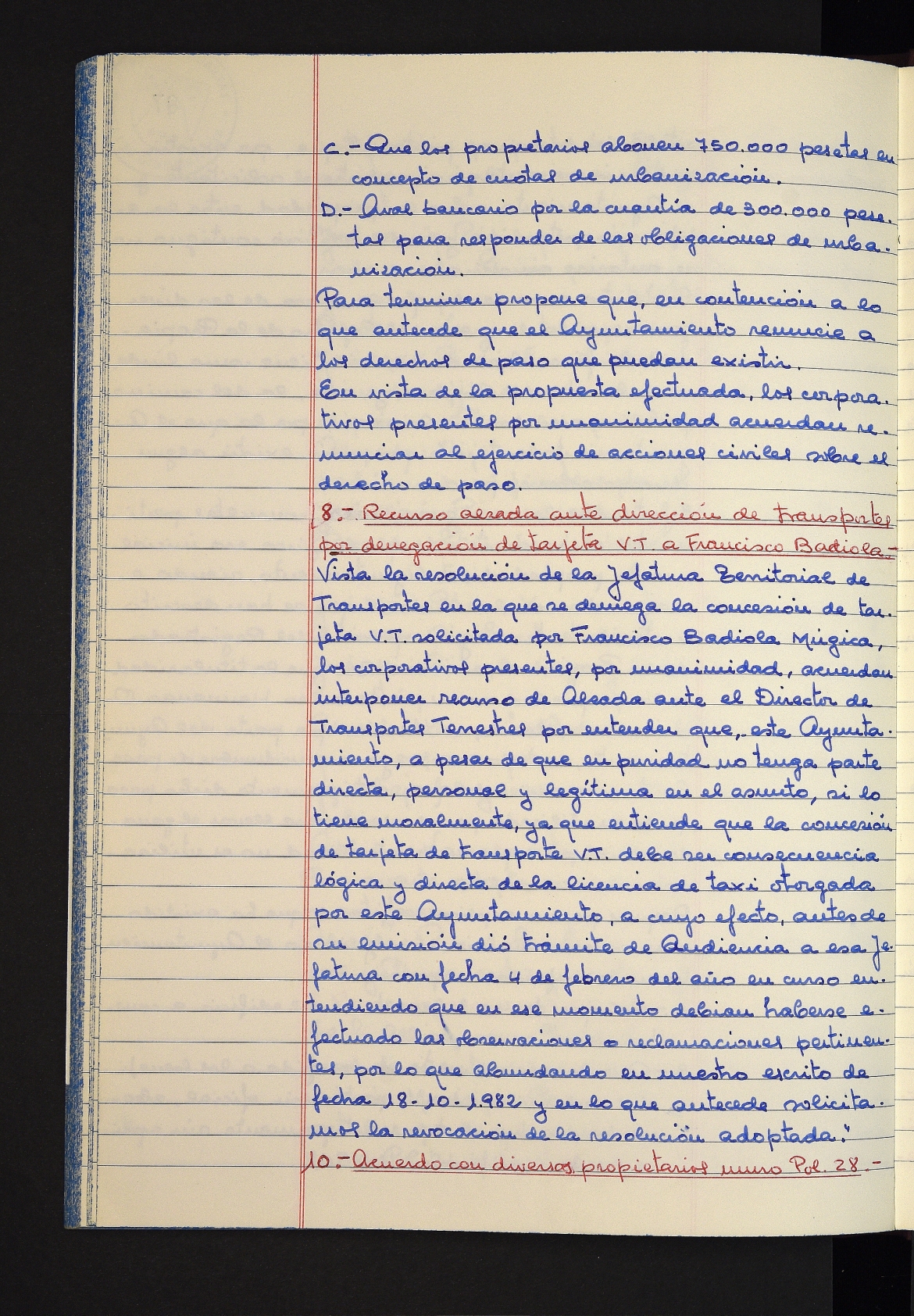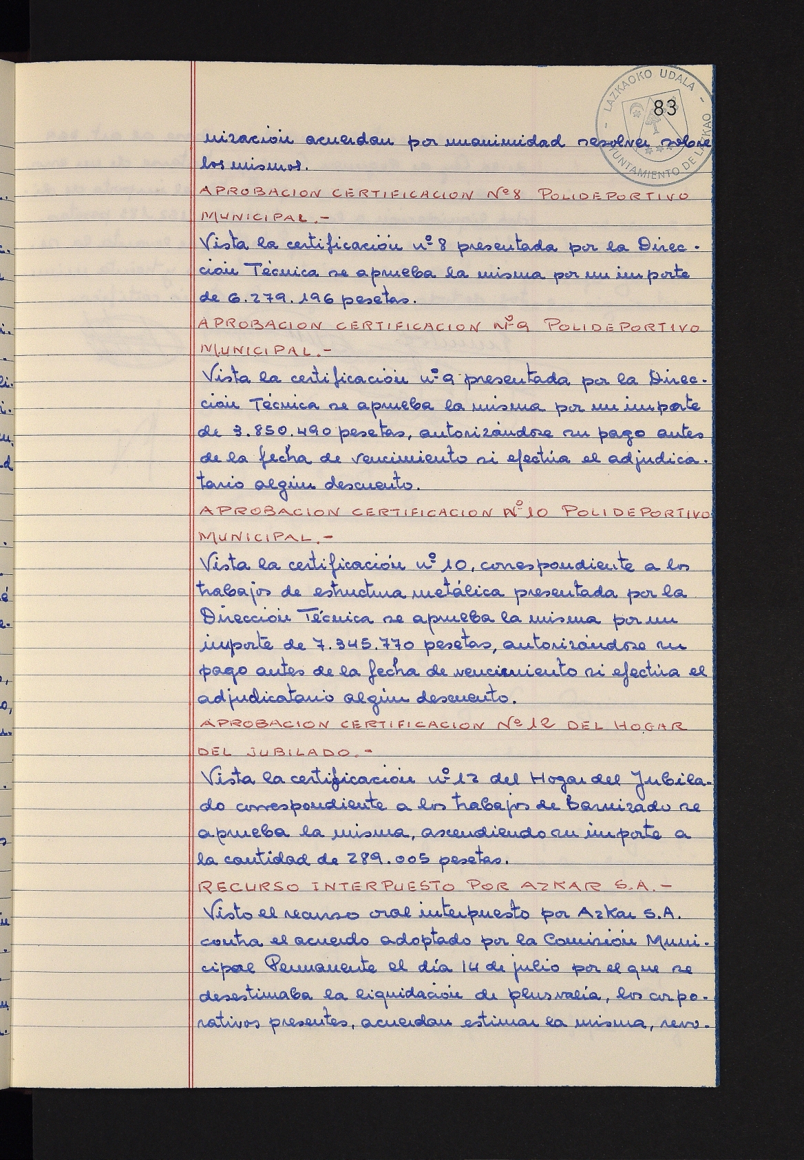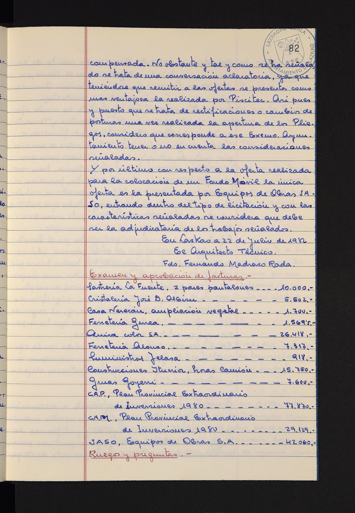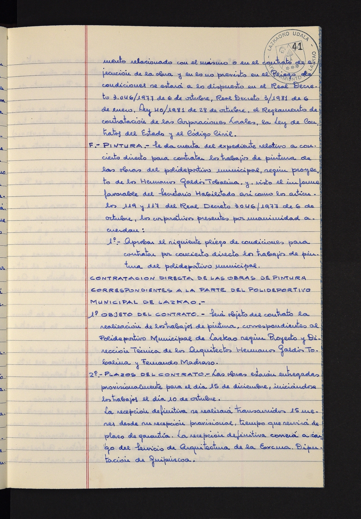 Log in to post commentsEdukiakSailkapenaFuntsaLazkaoko Udal ArtxiboaAtalakUdal AktakSailkapena1.1.4. Osoko Bilkuraren akta liburuakSailkapen berriaOsoko Bilkurako akta liburuakMultimediaIrudiakIdentifikazioaSignaturaakta liburua I-031Hasiera1981-11-27Amaiera1982-11-05AutoritateakTokiaLazkaoLog in to post commentsAkta eratu