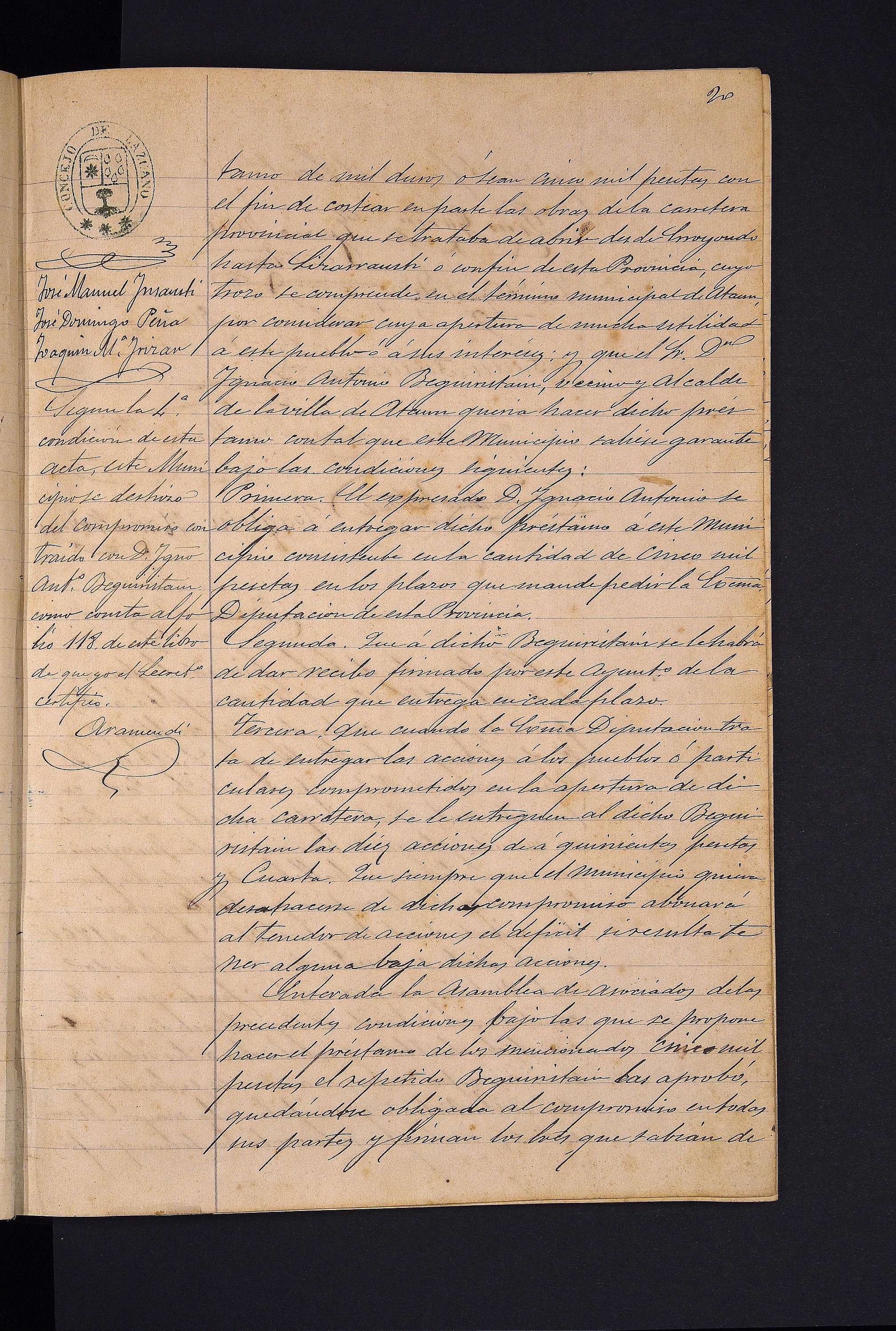 Ignacio Antonio Beguiristainekin hartutako konpromezuak ireki behar den Atauneko biderako # Kontuak # Abdon Alava interesak kobratzeko ahalduntzen da.