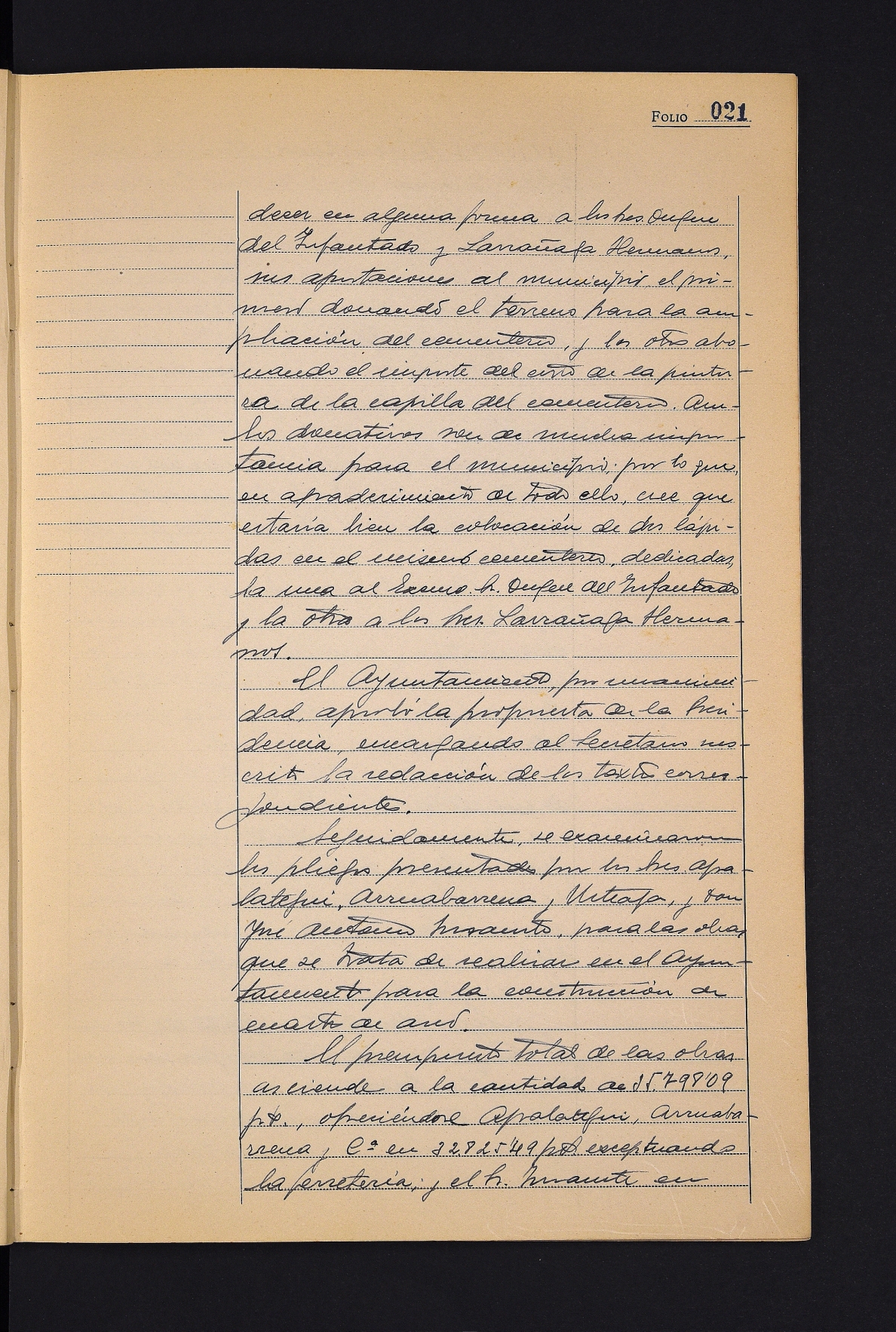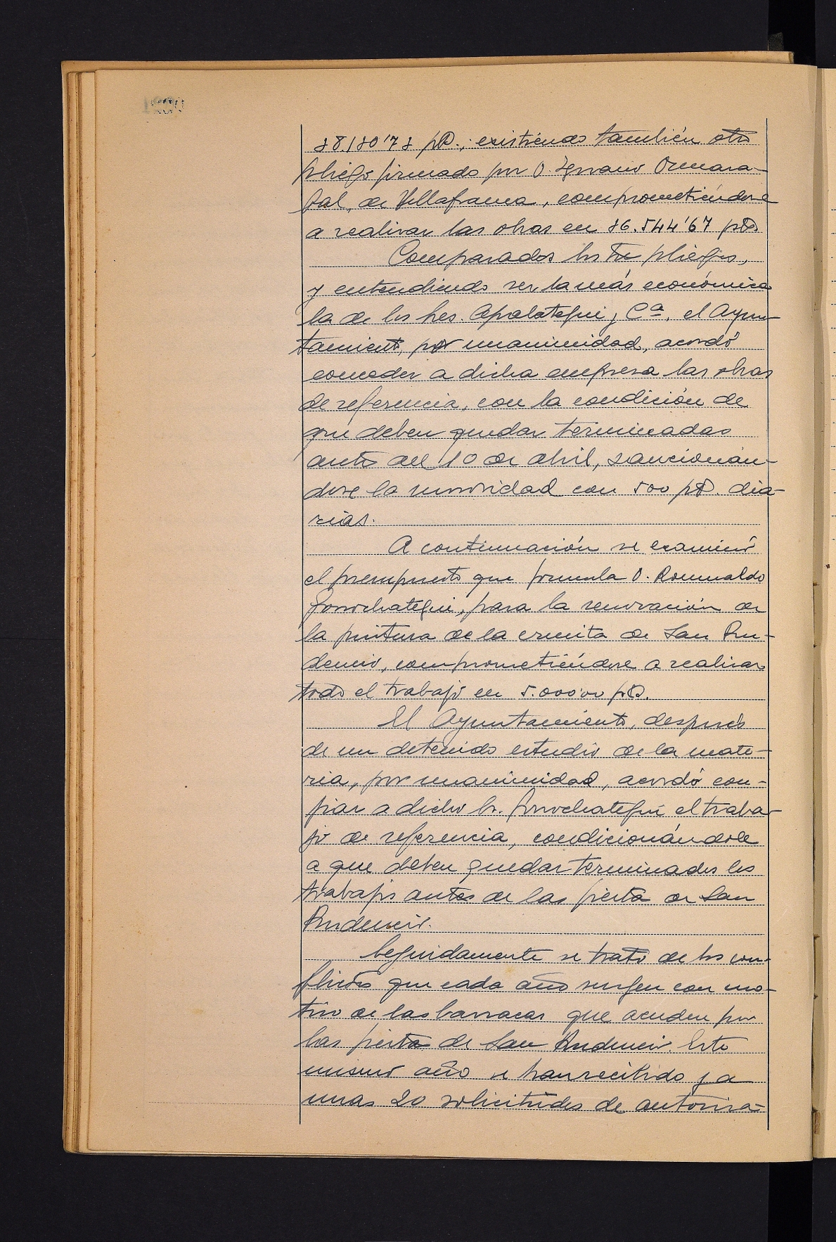 Aldundiaren jakinarazpena, obretarako dirulaguntza ordaintzeari buruz. # Infantadoko dukeari eta Larrañaga anaiei hilerrian esker oneko plakak jartzea adostea, hilerriko obretarako egindako ekarpenak eskertzeko. # Udaletxeko eraikinean obrak egiteko aurkeztutako proposamenak berrikustea, Apalategi anaiei lana emanez. # San Prudentzio ermitako pintura-lana Romualdo Gorrochateguiri ematea. # Jaietarako barrakak non jarri aztertzea.