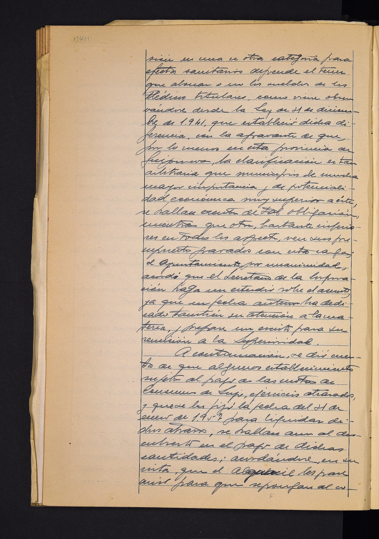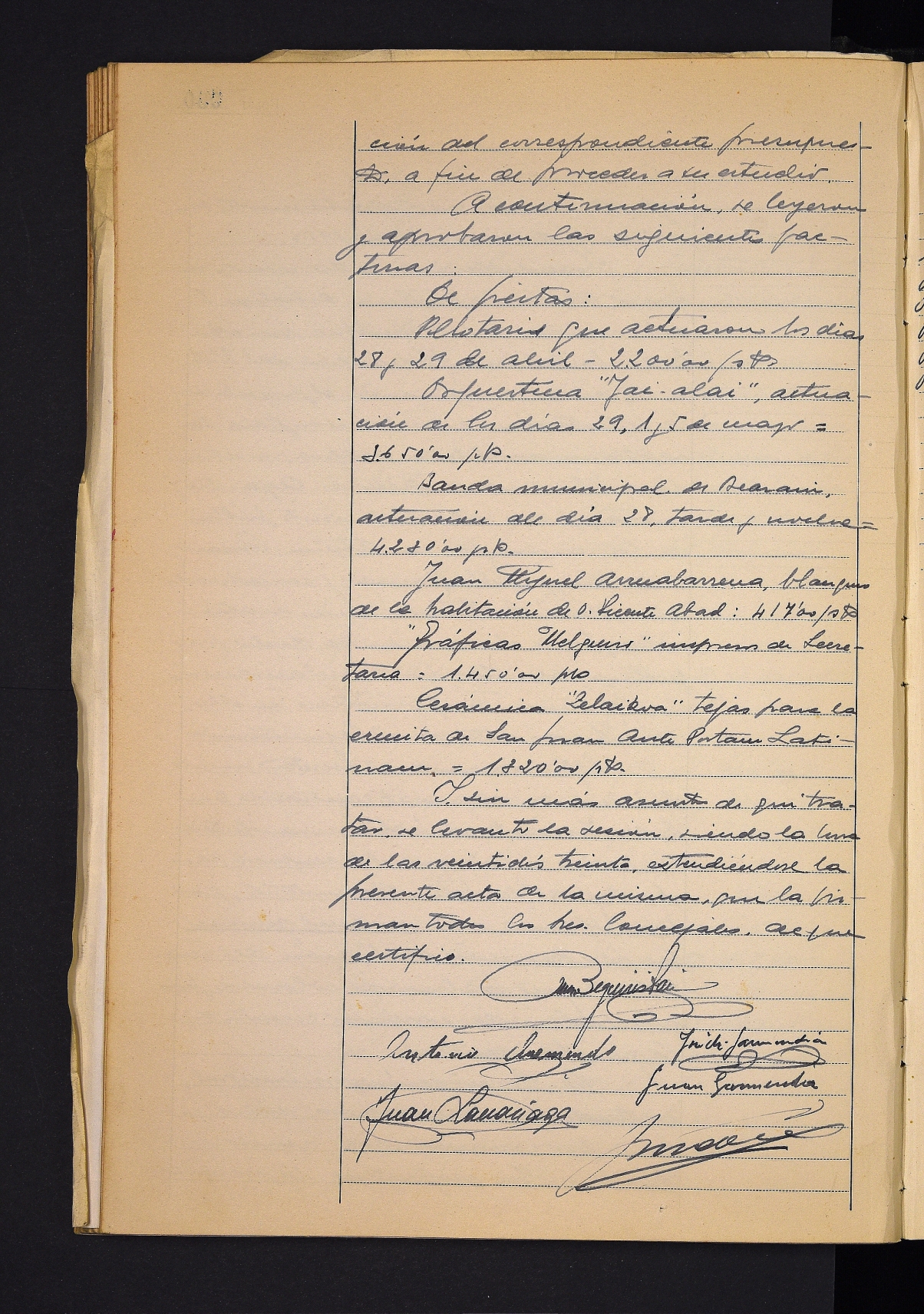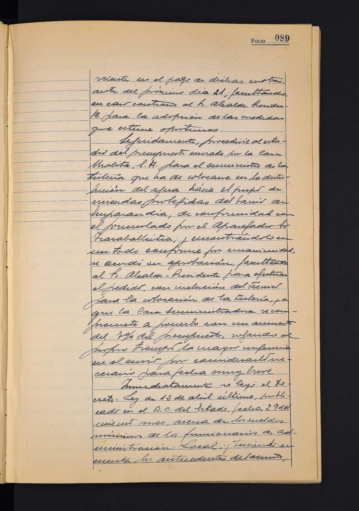 Probintziako Osasun Buruzagitzaren komunikazioa, plazak sailkatzeko proiektuari buruzko datuak eskatzen dituena. # Luxuzko kontsumoaren gaineko zergaren hainbat kuotaren ordainketaren atzerapenaren berrikuspena. # Babestutako etxebizitzen multzora hodia jartzeko aurrekontua aztertzea. # Funtzionarioen gutxieneko soldatei buruzko dekretuaren irakurketa. # Funtzionarioen aseguruari buruzko Obra Sindikalaren Zirkularra. # Juan Insausti Insaustik aurkeztutako eskabidea onartzea, hilerrian lurzati bat emateko. # Aldundiak egingo duen ura ekartzeko proiektua iragartzen duen jakinarazpena. # Udaletxeko teilatuko obretarako aurrekontu berriak eskatzea. # Hainbat fakturaren onarpena.