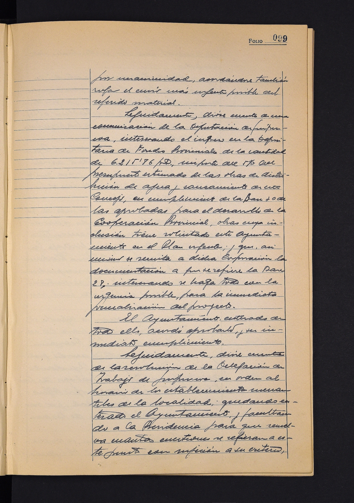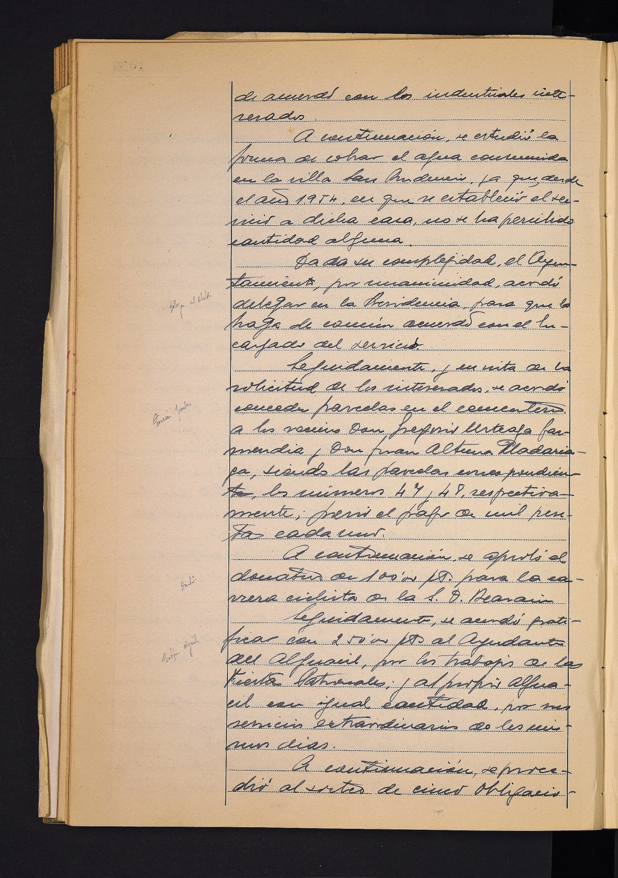Ignacia Bereziarturi baimena ematea Elosegi kaleko 28 zenbakian drogeria ustiatzeko. # Babestutako etxe berrietarako hodientzako aurrekontu berriaren azterketa. # Aldundiaren jakinarazpena, ura banatzeko obretarako ekarpenari buruzkoa. # Lan Ordezkaritzaren ebazpena, denden ordutegiei buruzkoa. # San Prudentzion kontsumitutako uraren kobrantza aztertzea. # Gregorio Urteaga Garmendiari eta Juan Altuna Madariagari hilerriko lursailak ematea. # Beasaingo bizikleta lasterketarako dohaintza onartzea. # Aguazilaren laguntzailearentzako haborokina onartzea. # Obligazioen zozketa egitea. # Ekitaldi honetako zergak ordaintzeko deia. # Juan Larrañaga zinegotzia Lehen Hezkuntzako Toki Batzarrerako ordezkari izendatzea. # Hainbat hilabetetako gastuen eta sarreren irakurketa. # Hainbat faktura onartzea.