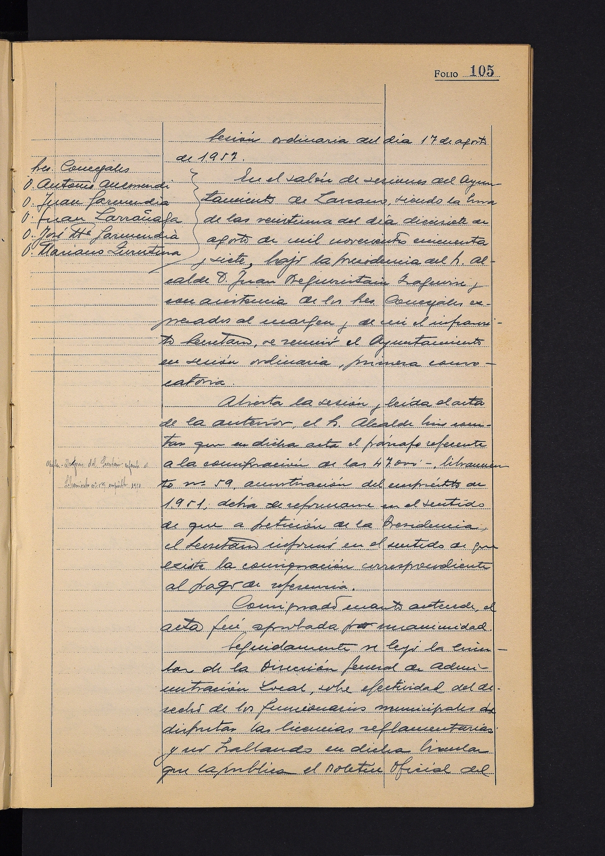Aurreko aktako igorpenei buruzko datuetan aldaketak egitea. # Funtzionarioek arauzko lizentziak hartzeko dituzten eskubideei buruzko zirkularraren irakurketa. # Maria Aranzazu Garate irakaslearen gelan hobekuntzak egiteko beharrezkoak diren materialen eta jornalen berrikuspena. # Estatuko Abokatutzaren zirkularra, udalerriko finken batez besteko errenta-prezioei buruzkoa. # Hiltegiaren administratzailearen oharra, erabiltzen diren poleen inguruan. # Ur-hartuneetan garbiketa eta konpontze lanak egitea. # Obretarako dirulaguntzen gaia jorratzea. # Hainbat faktura onartzea. # Hiri-kontribuzioan alta eta bajen zerrendak.