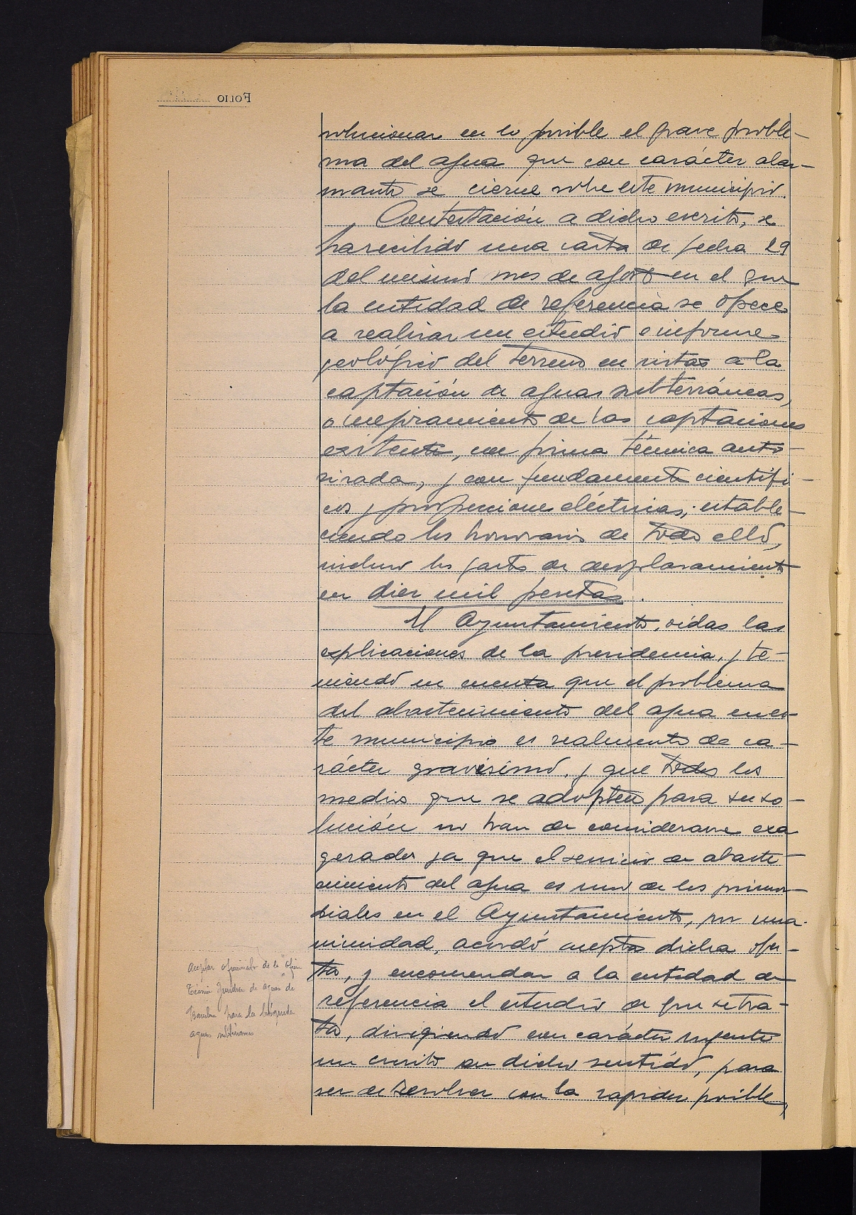 Oficina Térmico Jurídica de Aguas enpresaren eskaintzaren azterketa, udalerriko ur-horniduraren arazoa konpontzeko. # Lurpeko uren azterketa egiteko jasotako eskaintza onartzea.