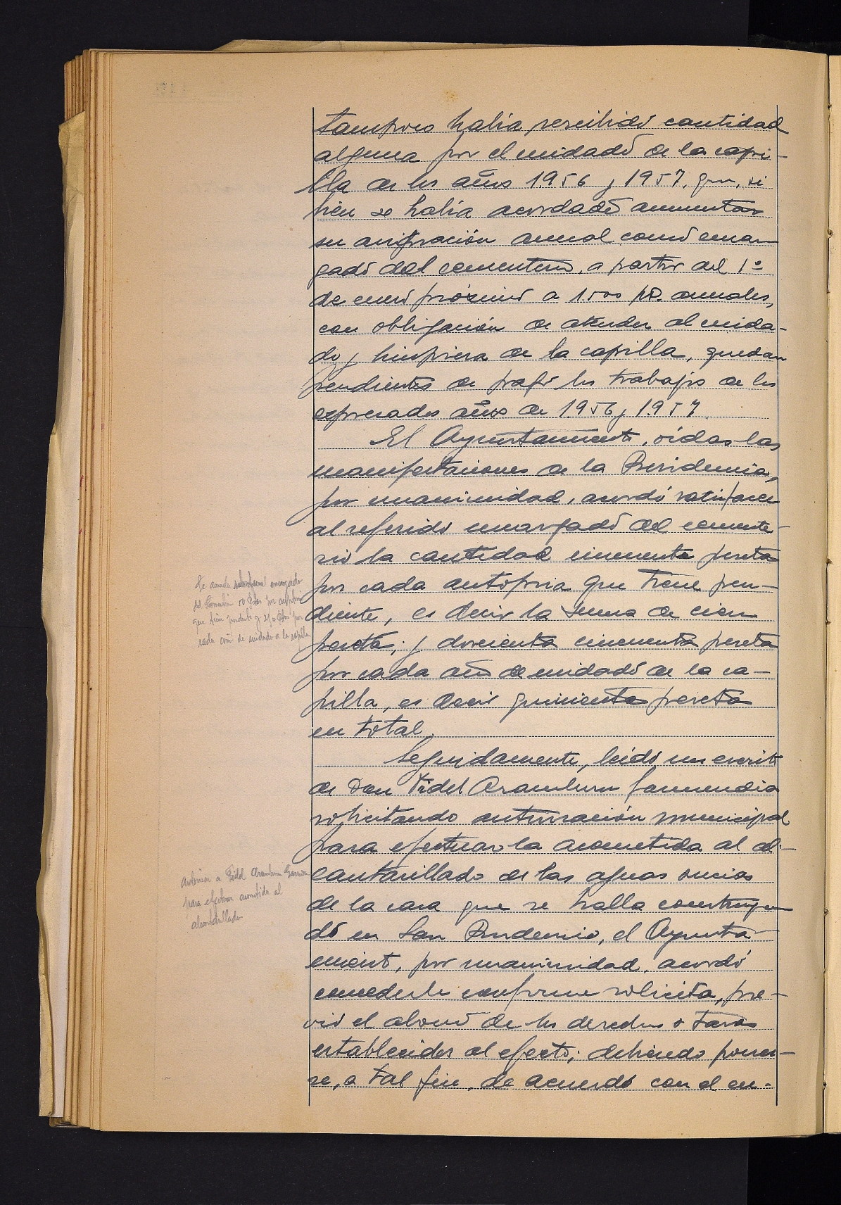 Urbaraundian egindako argiztapen lanengatik ordaindu behar diren soldatak zehaztea. # Ehorzleari soldata handitzea egindako lanengatik. # Fidel Aramburu Garmendiari baimena ematea San Prudentzion eraikitzen ari den etxean ur-hargunea egiteko. # Arantzazuko santutegirako dohaintza onartzea. # 1958ko ekitaldirako ohiko aurrekontuaren aurreproiektuaren azterlana. # Olaberriako Udalari jakinaraztea partekatzen duten idazkariaren soldata ordaintzeko jarri beharreko zatia. # Plantillako funtzionarioen soldatak finkatzea. # Hainbat fakturaren onarpena.