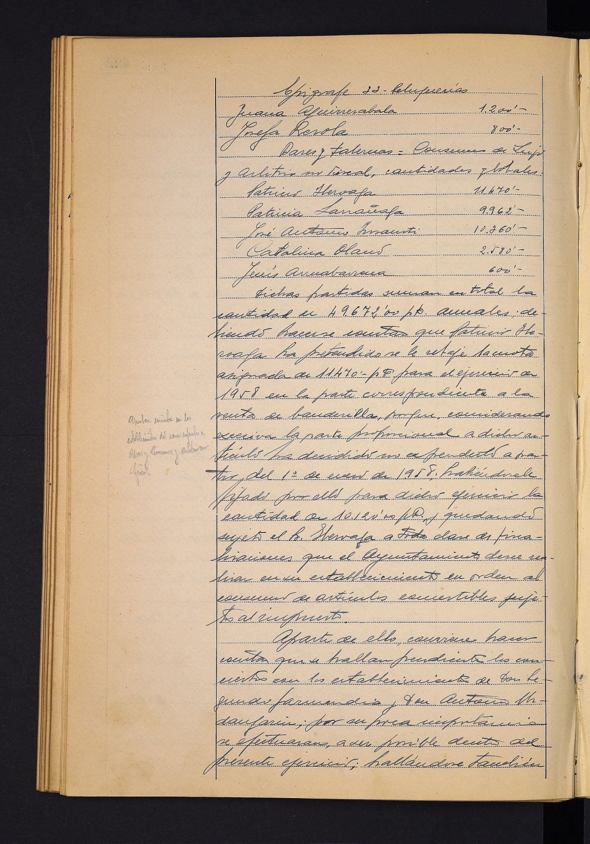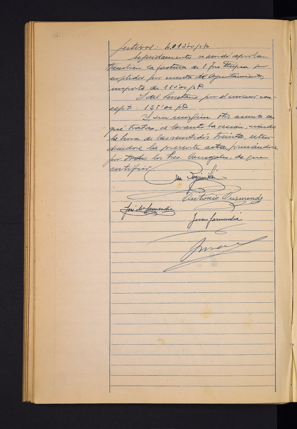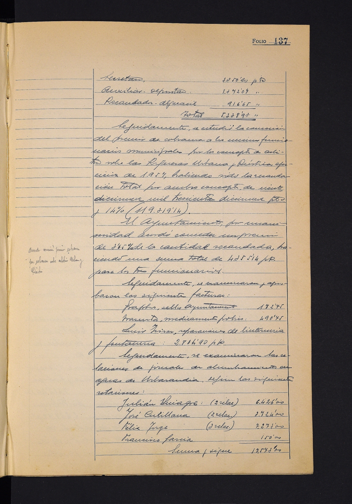 Industrialariei zergen kuotak ezartzea. # Funtzionarioei ordainketak eta haborokinak onartzea. # Hainbat fakturaren onarpena # Uraren ustiapen-tasak zehaztea.