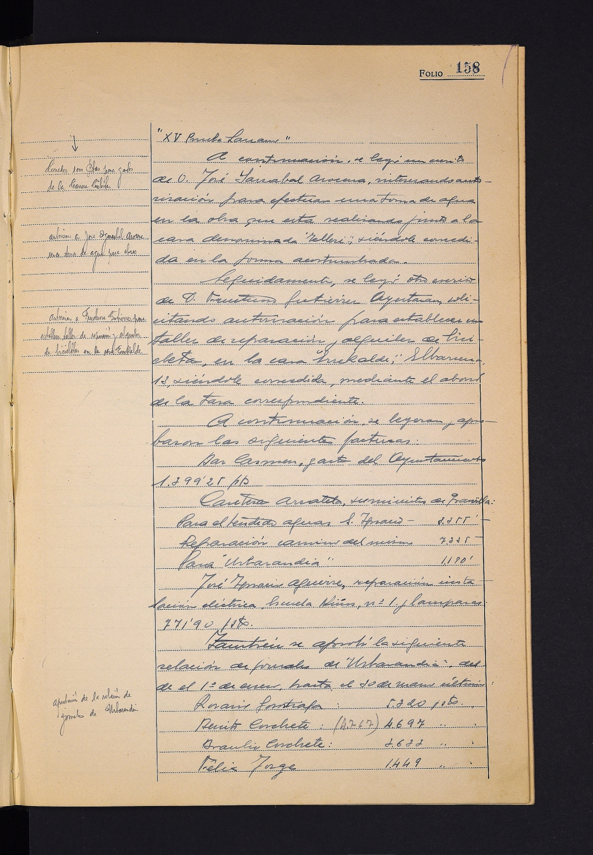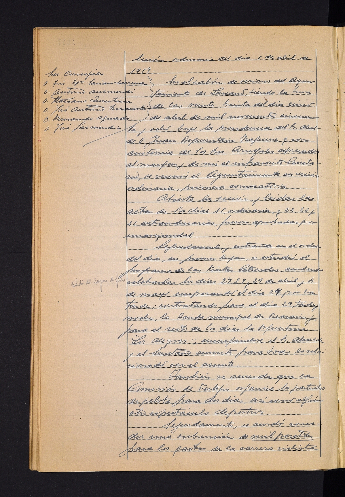 Herriko jaien egitaraua onartzea. # Txirrindularitza-lasterketarako dirulaguntza ematea. # Jose Saizabal Arocenari Telleri etxearen ondoan ur-hartunea egiteko baimena ematea. # Fructuoso Gutierrez Ayestarani Elbarreneko Errekalde etxean bizikletak konpondu eta alokatzeko lantegi bat irekitzeko baimena ematea. # Hainbat faktura onartzea.