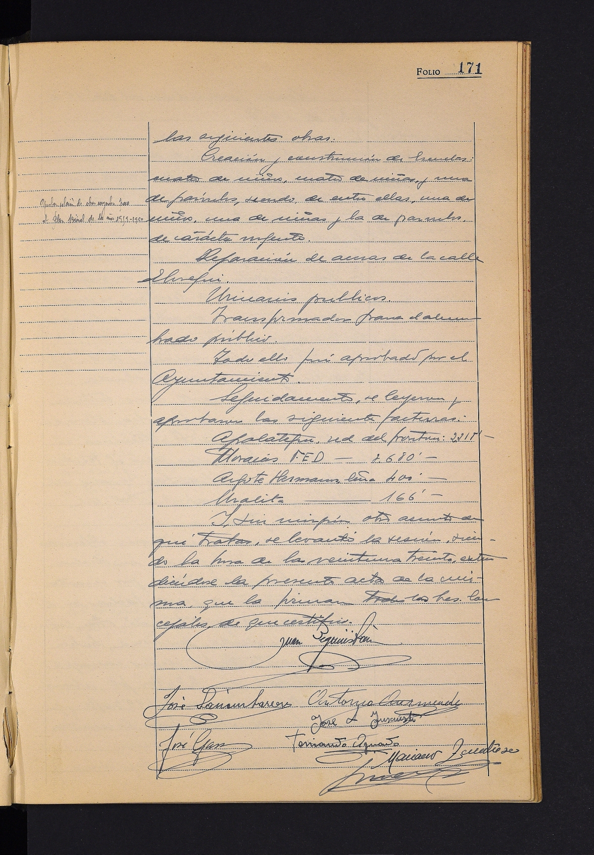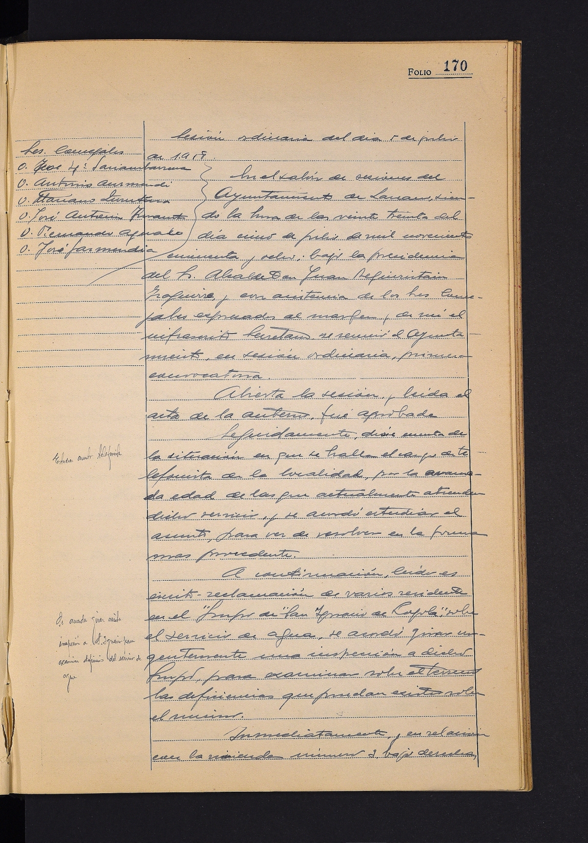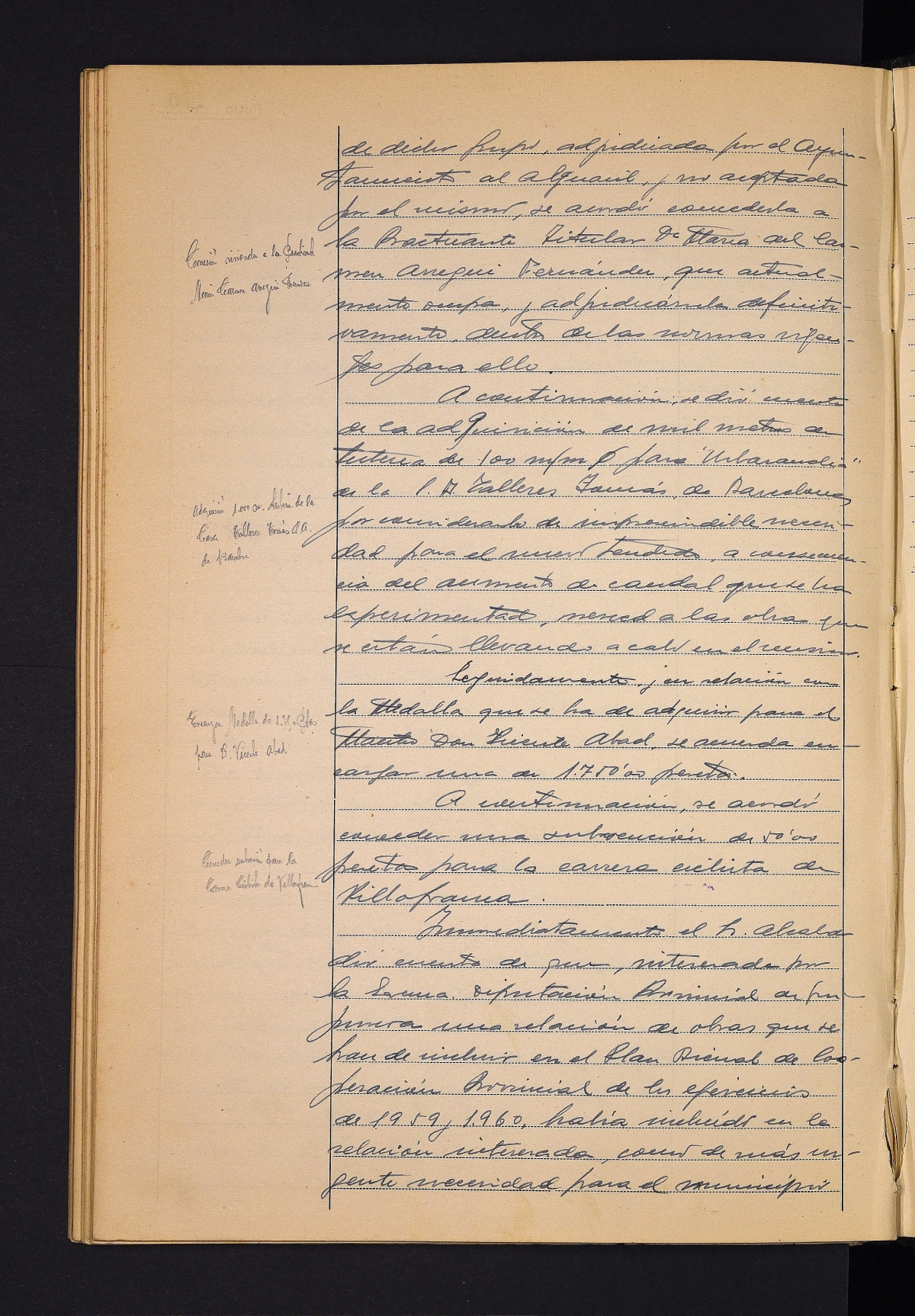 Telefonista karguak berrikustea, gaur egungoak adinekoak direlako. # San Inazioko etxeetako ur zerbitzuko akatsak berrikustea. # San Inazioko etxebizitza Maria del Carmen Arregui Fernandez praktikanteari ematea. # Hodiak erostea onartzea. # Vicente Abad maisuarentzat domina erostea. # Ordiziako bizikleta lasterketarako dirulaguntza ematea. # Udalerrian egin beharreko obren zerrenda prestatzea Foru Aldundira bidaltzeko. # Hainbat faktura onartzea.