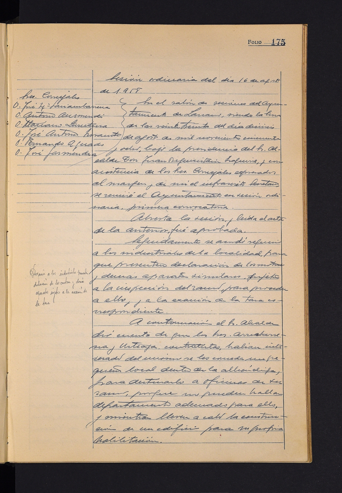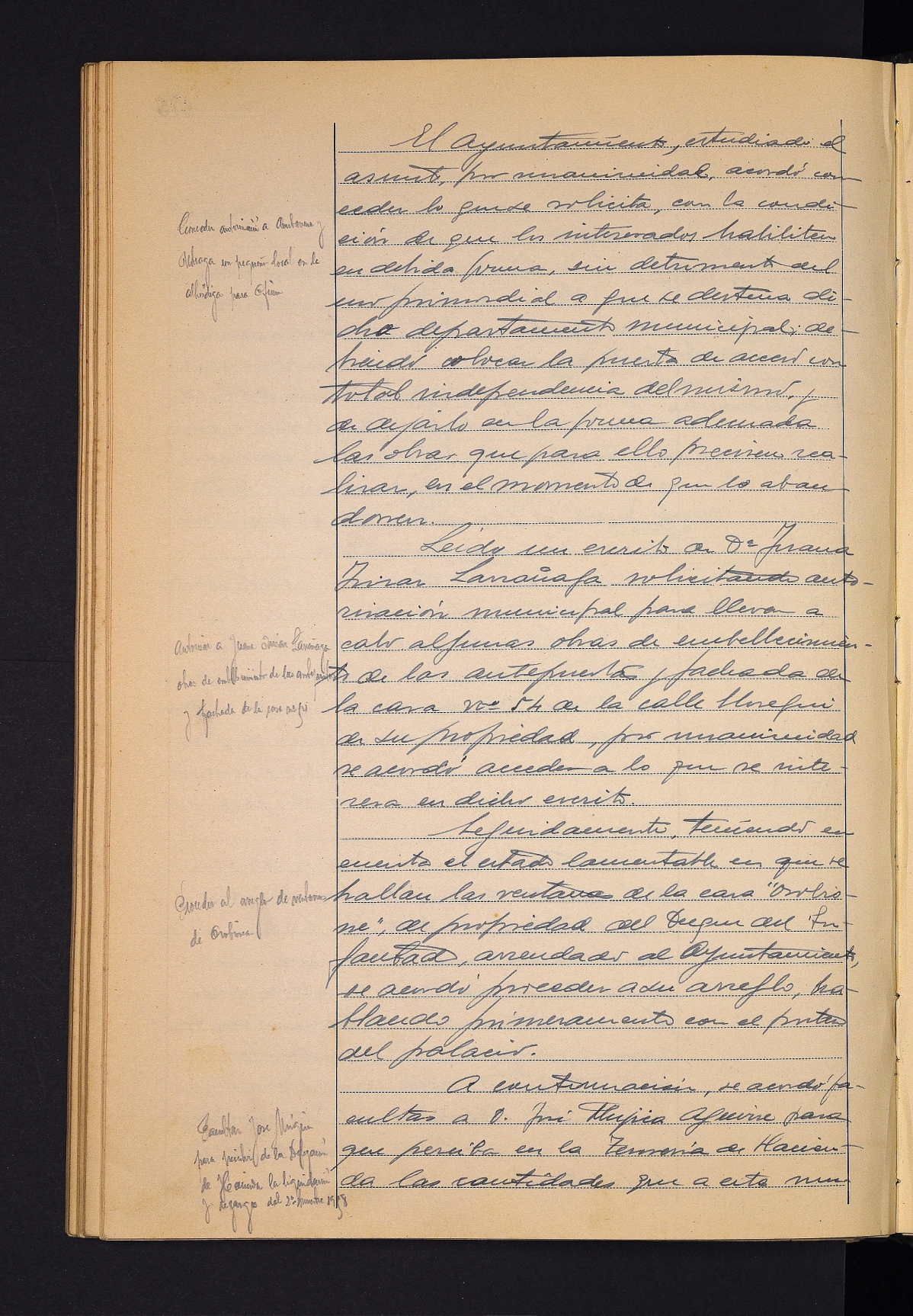 Industrialariei motorren eta gainerako gailuen aitorpena aurkezteko eskaera egitea dagokion tasaren ordainarazpena egiteko. # Arruabarrena eta Urteagari Alhondigan bulegoetarako lokal txiki bat alokatzeko baimena ematea. # Juana Irizar Larrañagaren eskaera onartzea Elosegi kaleko 54 zenbakiko bere etxean obrak egiteko. # Orobioene etxeko leihoak konpontzea. # Jose Mugica Aguirreri ahalmena ematea errekarguen kitapenean udalerriari dagozkion zenbatekoak Ogasuneko Diruzaintzan jasotzeko. # Uztaileko gastuak eta diru-sarrerak onartzea. # Hainbat fakturaren onarpena.