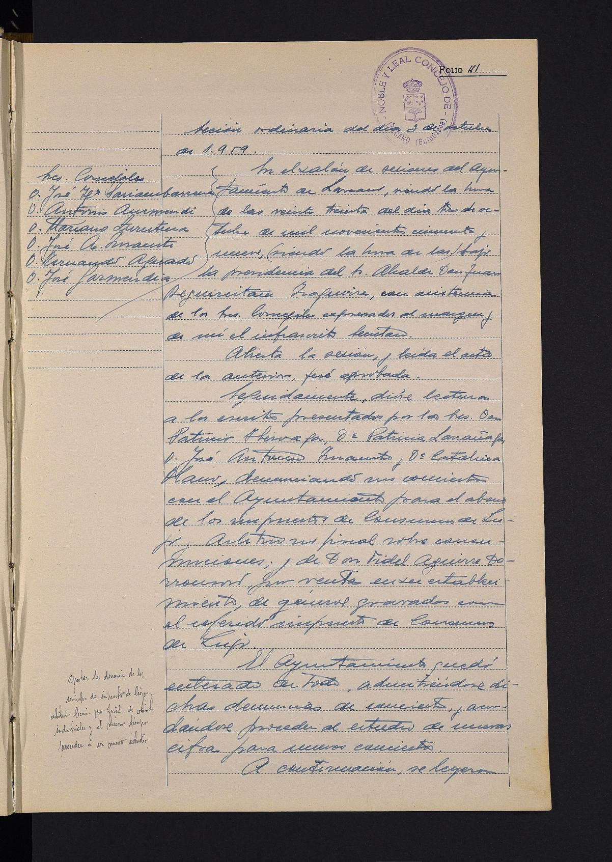 Luxuzko kontsumo-zerga kobratzeagatik zenbait bizilagunek aurkeztutako idazkiaren irakurketa. # Gobernadore Zibilaren zirkulazio arauei buruzko zirkularra. # Zenbait faktura onartzea.