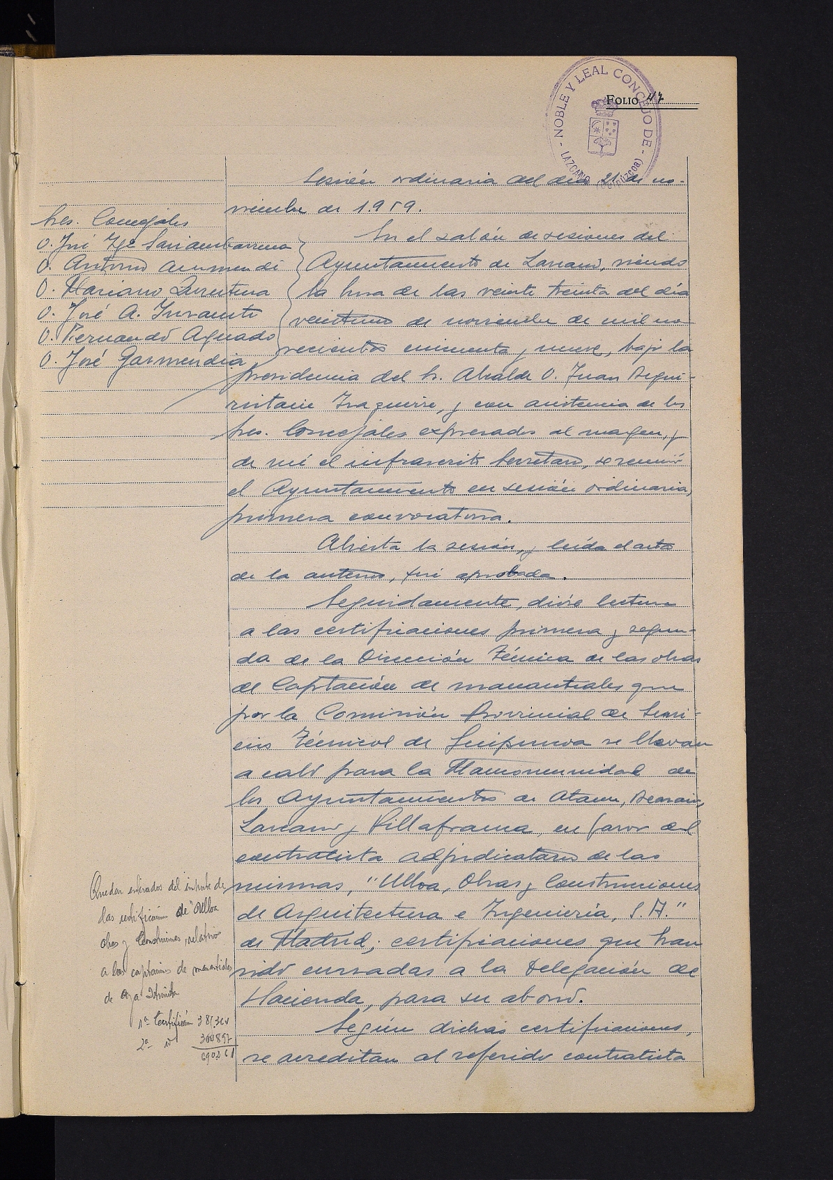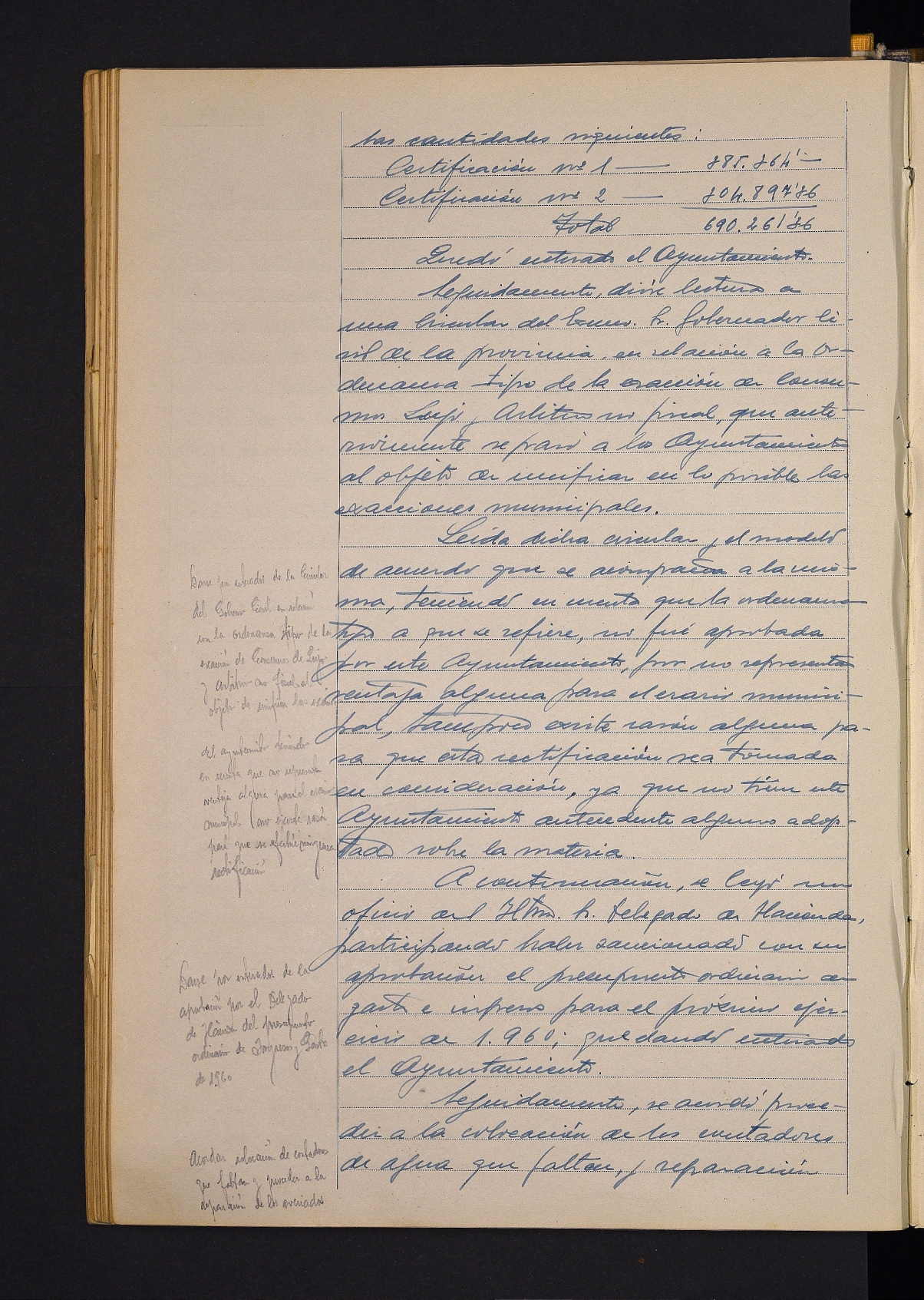 Ataun, Lazkao, Beasain eta Ordiziako ur mankomunitateko obren ziurtagiriak. # Gobernadore Zibilaren zirkularra, luxuzko kontsumo-zerga ordainarazteko ordenantzari buruzkoa. # 1960ko ekitaldiko ohiko aurrekontuaren Ogasun Ordezkaritzaren onarpena. # Falta diren ur-kontagailuak jartzea eta matxuratutakoak berritzea. # Hainbat faktura onartzea. # Urriko gastuak eta diru-sarrerak onartzea.