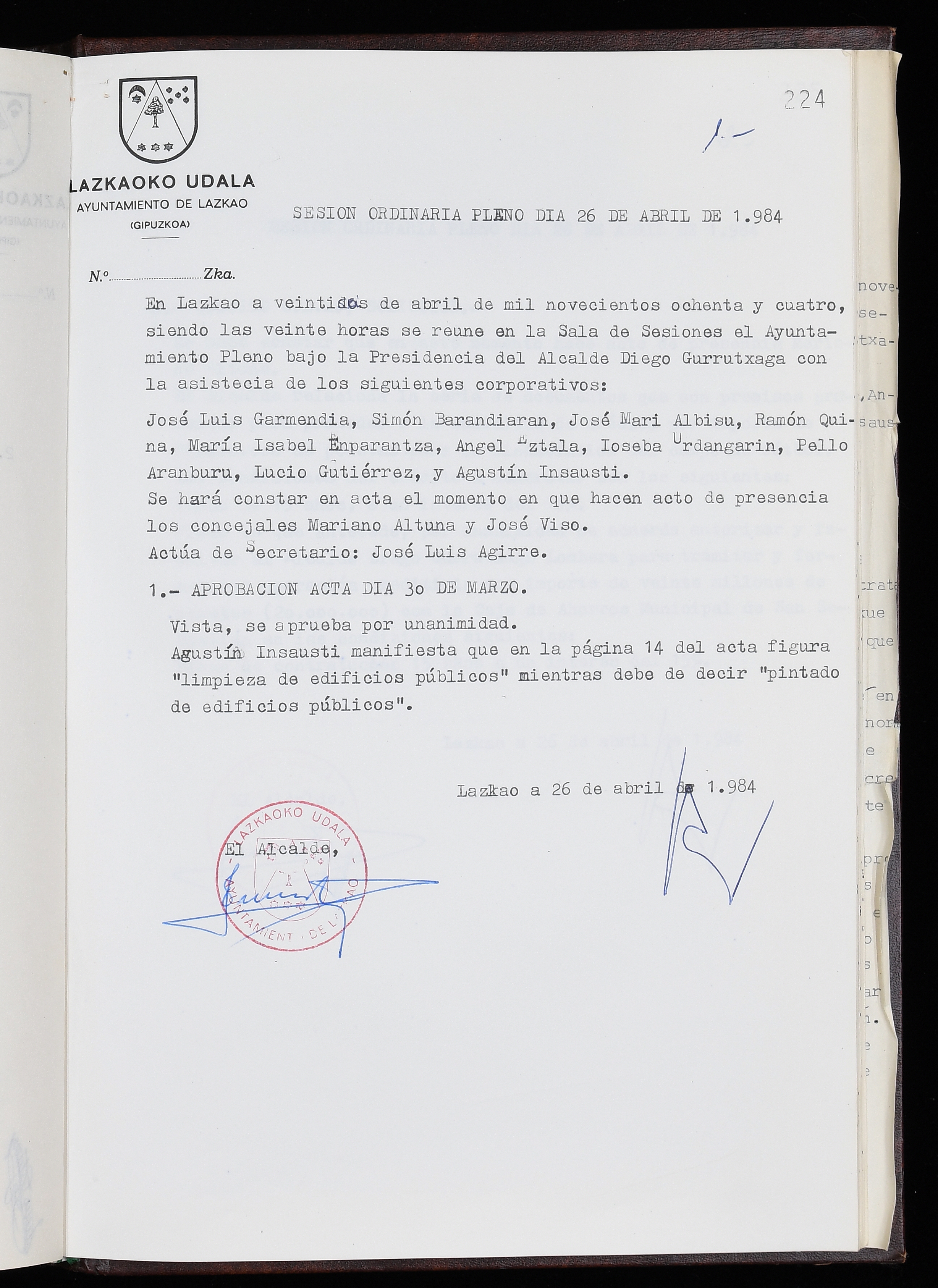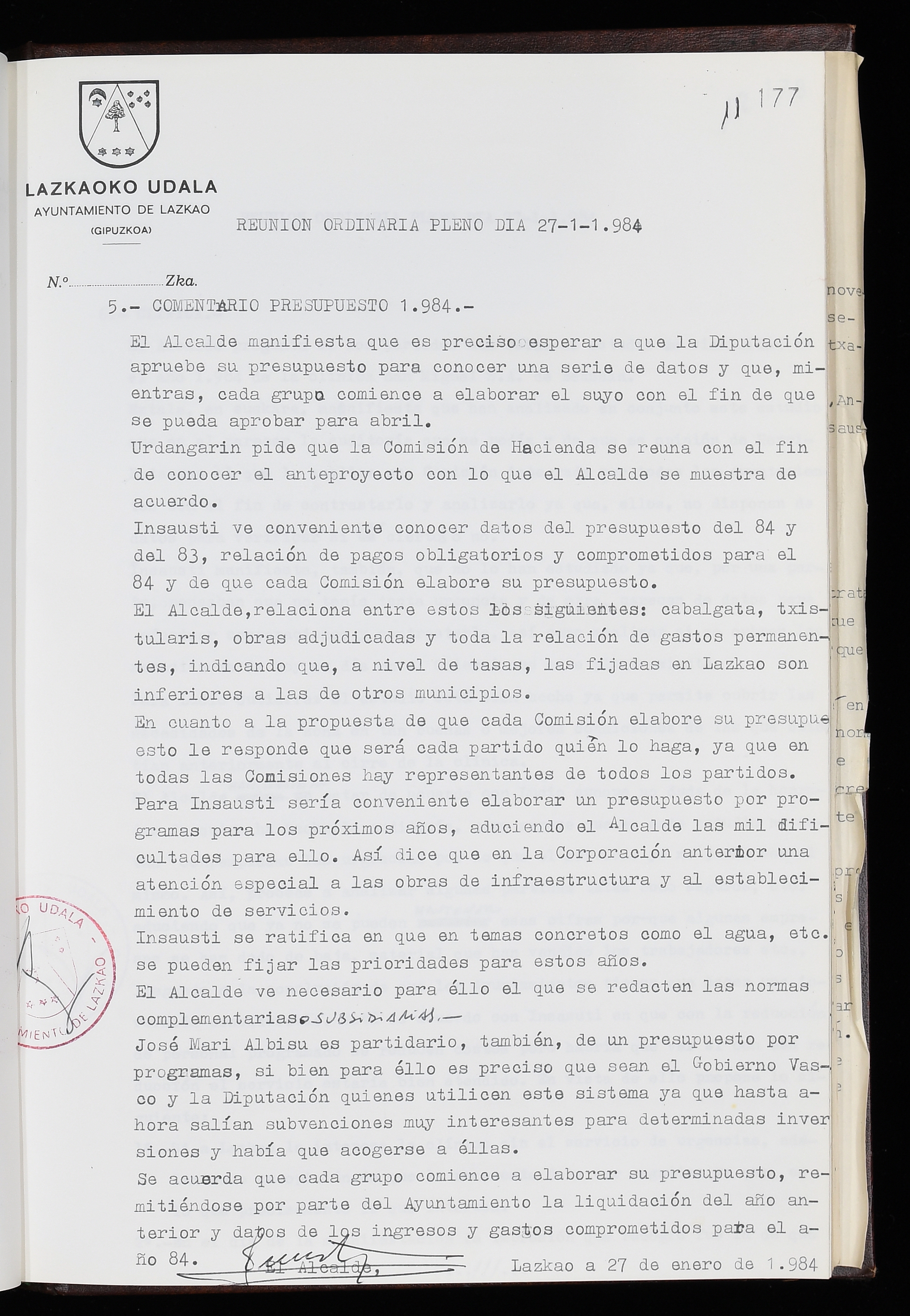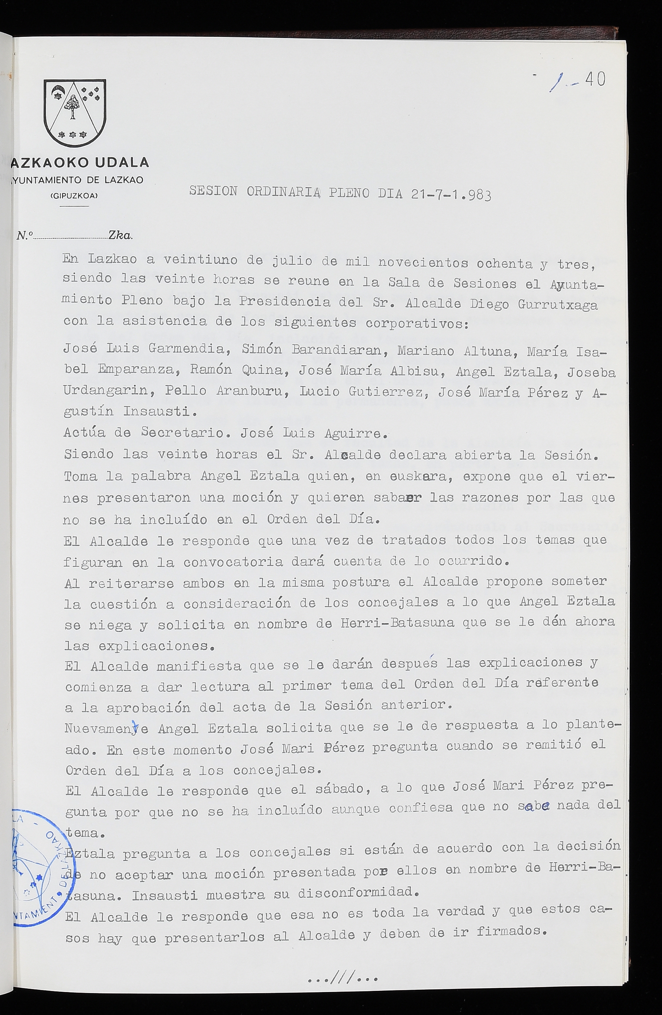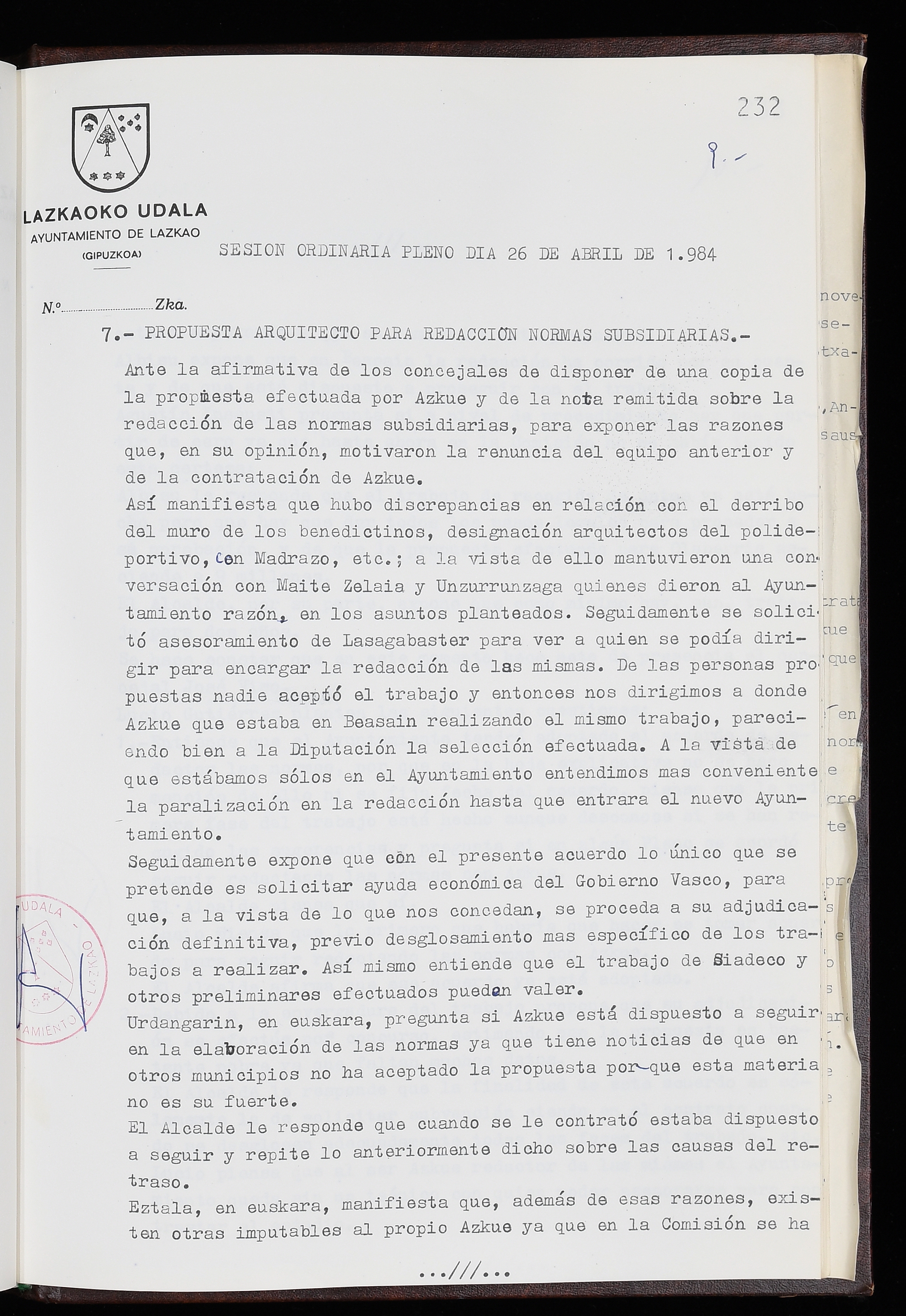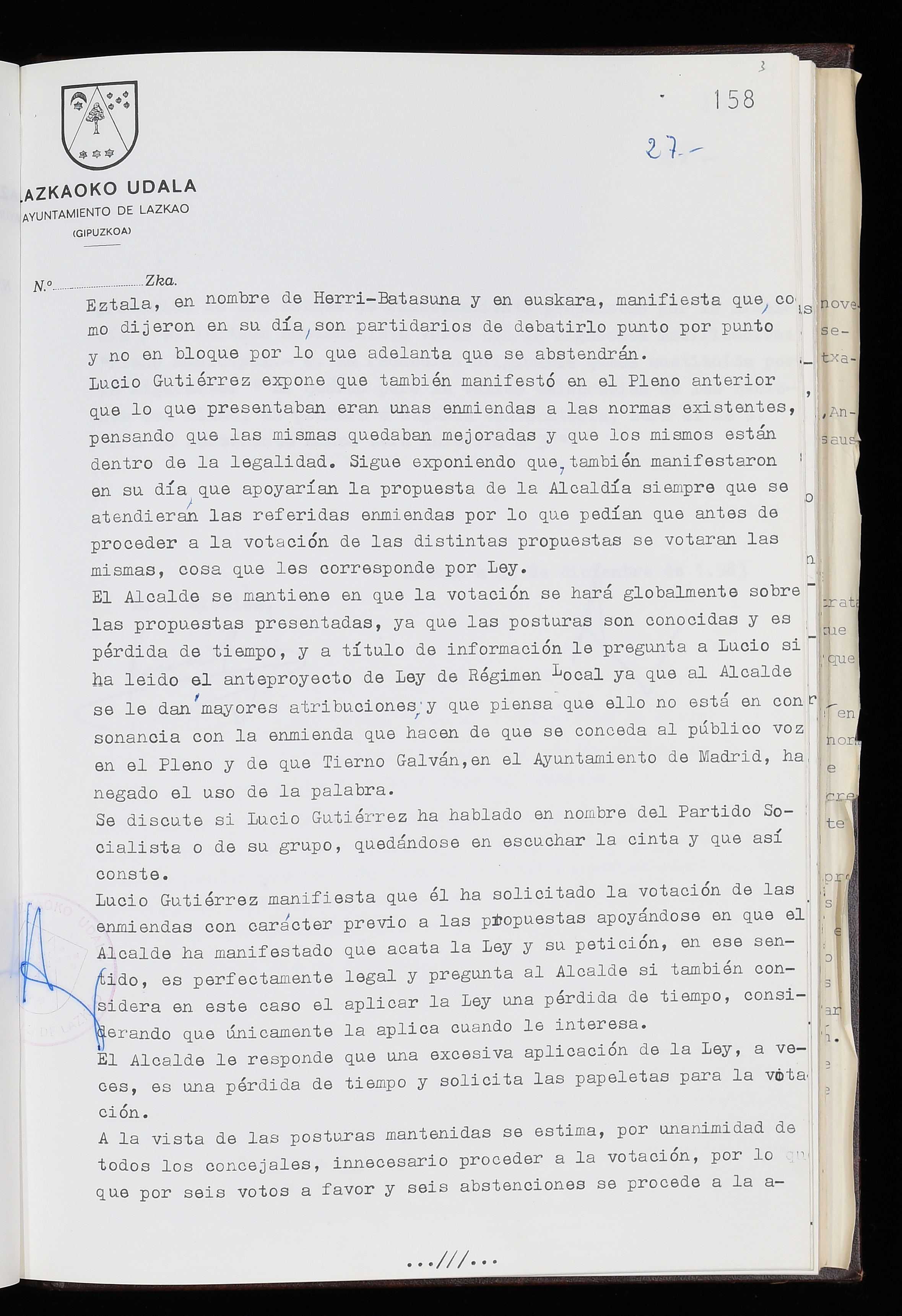 Log in to post commentsEdukiakSailkapenaFuntsaLazkaoko Udal ArtxiboaAtalakUdal AktakSailkapena1.1.4. Osoko Bilkuraren akta liburuakSailkapen berriaOsoko Bilkurako akta liburuakMultimediaIrudiakIdentifikazioaSignaturaakta liburua I-035Hasiera1983-05-23Amaiera1984-05-30AutoritateakTokiaLazkaoLog in to post commentsAkta eratu