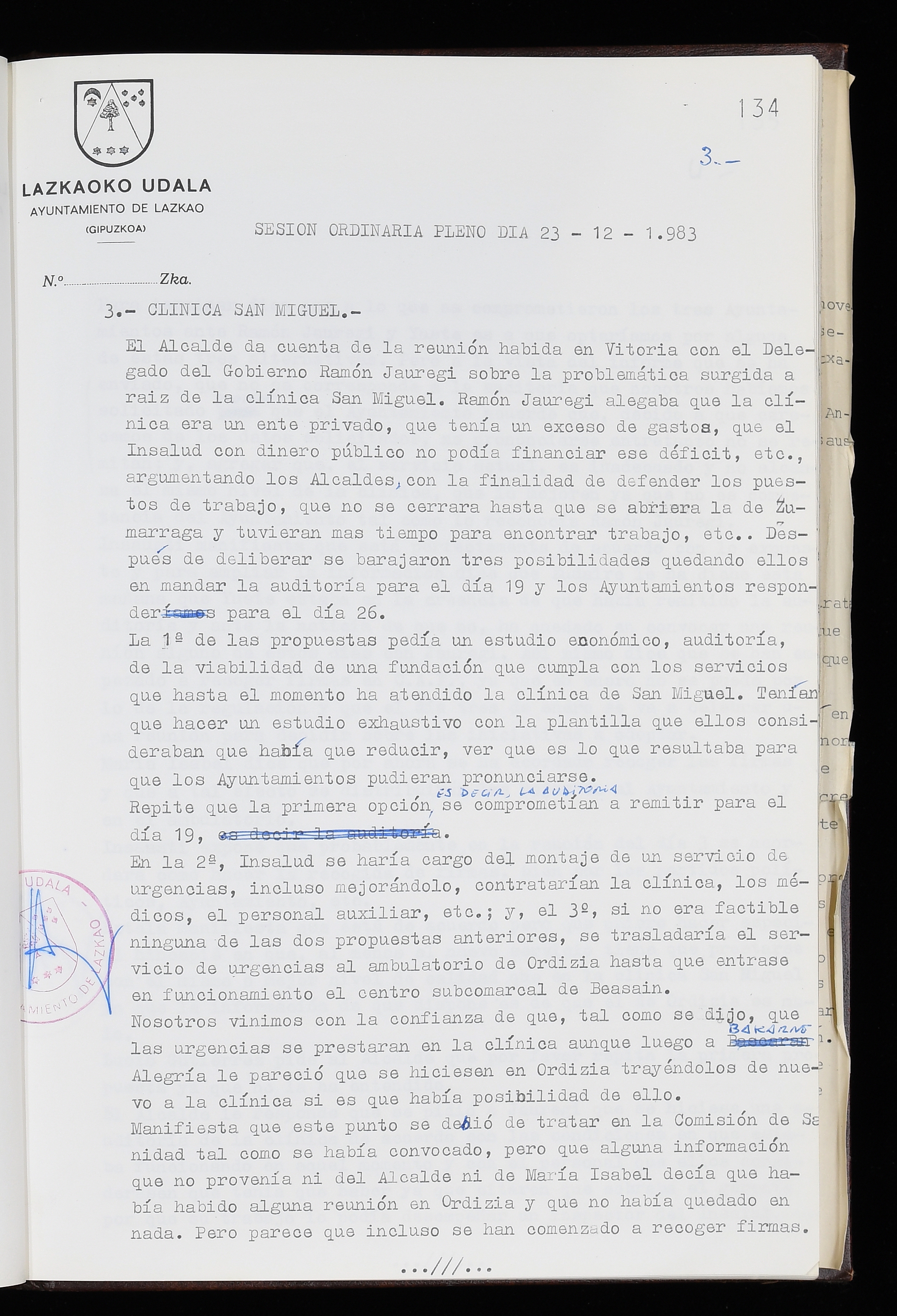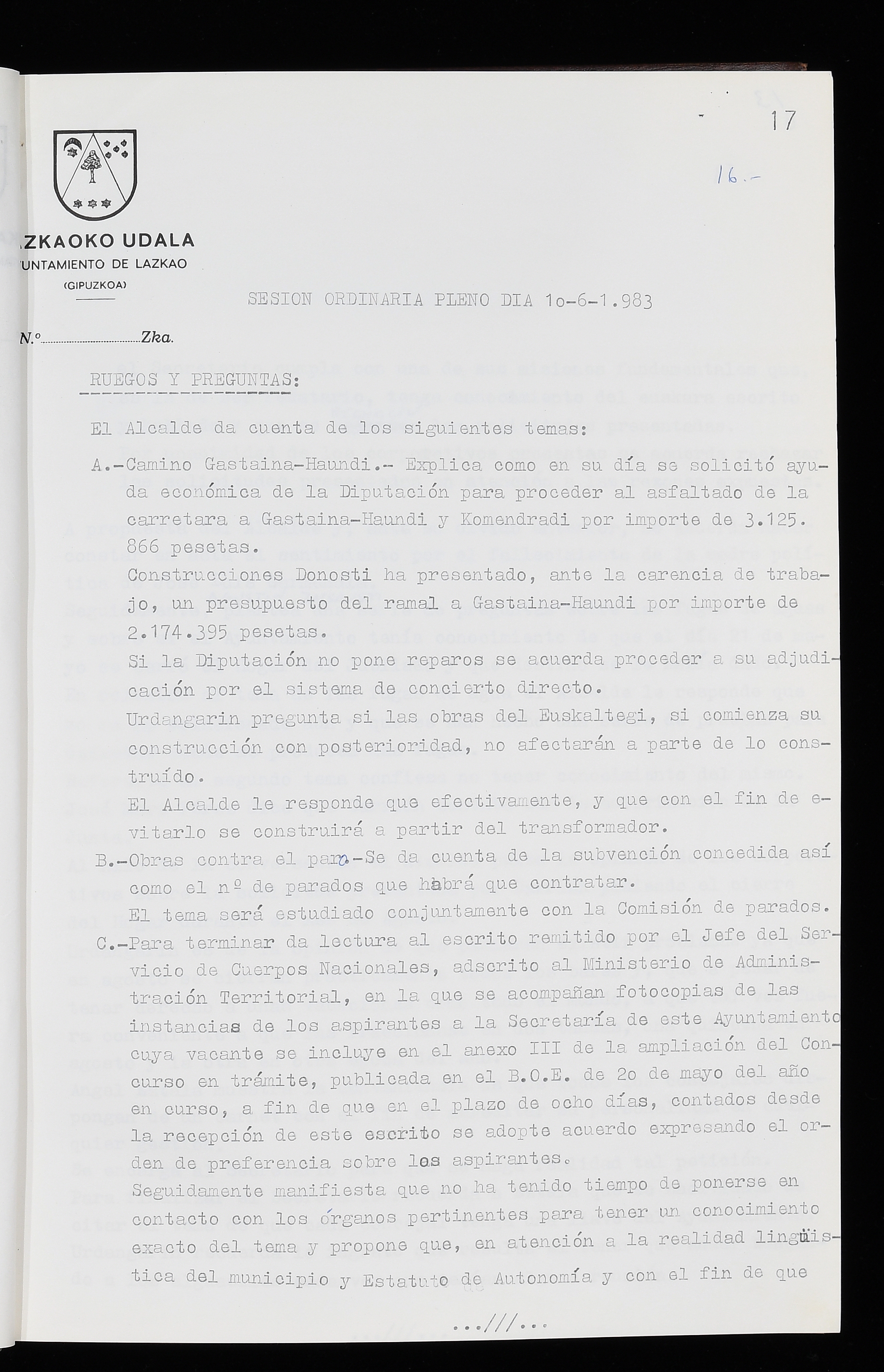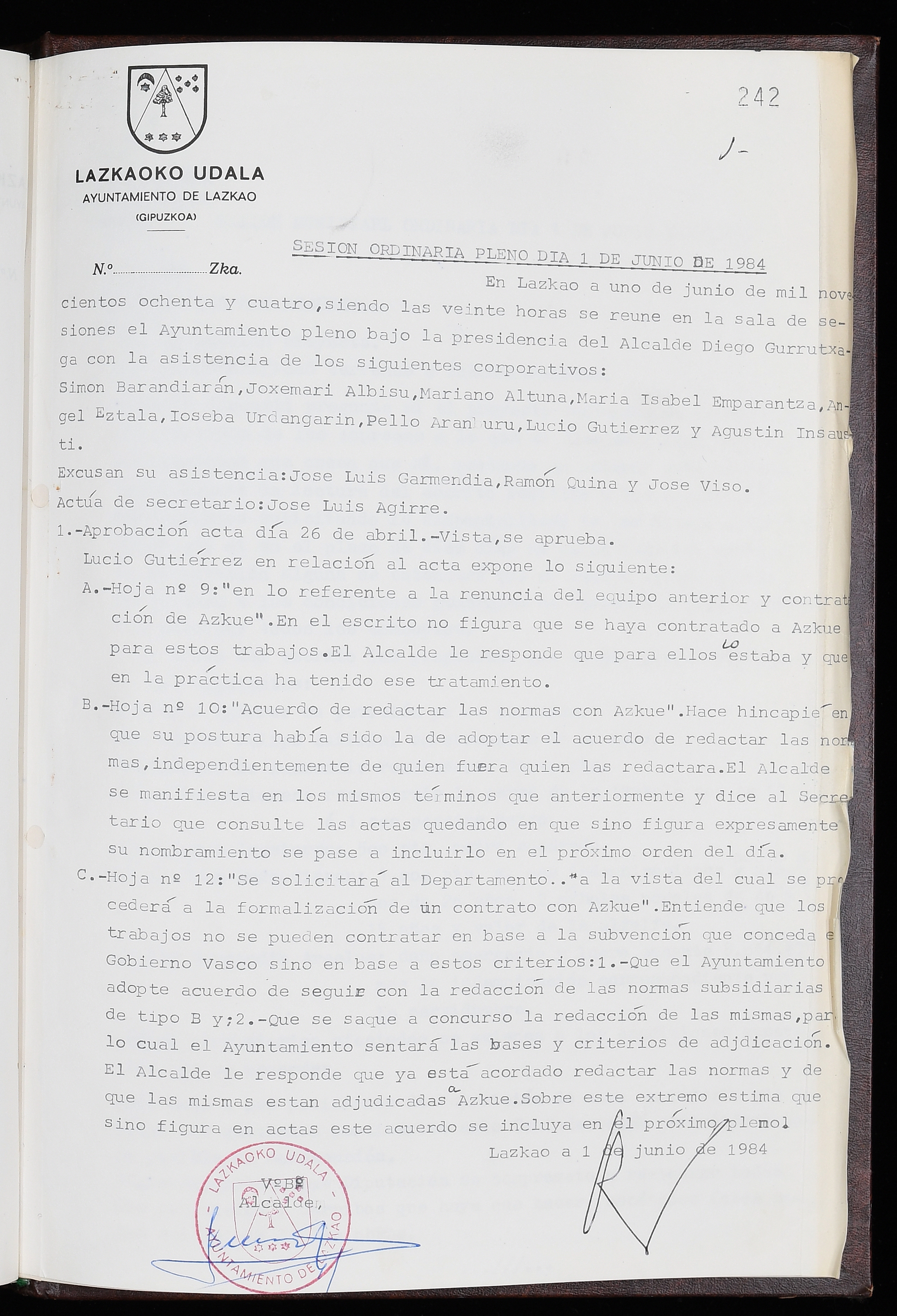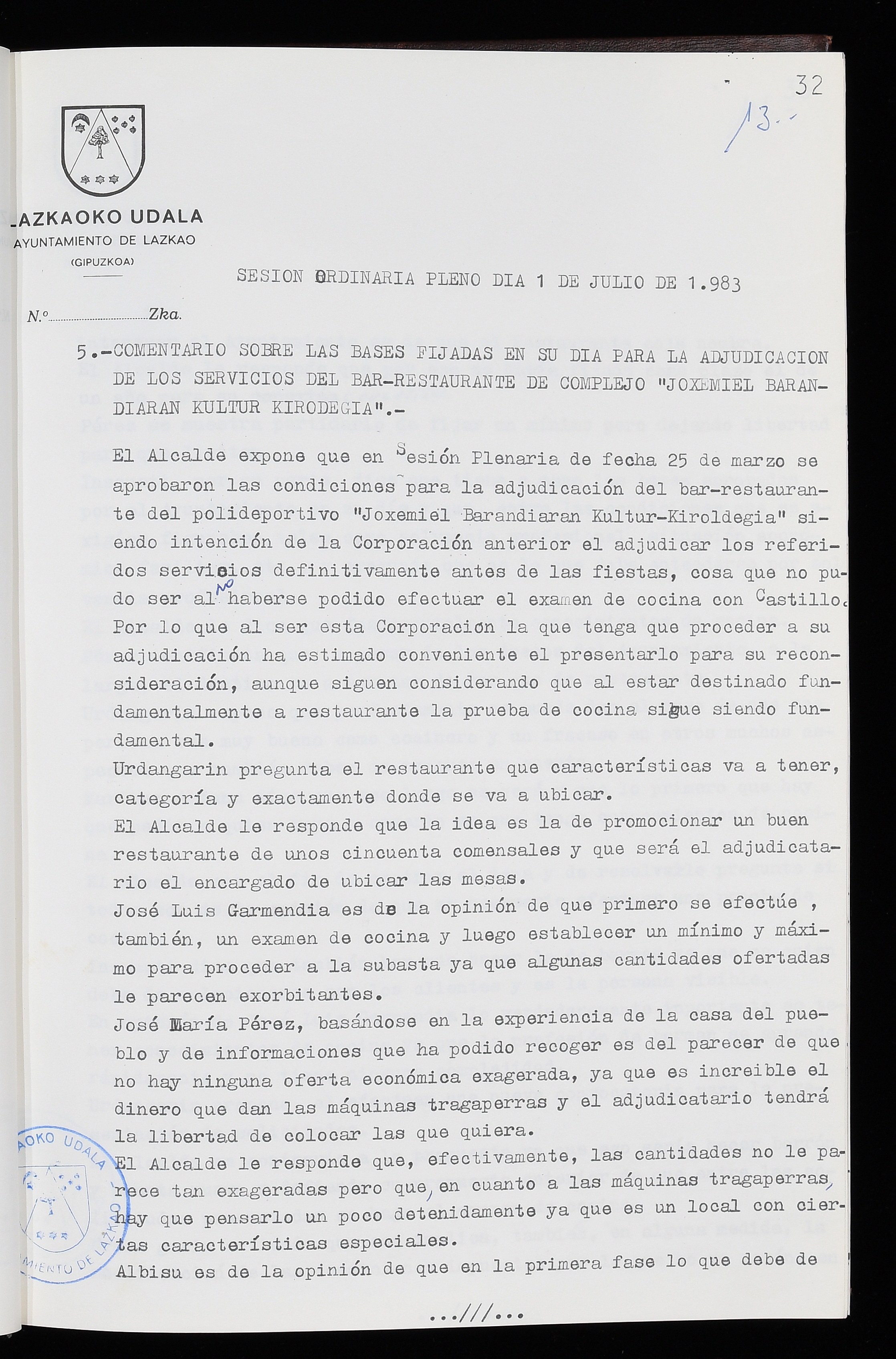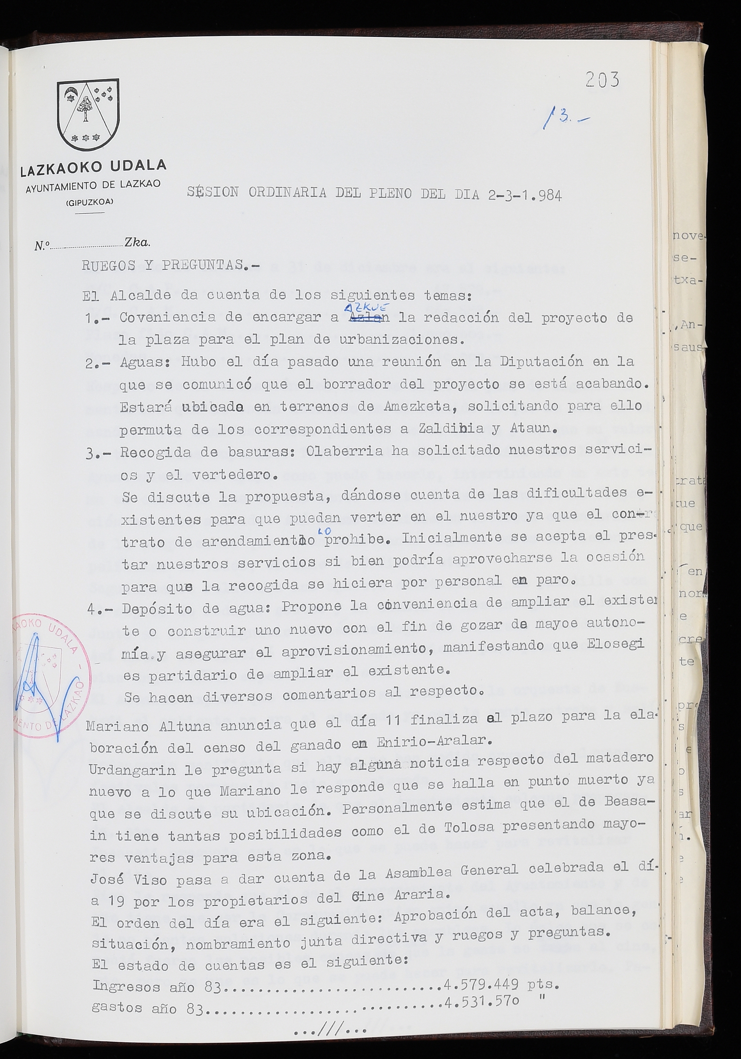 Log in to post commentsEdukiakSailkapenaFuntsaLazkaoko Udal ArtxiboaAtalakUdal AktakSailkapena1.1.4. Osoko Bilkuraren akta liburuakSailkapen berriaOsoko Bilkurako akta liburuakMultimediaIrudiakIdentifikazioaSignaturaakta liburua I-035Hasiera1983-05-23Amaiera1984-05-30AutoritateakTokiaLazkaoLog in to post commentsAkta eratu