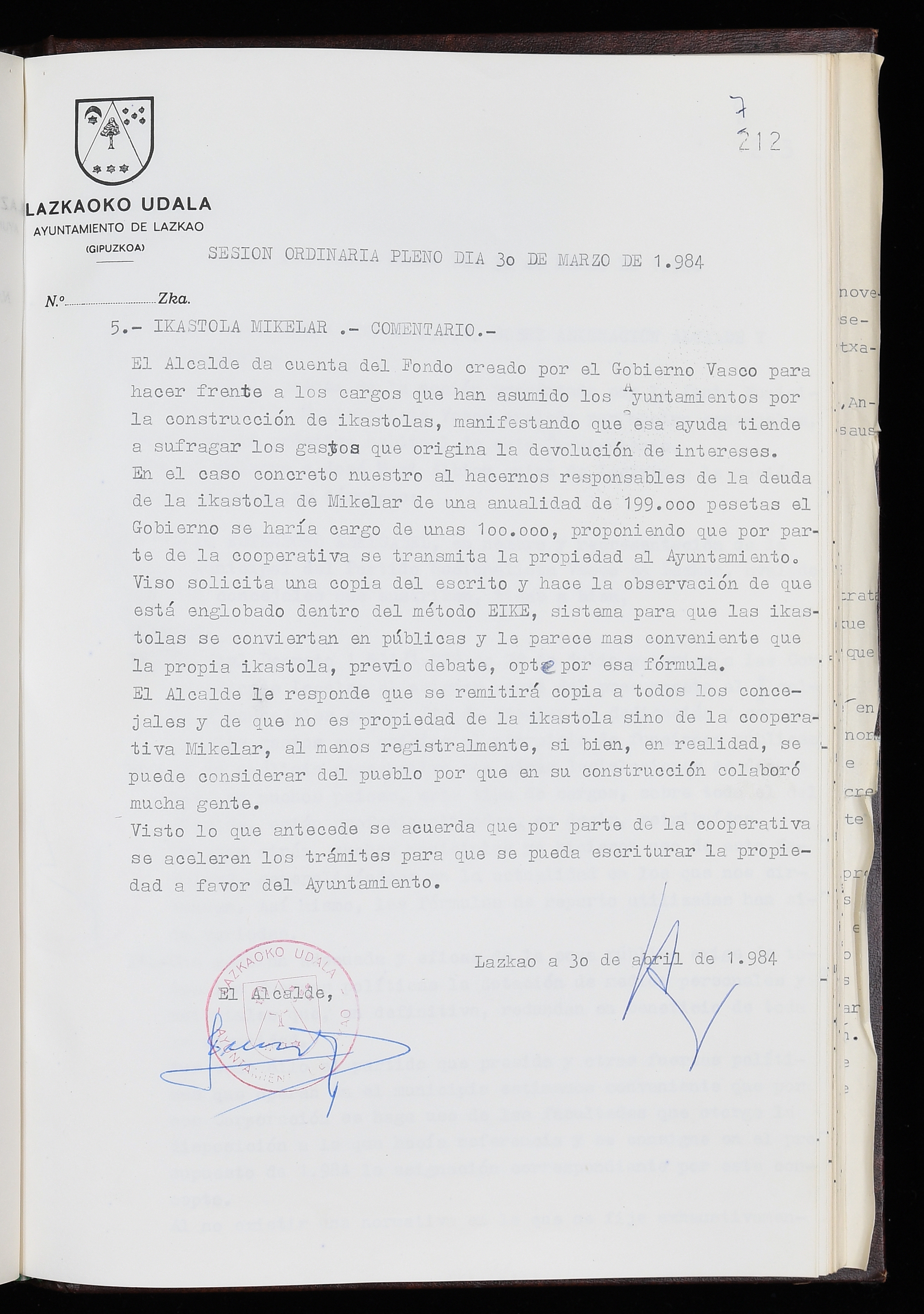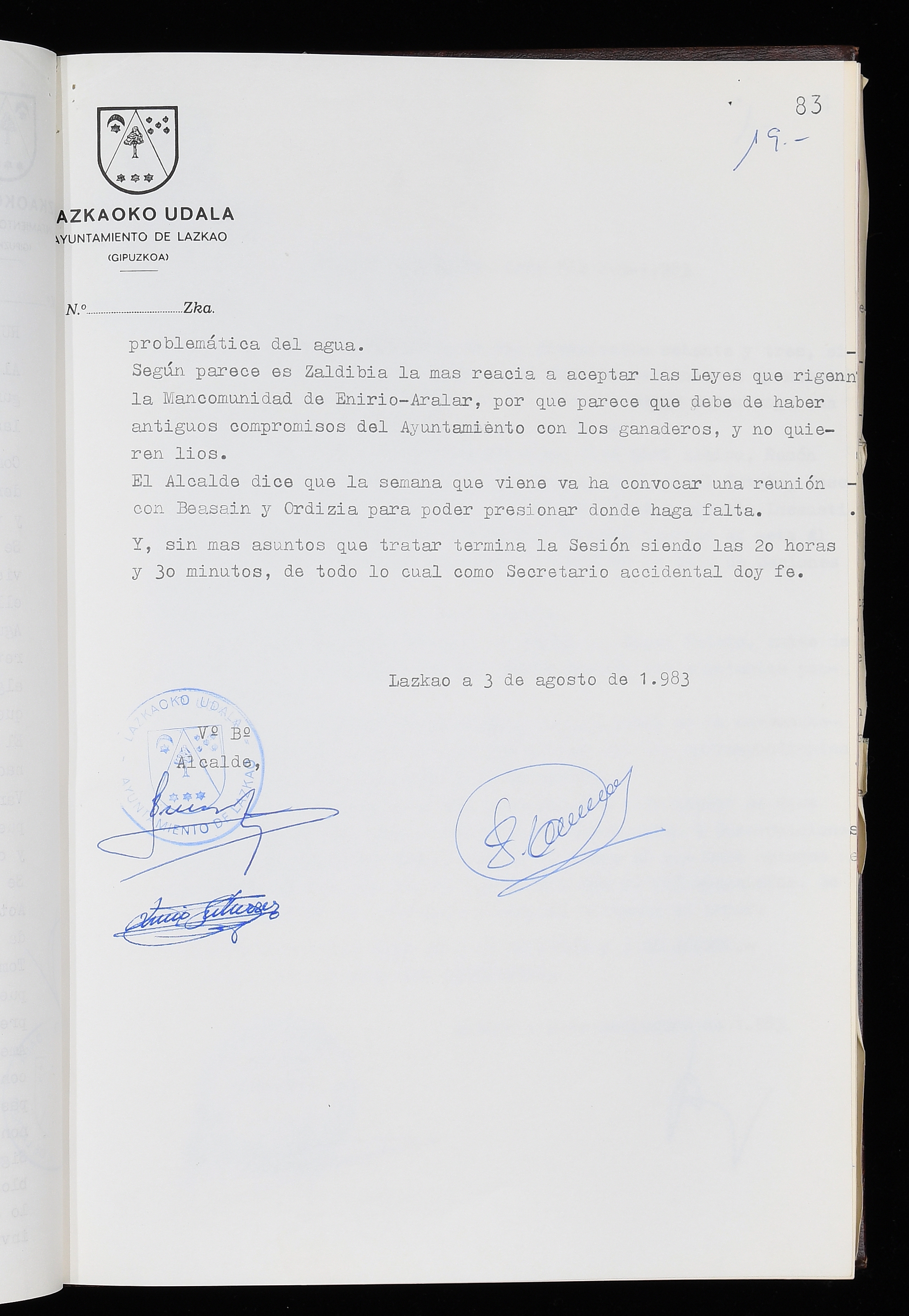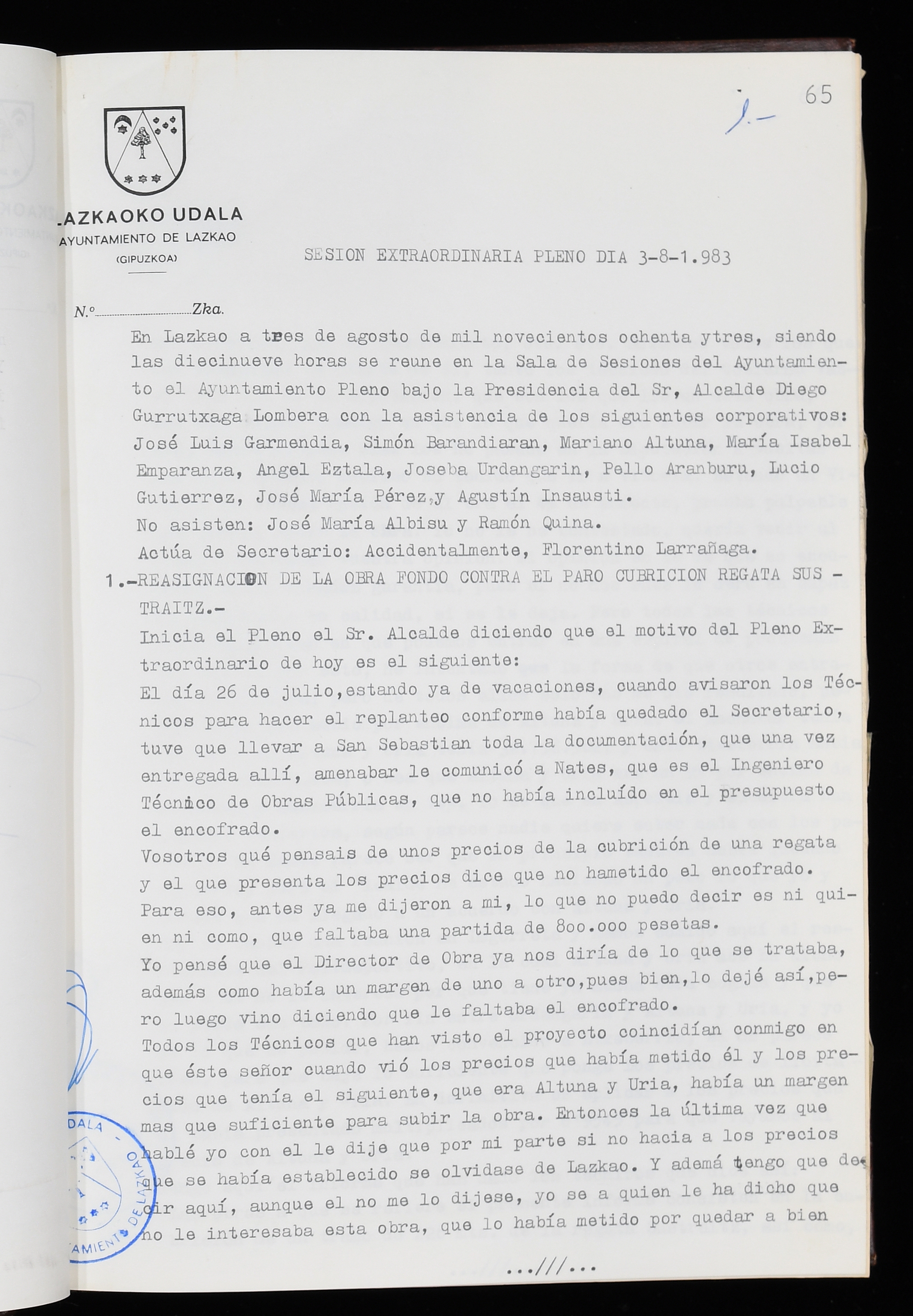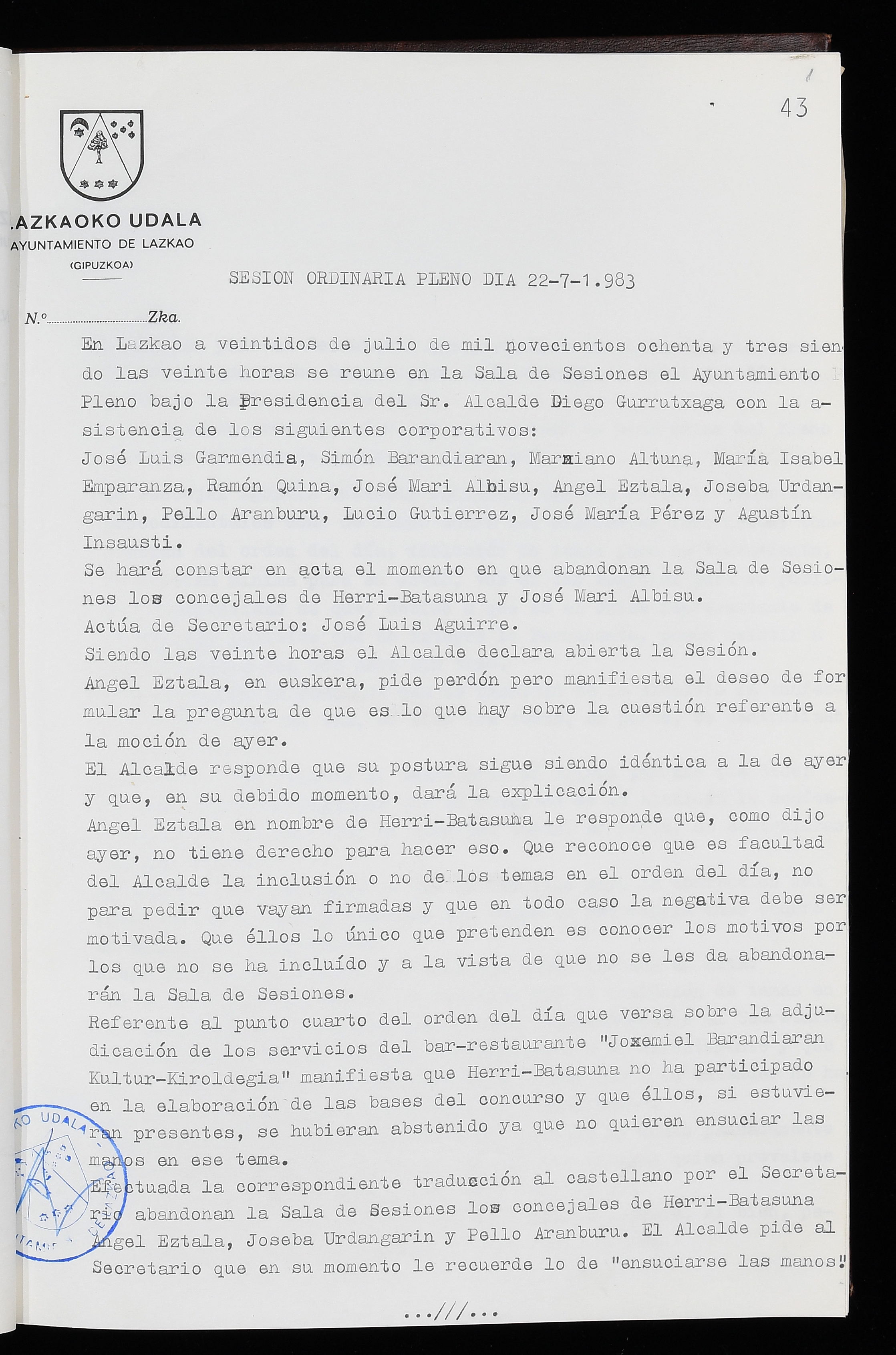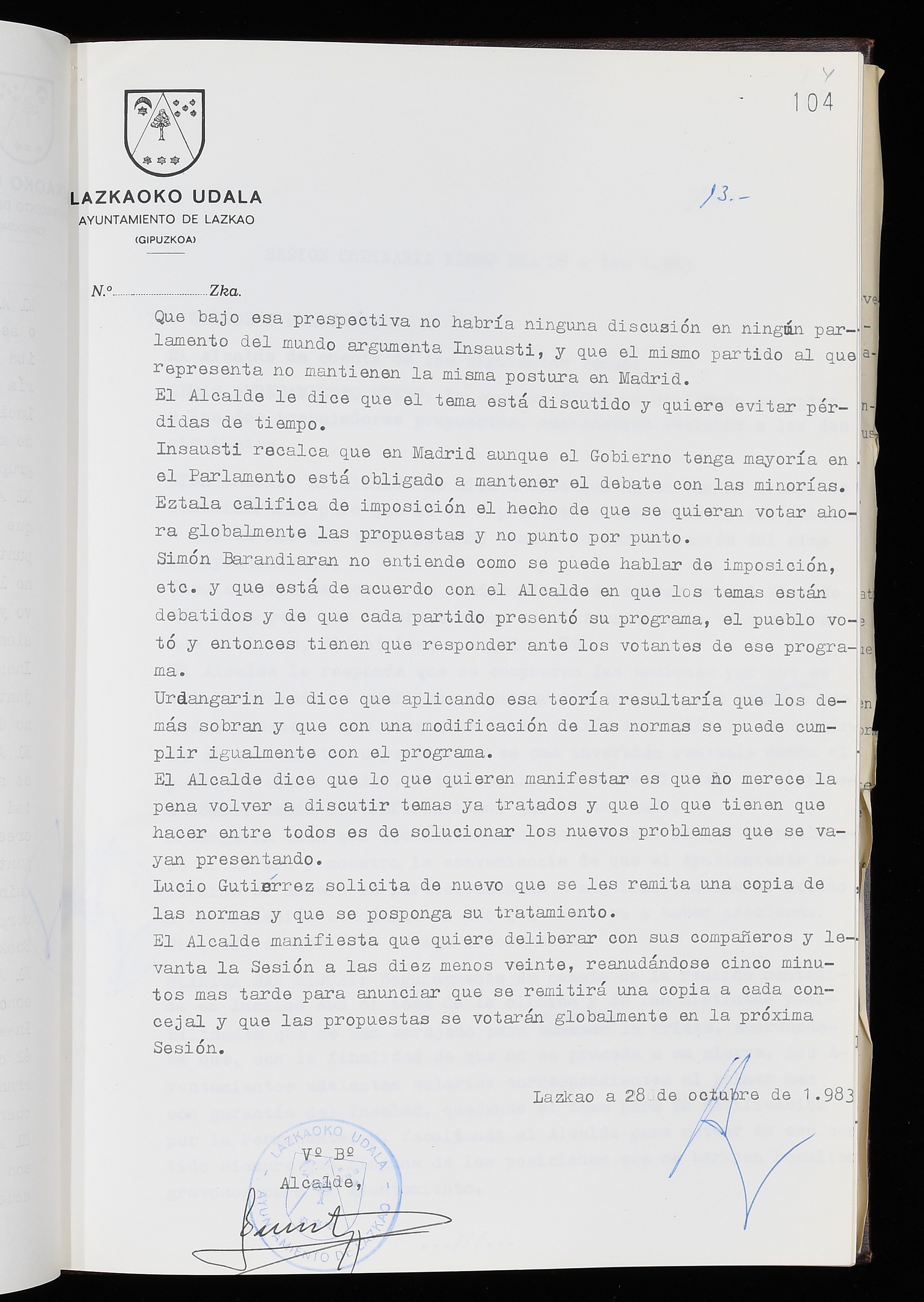 Log in to post commentsEdukiakSailkapenaFuntsaLazkaoko Udal ArtxiboaAtalakUdal AktakSailkapena1.1.4. Osoko Bilkuraren akta liburuakSailkapen berriaOsoko Bilkurako akta liburuakMultimediaIrudiakIdentifikazioaSignaturaakta liburua I-035Hasiera1983-05-23Amaiera1984-05-30AutoritateakTokiaLazkaoLog in to post commentsAkta eratu