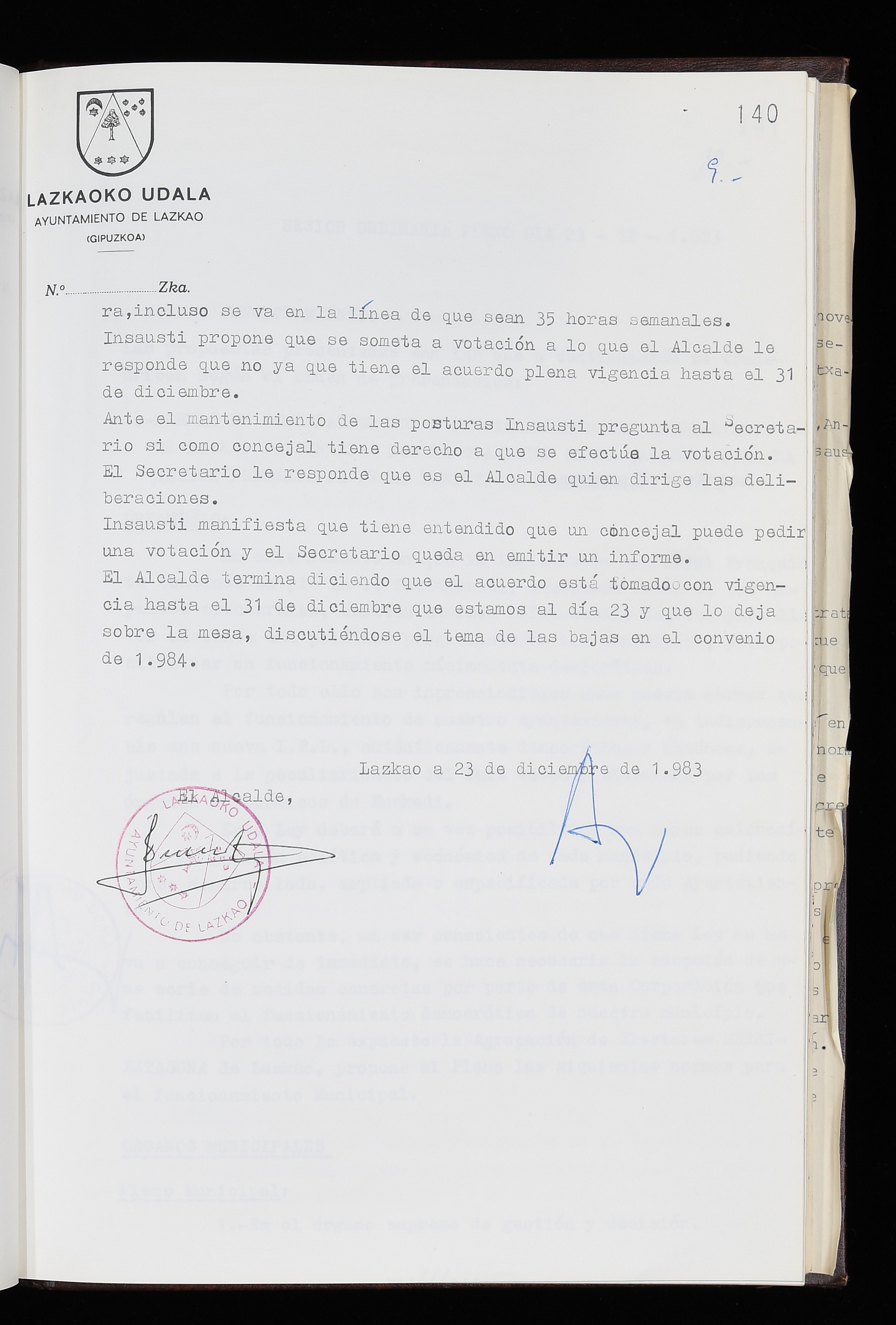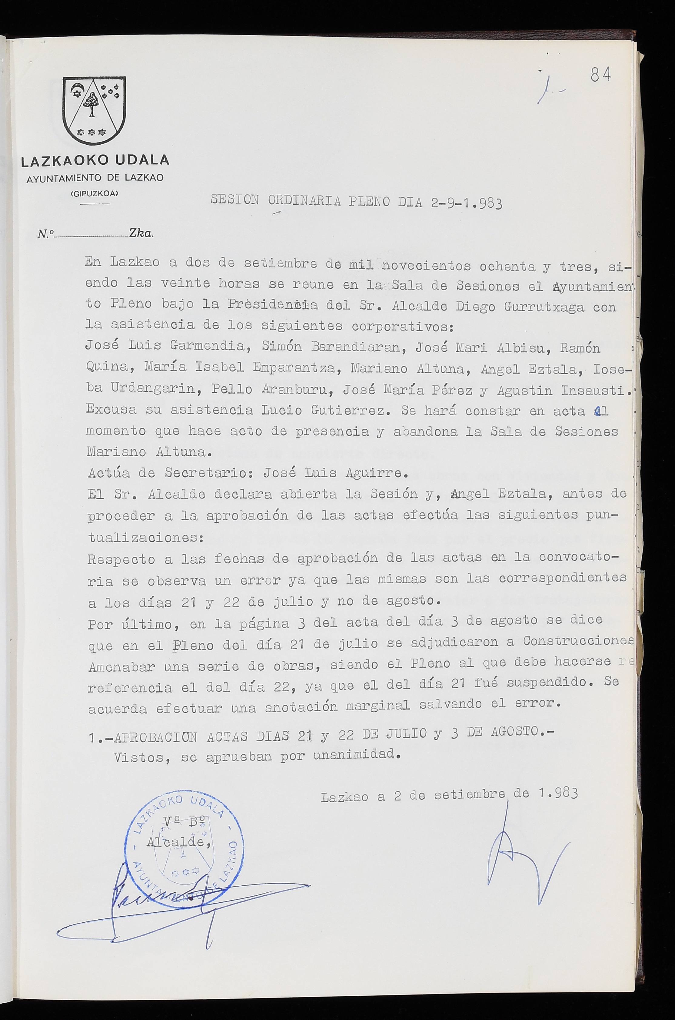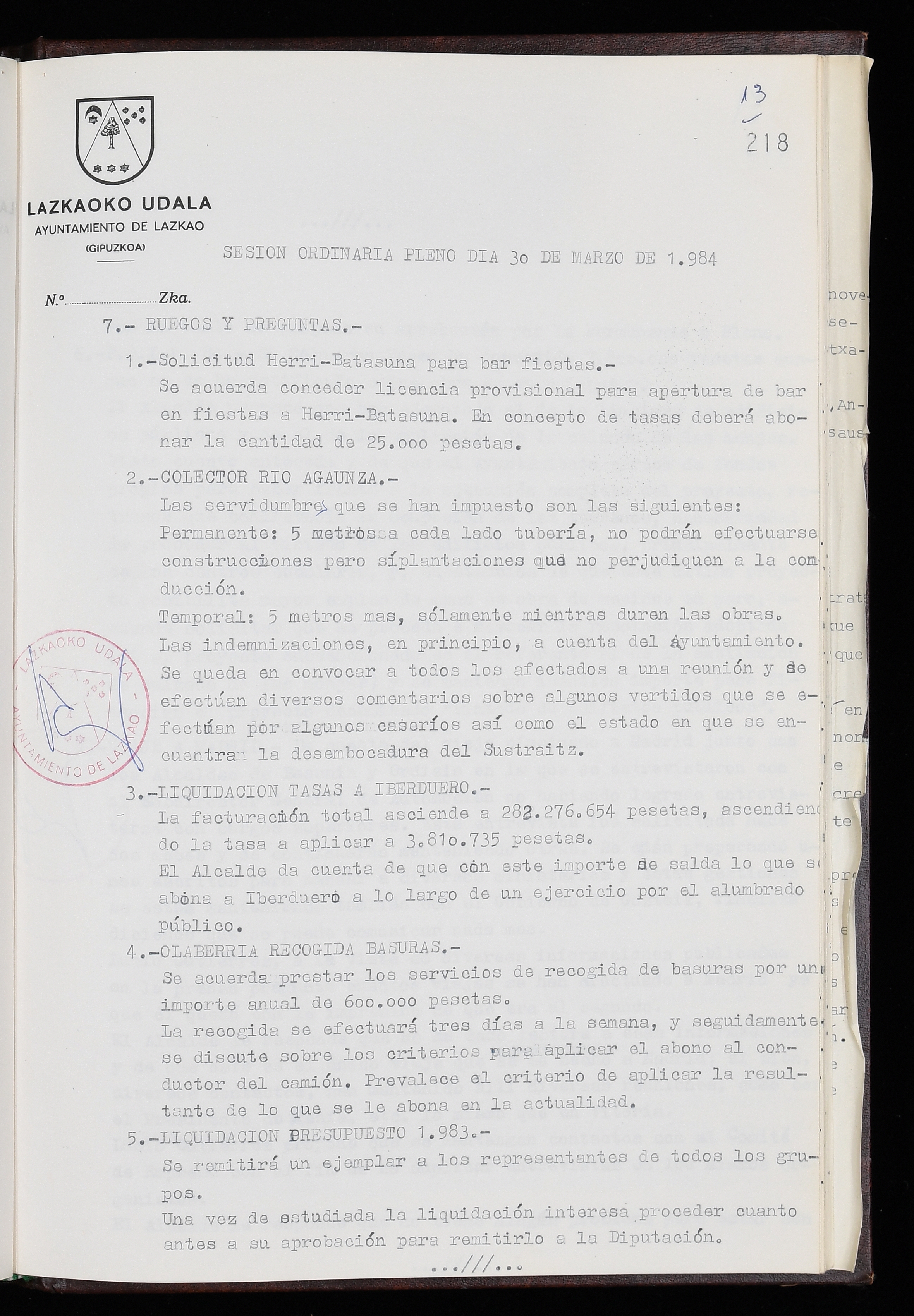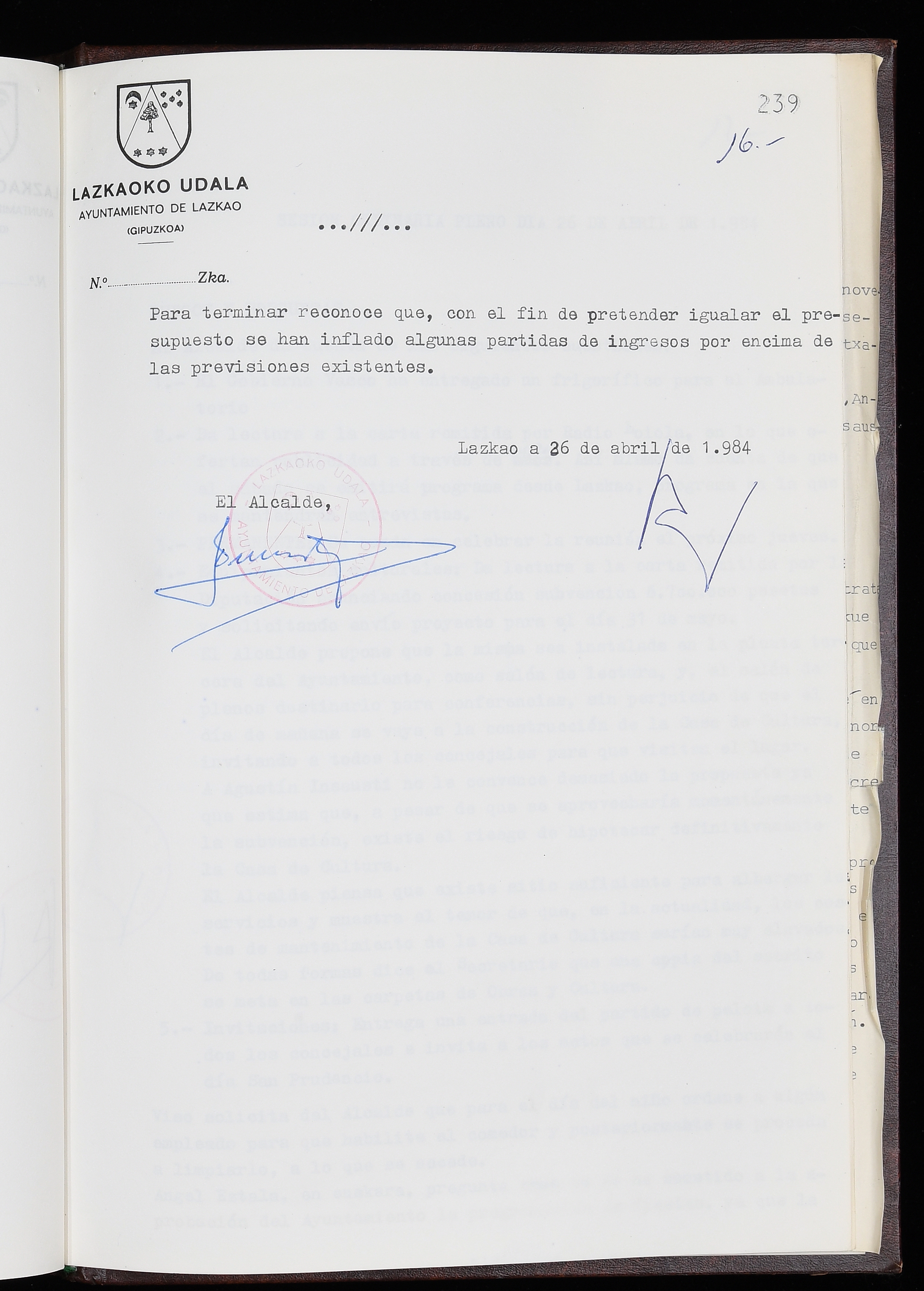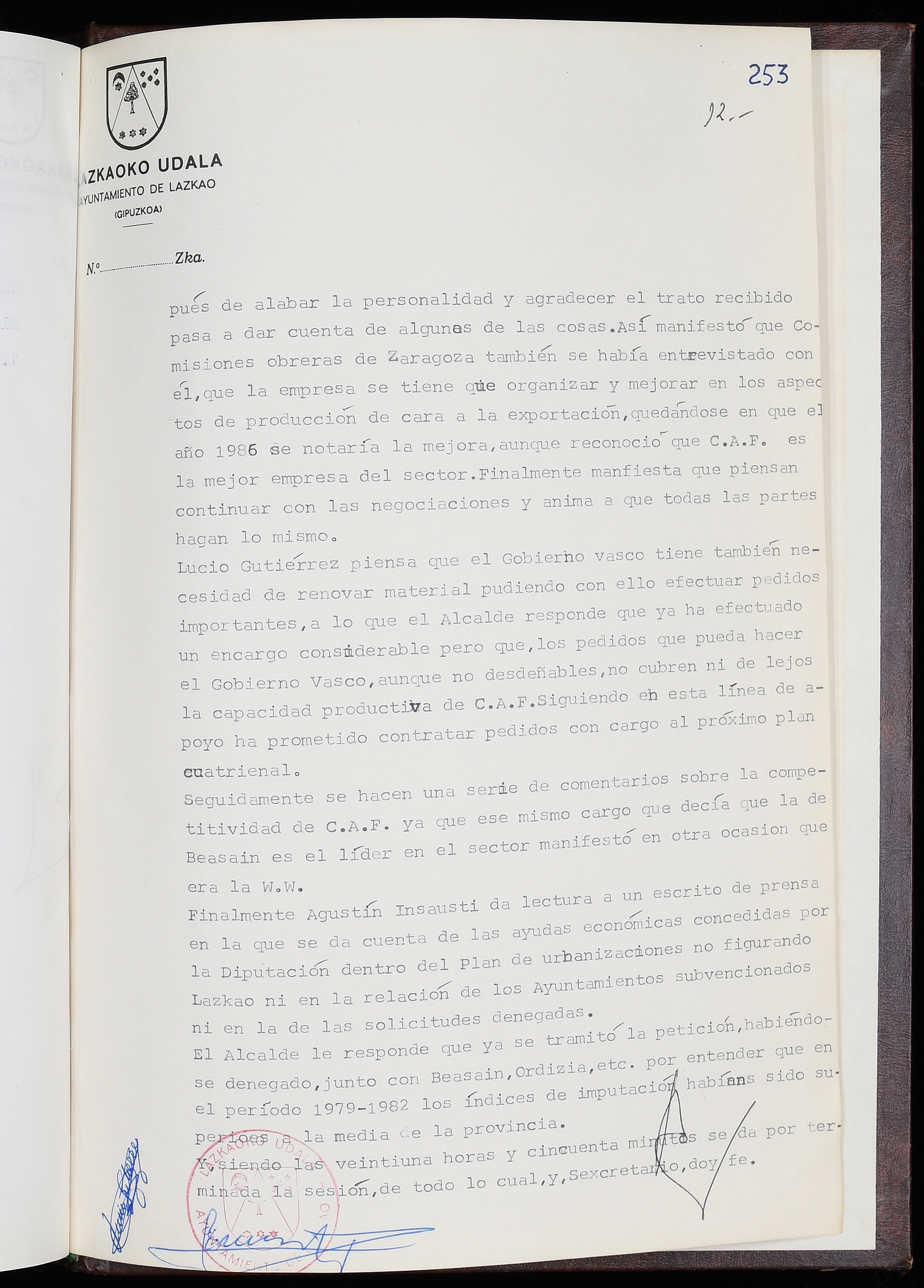 Log in to post commentsEdukiakSailkapenaFuntsaLazkaoko Udal ArtxiboaAtalakUdal AktakSailkapena1.1.4. Osoko Bilkuraren akta liburuakSailkapen berriaOsoko Bilkurako akta liburuakMultimediaIrudiakIdentifikazioaSignaturaakta liburua I-035Hasiera1983-05-23Amaiera1984-05-30AutoritateakTokiaLazkaoLog in to post commentsAkta eratu