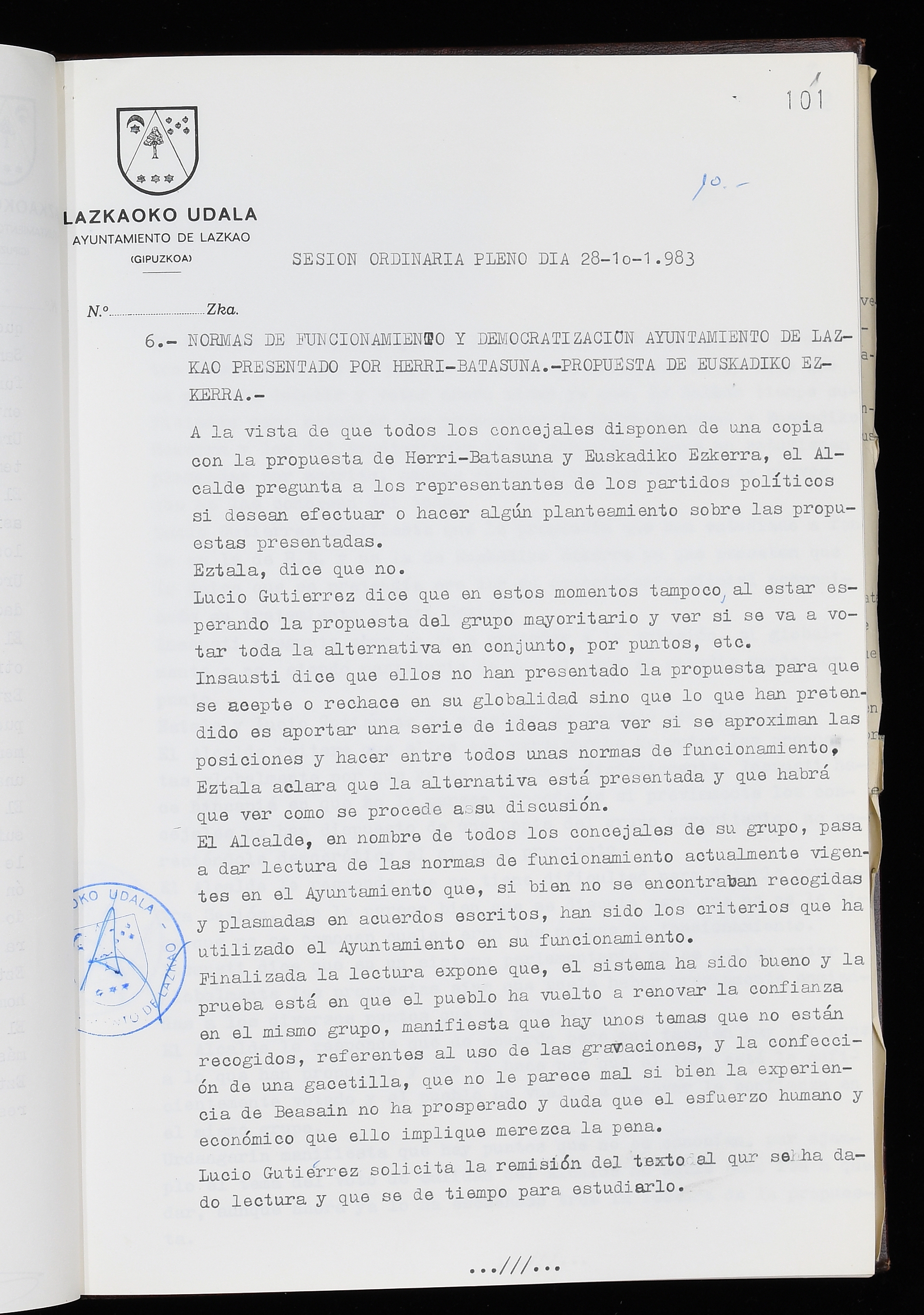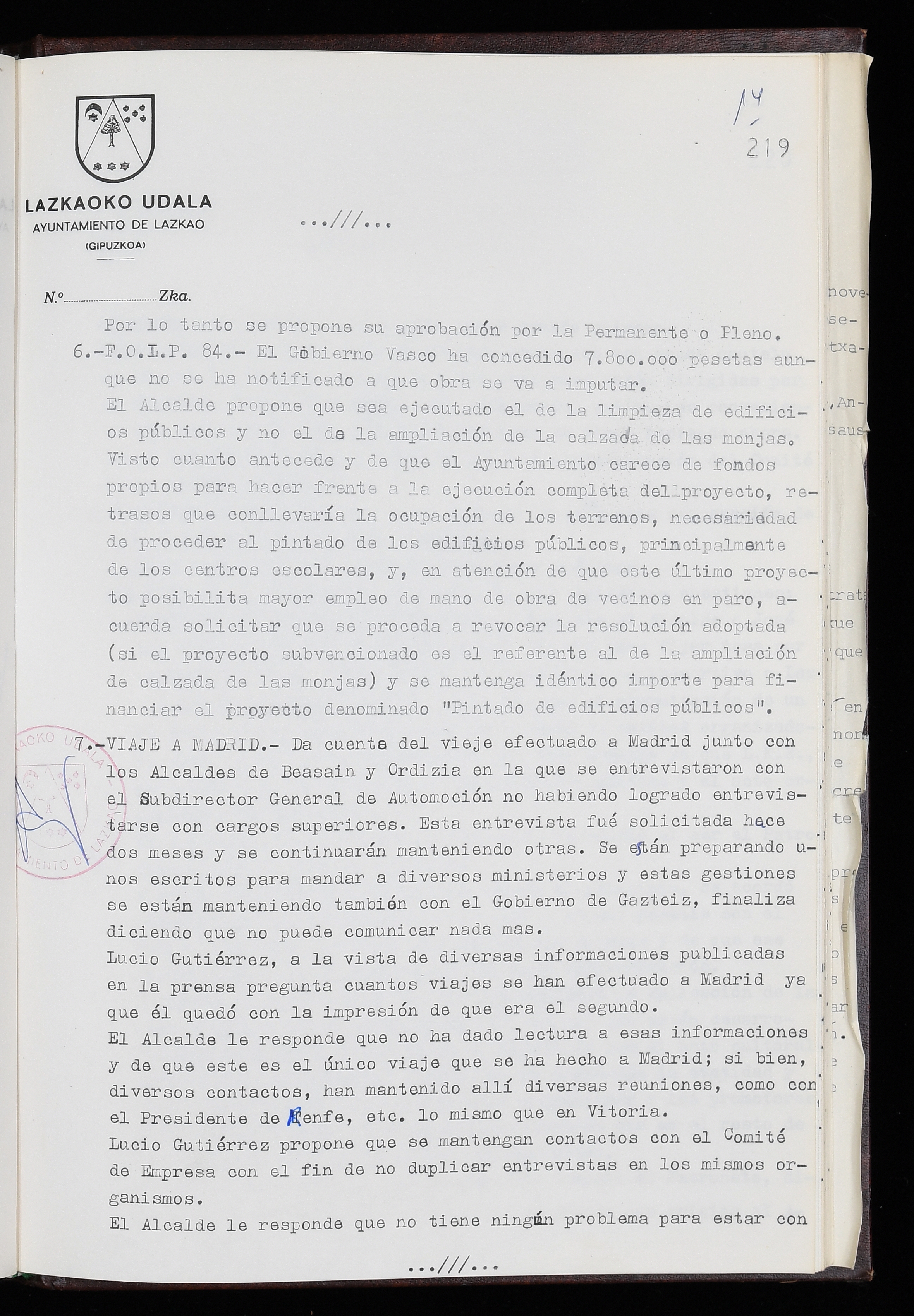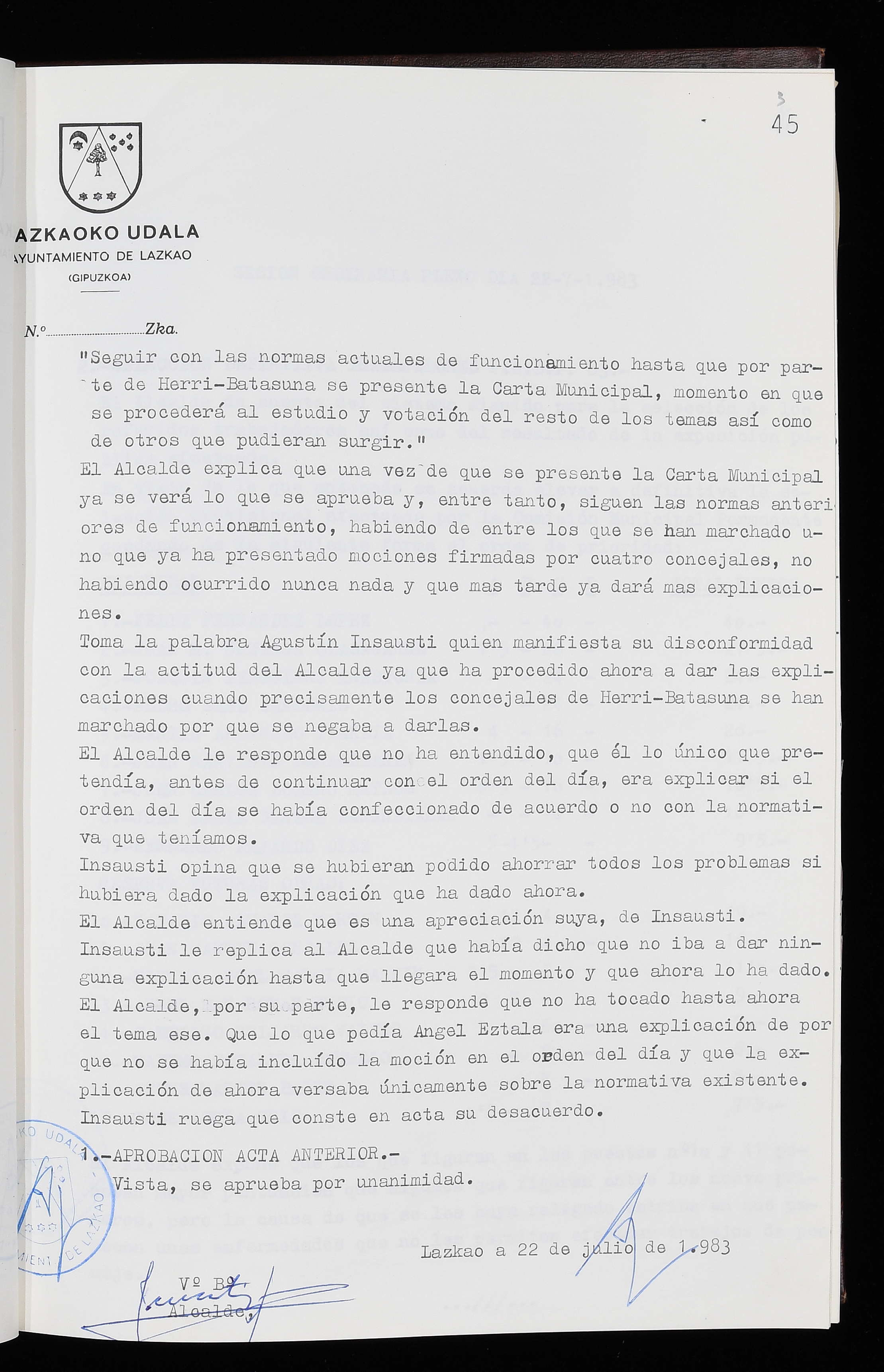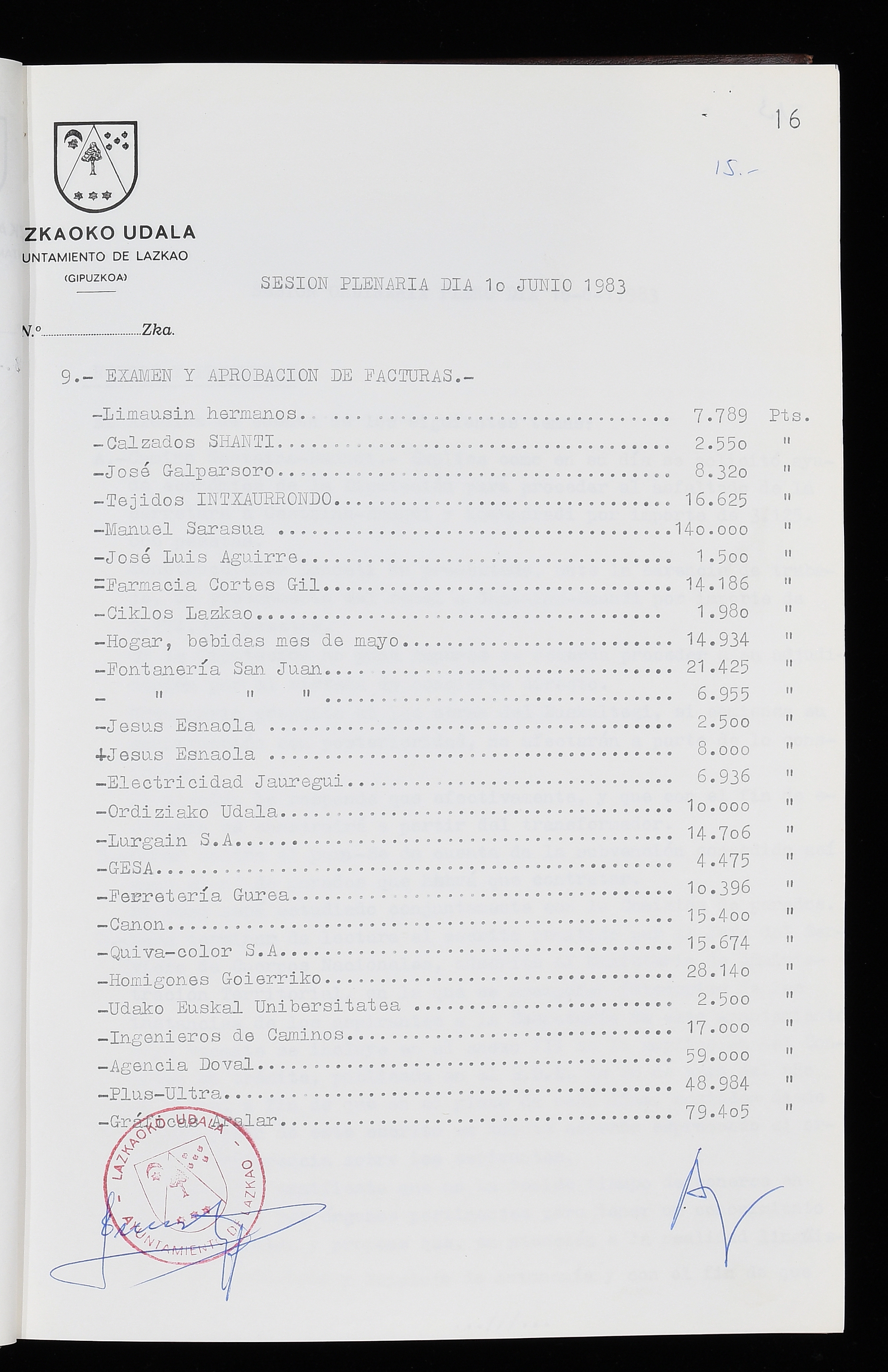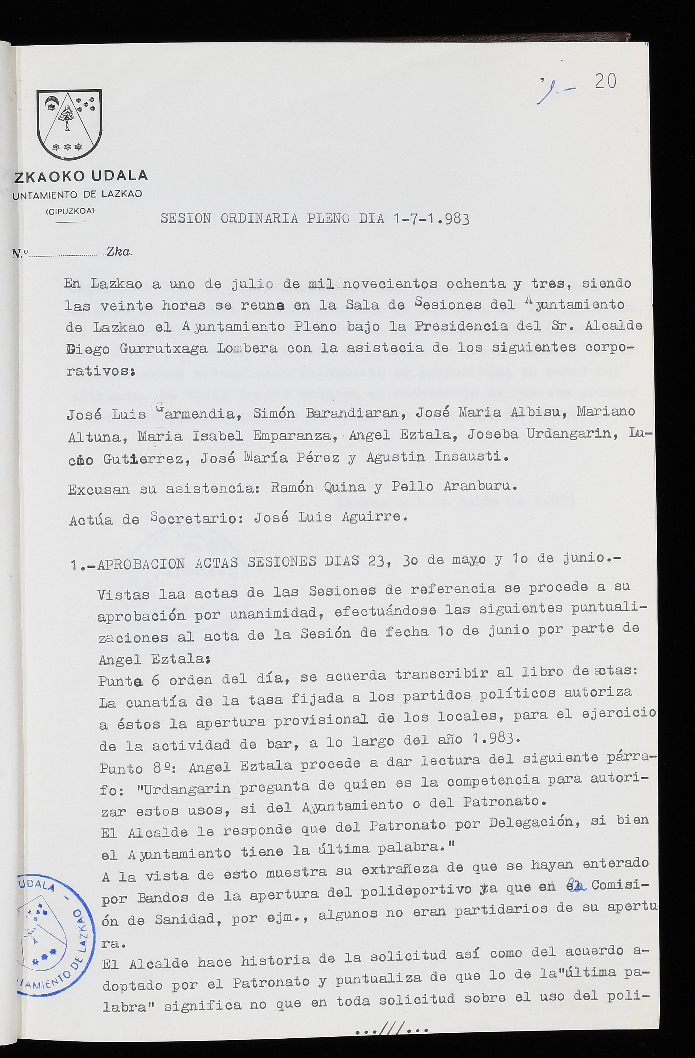 Log in to post commentsEdukiakSailkapenaFuntsaLazkaoko Udal ArtxiboaAtalakUdal AktakSailkapena1.1.4. Osoko Bilkuraren akta liburuakSailkapen berriaOsoko Bilkurako akta liburuakMultimediaIrudiakIdentifikazioaSignaturaakta liburua I-035Hasiera1983-05-23Amaiera1984-05-30AutoritateakTokiaLazkaoLog in to post commentsAkta eratu