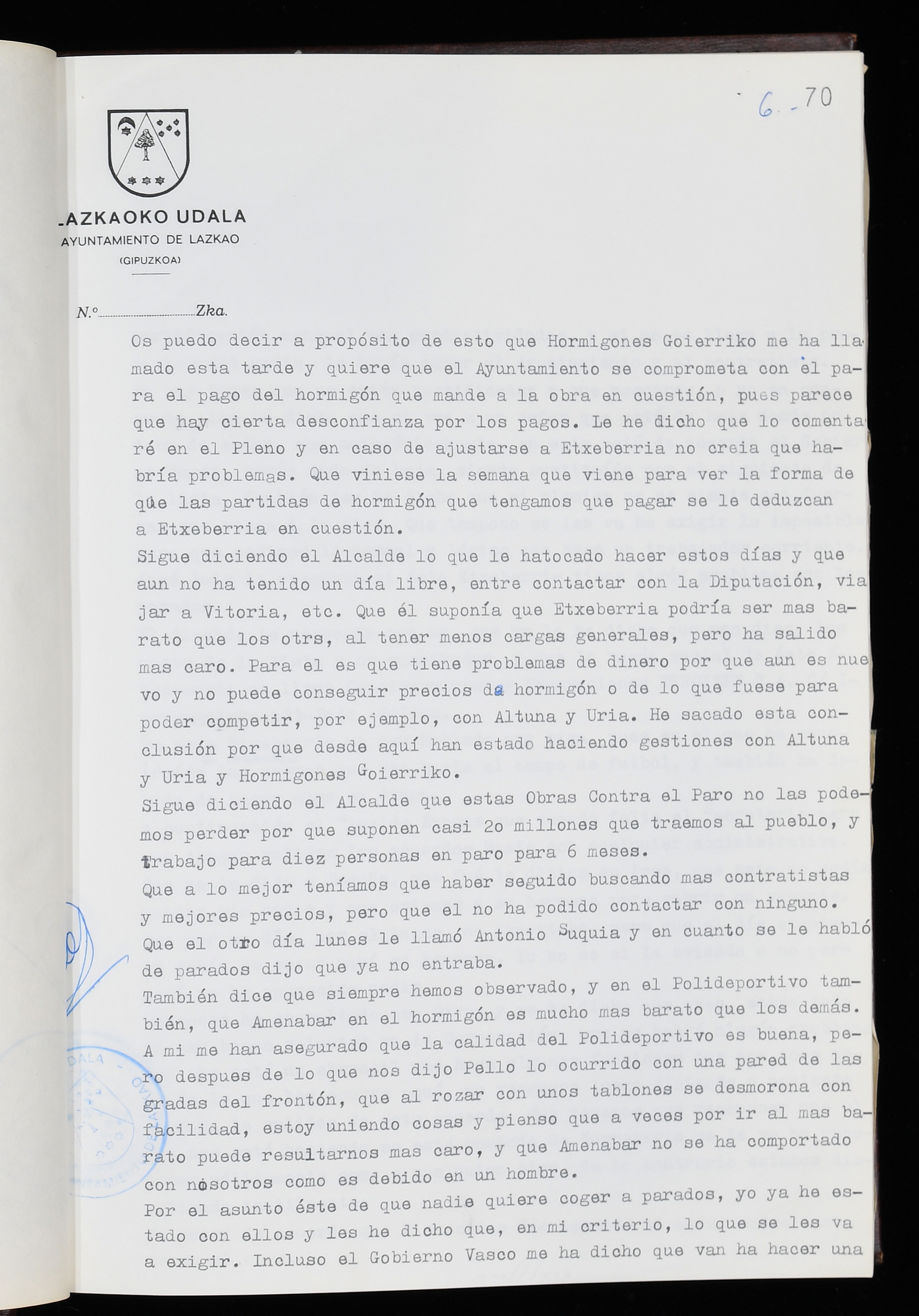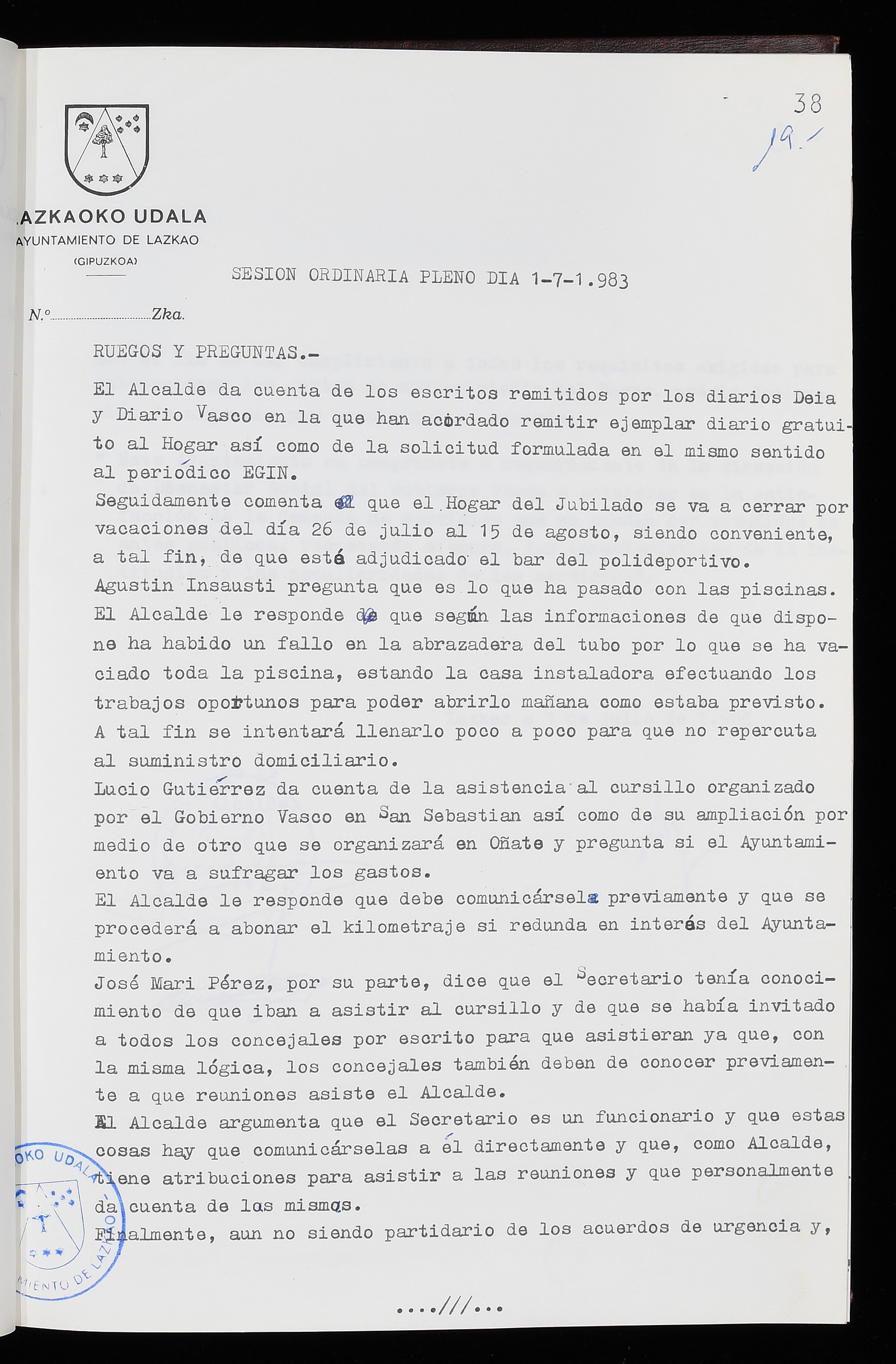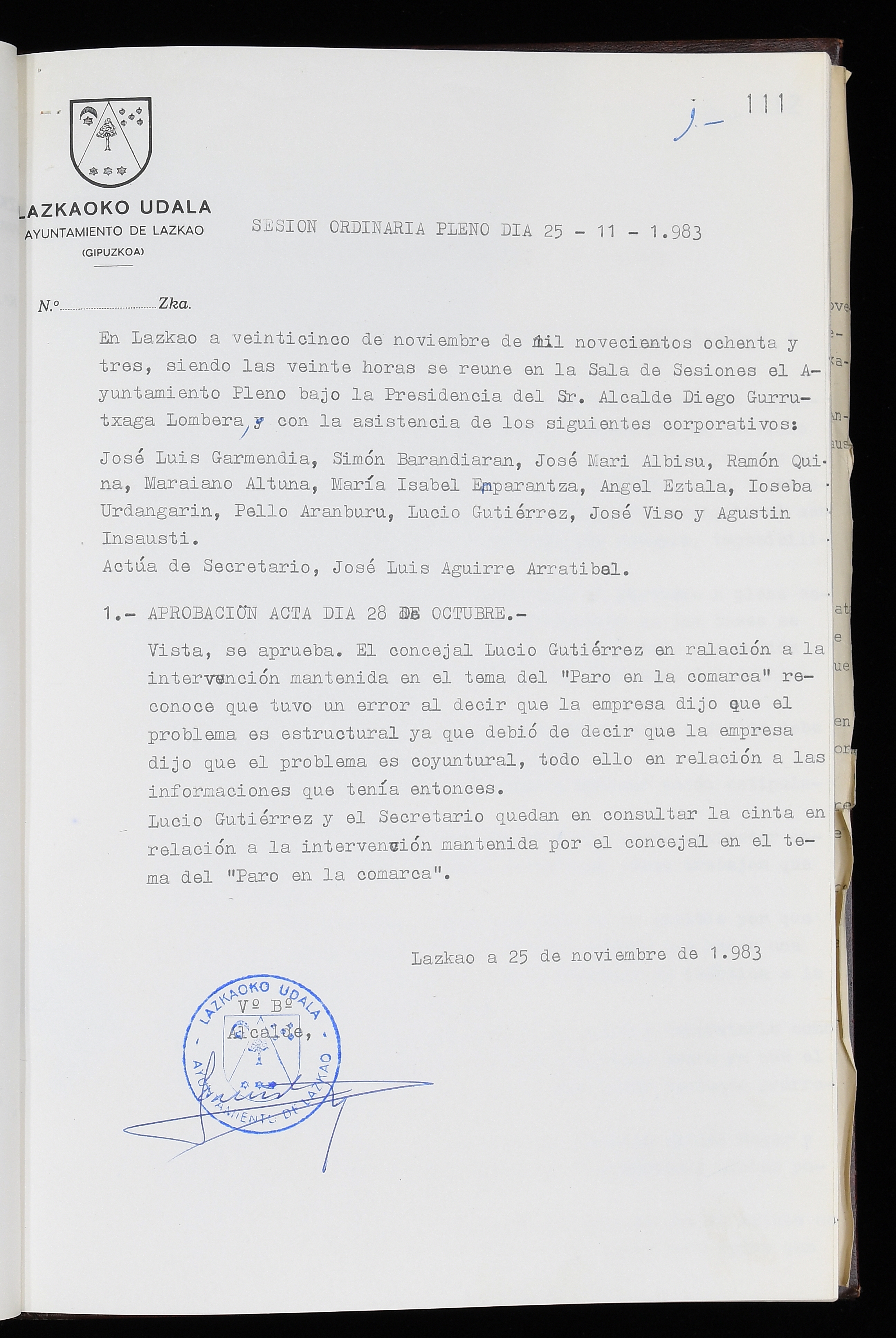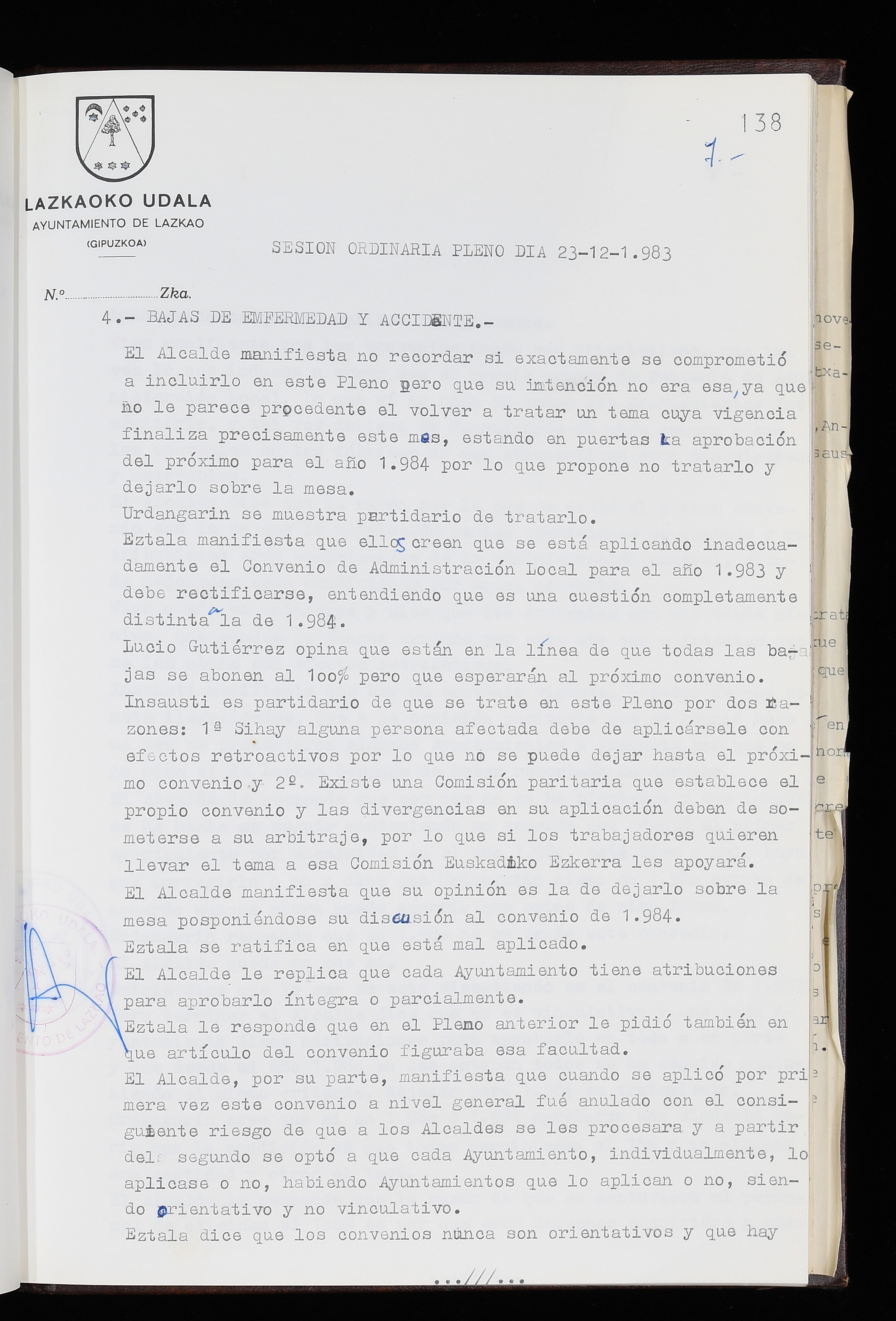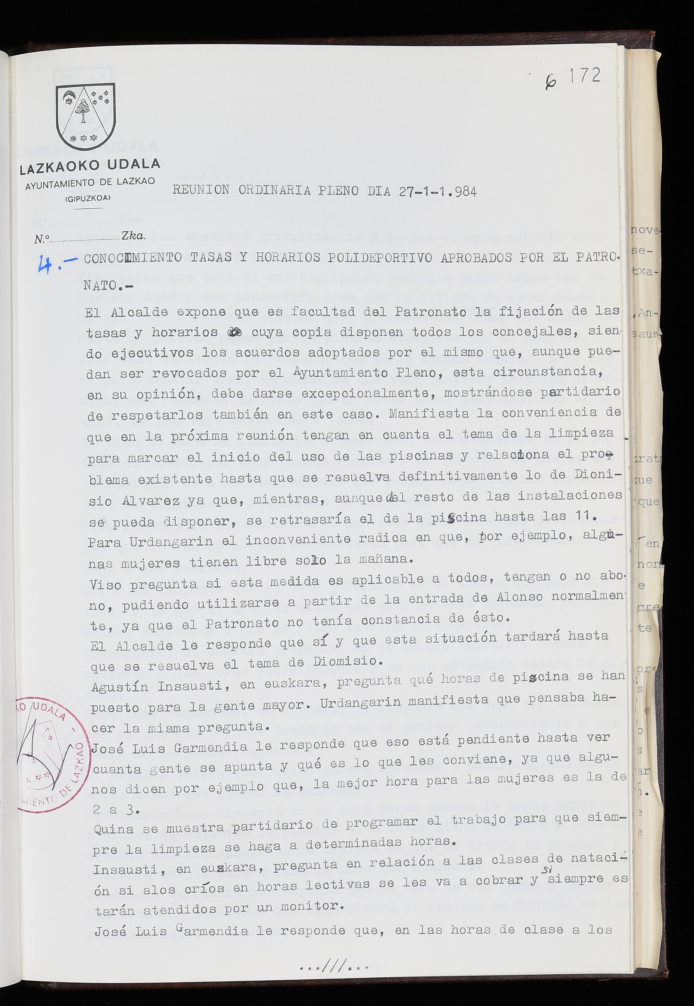 Log in to post commentsEdukiakSailkapenaFuntsaLazkaoko Udal ArtxiboaAtalakUdal AktakSailkapena1.1.4. Osoko Bilkuraren akta liburuakSailkapen berriaOsoko Bilkurako akta liburuakMultimediaIrudiakIdentifikazioaSignaturaakta liburua I-035Hasiera1983-05-23Amaiera1984-05-30AutoritateakTokiaLazkaoLog in to post commentsAkta eratu