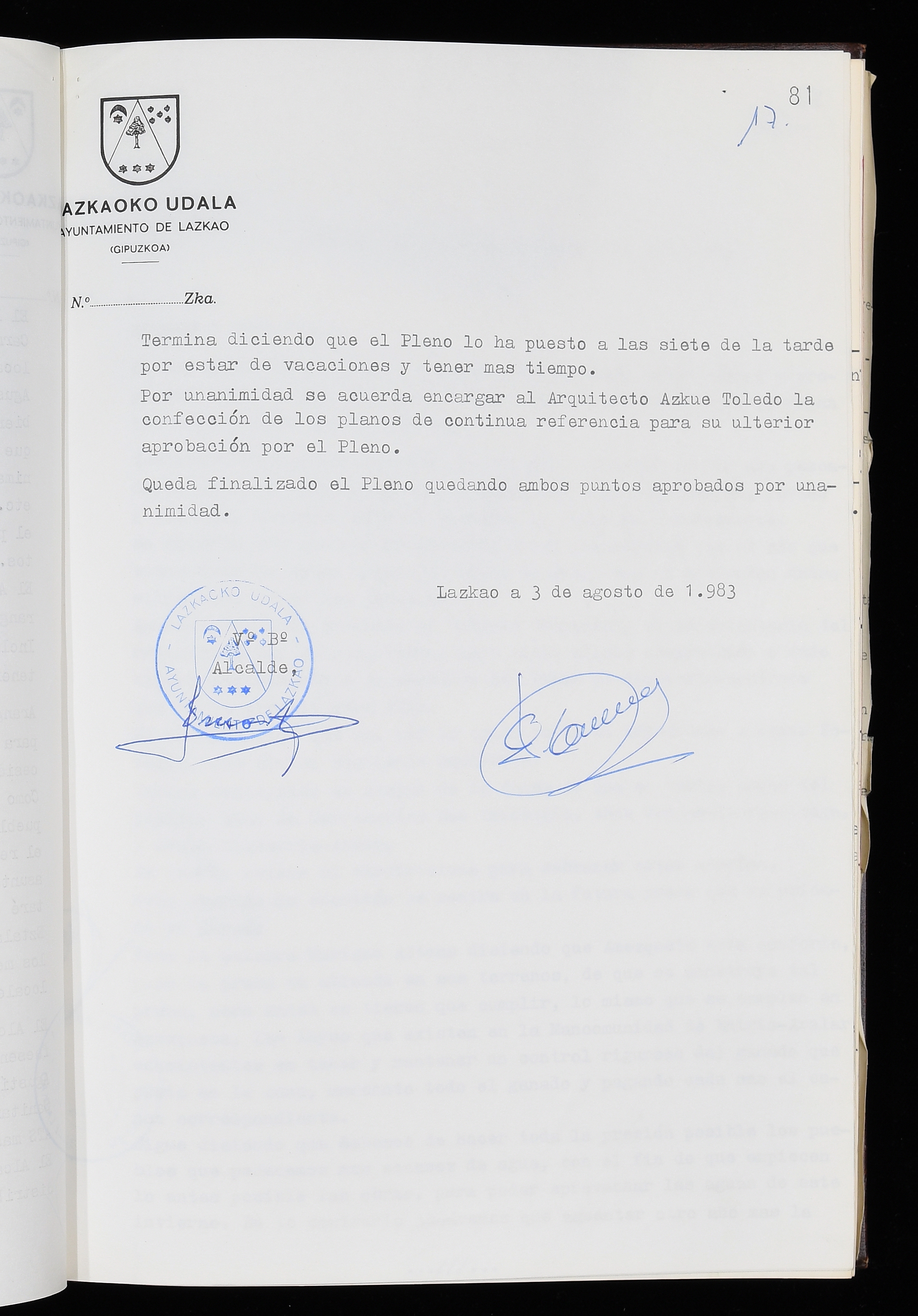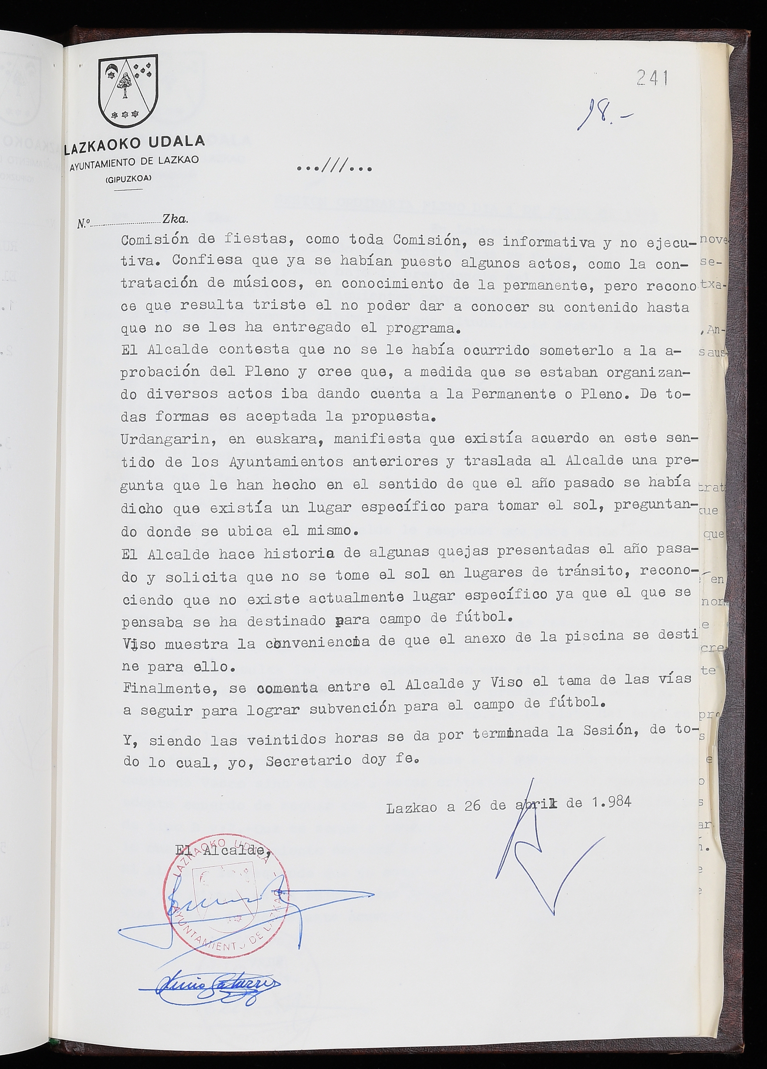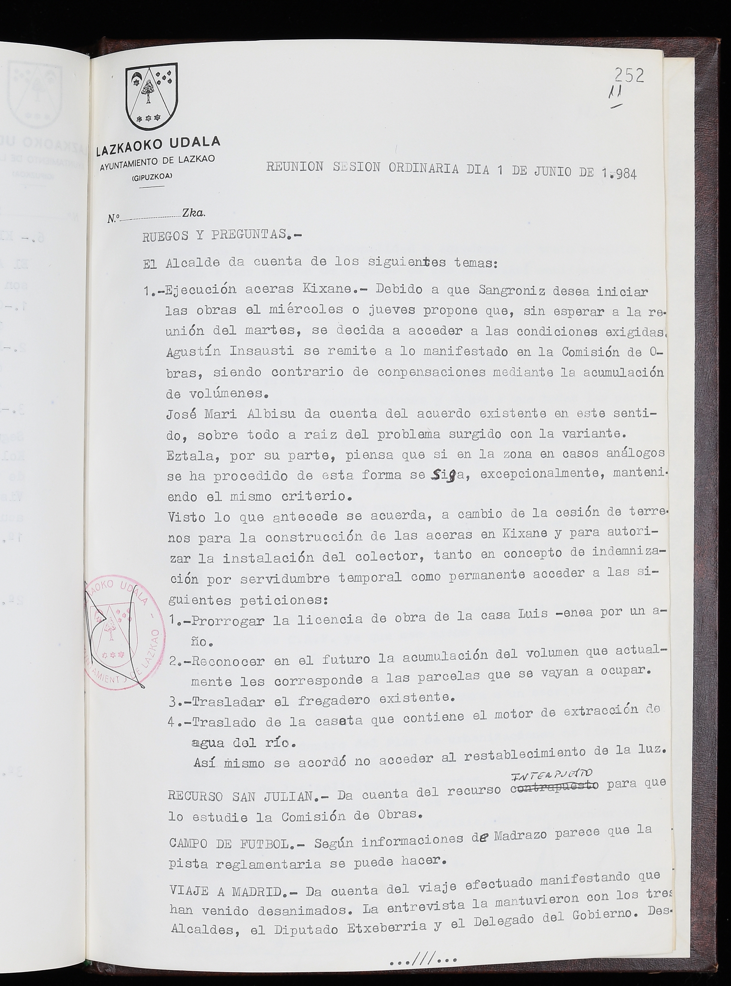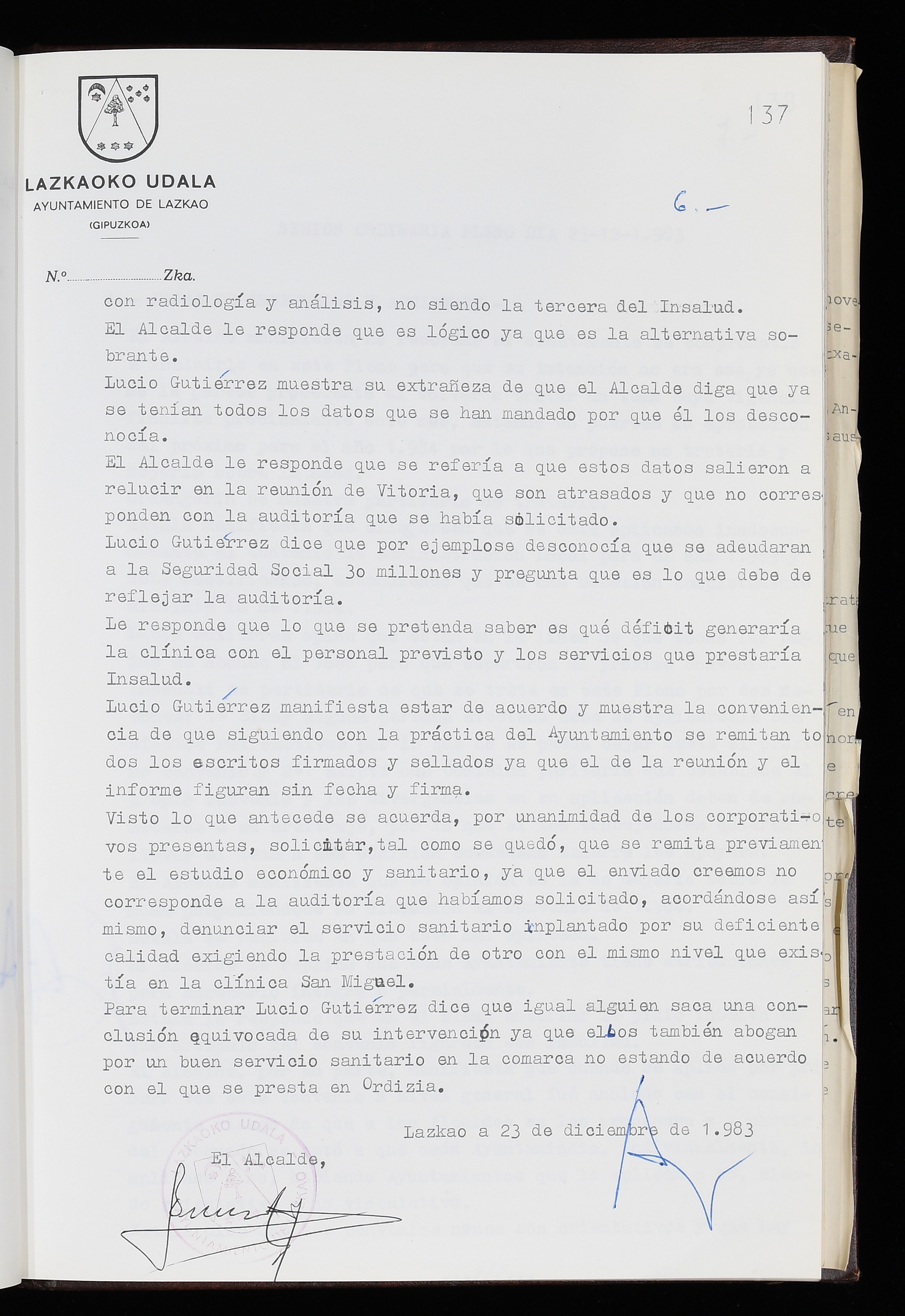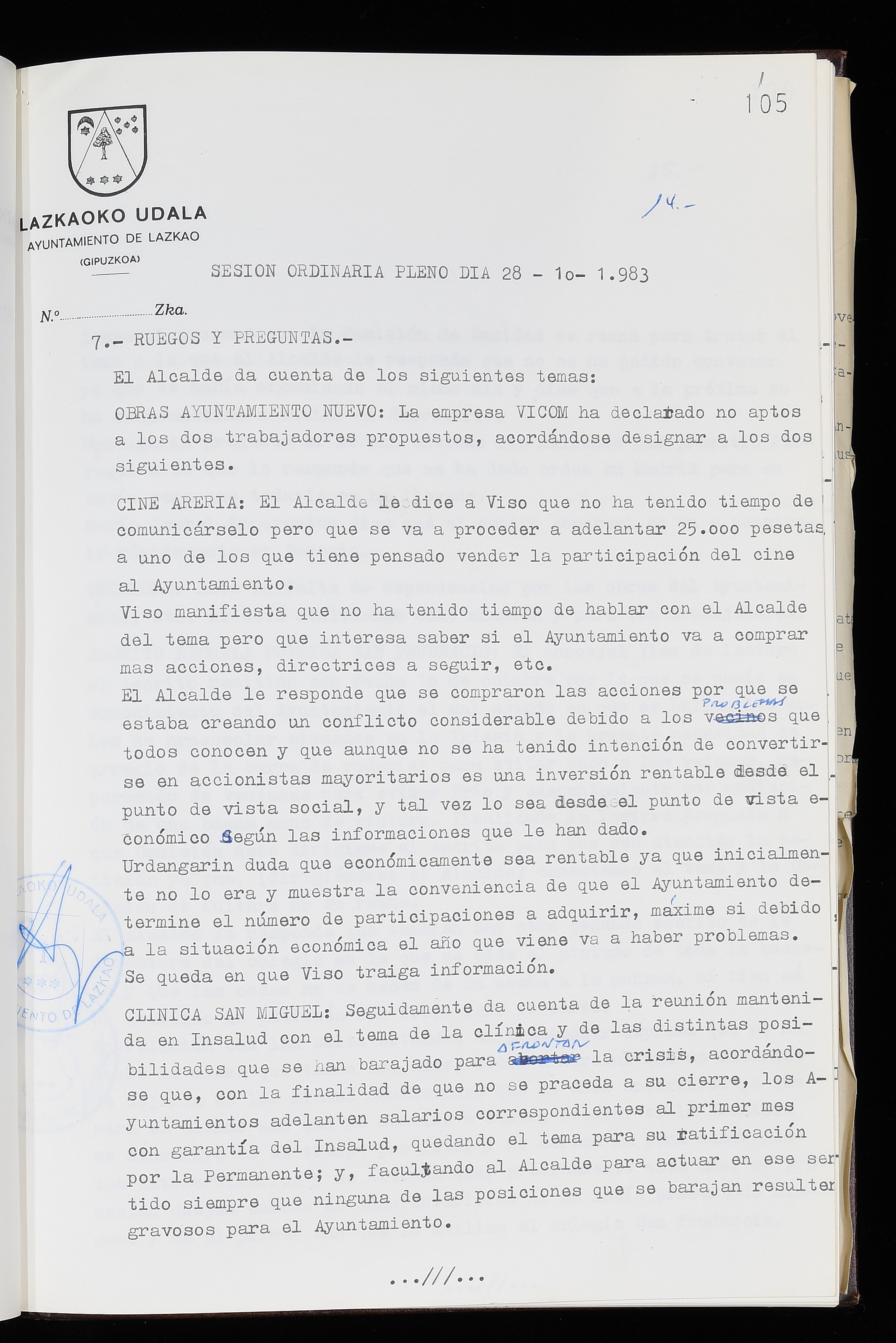 Log in to post commentsEdukiakSailkapenaFuntsaLazkaoko Udal ArtxiboaAtalakUdal AktakSailkapena1.1.4. Osoko Bilkuraren akta liburuakSailkapen berriaOsoko Bilkurako akta liburuakMultimediaIrudiakIdentifikazioaSignaturaakta liburua I-035Hasiera1983-05-23Amaiera1984-05-30AutoritateakTokiaLazkaoLog in to post commentsAkta eratu