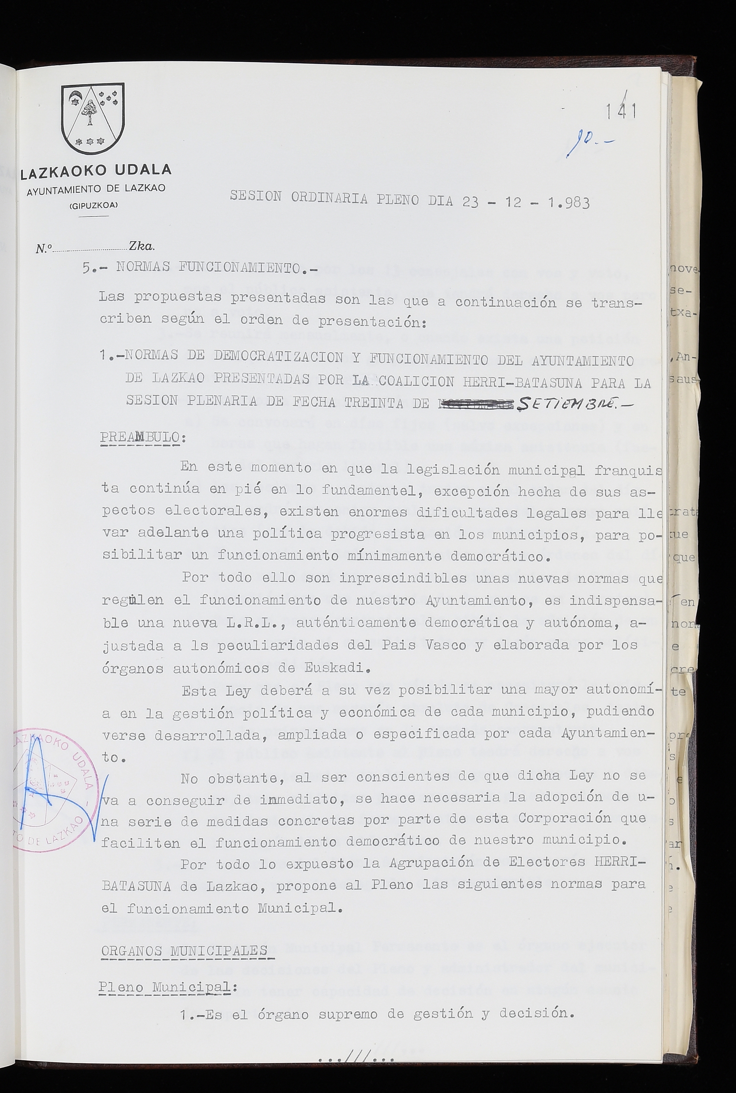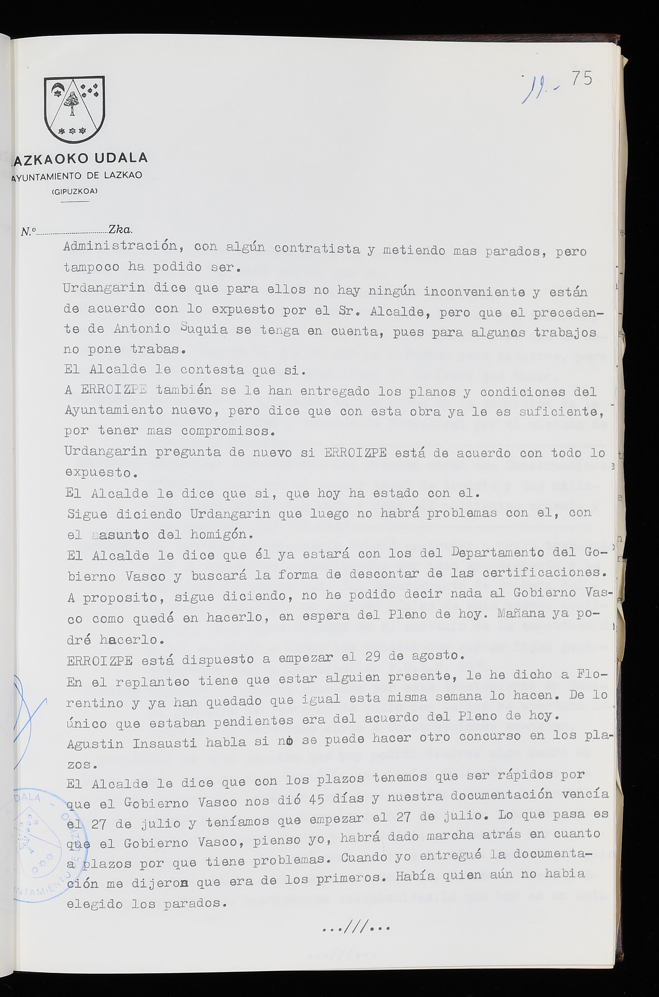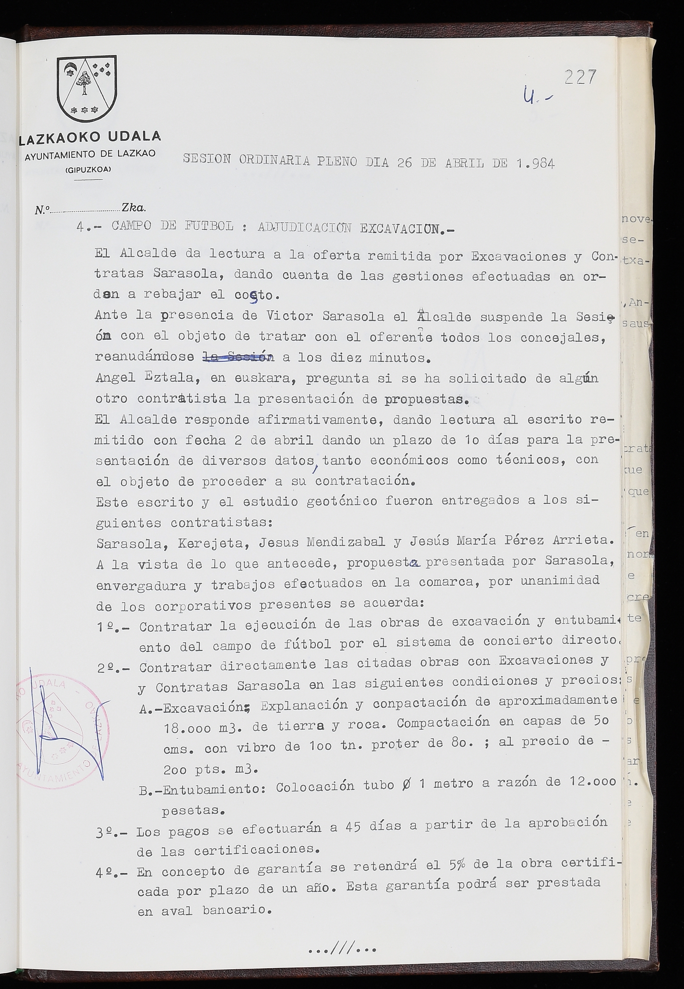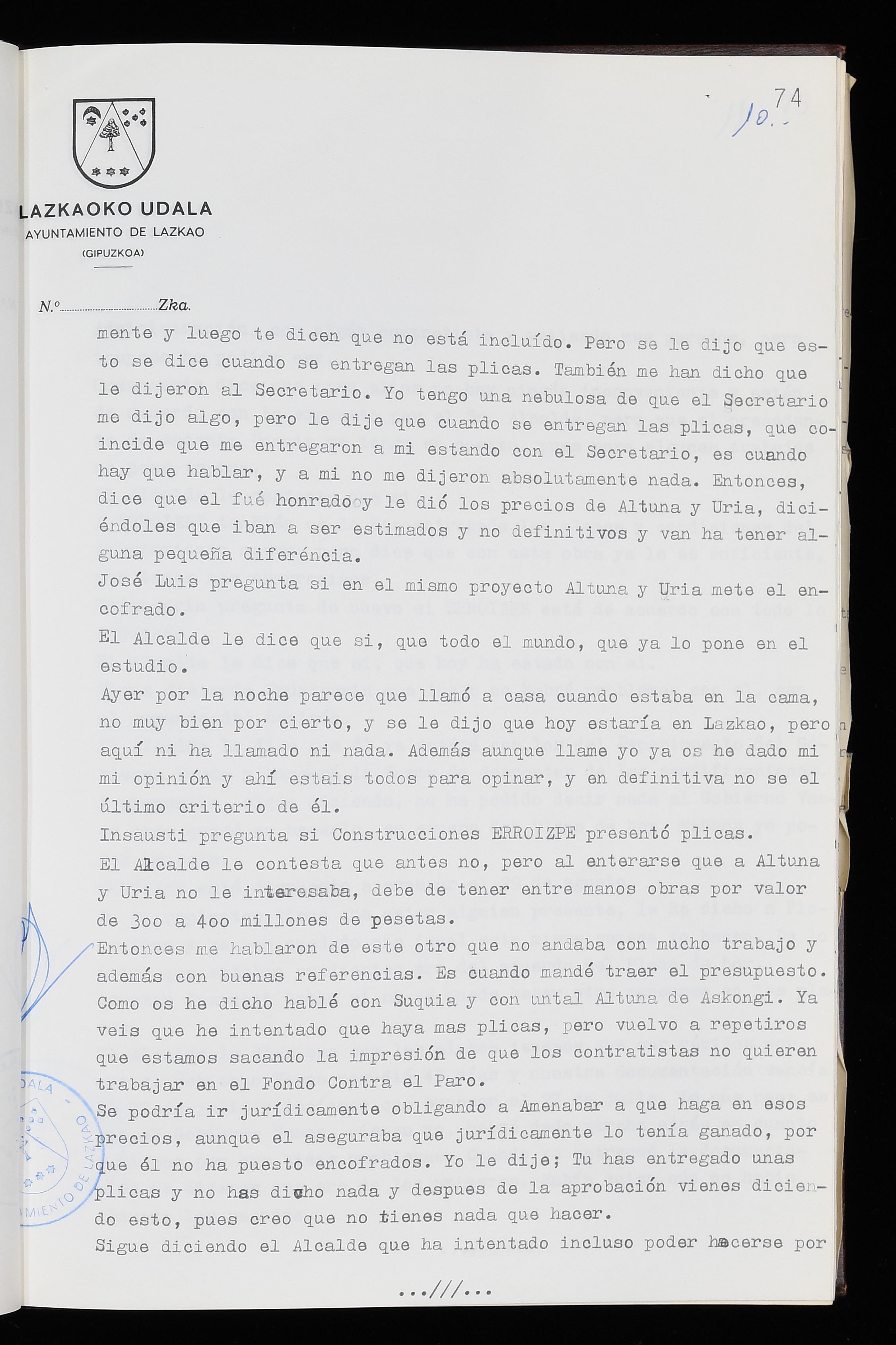 Log in to post commentsEdukiakSailkapenaFuntsaLazkaoko Udal ArtxiboaAtalakUdal AktakSailkapena1.1.4. Osoko Bilkuraren akta liburuakSailkapen berriaOsoko Bilkurako akta liburuakMultimediaIrudiakIdentifikazioaSignaturaakta liburua I-035Hasiera1983-05-23Amaiera1984-05-30AutoritateakTokiaLazkaoLog in to post commentsAkta eratu