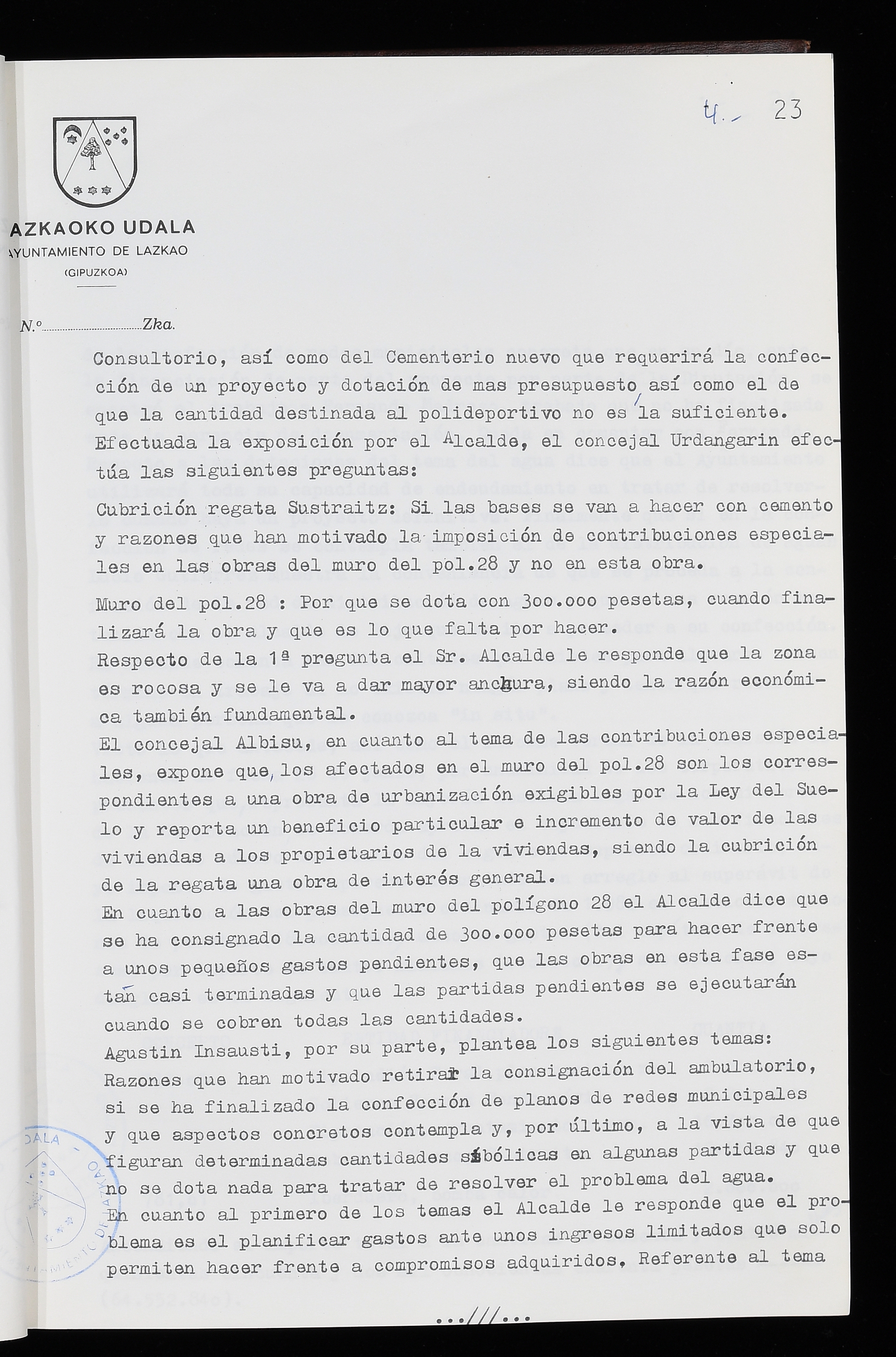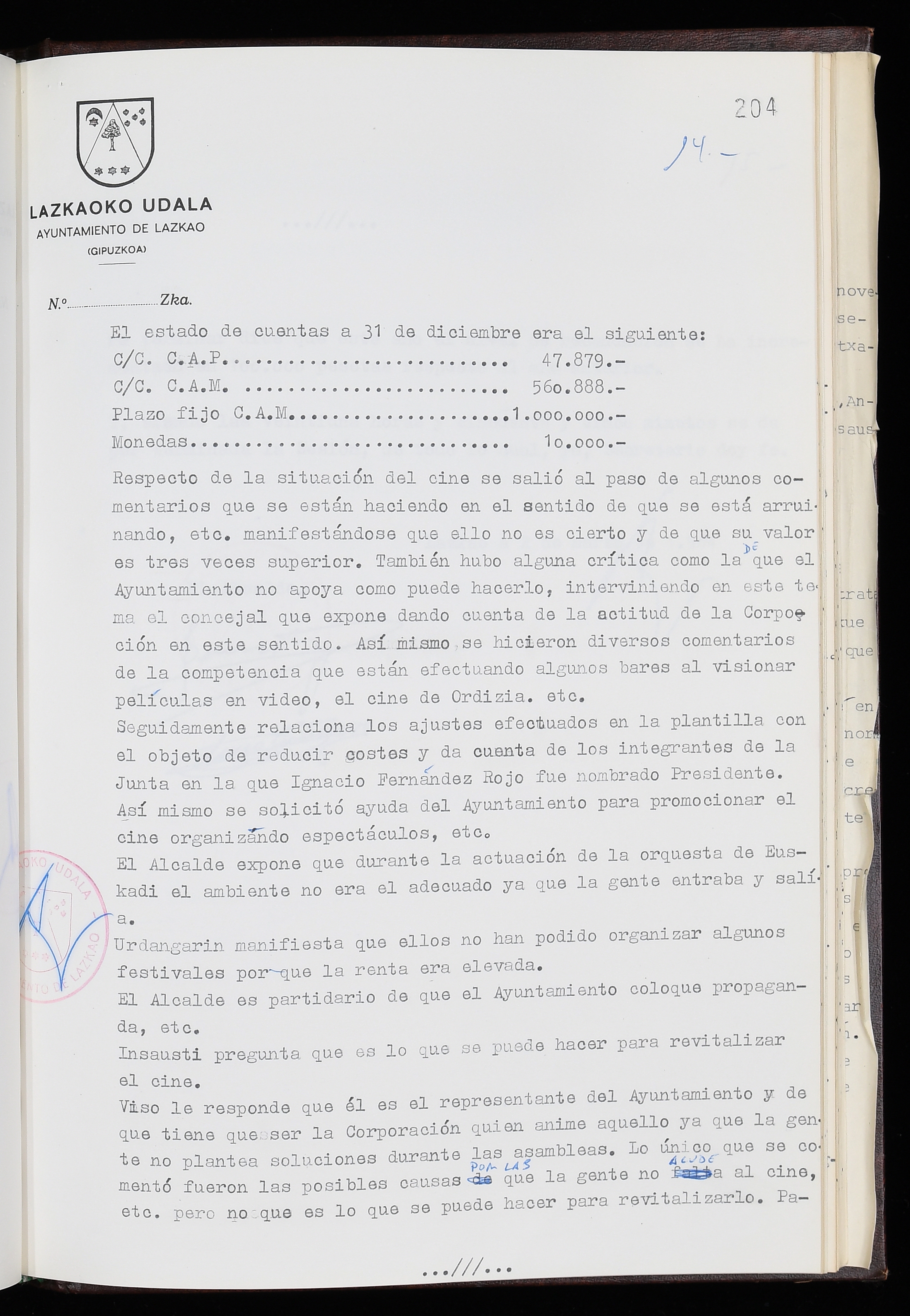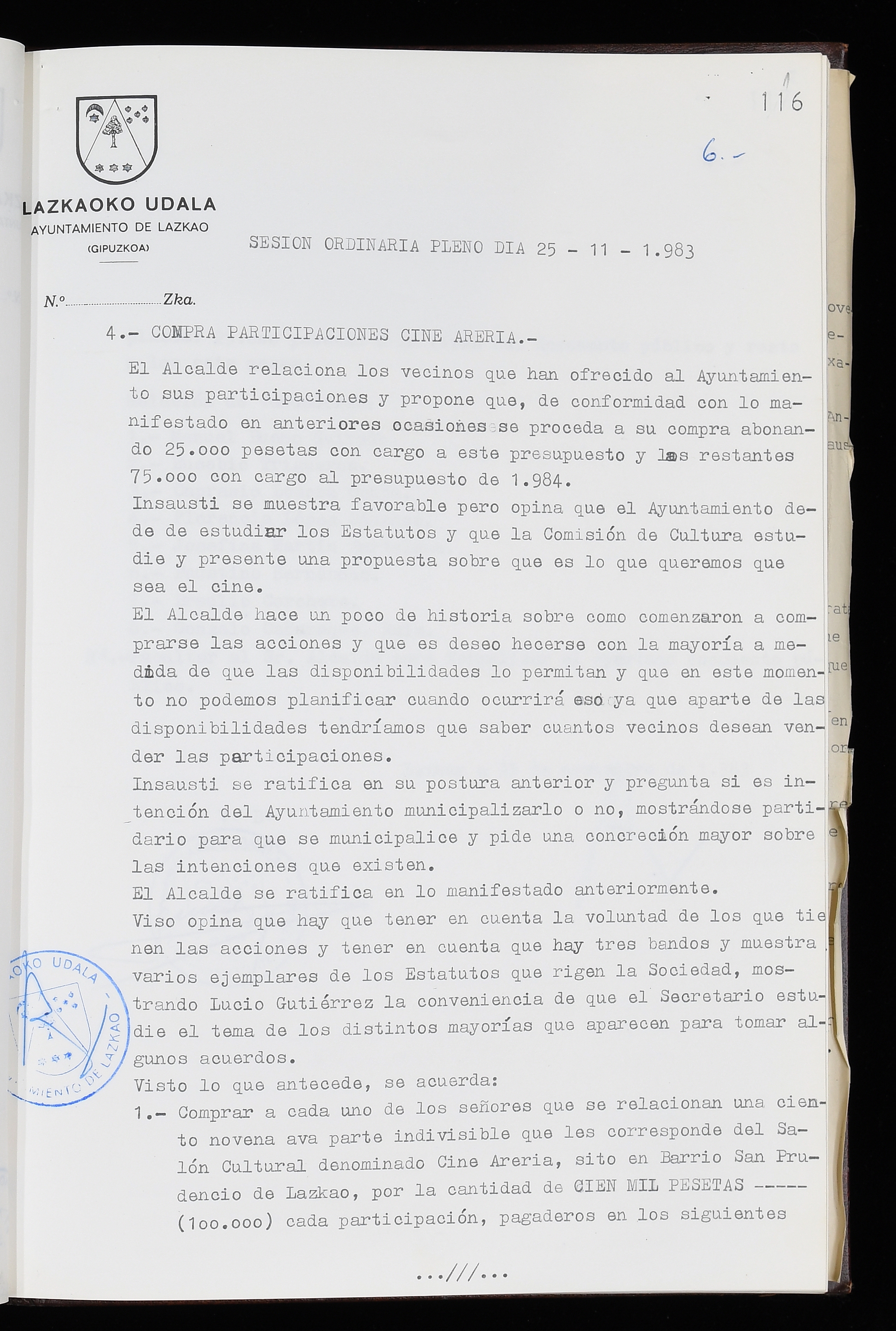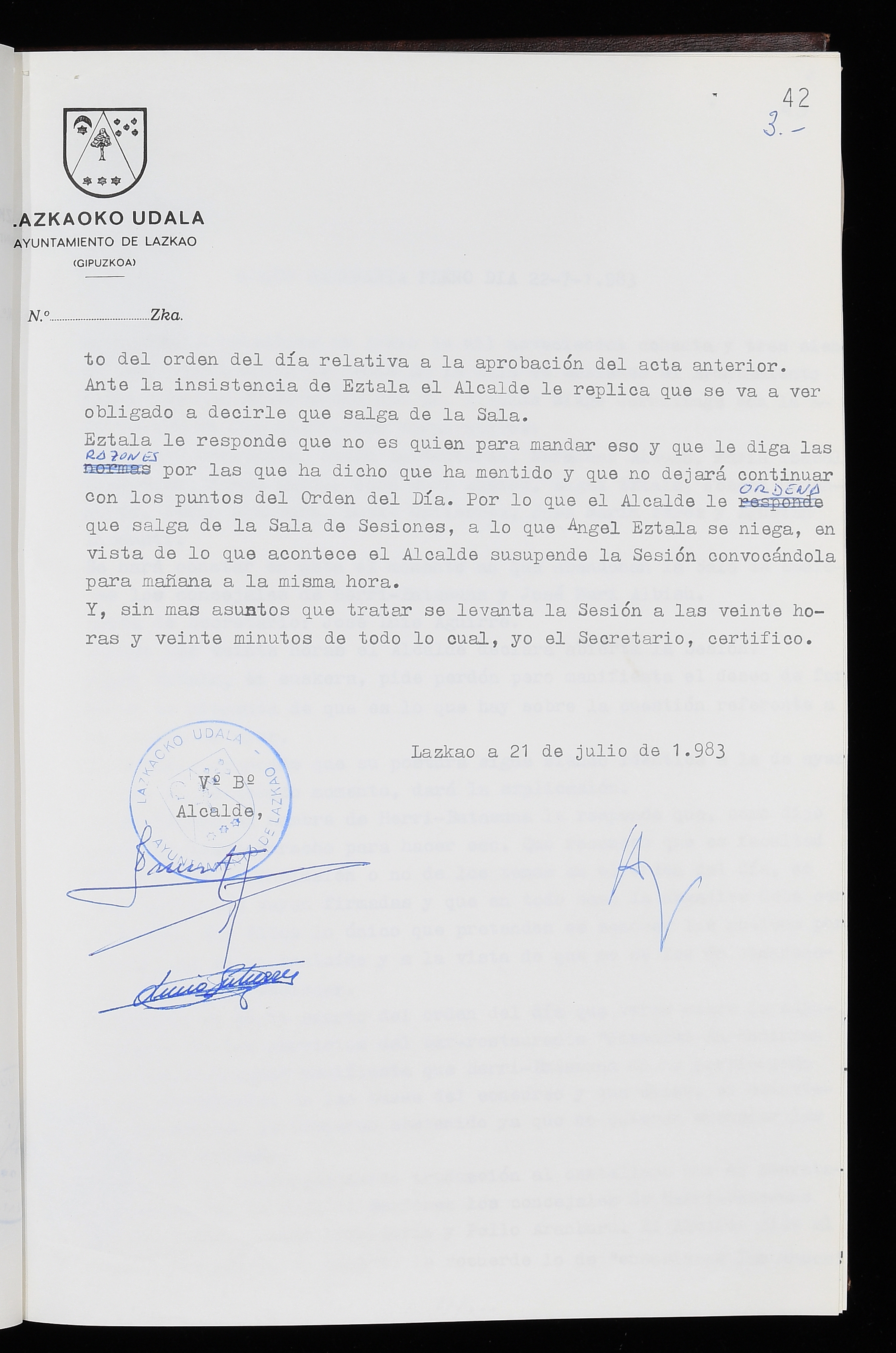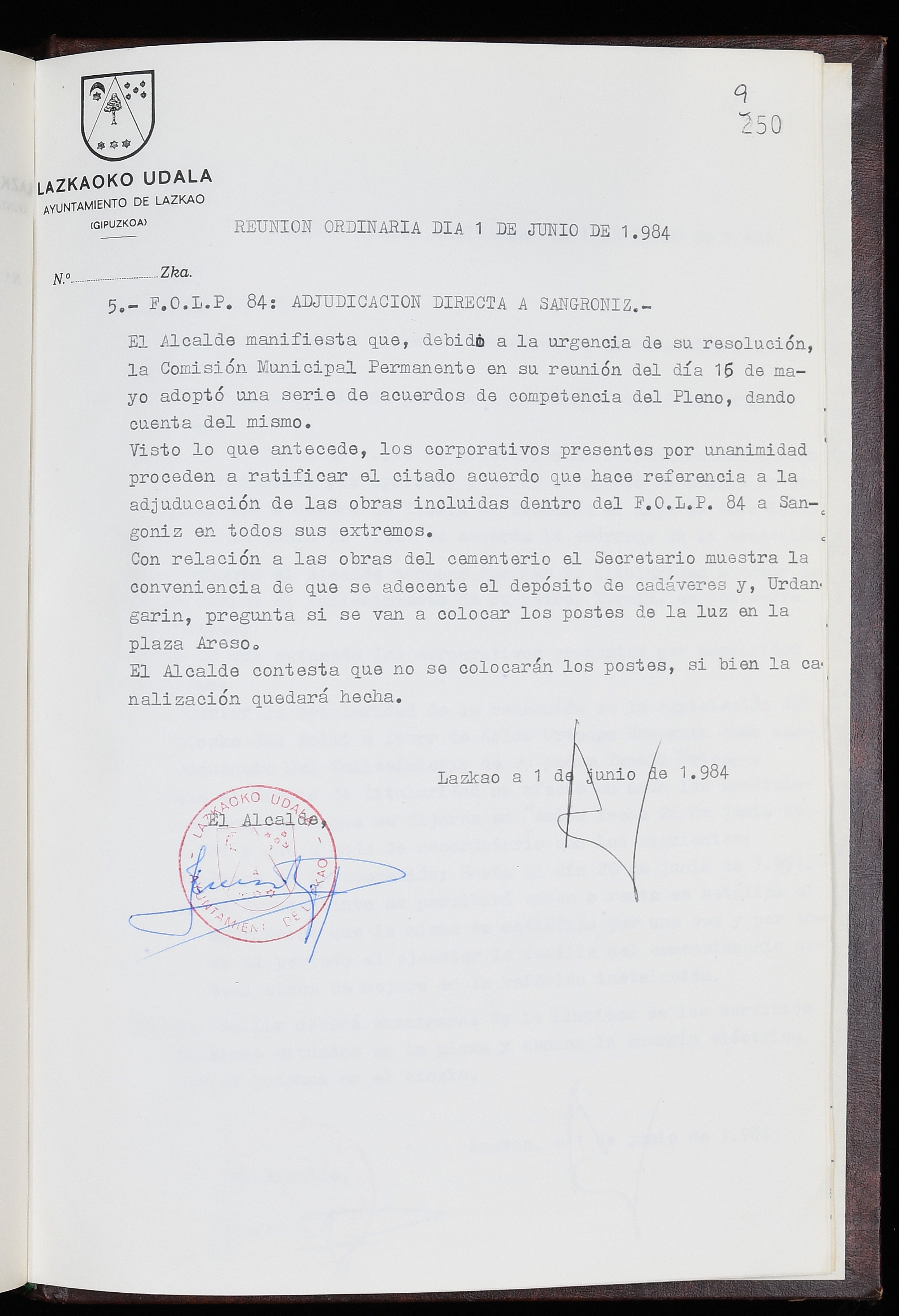 Log in to post commentsEdukiakSailkapenaFuntsaLazkaoko Udal ArtxiboaAtalakUdal AktakSailkapena1.1.4. Osoko Bilkuraren akta liburuakSailkapen berriaOsoko Bilkurako akta liburuakMultimediaIrudiakIdentifikazioaSignaturaakta liburua I-035Hasiera1983-05-23Amaiera1984-05-30AutoritateakTokiaLazkaoLog in to post commentsAkta eratu
