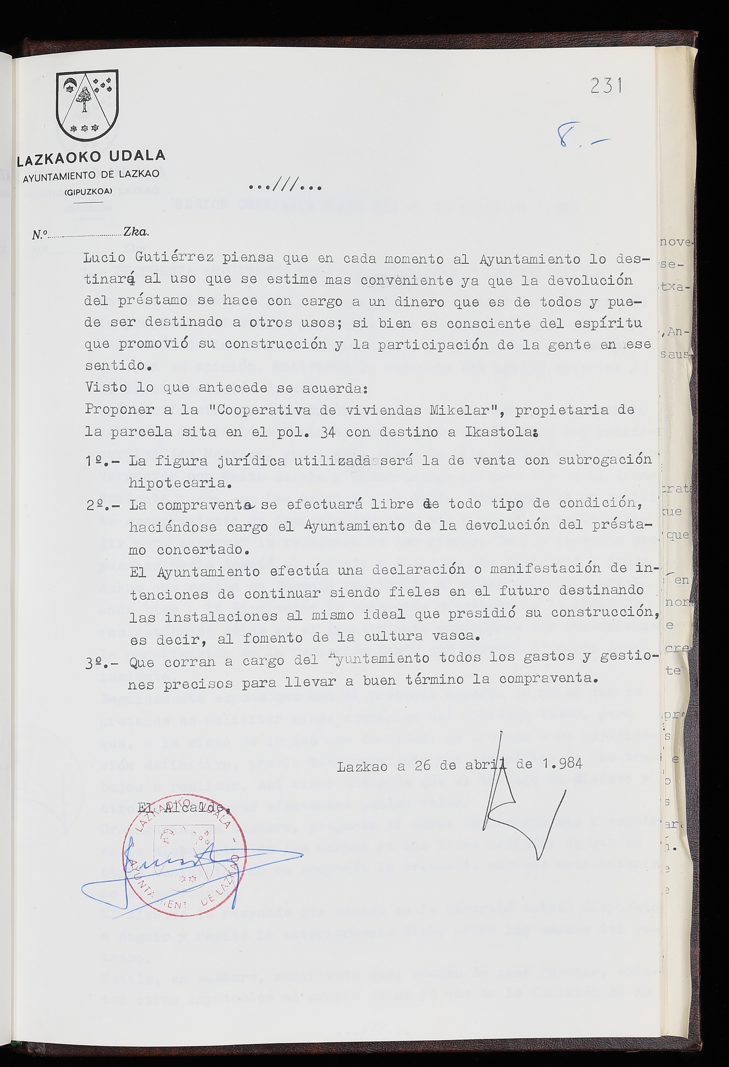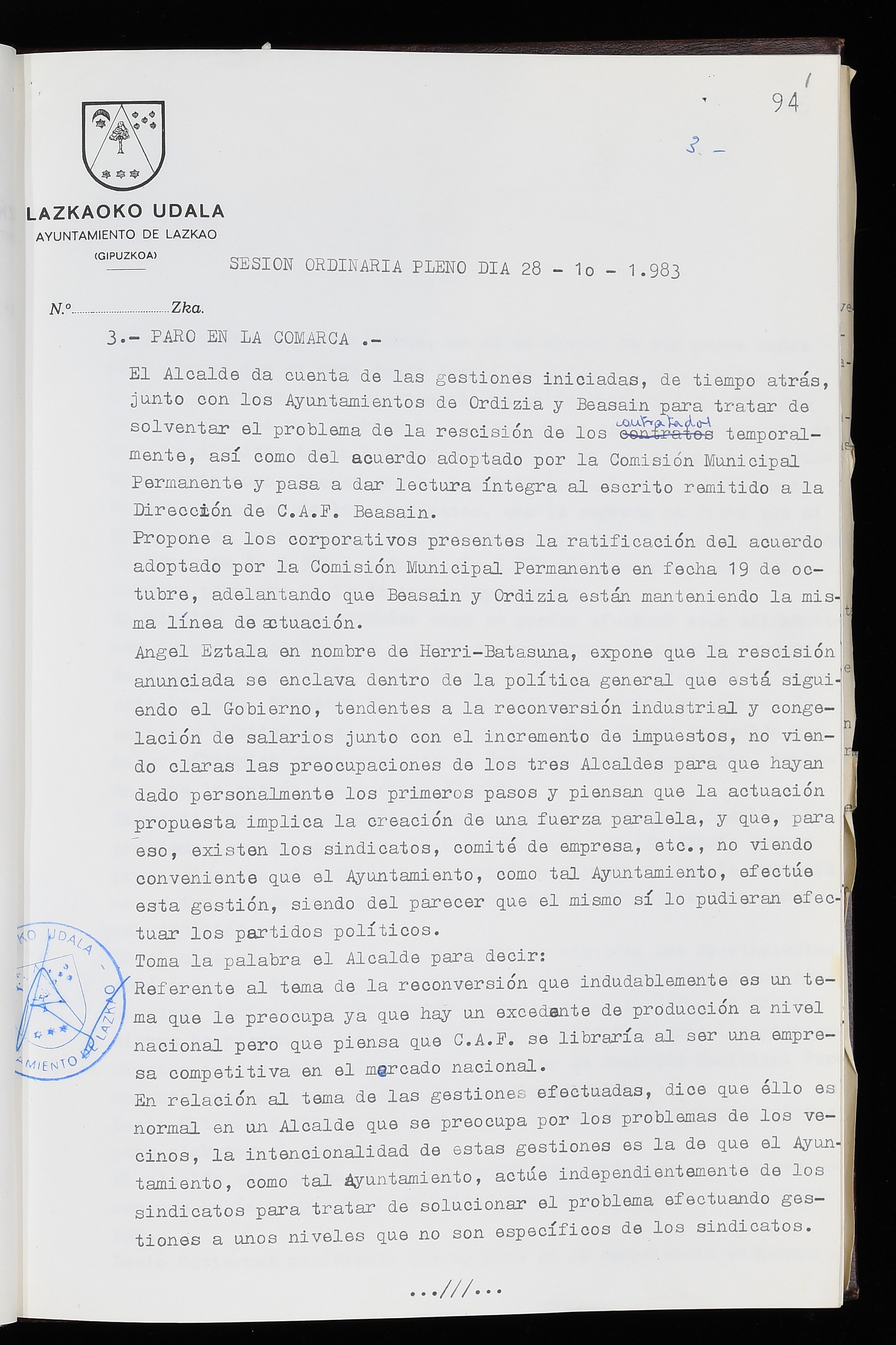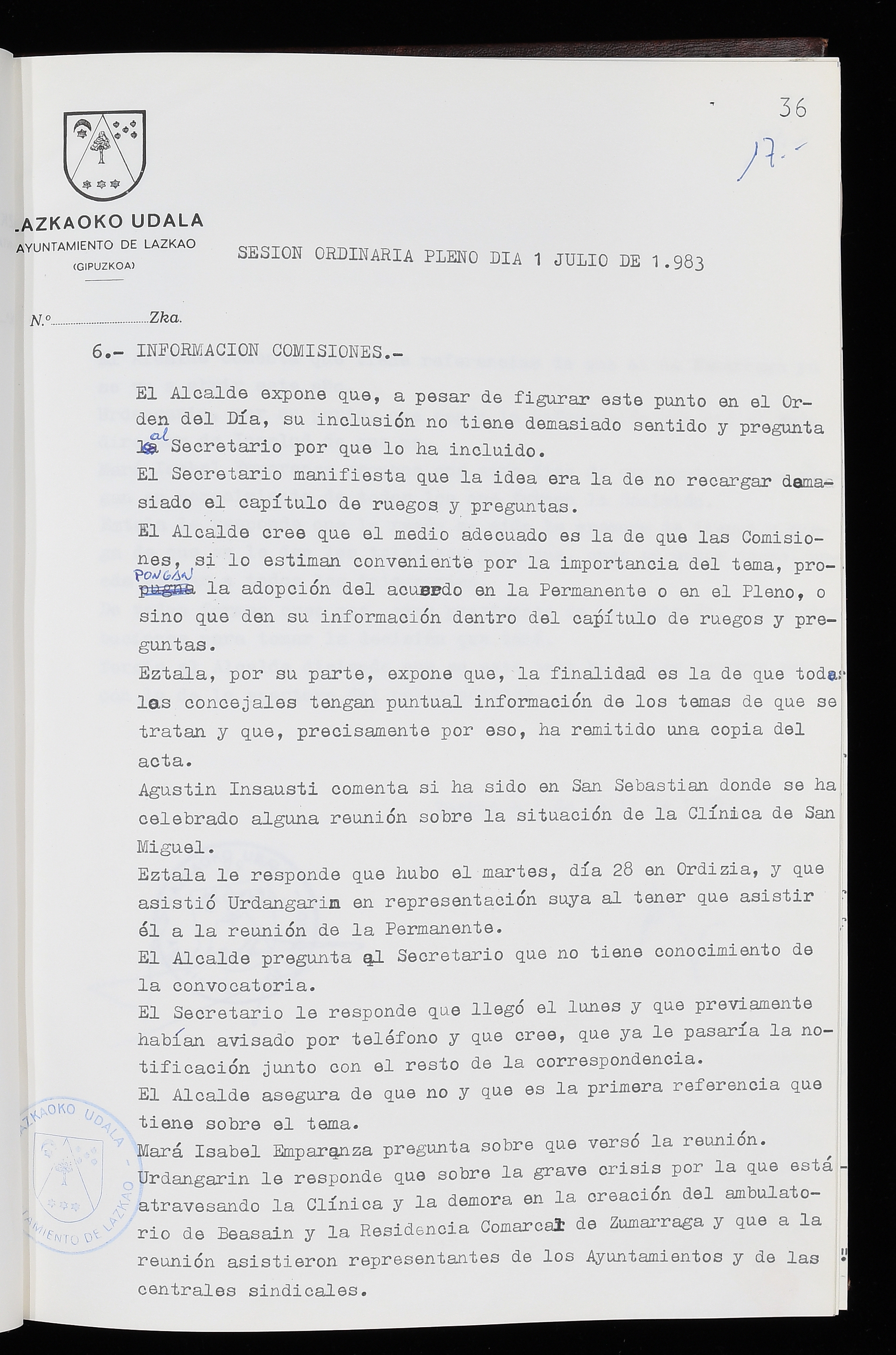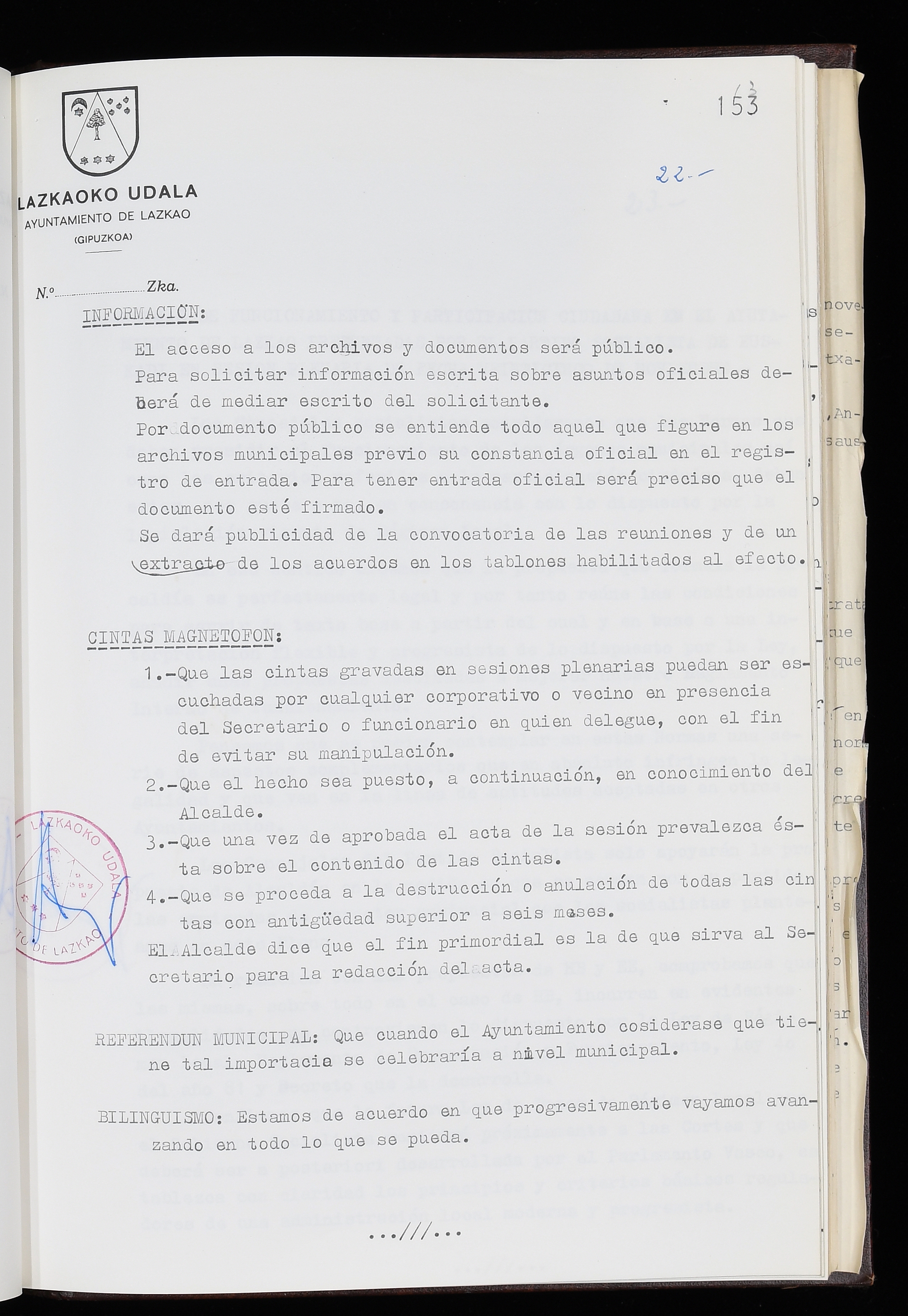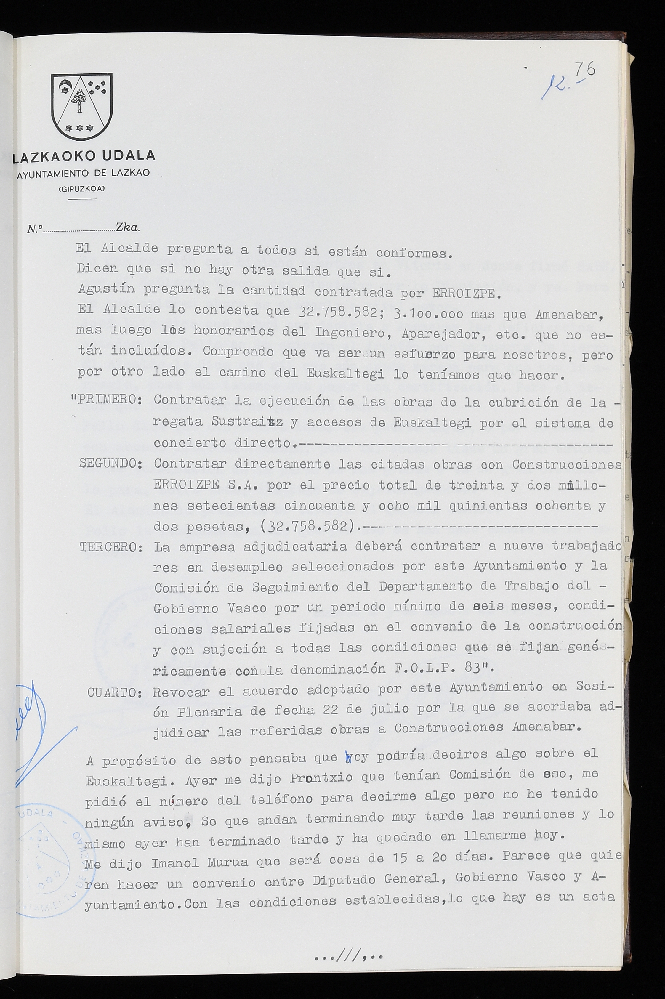 Log in to post commentsEdukiakSailkapenaFuntsaLazkaoko Udal ArtxiboaAtalakUdal AktakSailkapena1.1.4. Osoko Bilkuraren akta liburuakSailkapen berriaOsoko Bilkurako akta liburuakMultimediaIrudiakIdentifikazioaSignaturaakta liburua I-035Hasiera1983-05-23Amaiera1984-05-30AutoritateakTokiaLazkaoLog in to post commentsAkta eratu