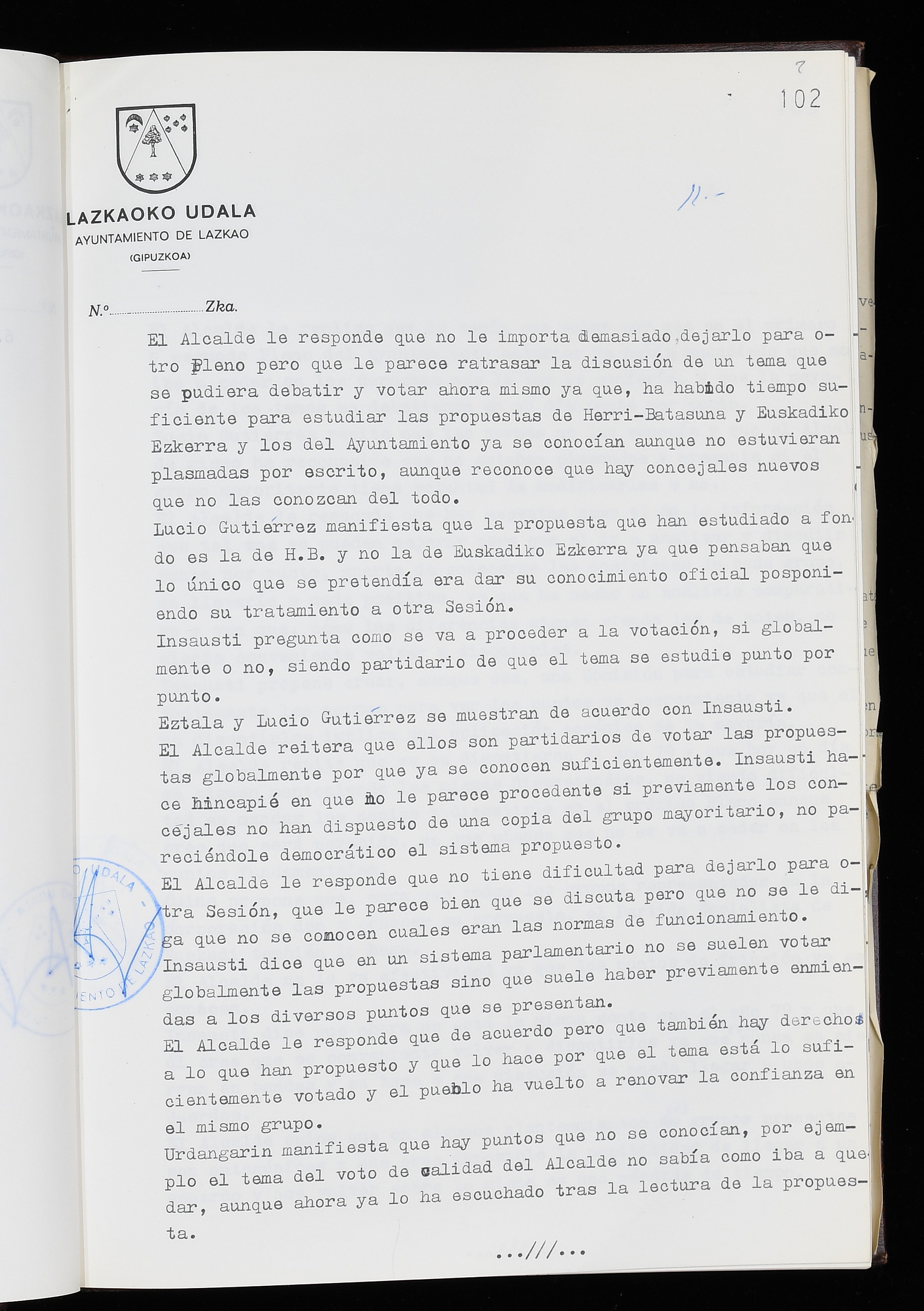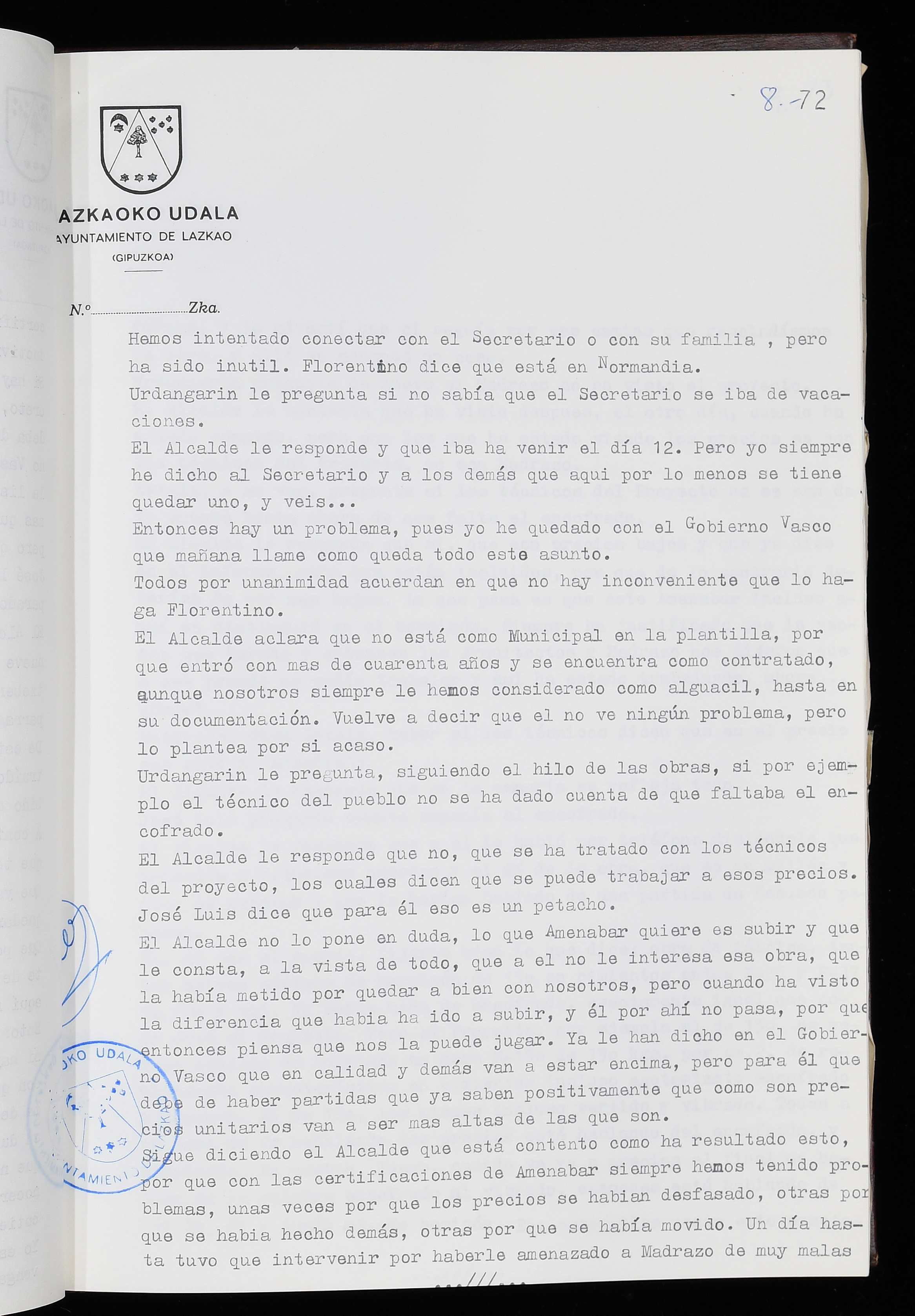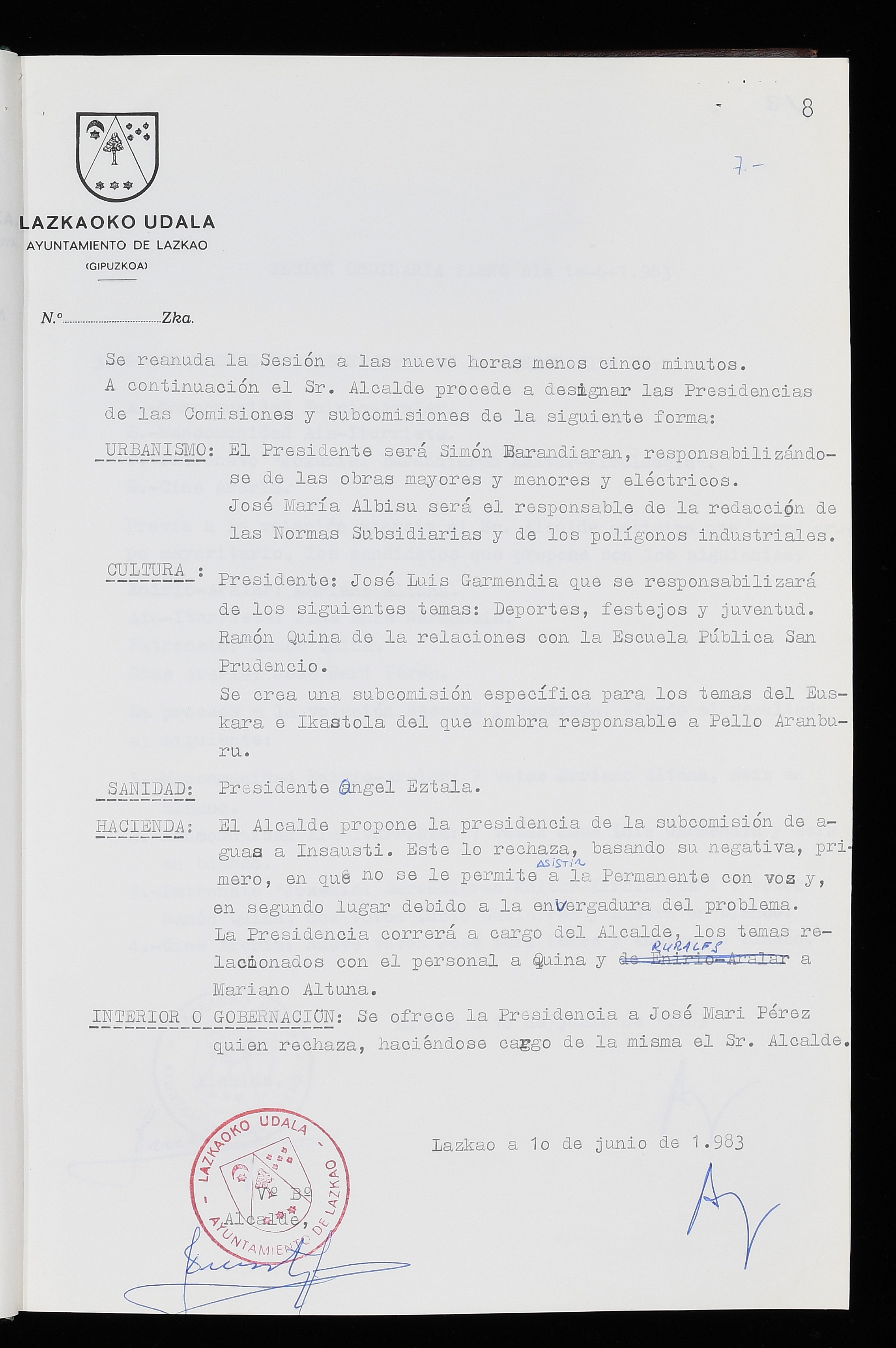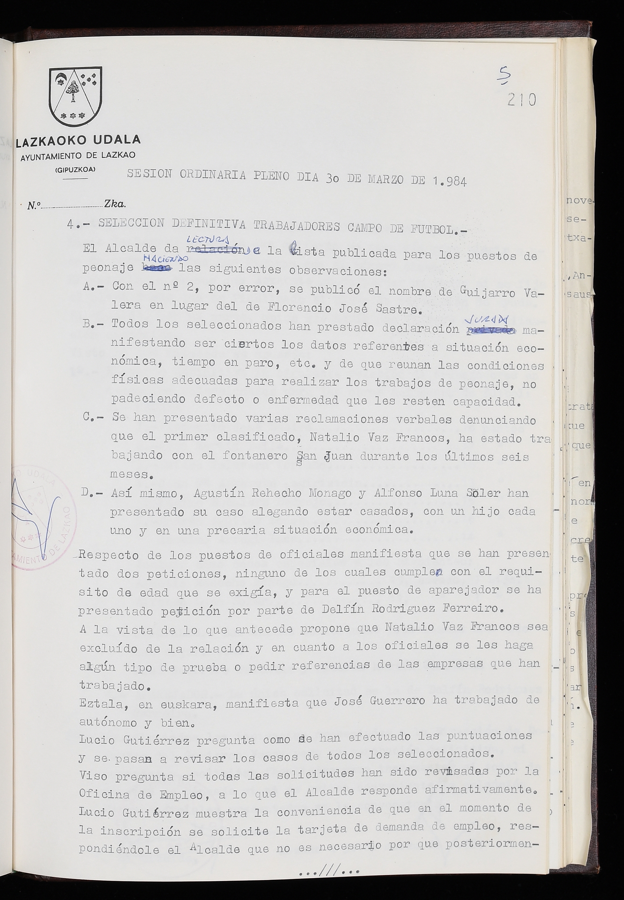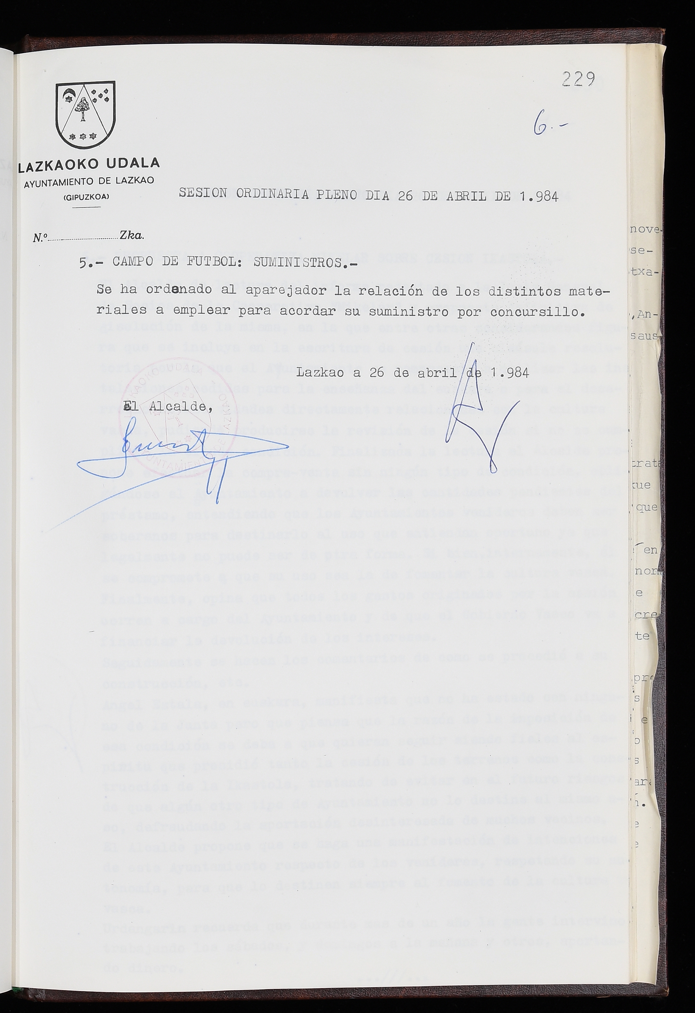 Log in to post commentsEdukiakSailkapenaFuntsaLazkaoko Udal ArtxiboaAtalakUdal AktakSailkapena1.1.4. Osoko Bilkuraren akta liburuakSailkapen berriaOsoko Bilkurako akta liburuakMultimediaIrudiakIdentifikazioaSignaturaakta liburua I-035Hasiera1983-05-23Amaiera1984-05-30AutoritateakTokiaLazkaoLog in to post commentsAkta eratu