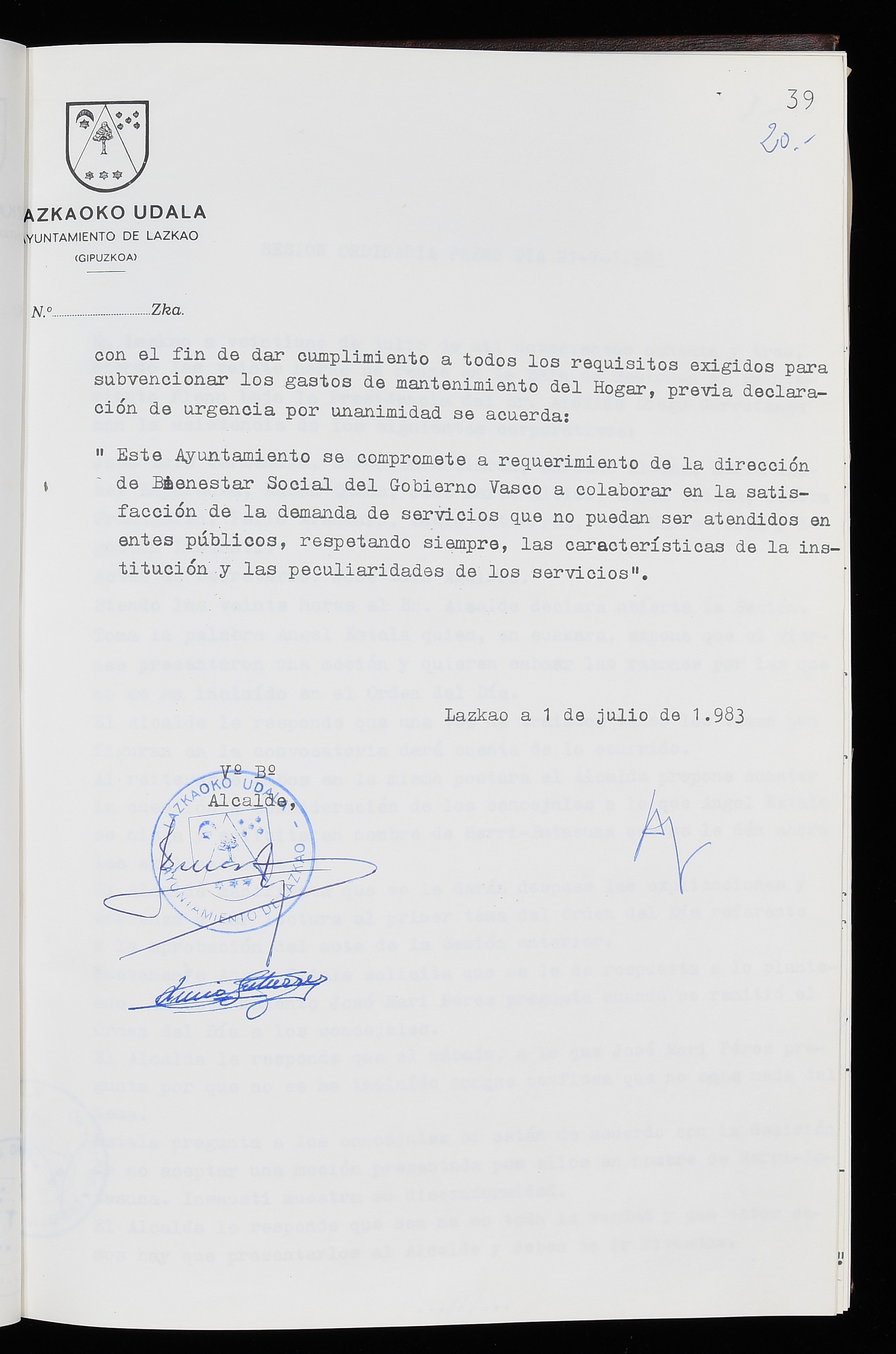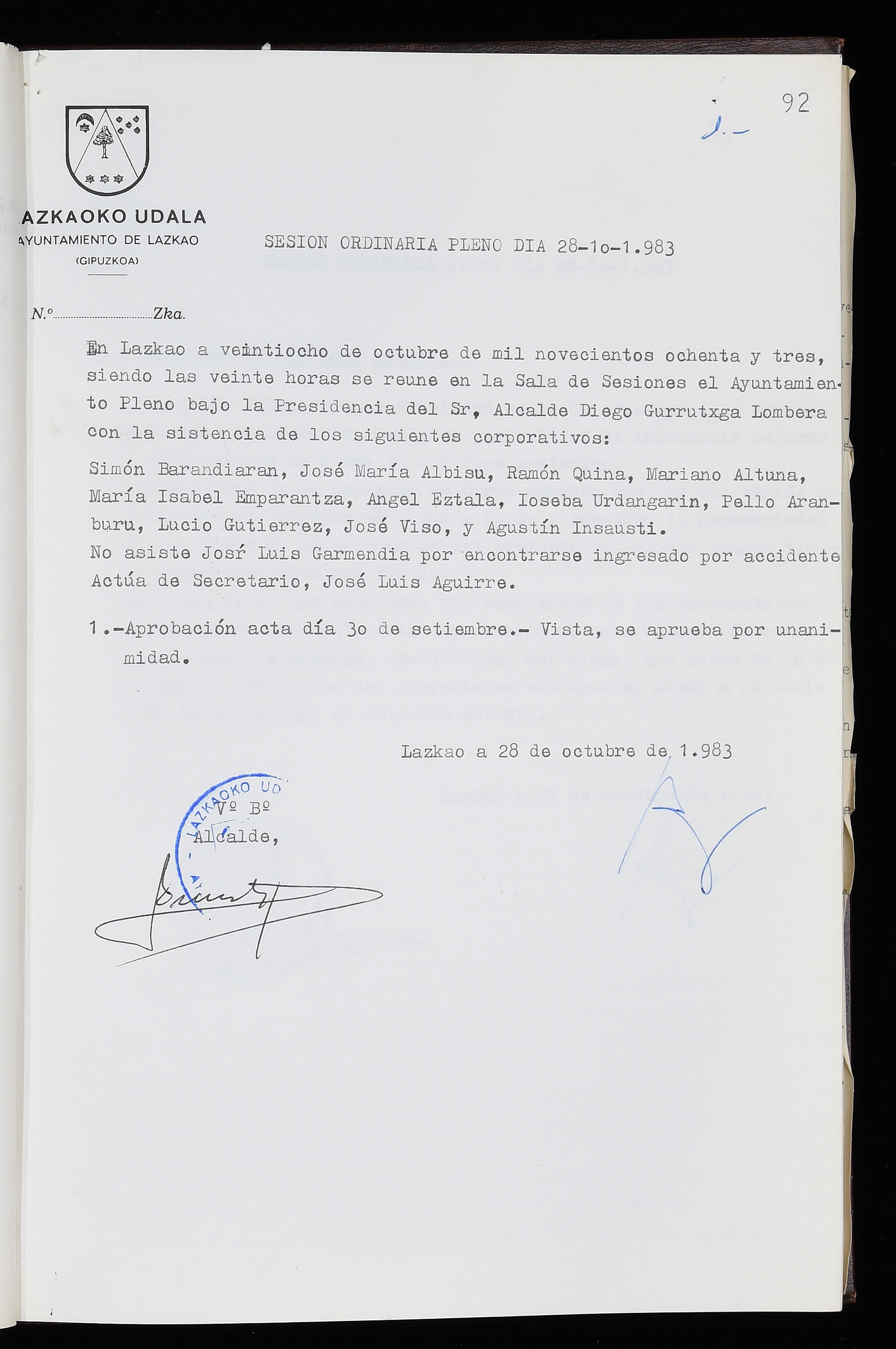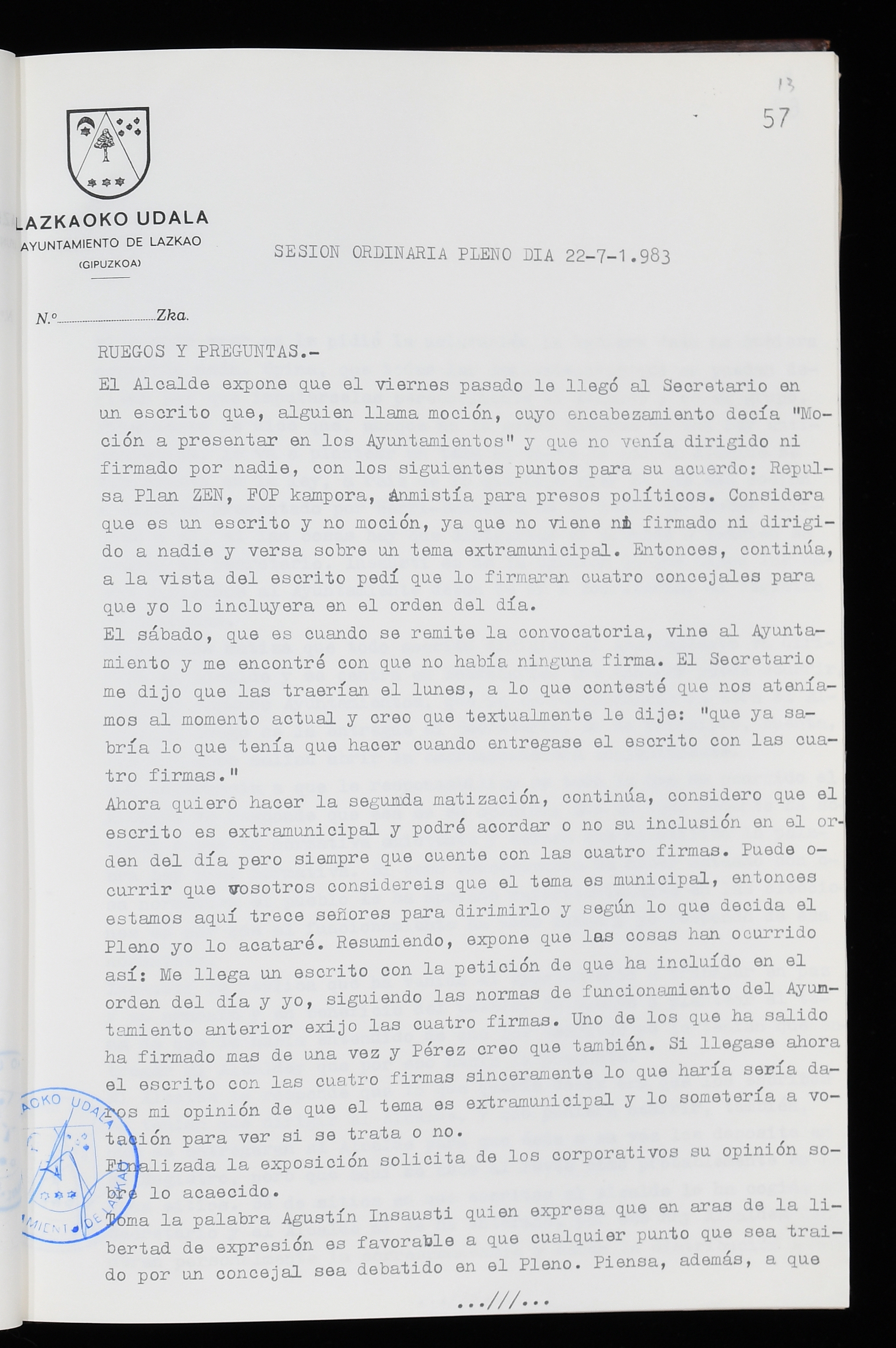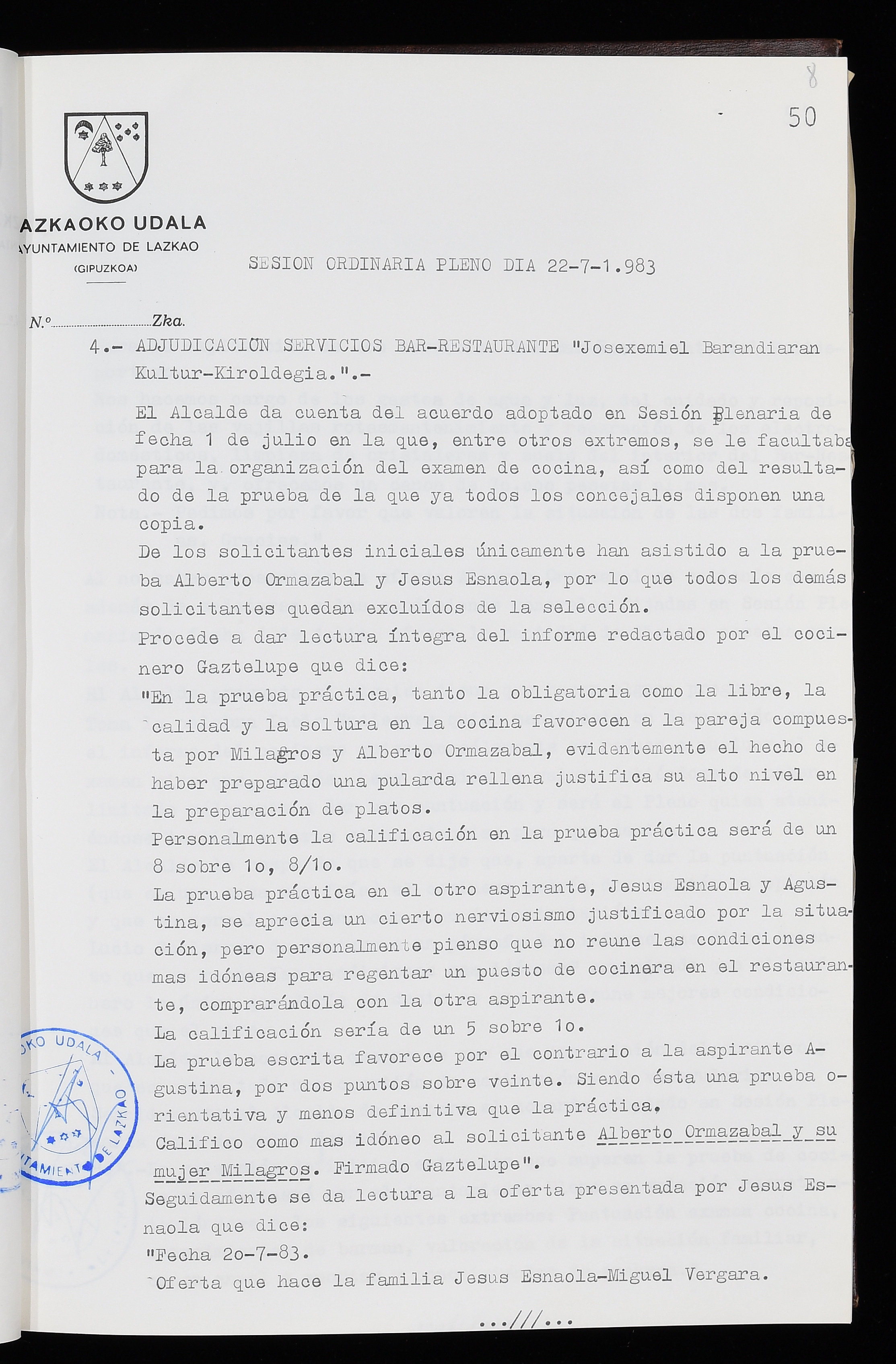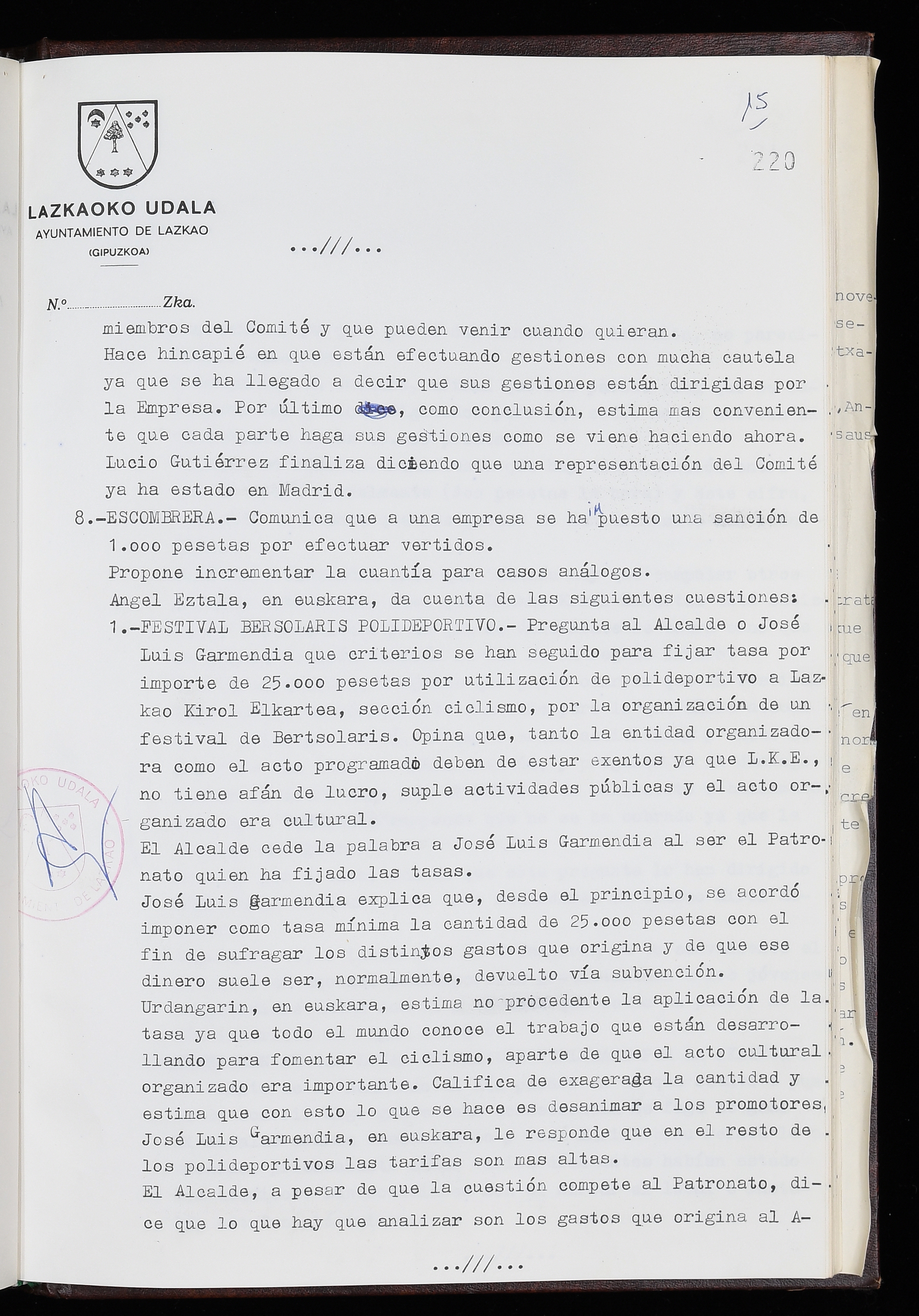 Log in to post commentsEdukiakSailkapenaFuntsaLazkaoko Udal ArtxiboaAtalakUdal AktakSailkapena1.1.4. Osoko Bilkuraren akta liburuakSailkapen berriaOsoko Bilkurako akta liburuakMultimediaIrudiakIdentifikazioaSignaturaakta liburua I-035Hasiera1983-05-23Amaiera1984-05-30AutoritateakTokiaLazkaoLog in to post commentsAkta eratu