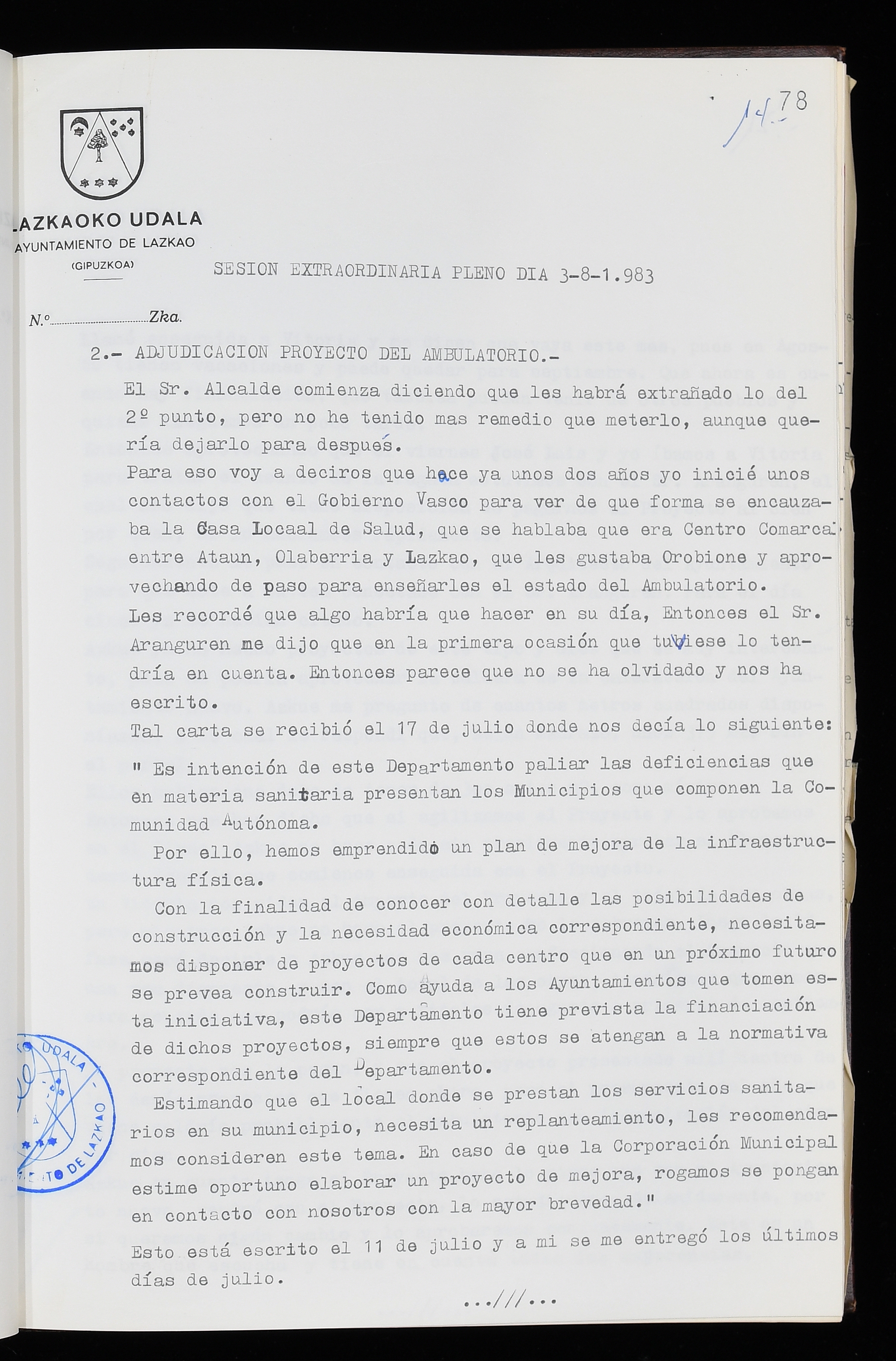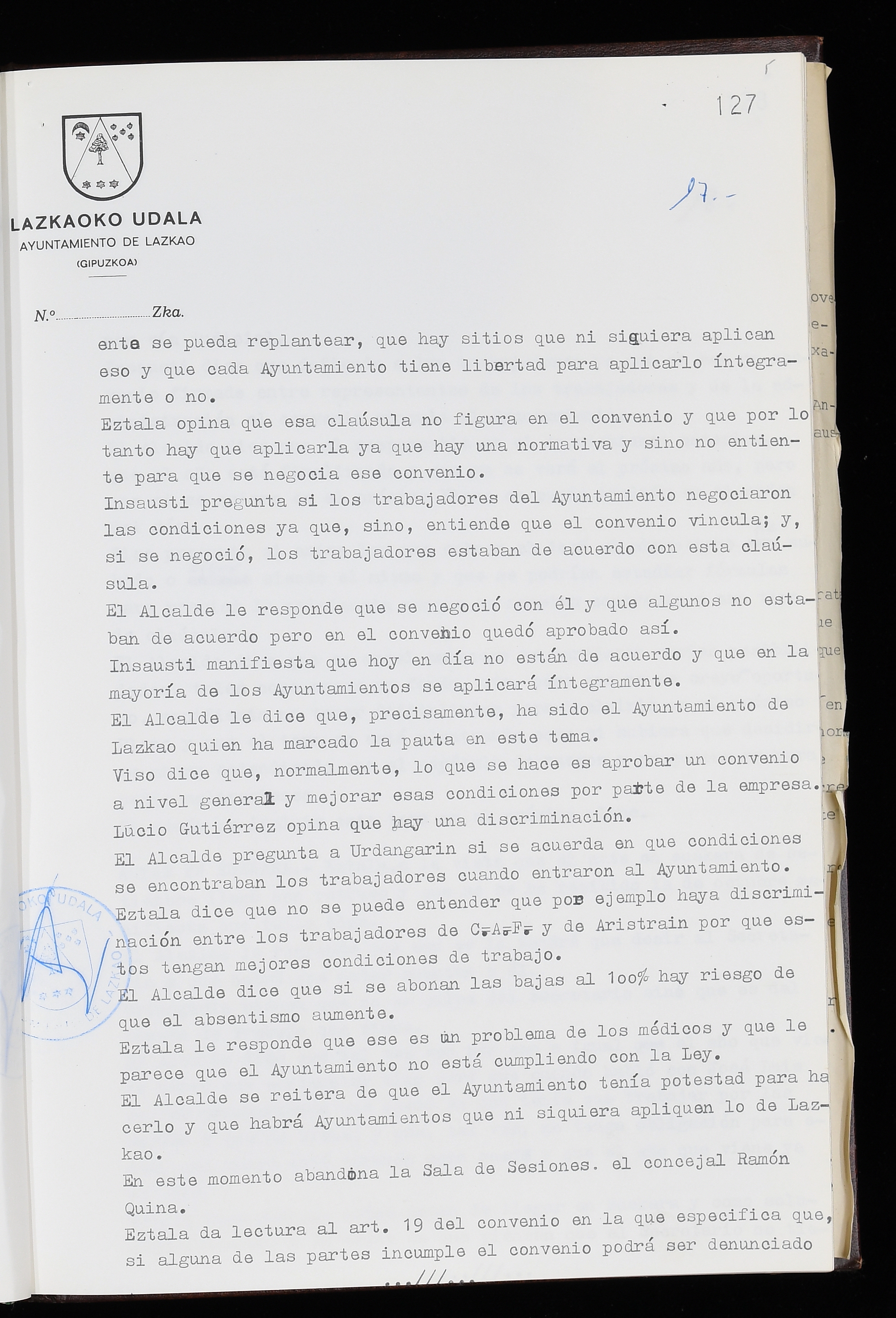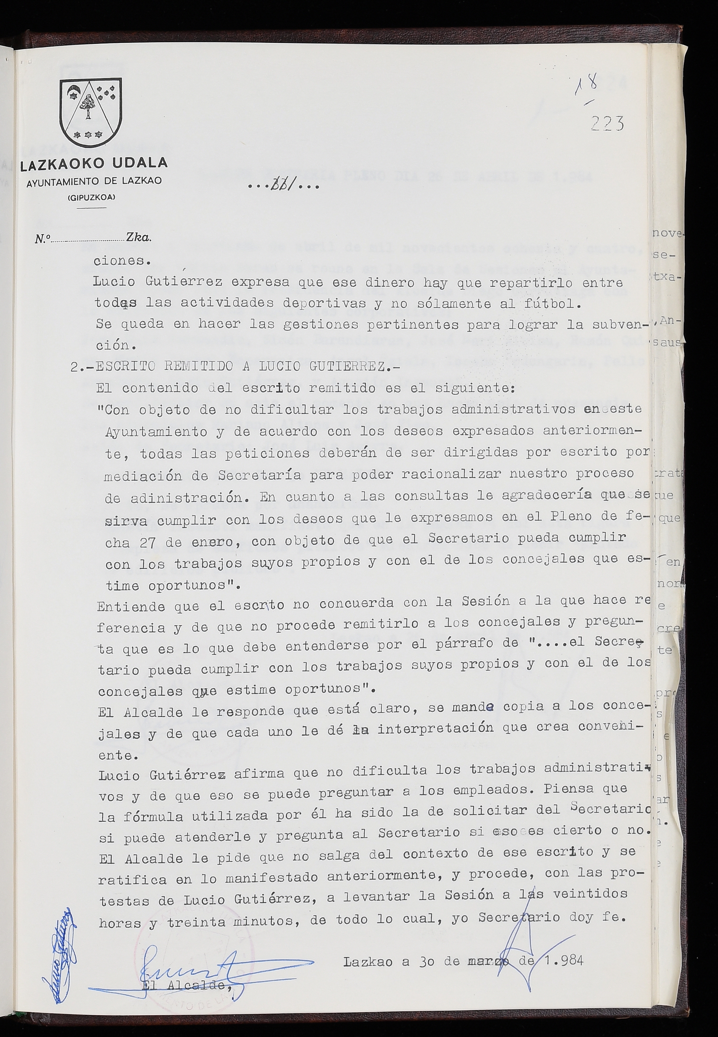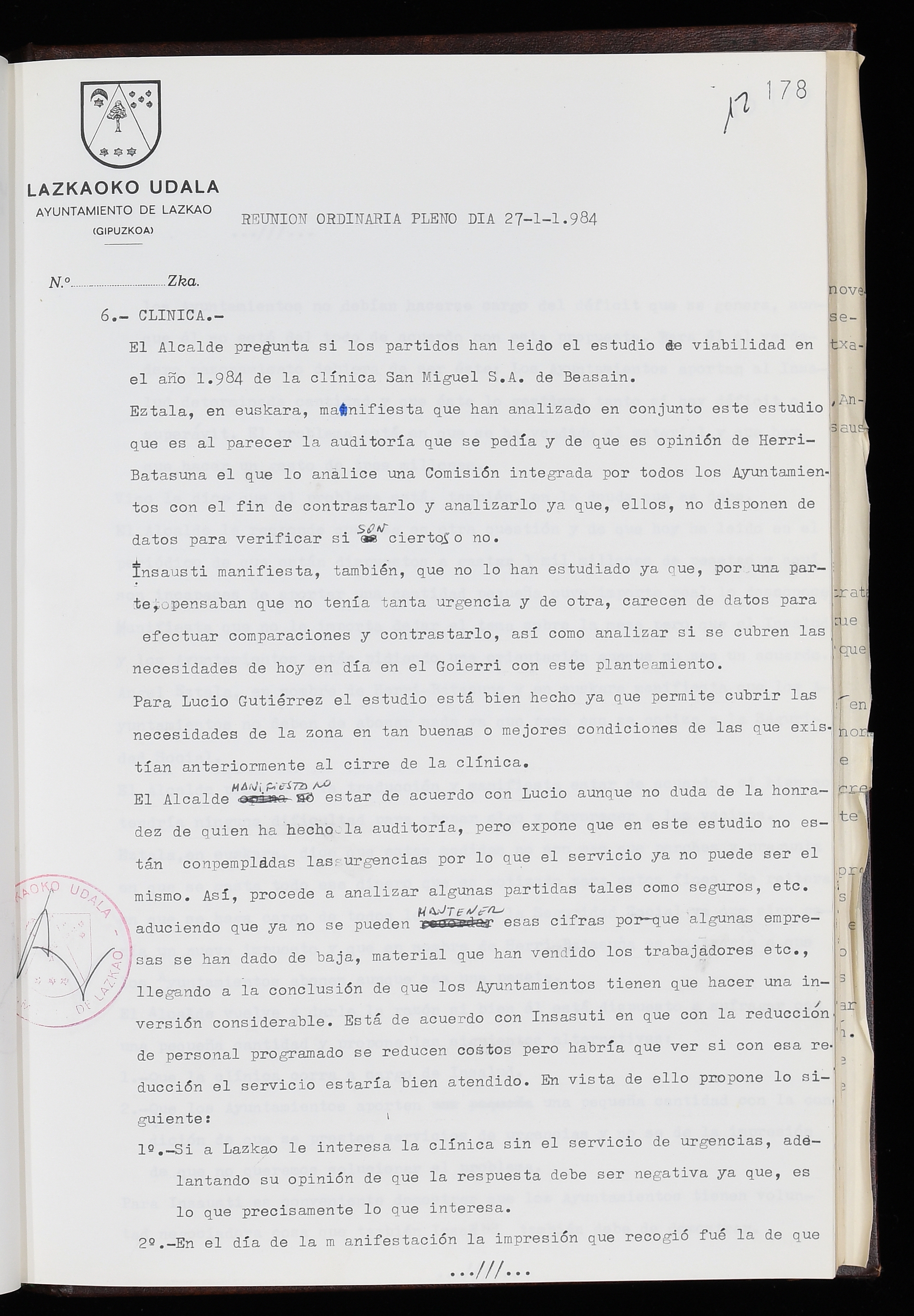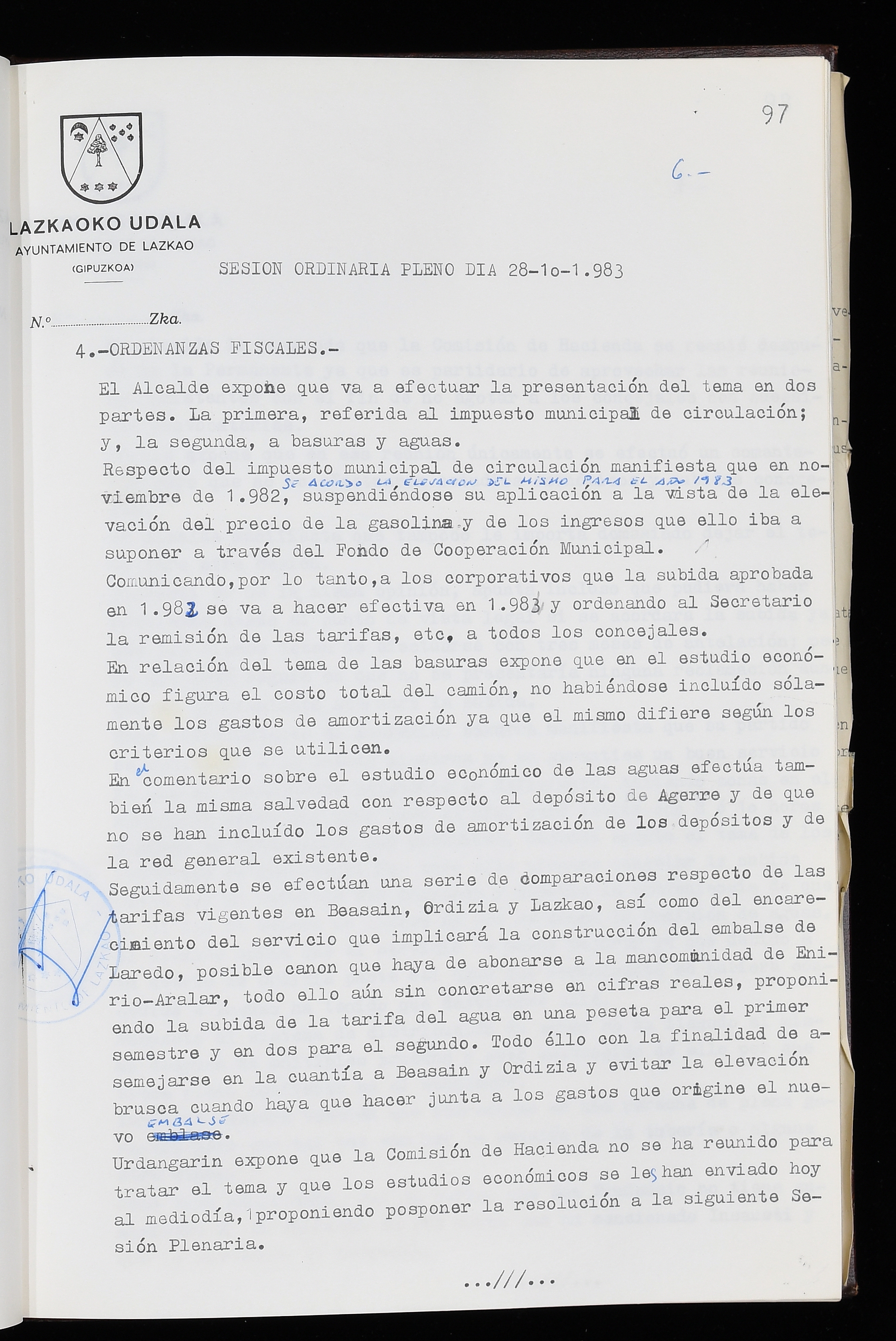 Log in to post commentsEdukiakSailkapenaFuntsaLazkaoko Udal ArtxiboaAtalakUdal AktakSailkapena1.1.4. Osoko Bilkuraren akta liburuakSailkapen berriaOsoko Bilkurako akta liburuakMultimediaIrudiakIdentifikazioaSignaturaakta liburua I-035Hasiera1983-05-23Amaiera1984-05-30AutoritateakTokiaLazkaoLog in to post commentsAkta eratu