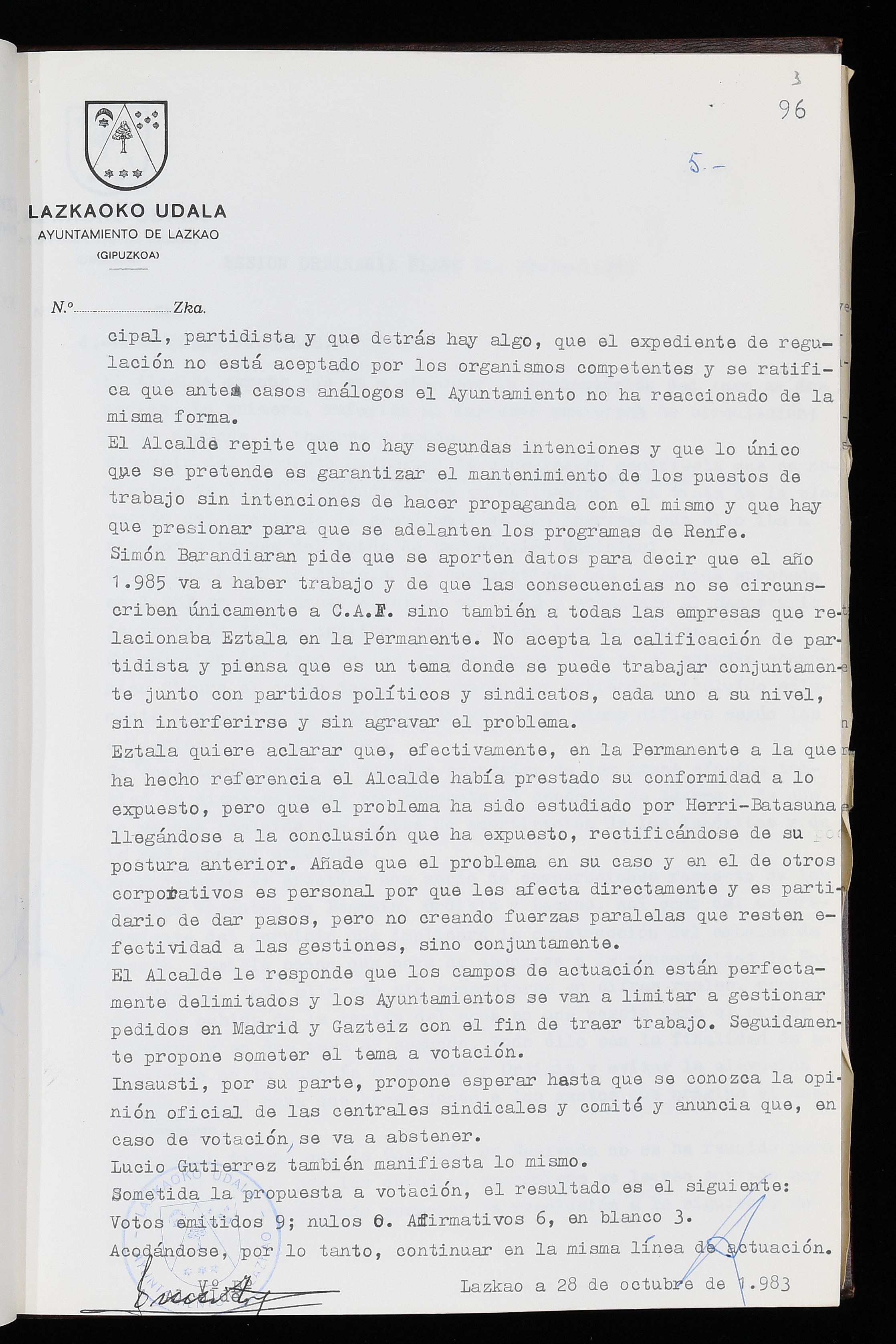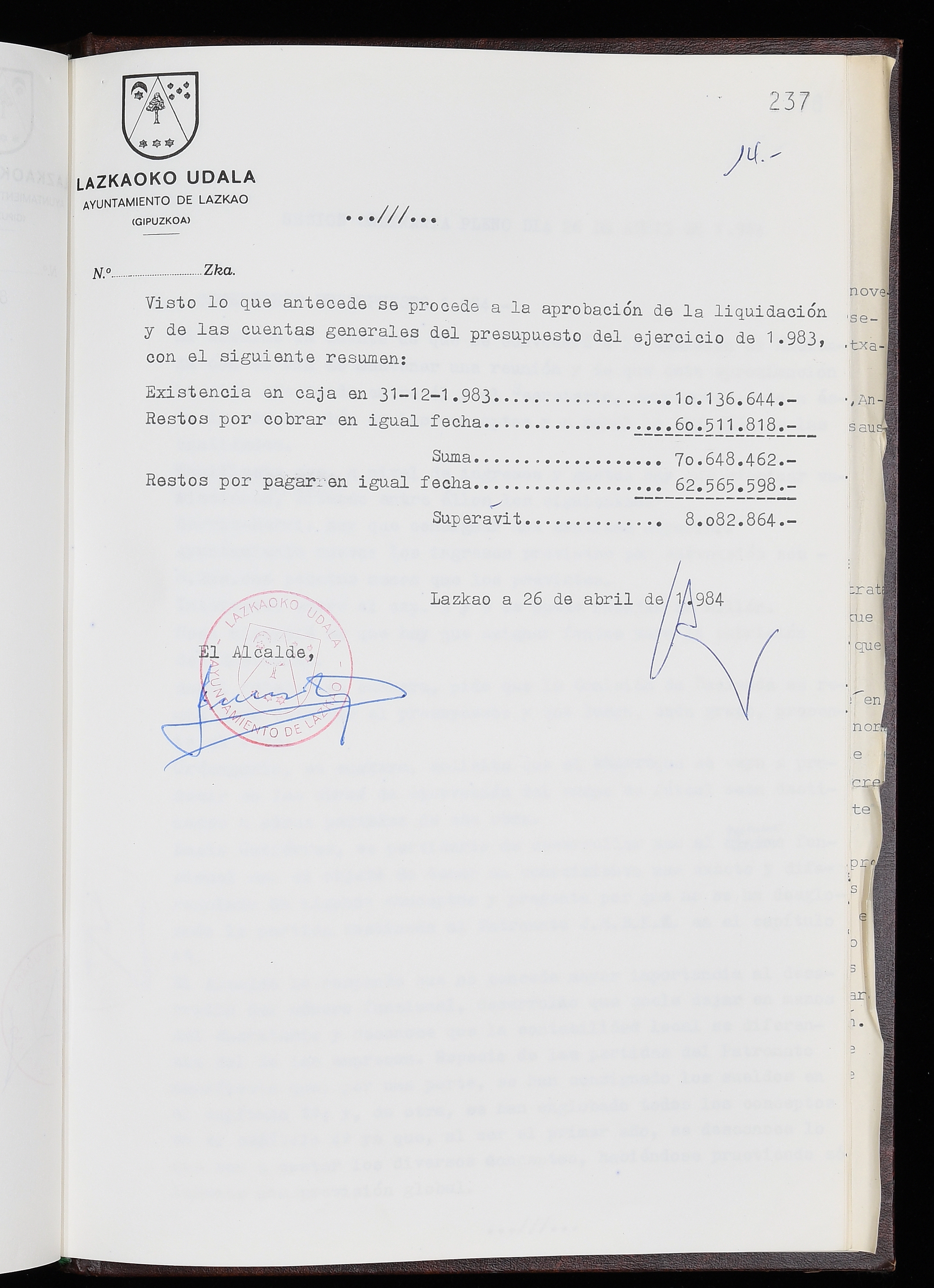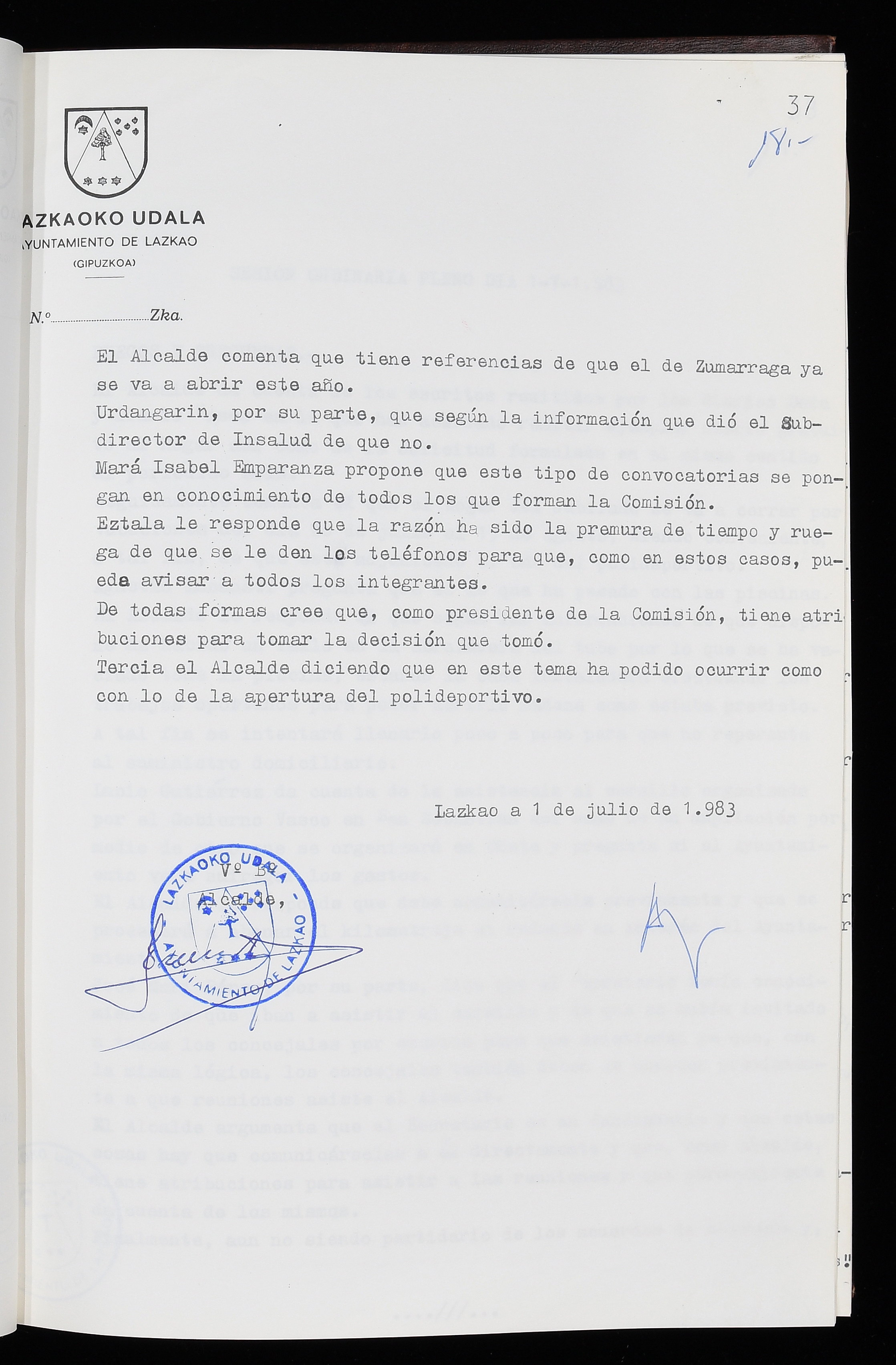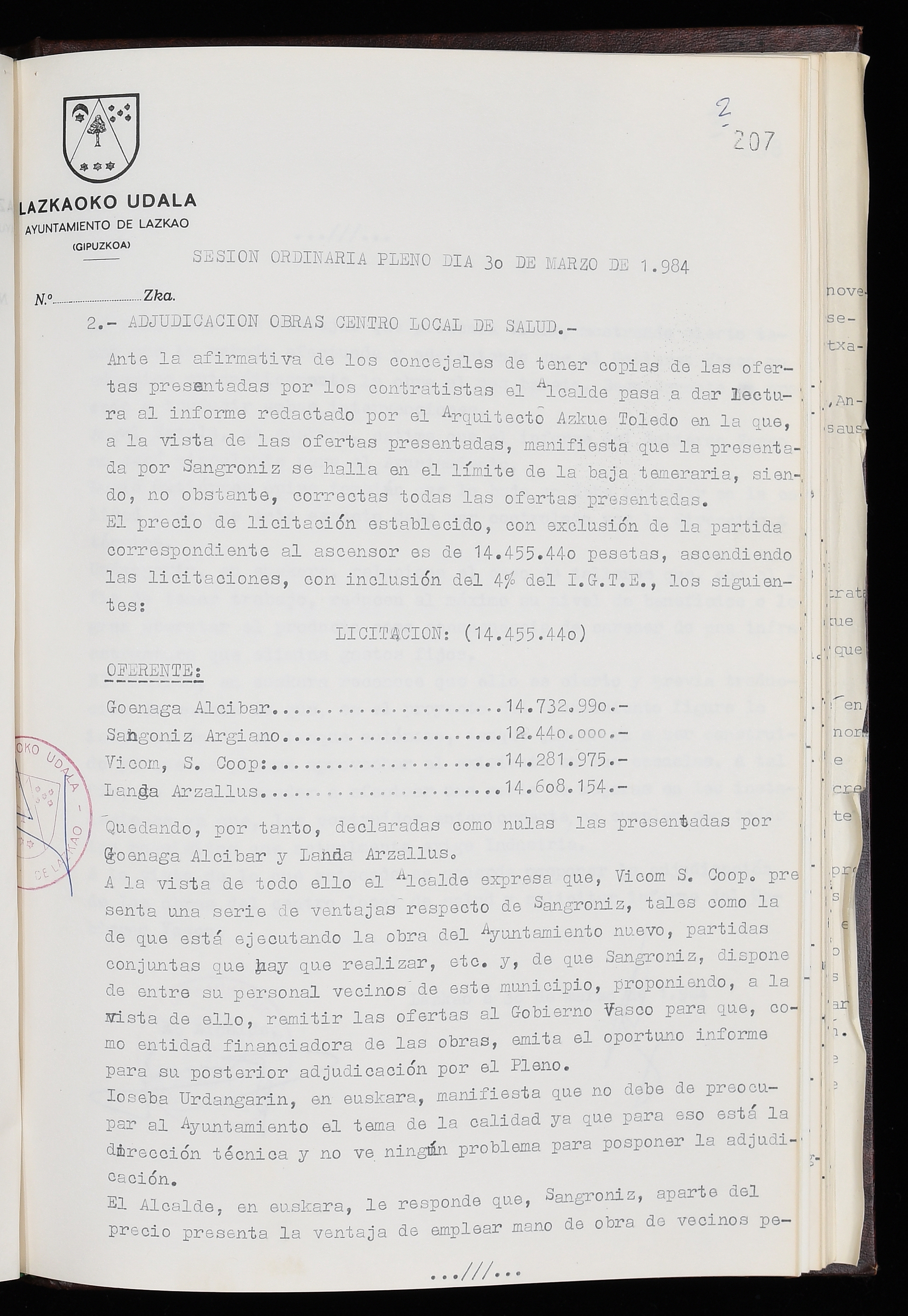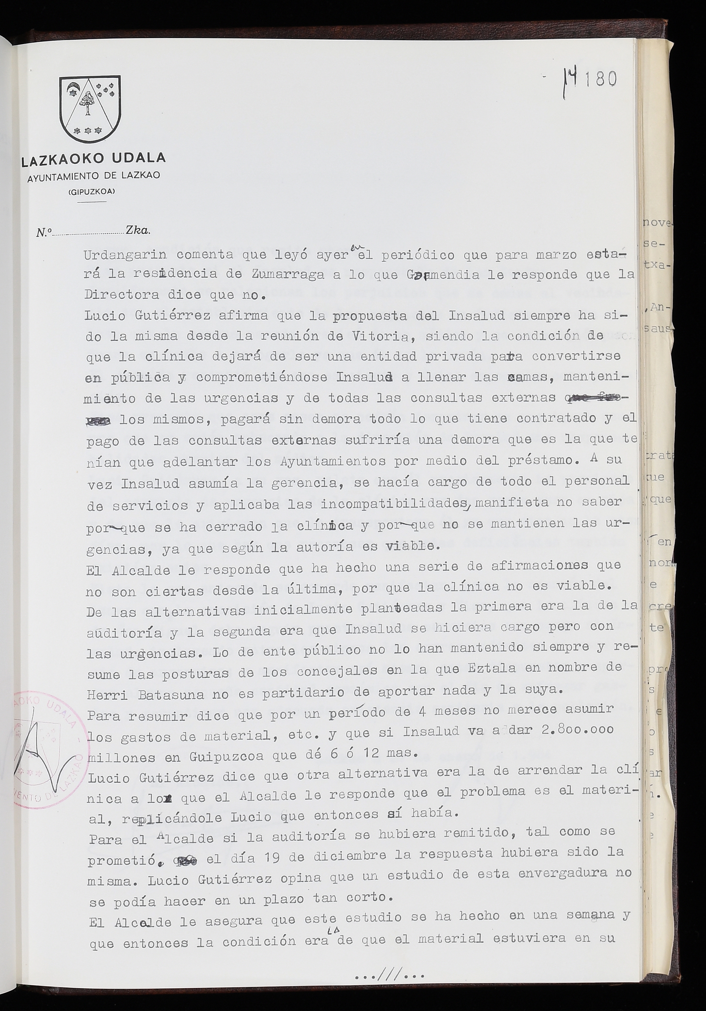 Log in to post commentsEdukiakSailkapenaFuntsaLazkaoko Udal ArtxiboaAtalakUdal AktakSailkapena1.1.4. Osoko Bilkuraren akta liburuakSailkapen berriaOsoko Bilkurako akta liburuakMultimediaIrudiakIdentifikazioaSignaturaakta liburua I-035Hasiera1983-05-23Amaiera1984-05-30AutoritateakTokiaLazkaoLog in to post commentsAkta eratu