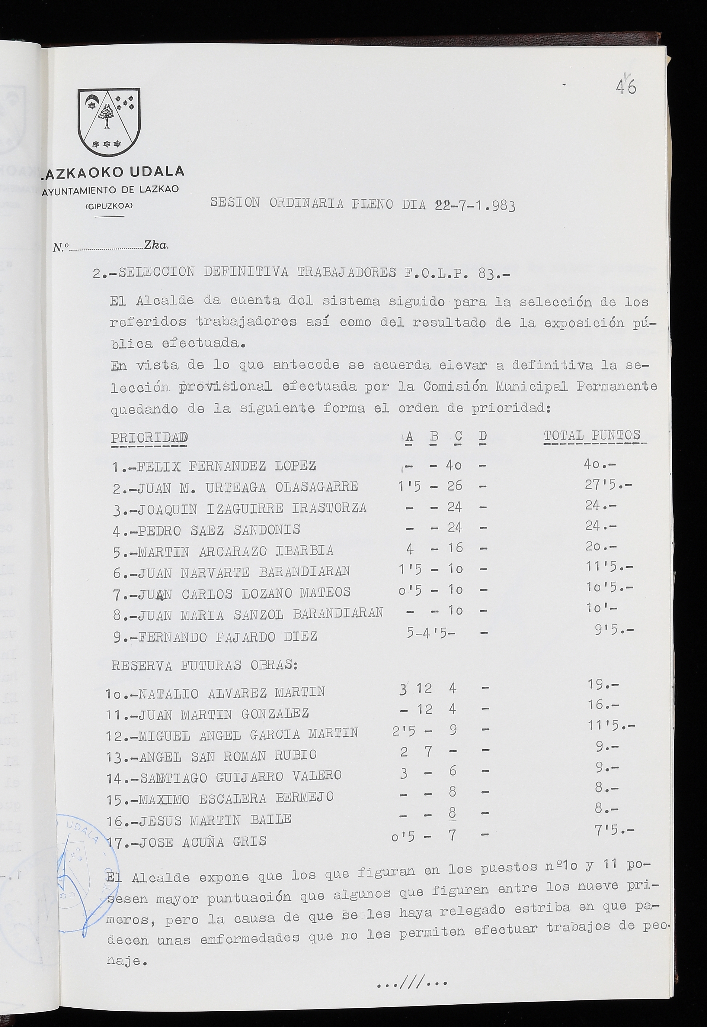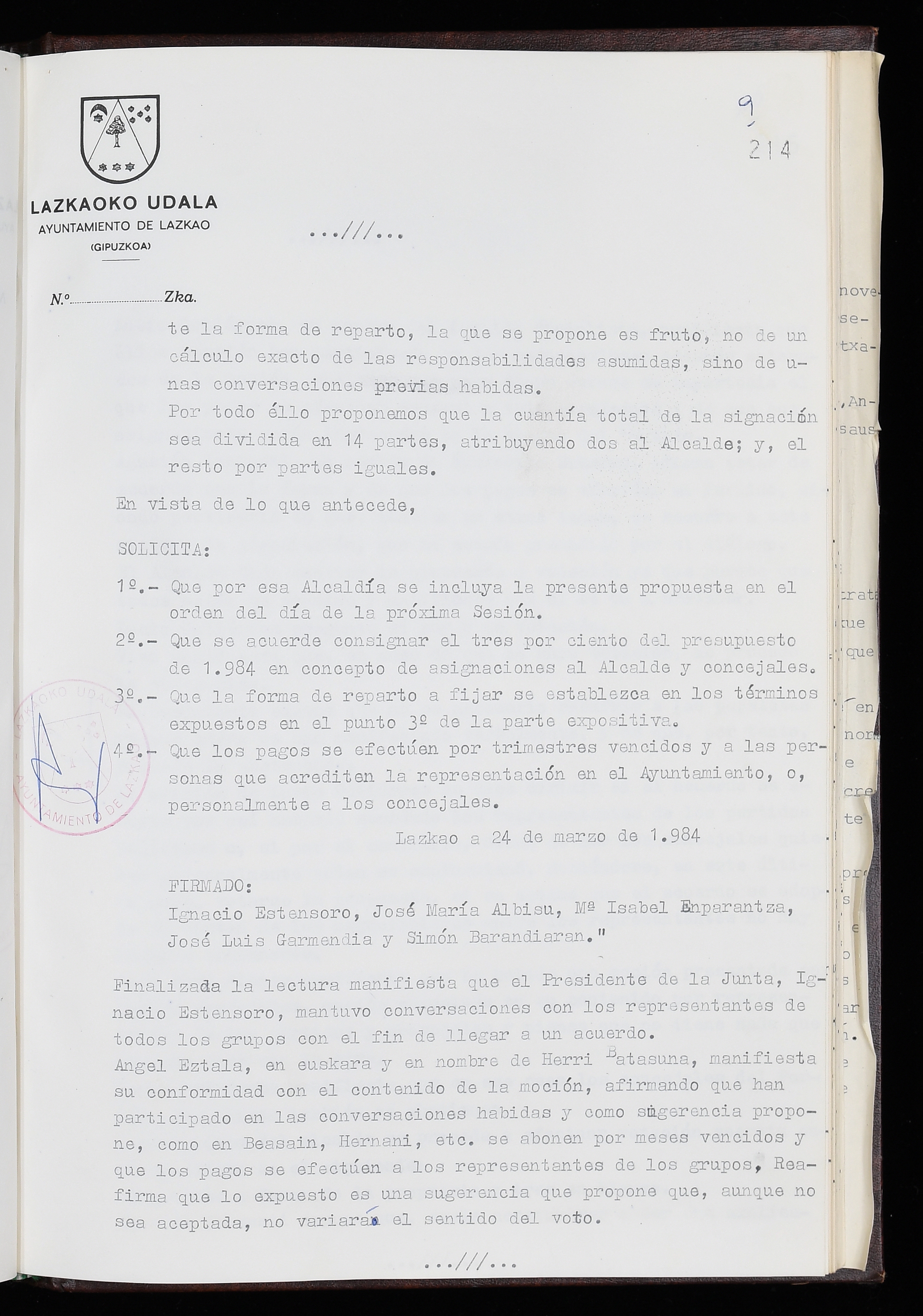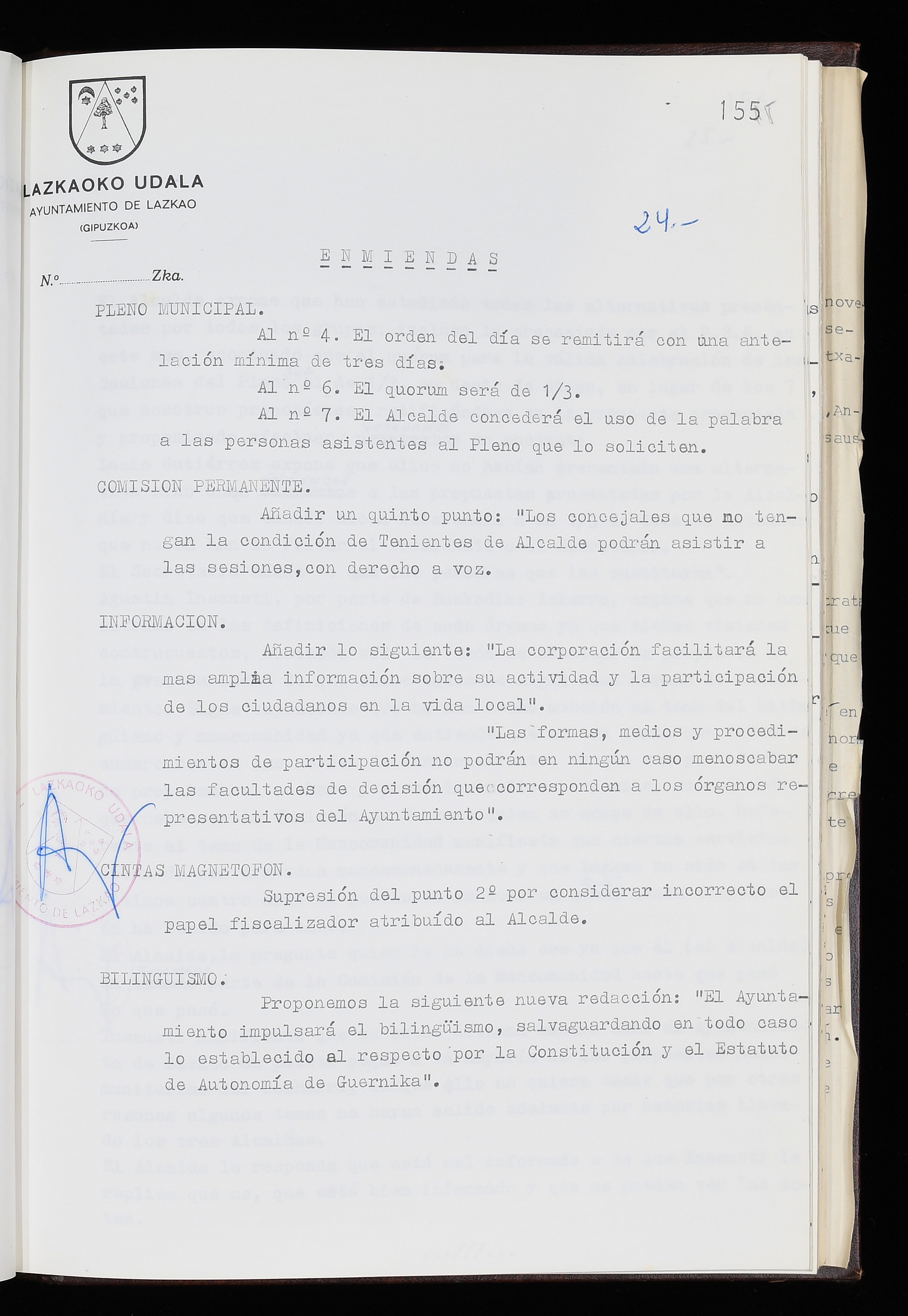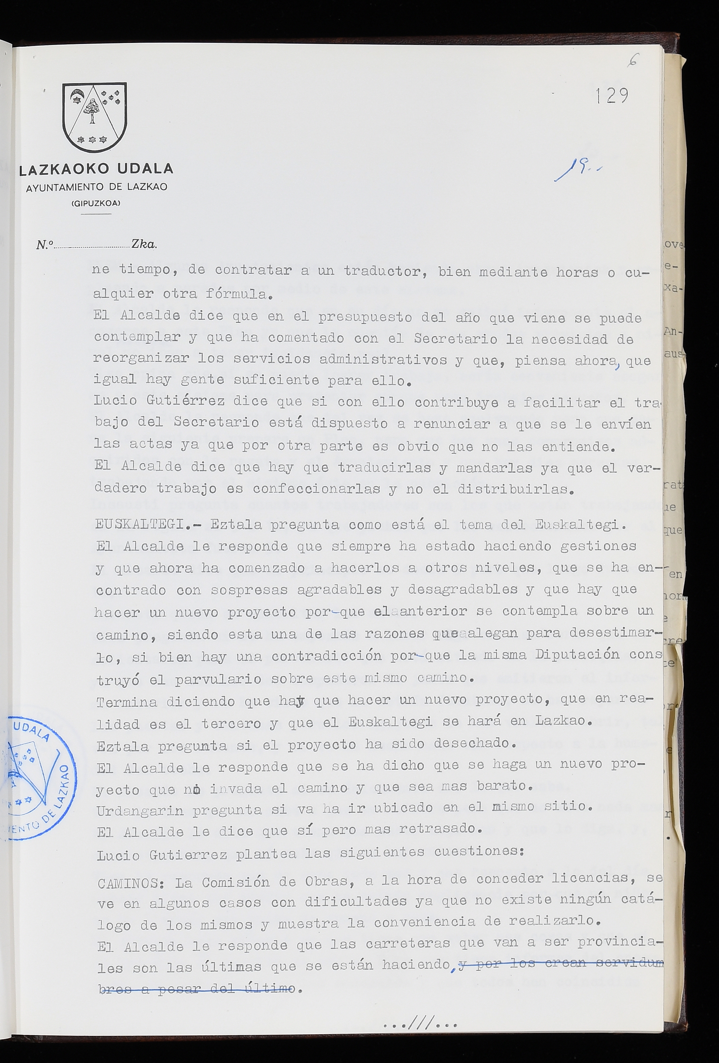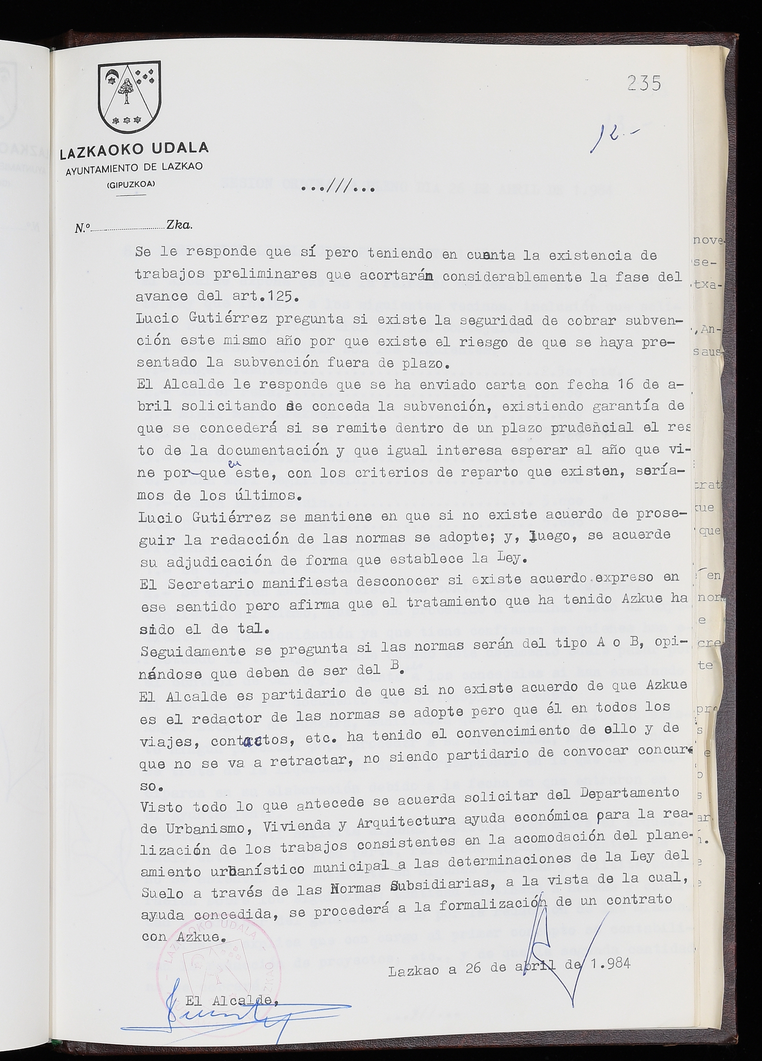 Log in to post commentsEdukiakSailkapenaFuntsaLazkaoko Udal ArtxiboaAtalakUdal AktakSailkapena1.1.4. Osoko Bilkuraren akta liburuakSailkapen berriaOsoko Bilkurako akta liburuakMultimediaIrudiakIdentifikazioaSignaturaakta liburua I-035Hasiera1983-05-23Amaiera1984-05-30AutoritateakTokiaLazkaoLog in to post commentsAkta eratu
