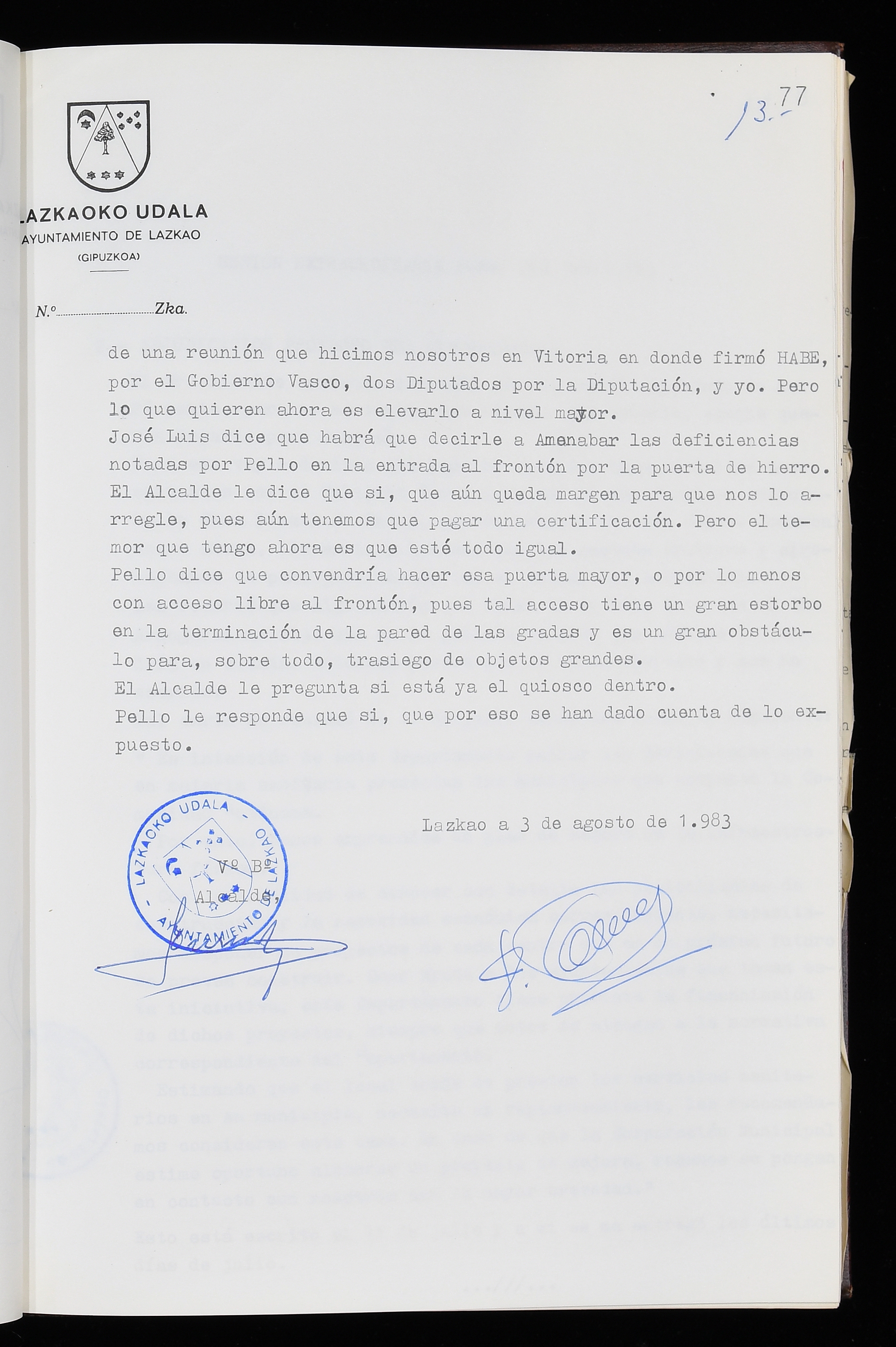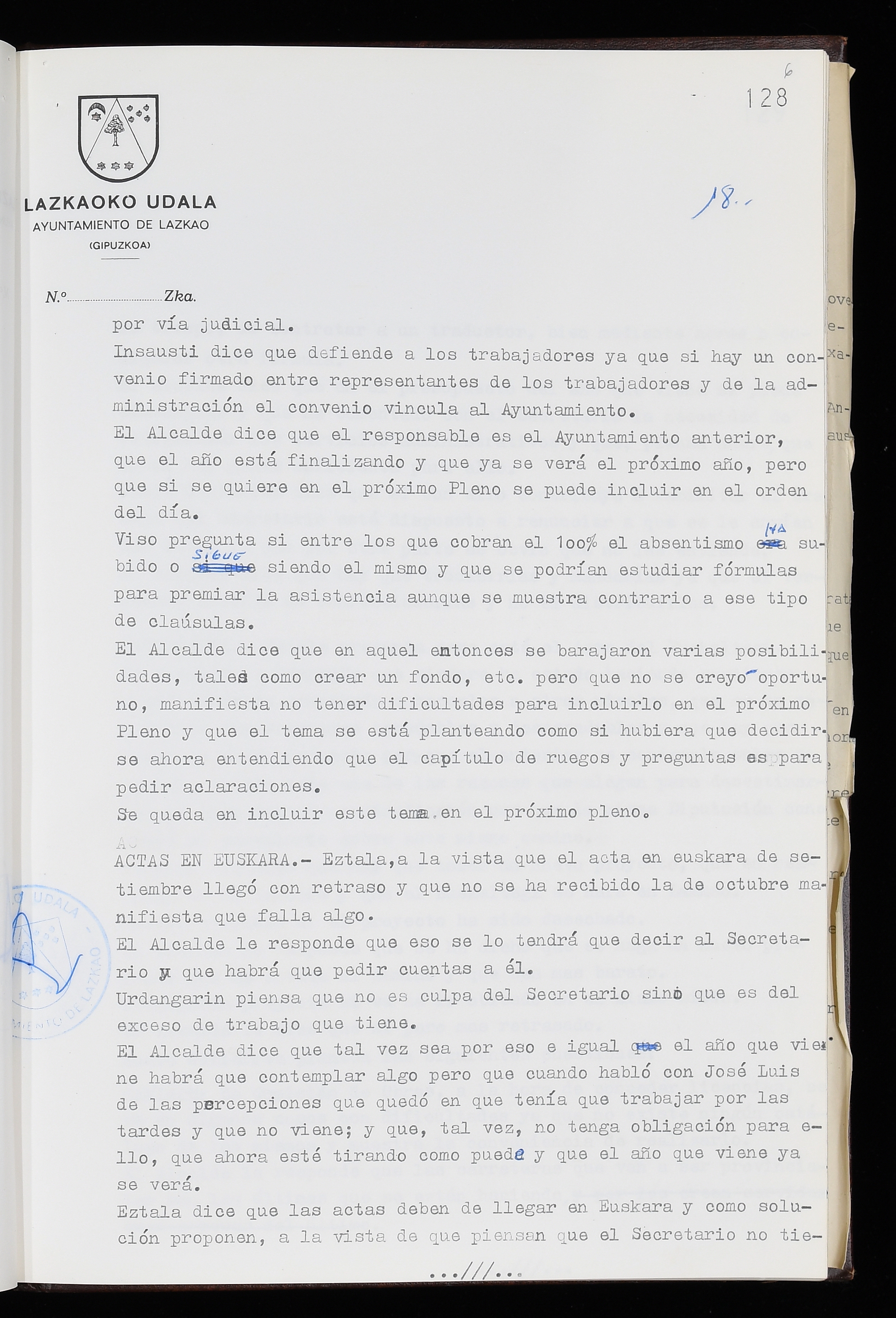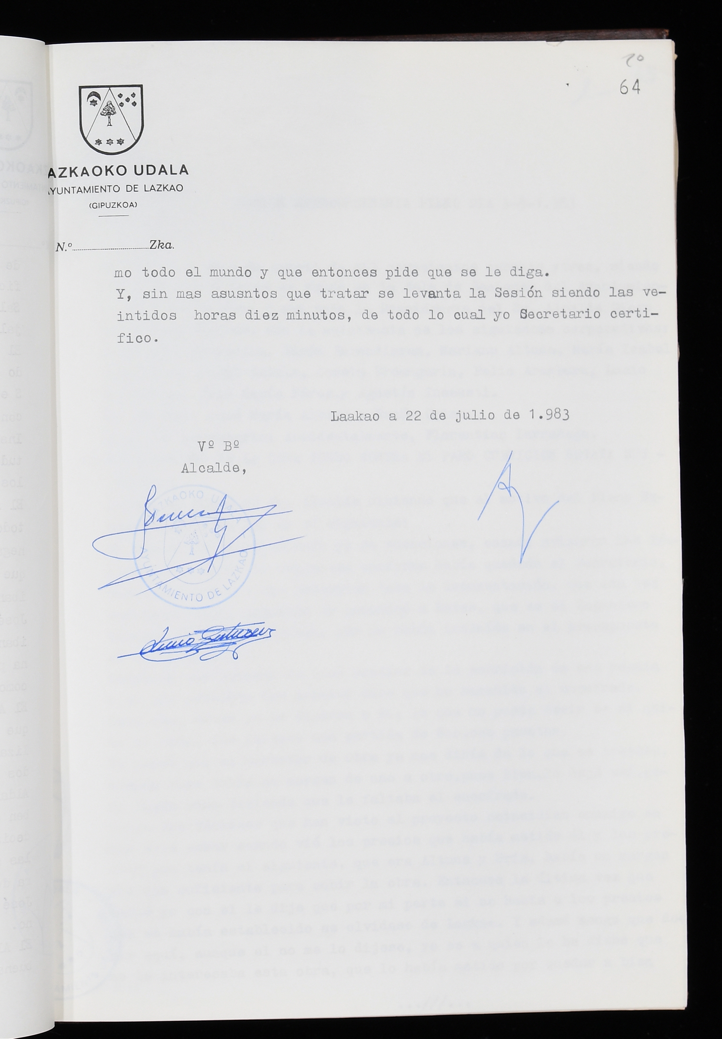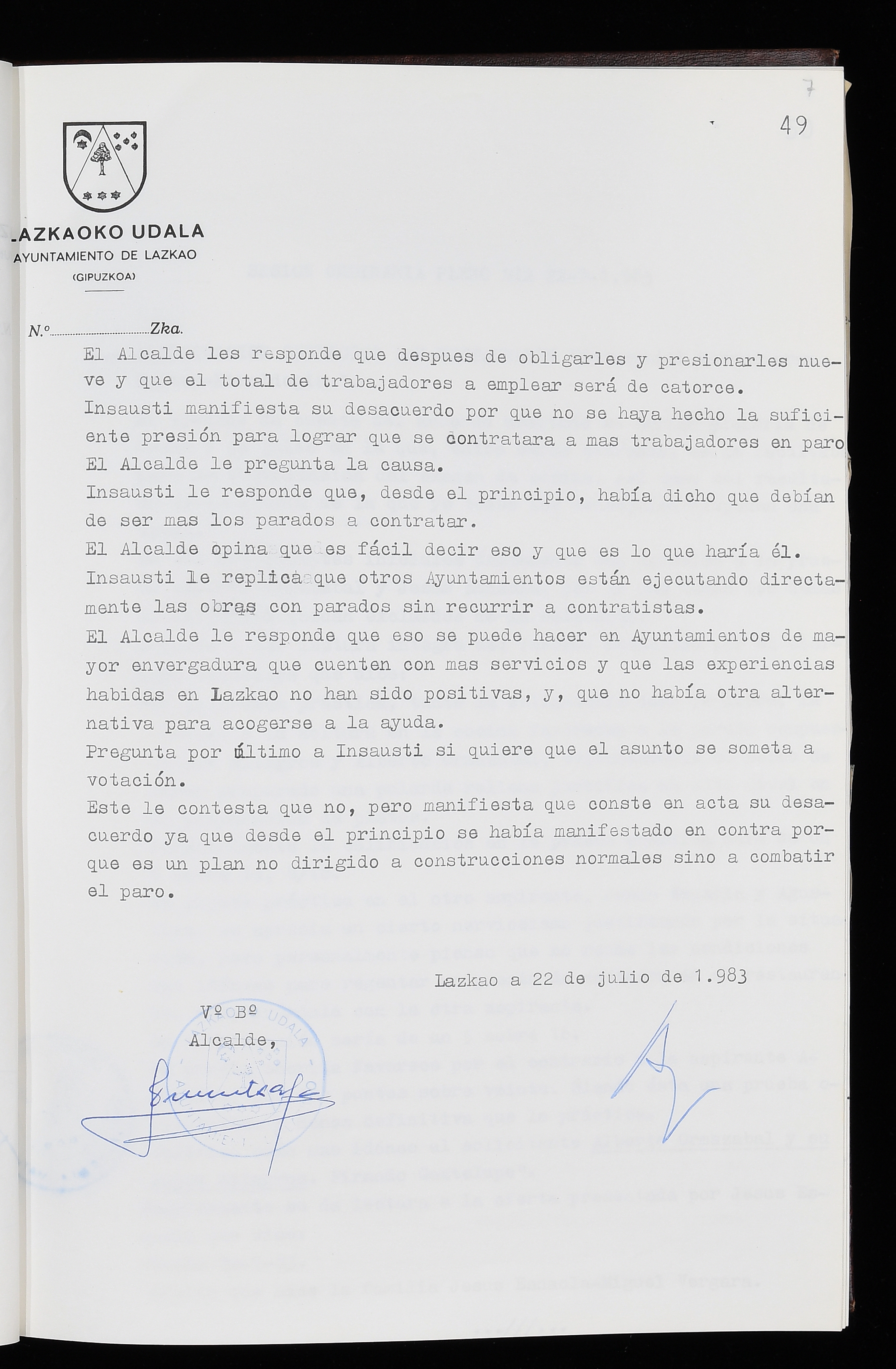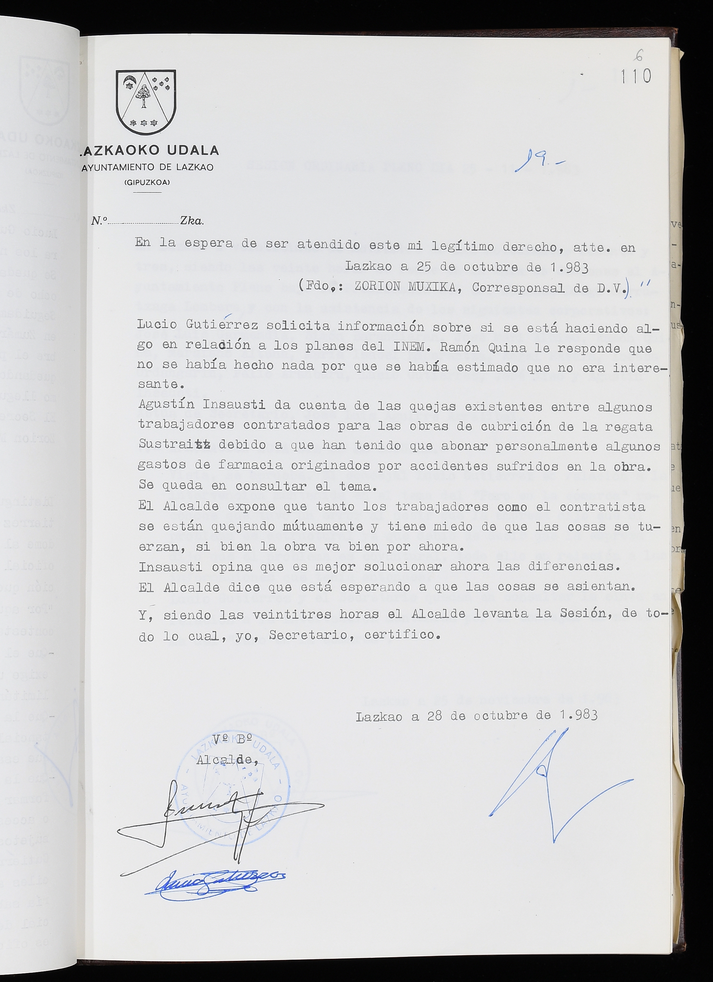 Log in to post commentsEdukiakSailkapenaFuntsaLazkaoko Udal ArtxiboaAtalakUdal AktakSailkapena1.1.4. Osoko Bilkuraren akta liburuakSailkapen berriaOsoko Bilkurako akta liburuakMultimediaIrudiakIdentifikazioaSignaturaakta liburua I-035Hasiera1983-05-23Amaiera1984-05-30AutoritateakTokiaLazkaoLog in to post commentsAkta eratu