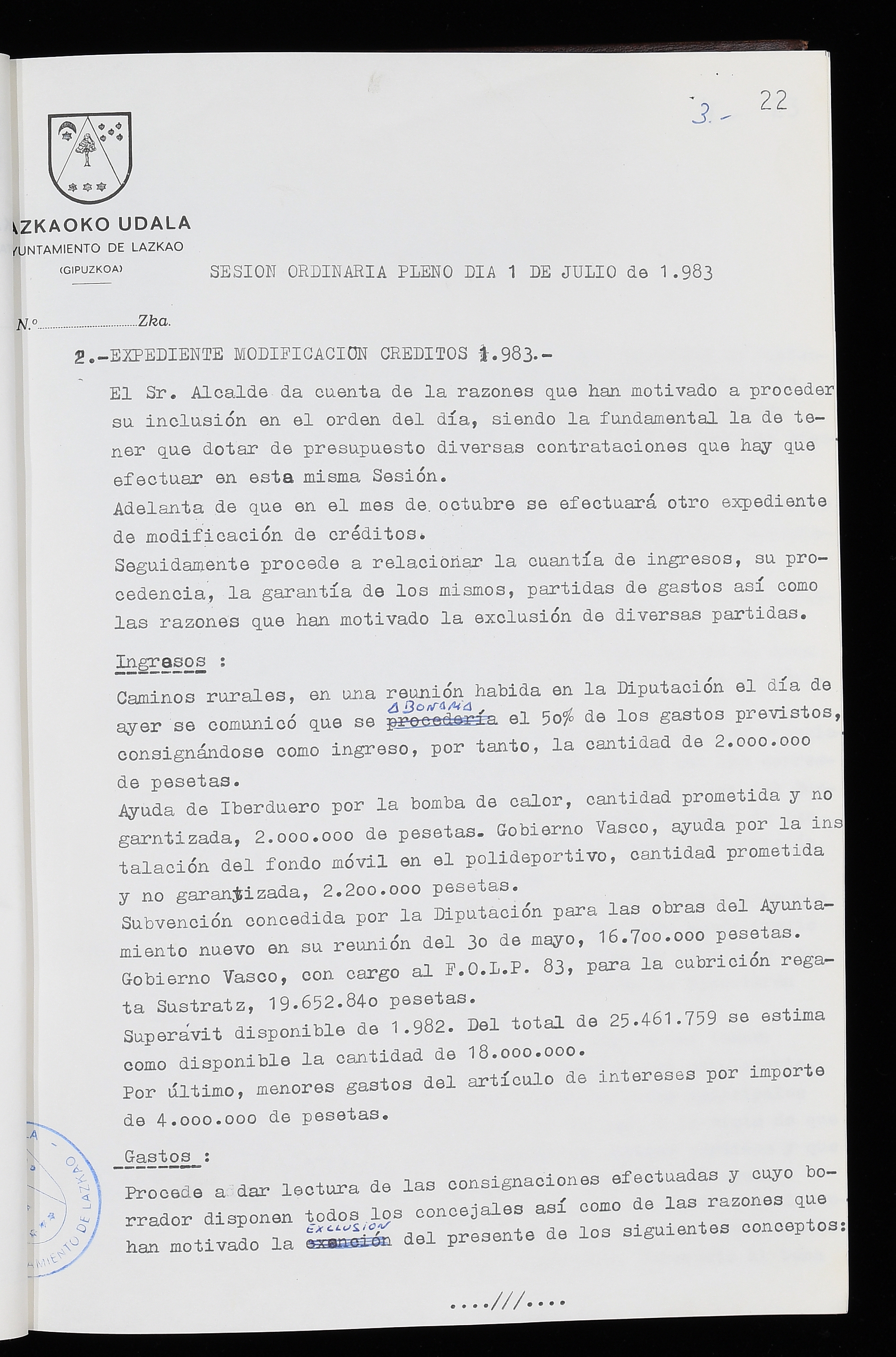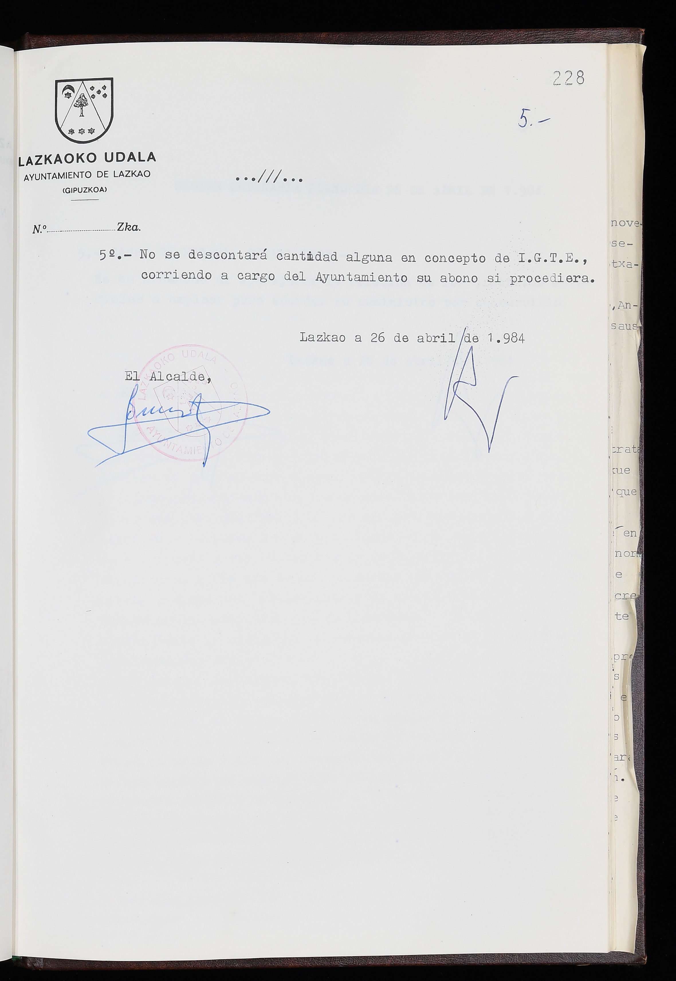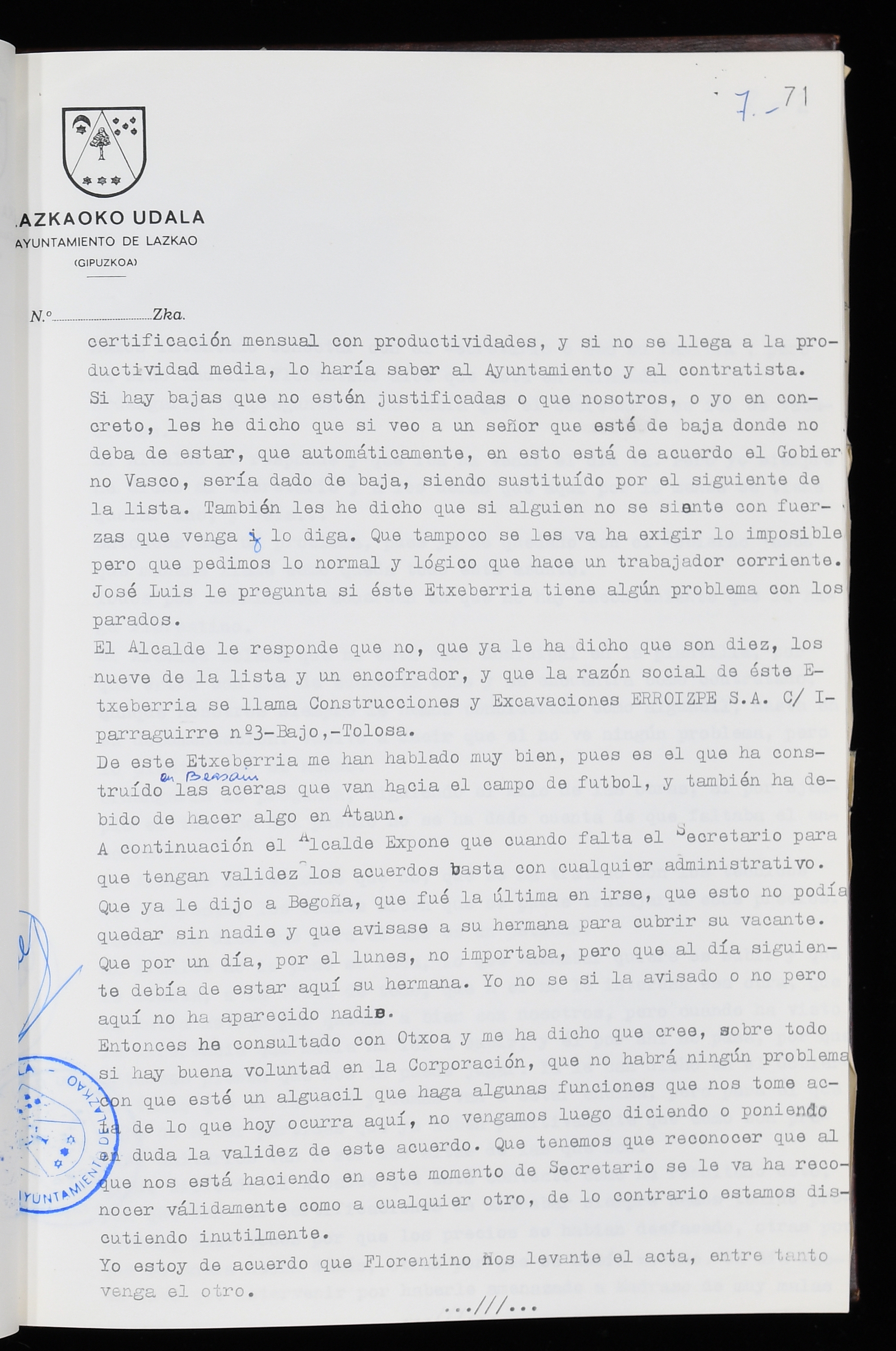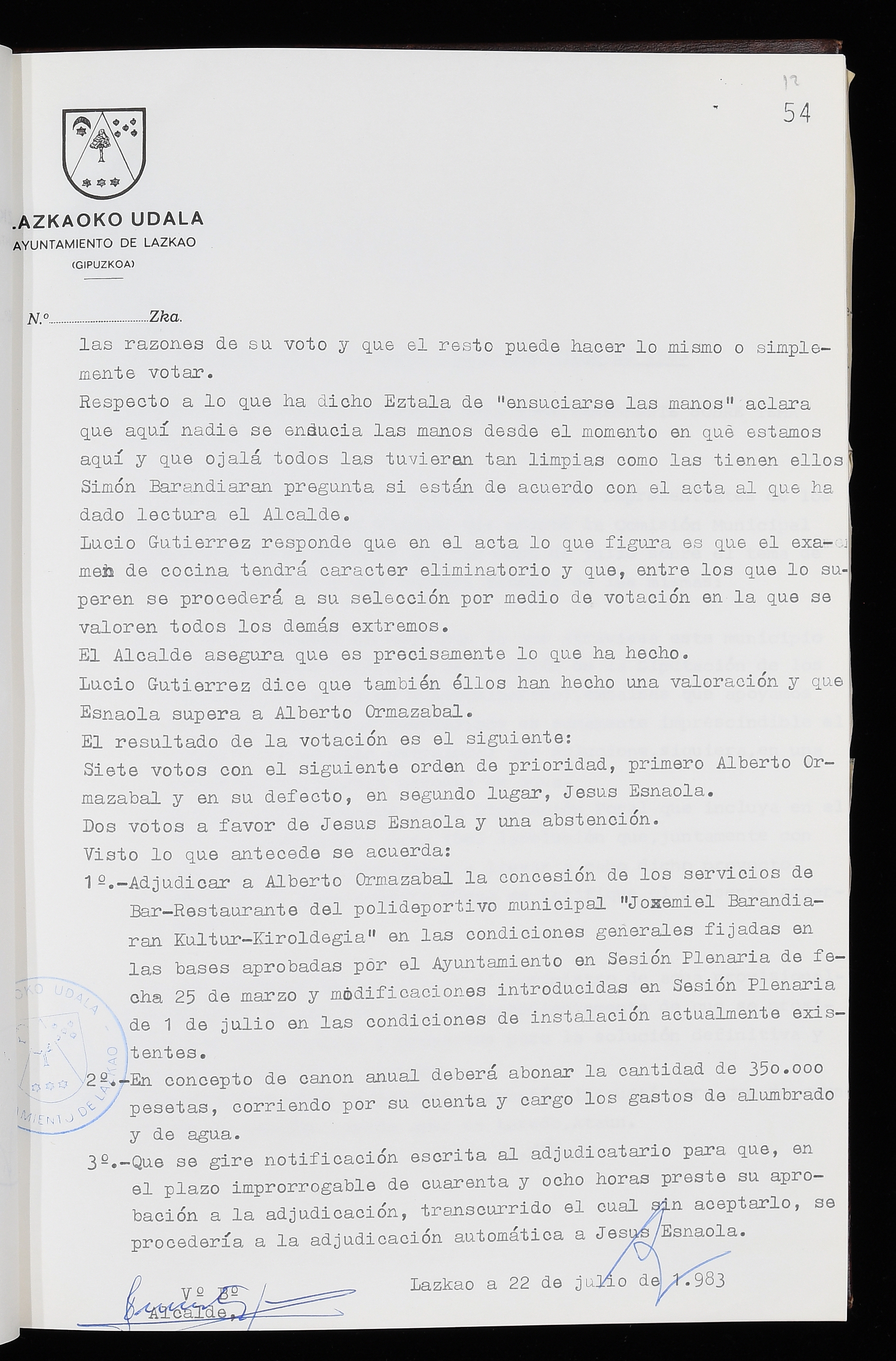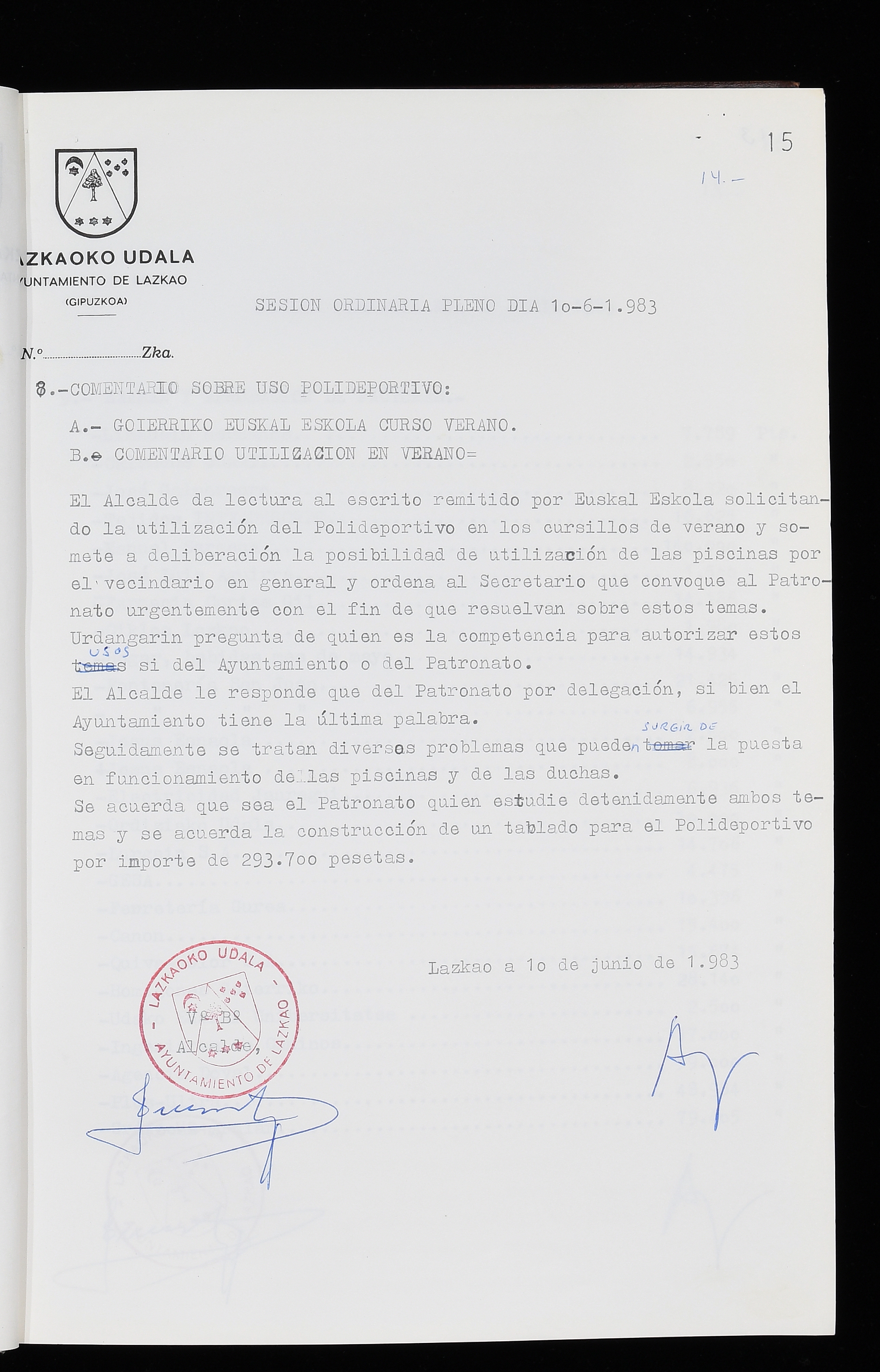 Log in to post commentsEdukiakSailkapenaFuntsaLazkaoko Udal ArtxiboaAtalakUdal AktakSailkapena1.1.4. Osoko Bilkuraren akta liburuakSailkapen berriaOsoko Bilkurako akta liburuakMultimediaIrudiakIdentifikazioaSignaturaakta liburua I-035Hasiera1983-05-23Amaiera1984-05-30AutoritateakTokiaLazkaoLog in to post commentsAkta eratu