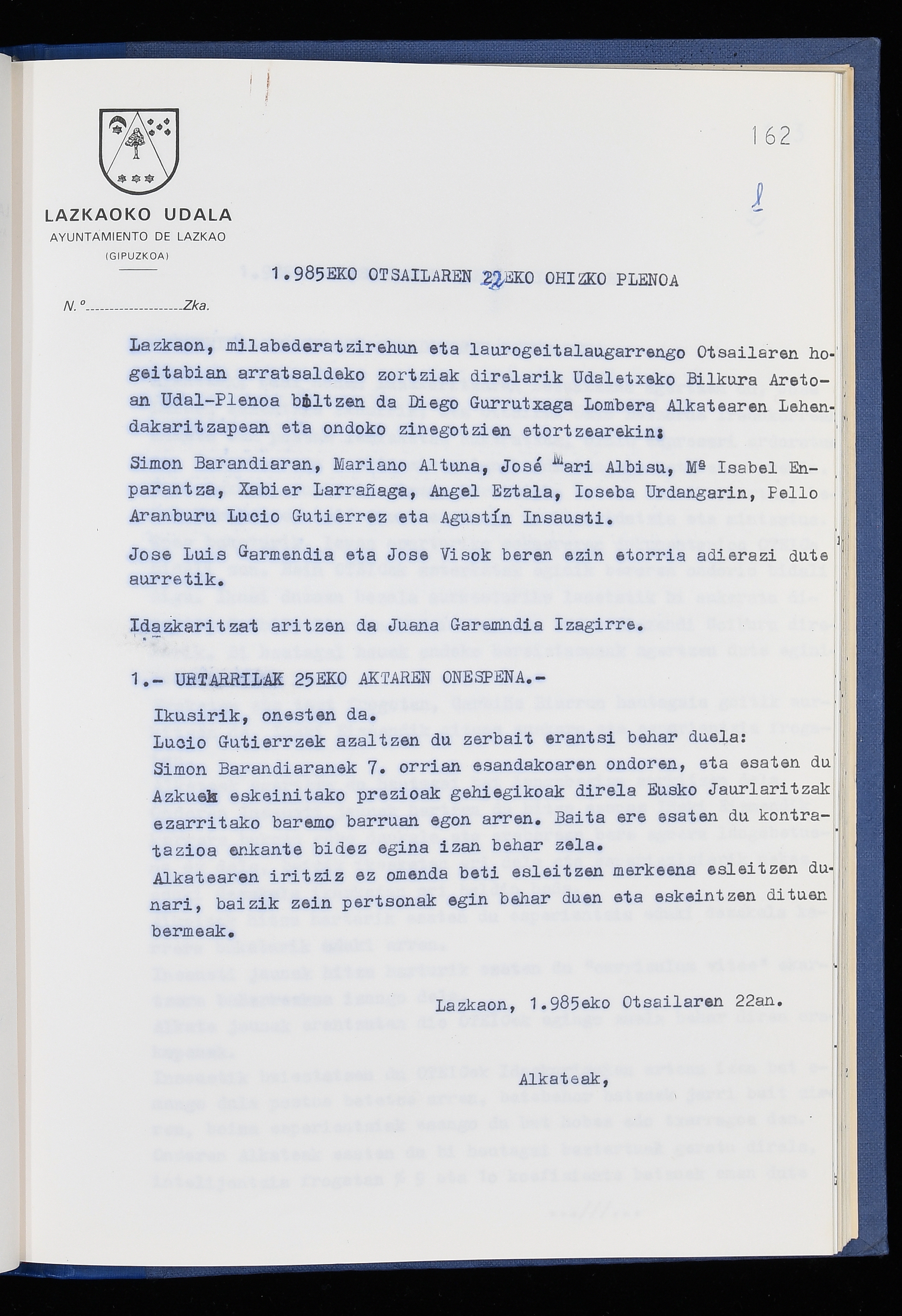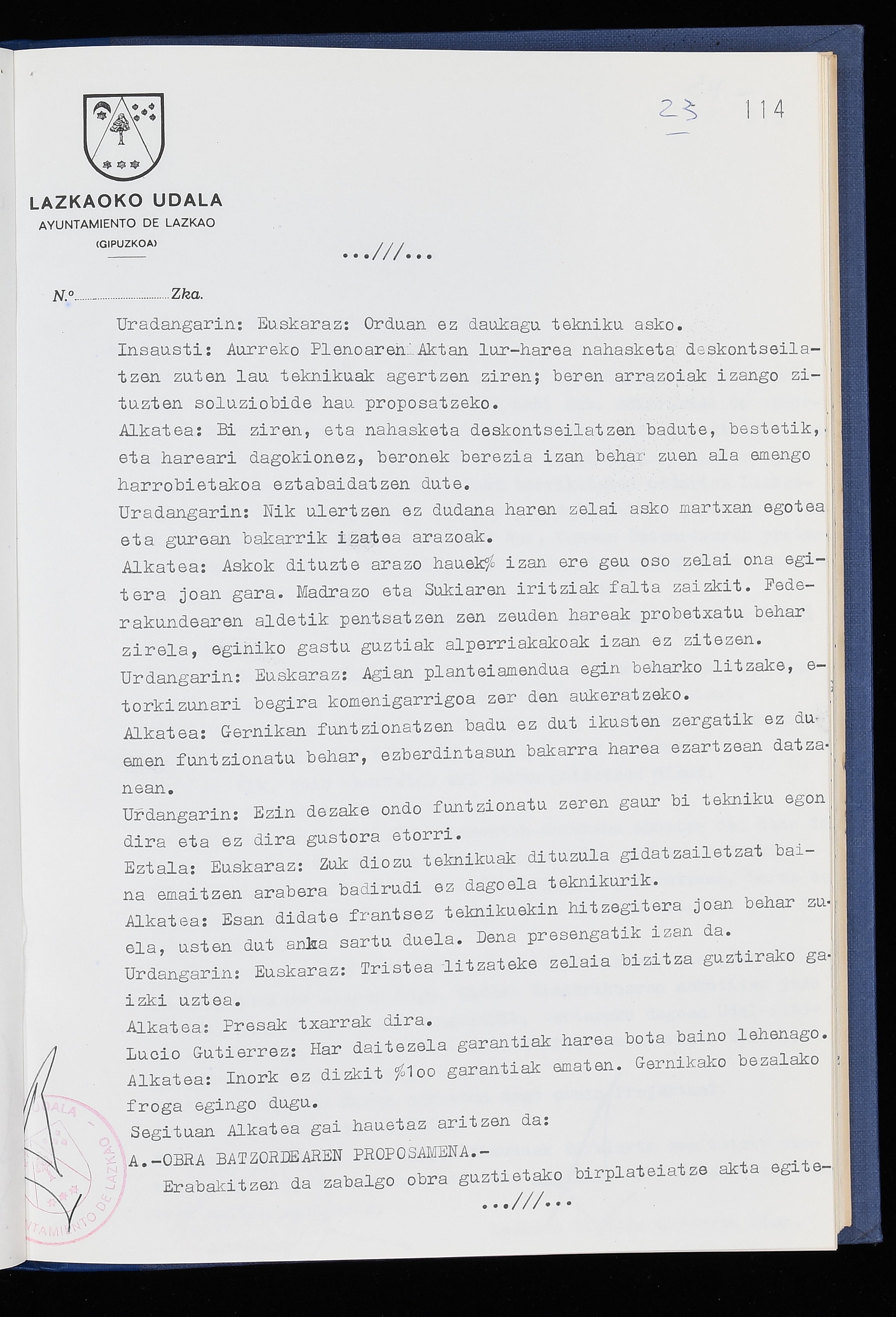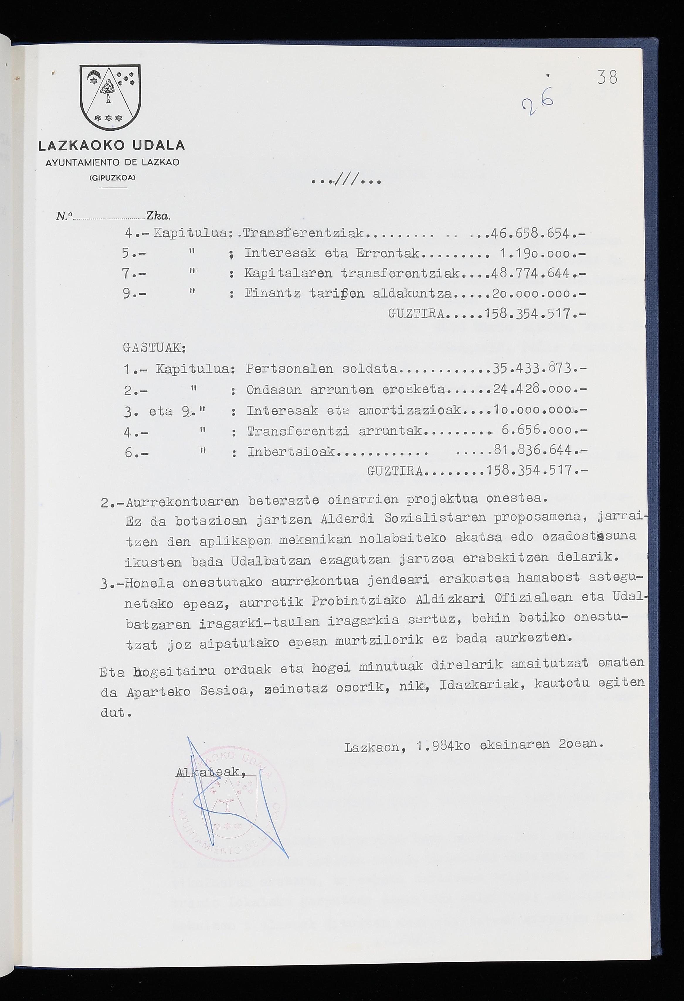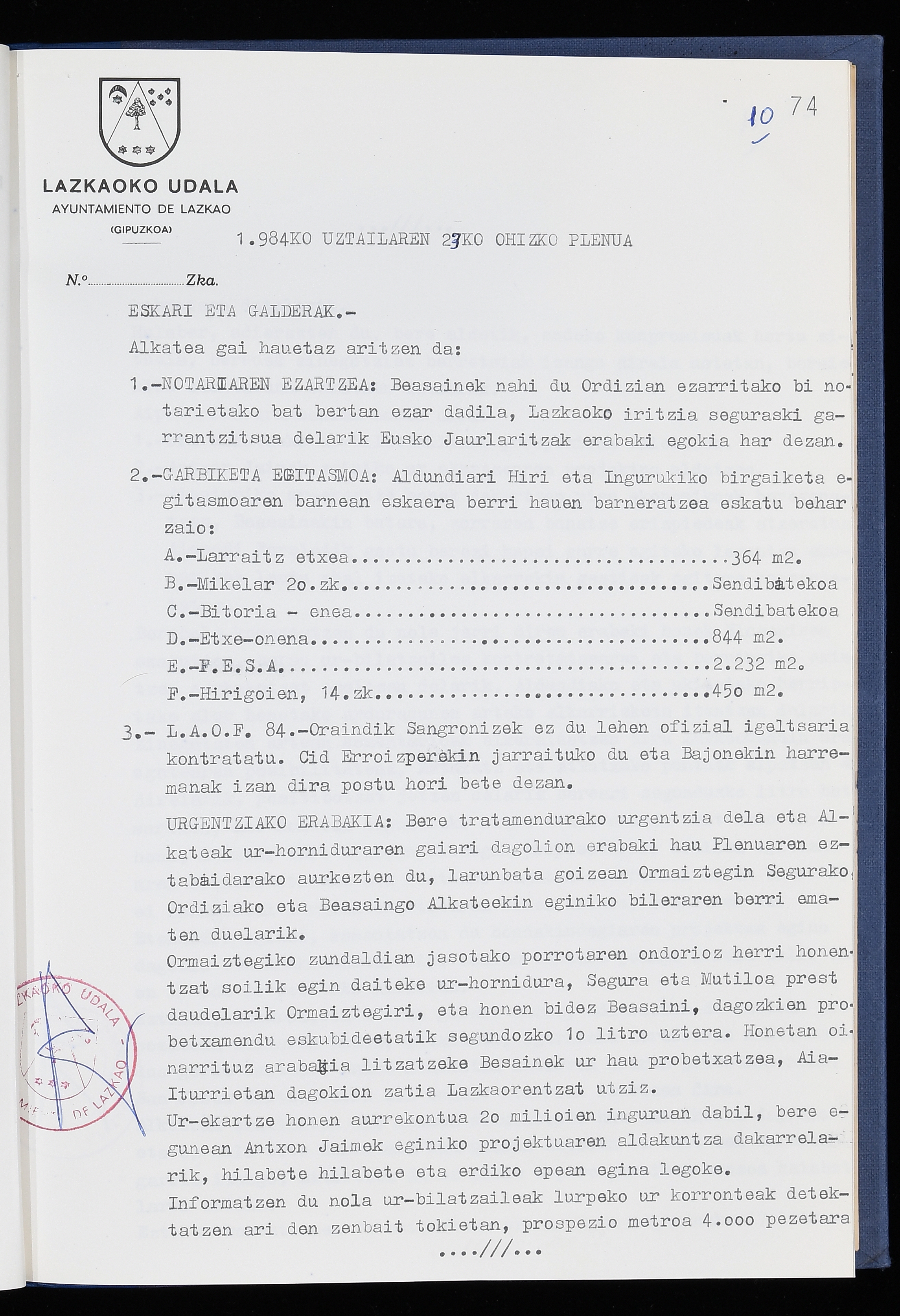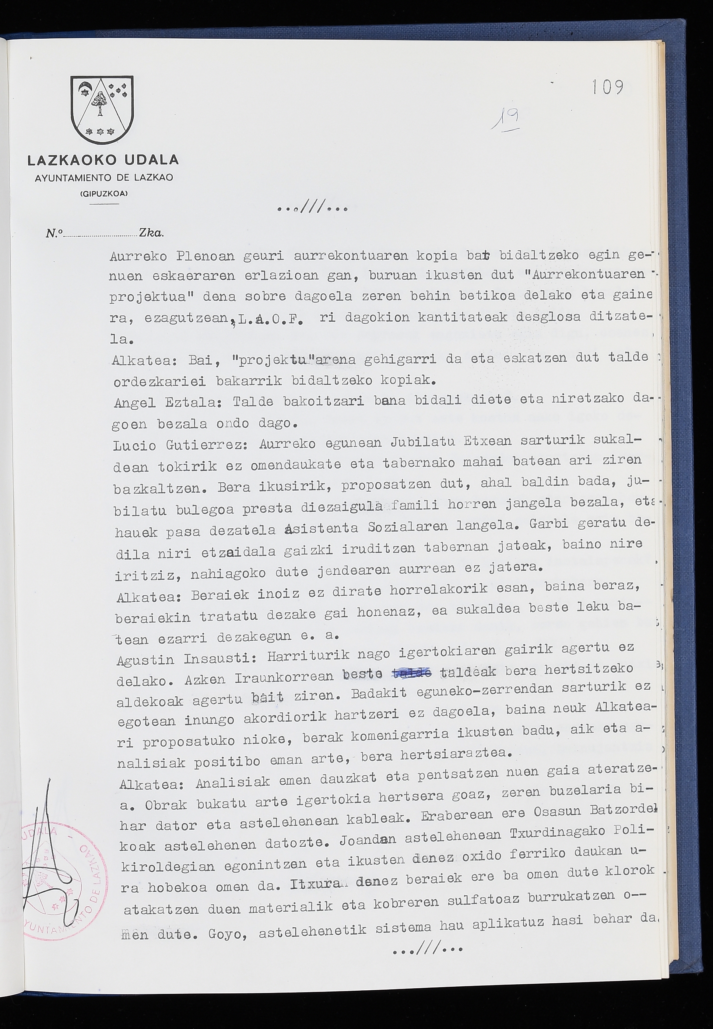 Log in to post commentsEdukiakSailkapenaFuntsaLazkaoko Udal ArtxiboaAtalakUdal AktakSailkapena1.1.4. Osoko Bilkuraren akta liburuakSailkapen berriaOsoko Bilkurako akta liburuakMultimediaIrudiakIdentifikazioaSignaturaakta liburua I-036Hasiera1984-06-01Amaiera1985-06-28AutoritateakTokiaLazkaoLog in to post commentsAkta eratu