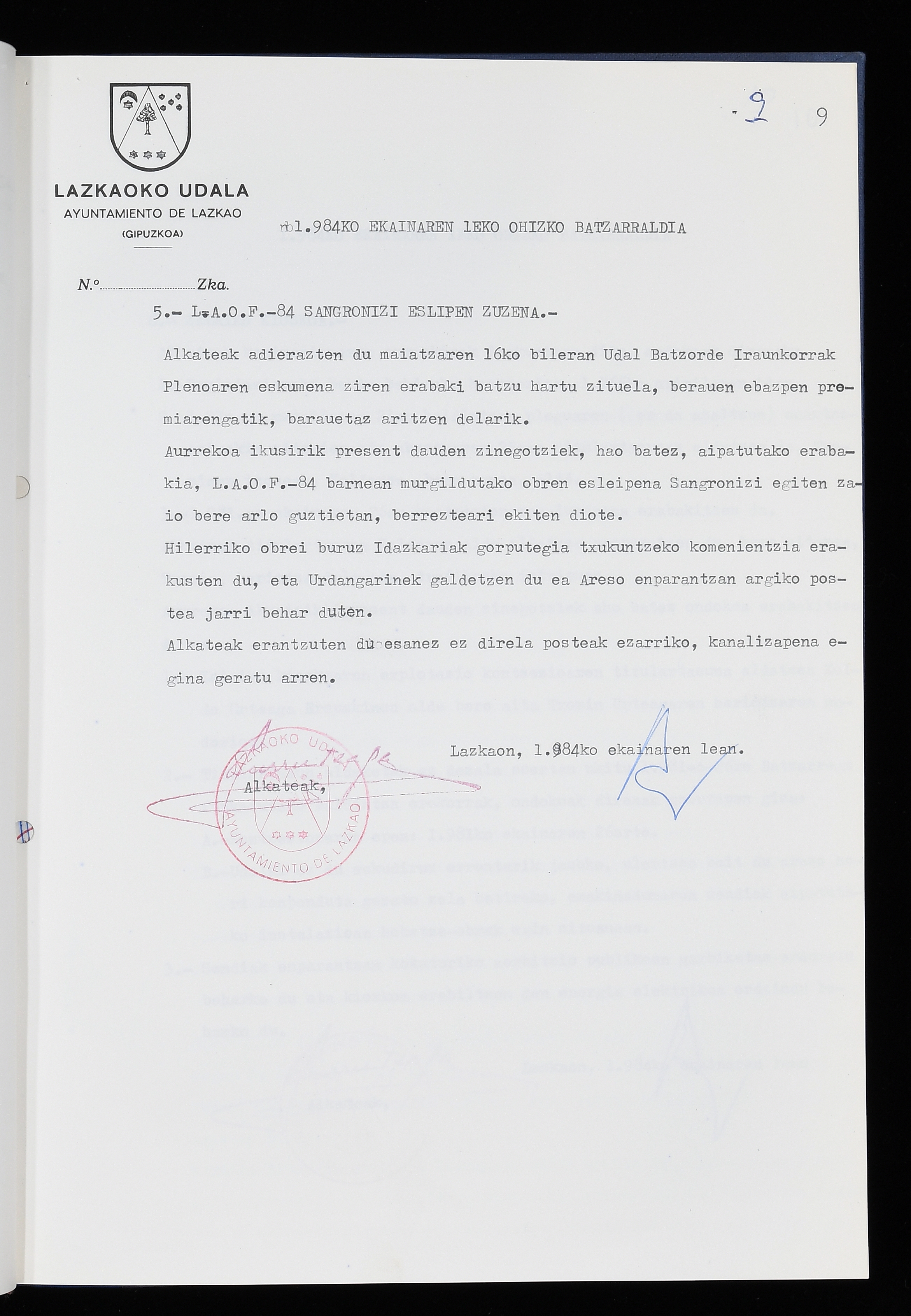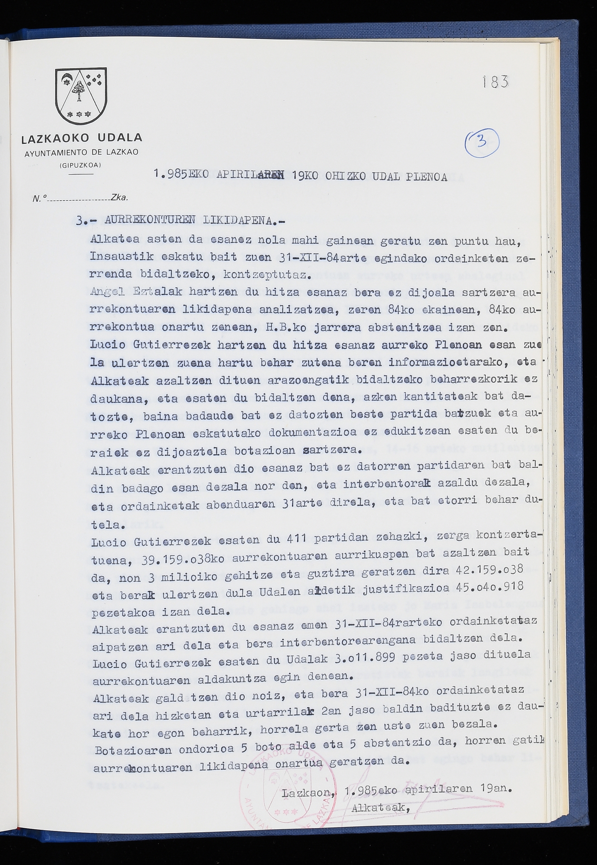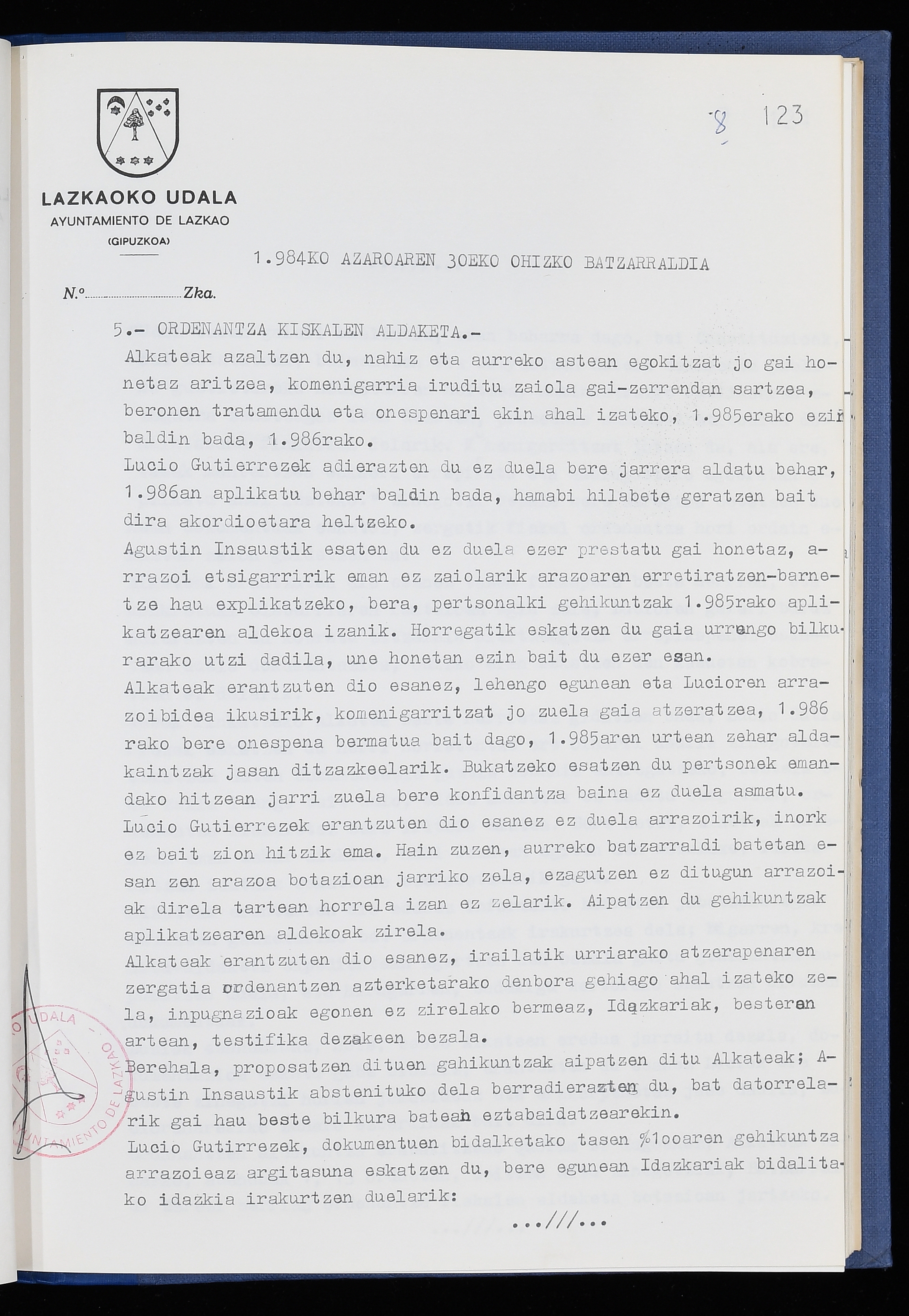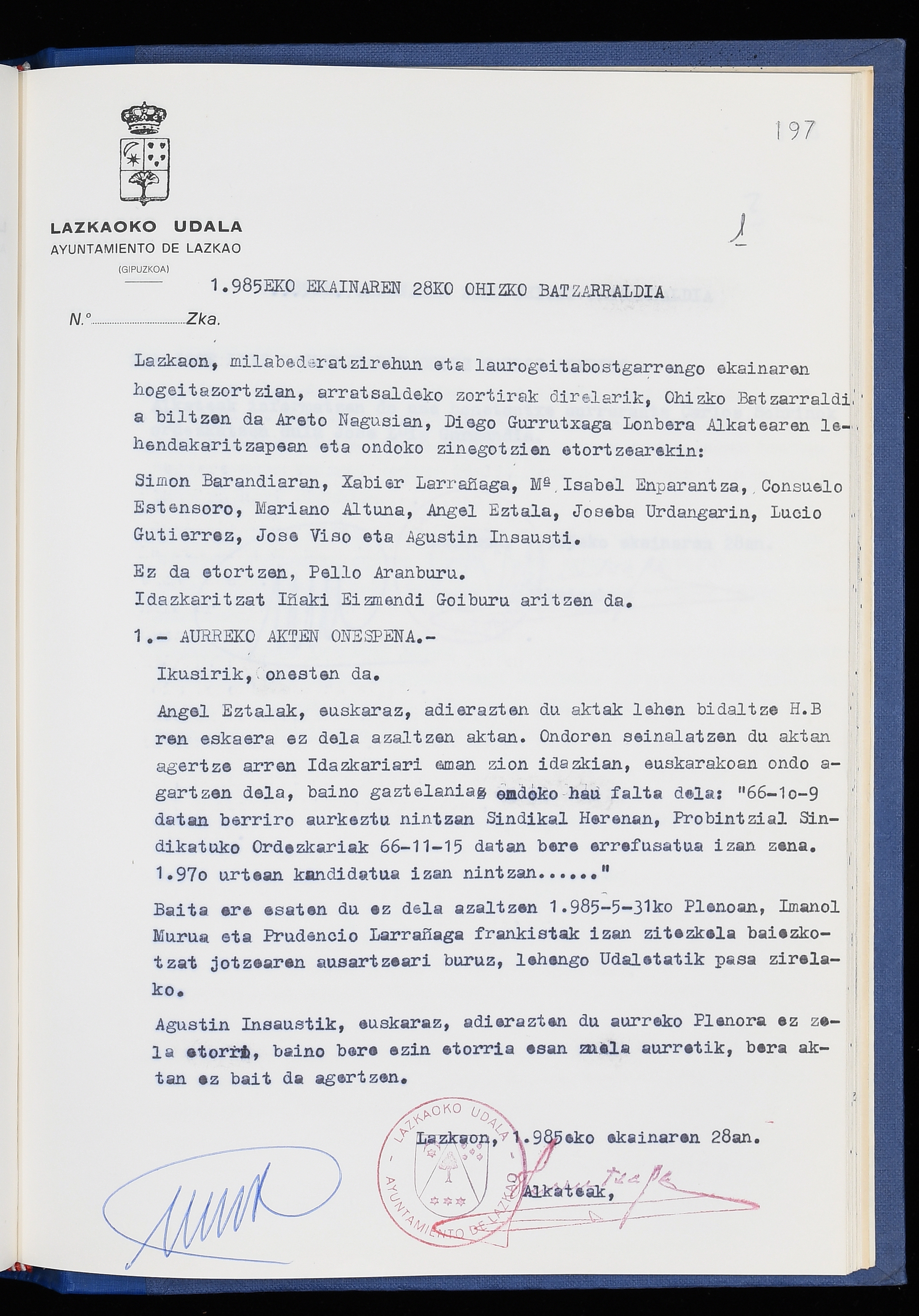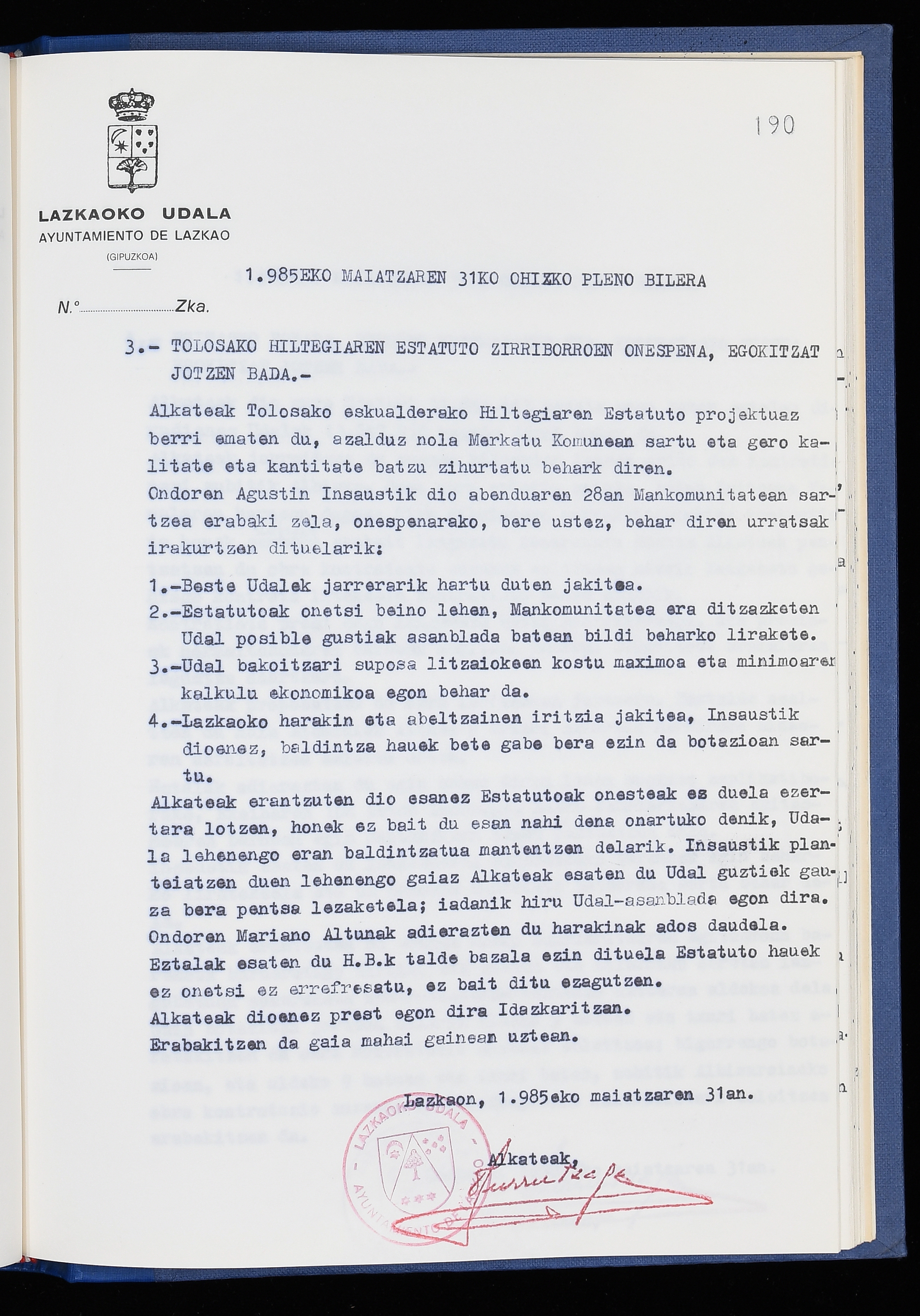 Log in to post commentsEdukiakSailkapenaFuntsaLazkaoko Udal ArtxiboaAtalakUdal AktakSailkapena1.1.4. Osoko Bilkuraren akta liburuakSailkapen berriaOsoko Bilkurako akta liburuakMultimediaIrudiakIdentifikazioaSignaturaakta liburua I-036Hasiera1984-06-01Amaiera1985-06-28AutoritateakTokiaLazkaoLog in to post commentsAkta eratu