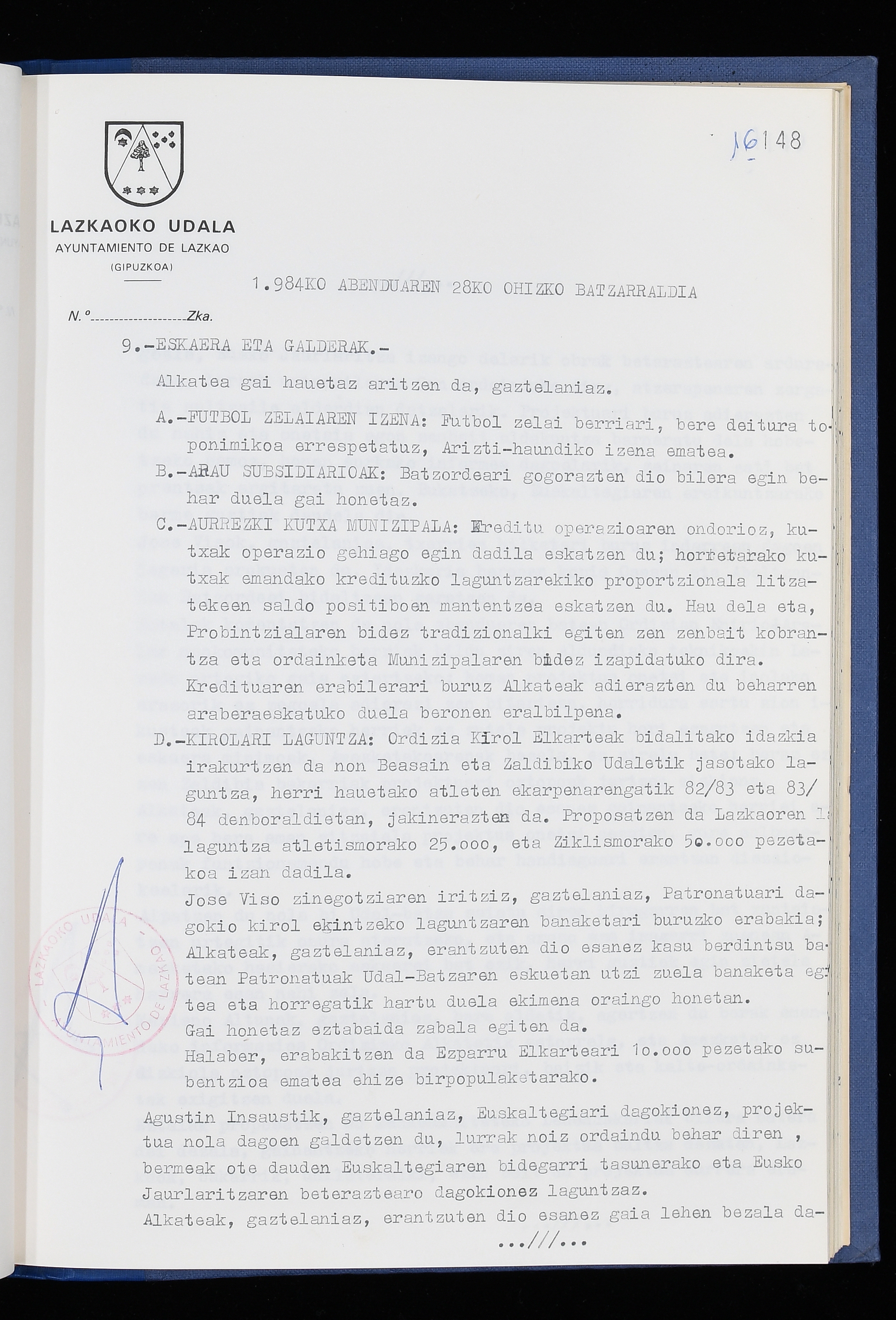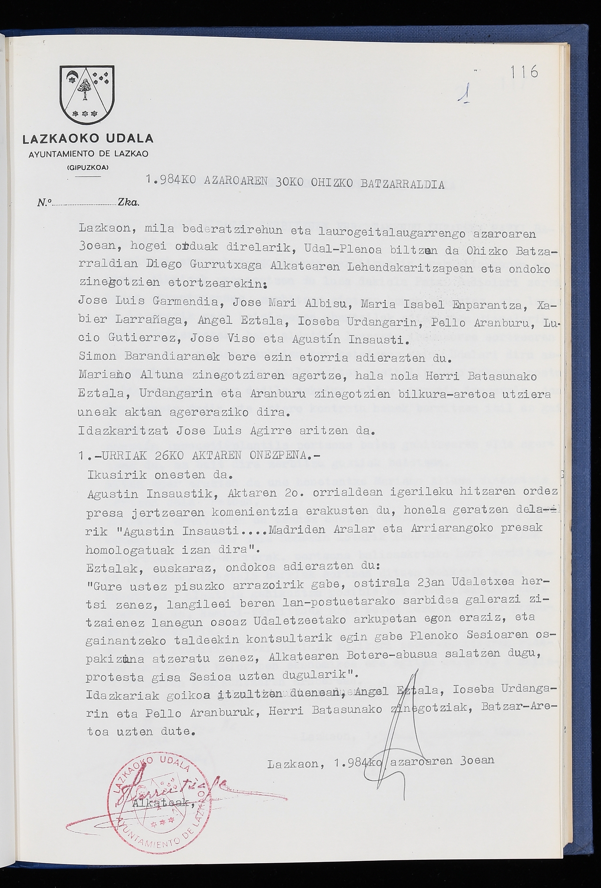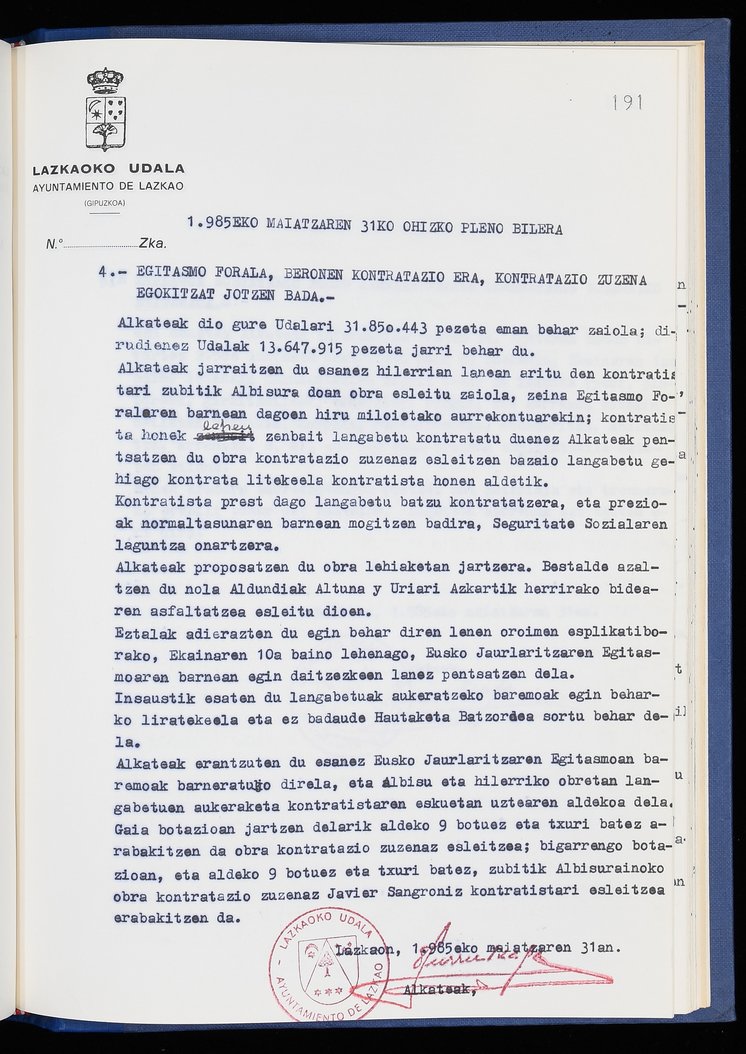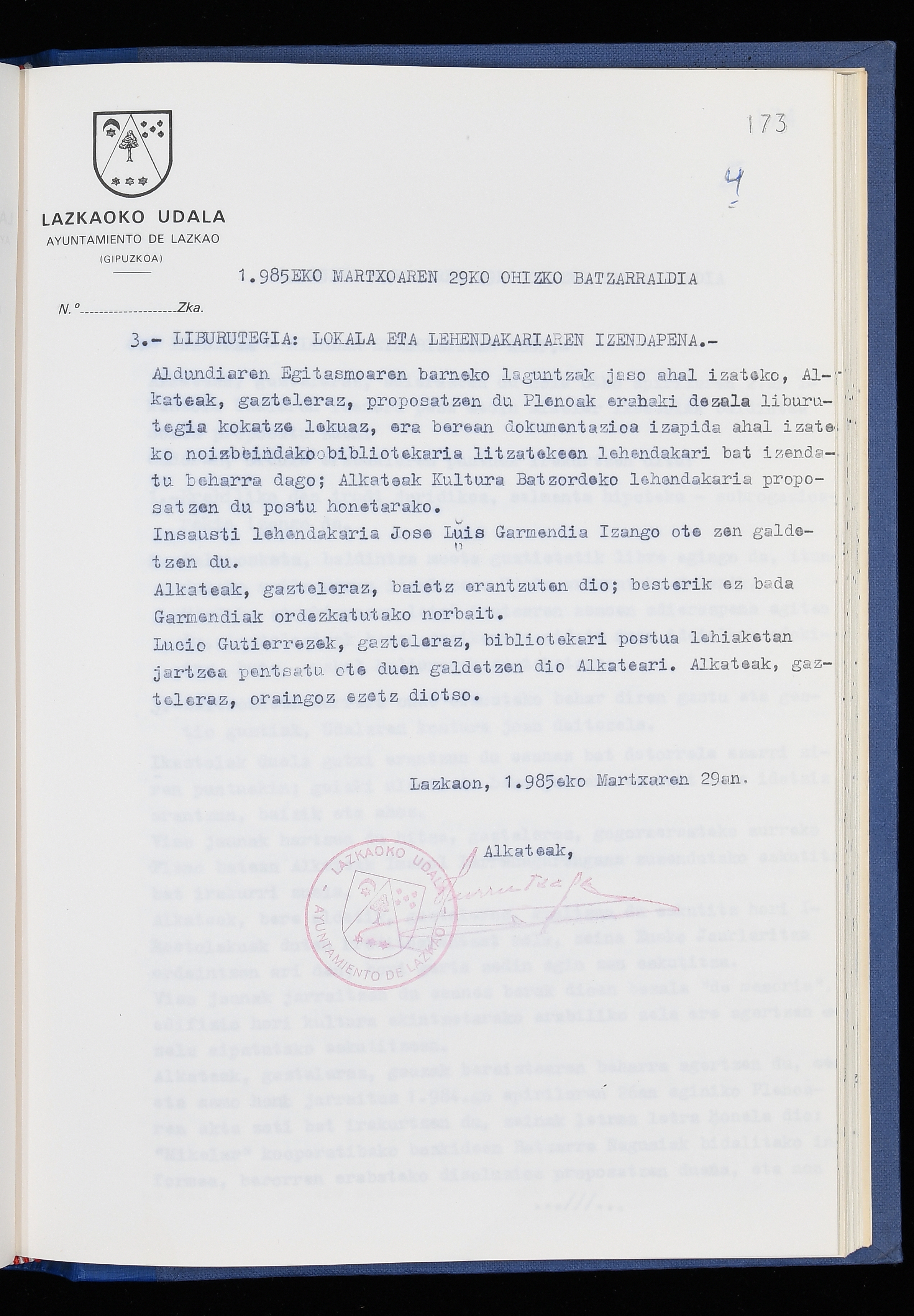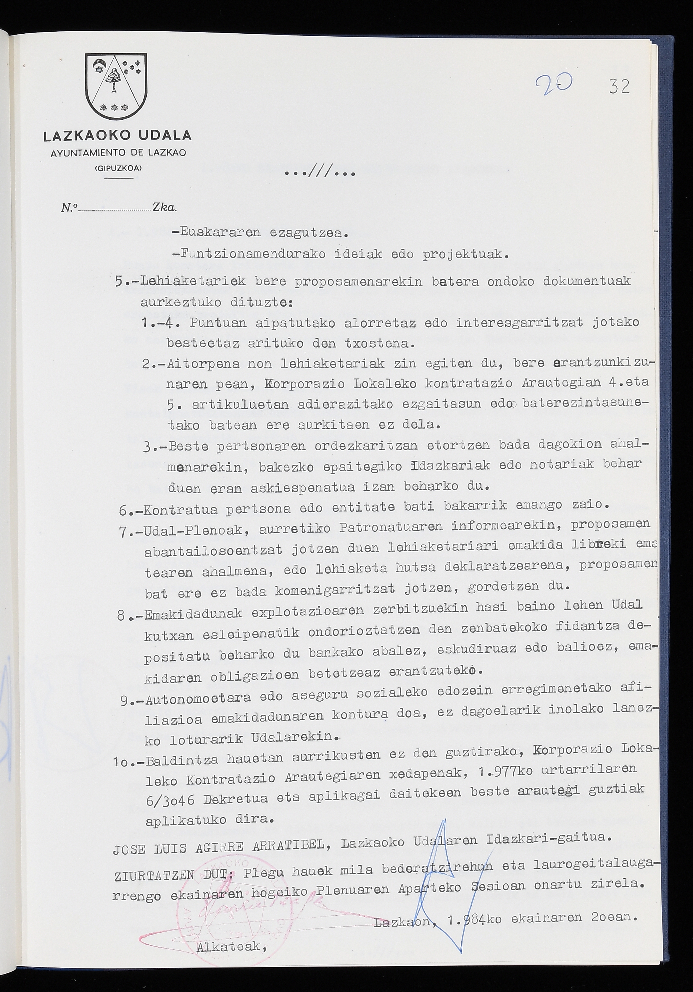 Log in to post commentsEdukiakSailkapenaFuntsaLazkaoko Udal ArtxiboaAtalakUdal AktakSailkapena1.1.4. Osoko Bilkuraren akta liburuakSailkapen berriaOsoko Bilkurako akta liburuakMultimediaIrudiakIdentifikazioaSignaturaakta liburua I-036Hasiera1984-06-01Amaiera1985-06-28AutoritateakTokiaLazkaoLog in to post commentsAkta eratu