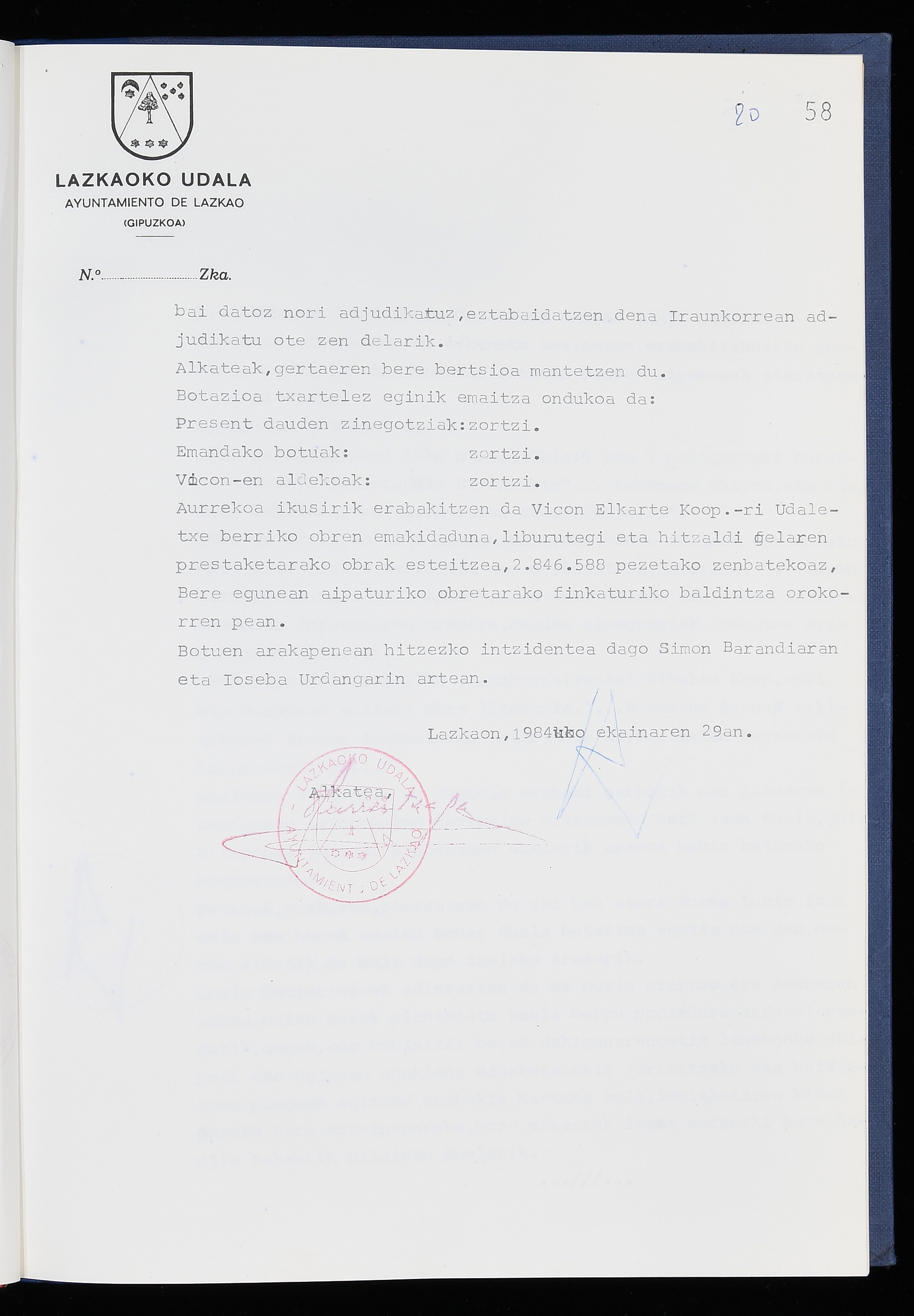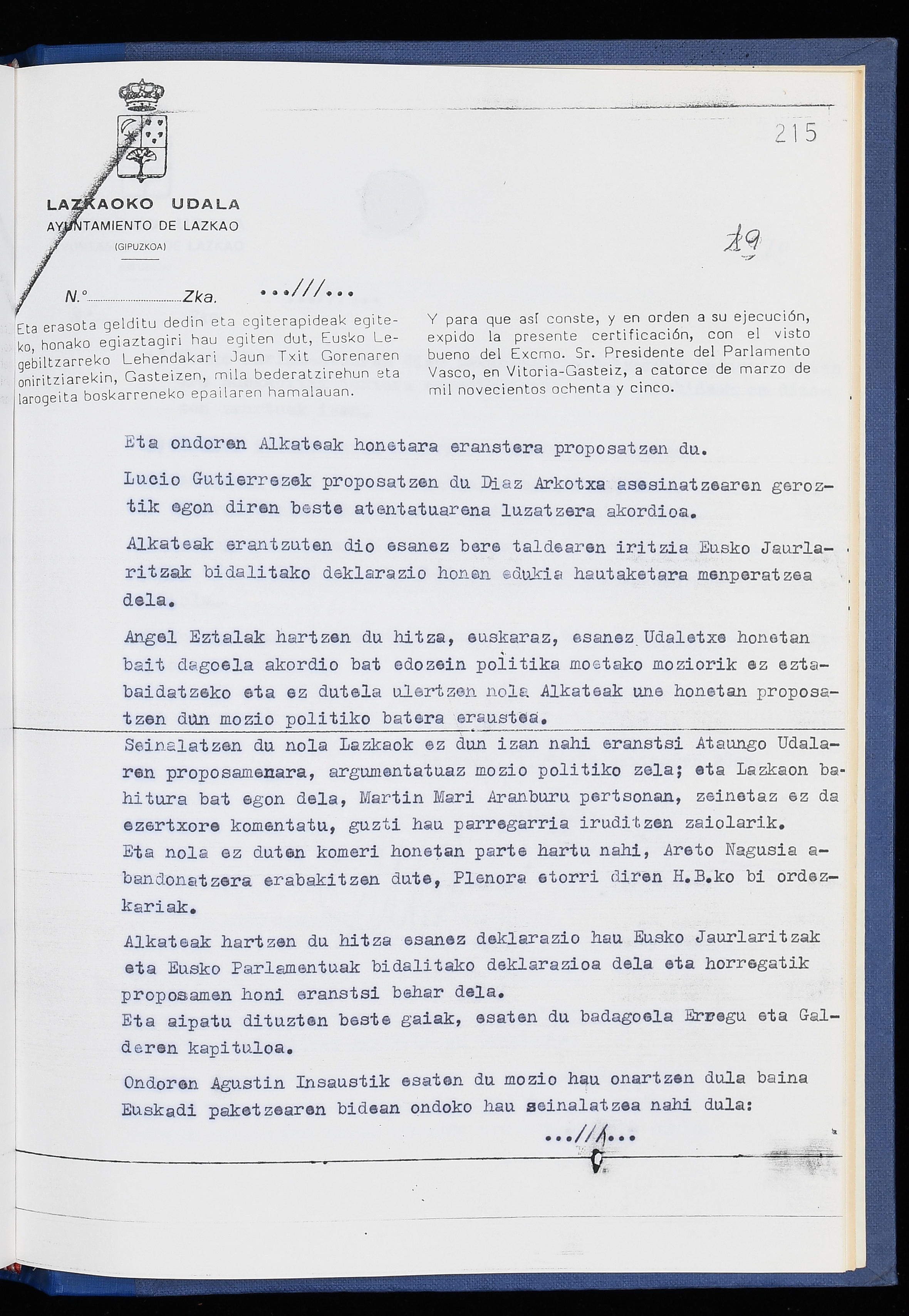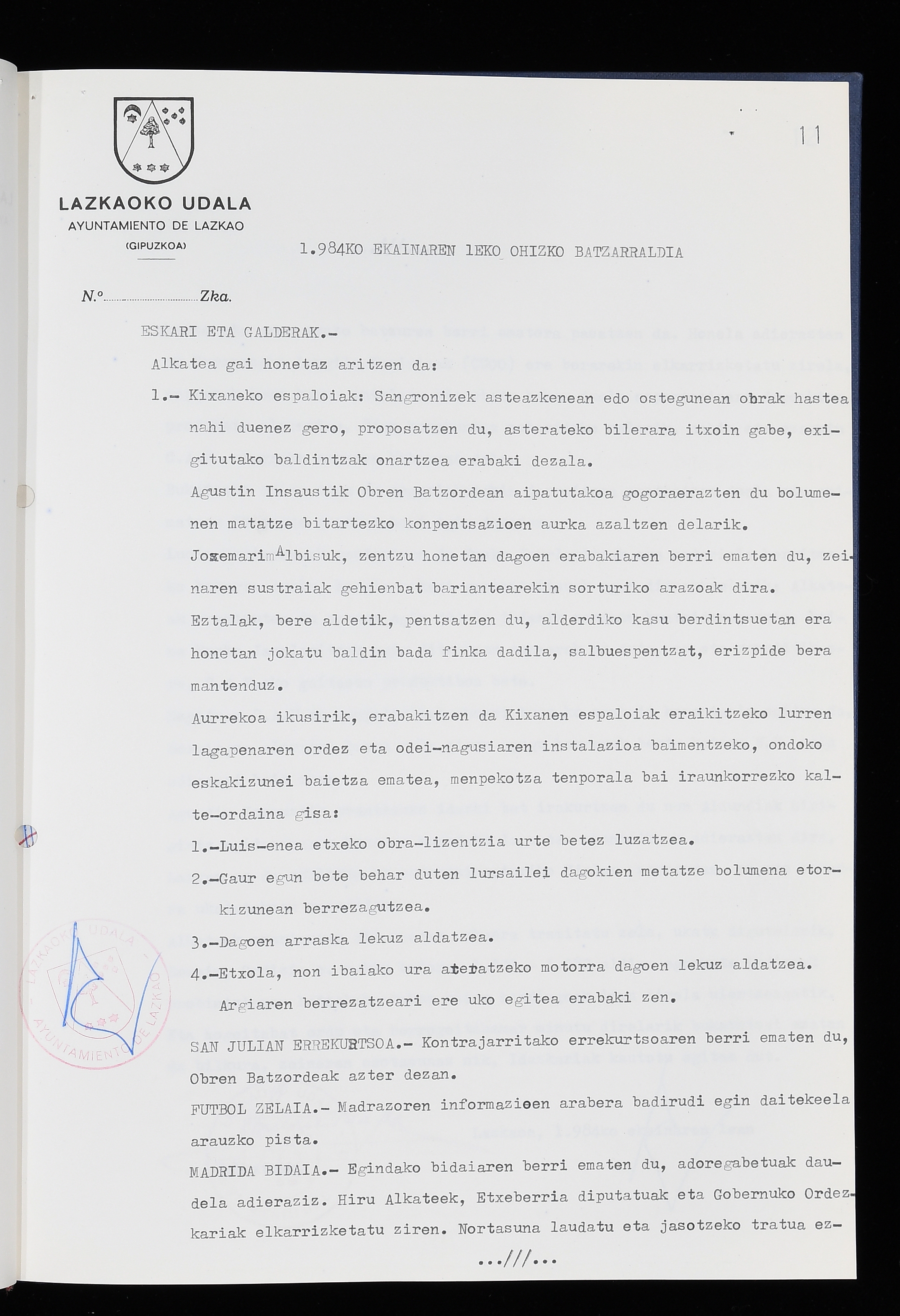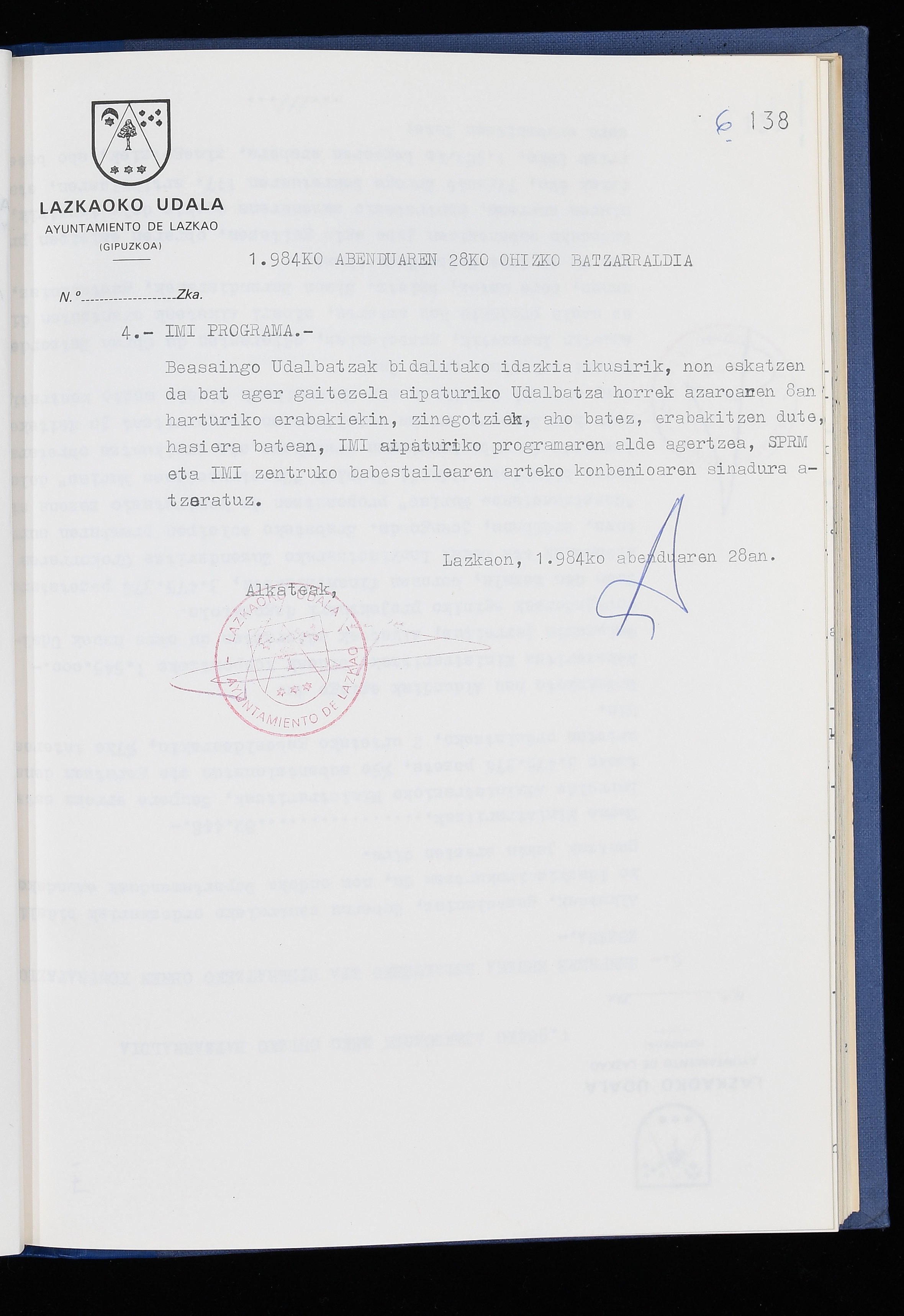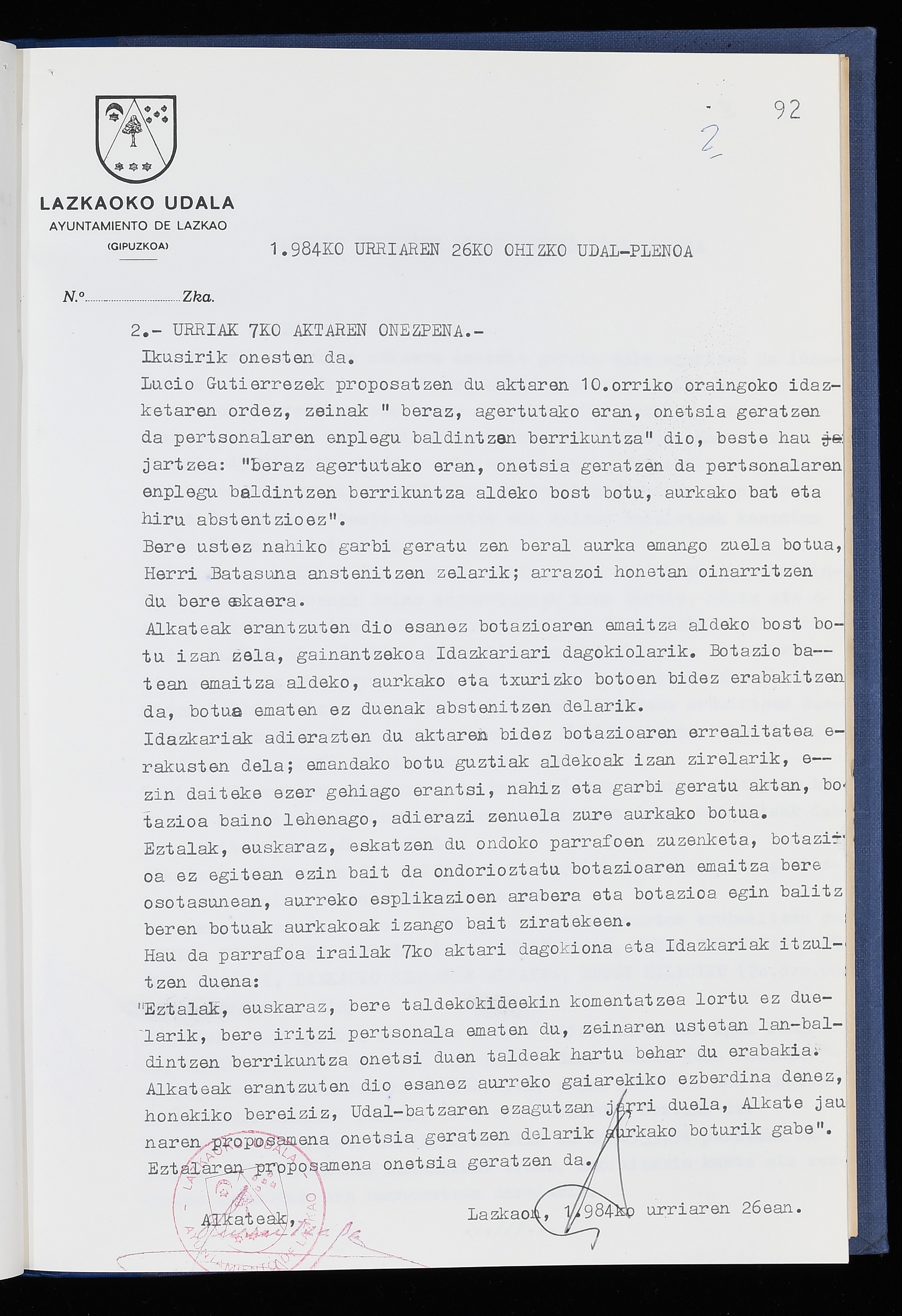 Log in to post commentsEdukiakSailkapenaFuntsaLazkaoko Udal ArtxiboaAtalakUdal AktakSailkapena1.1.4. Osoko Bilkuraren akta liburuakSailkapen berriaOsoko Bilkurako akta liburuakMultimediaIrudiakIdentifikazioaSignaturaakta liburua I-036Hasiera1984-06-01Amaiera1985-06-28AutoritateakTokiaLazkaoLog in to post commentsAkta eratu