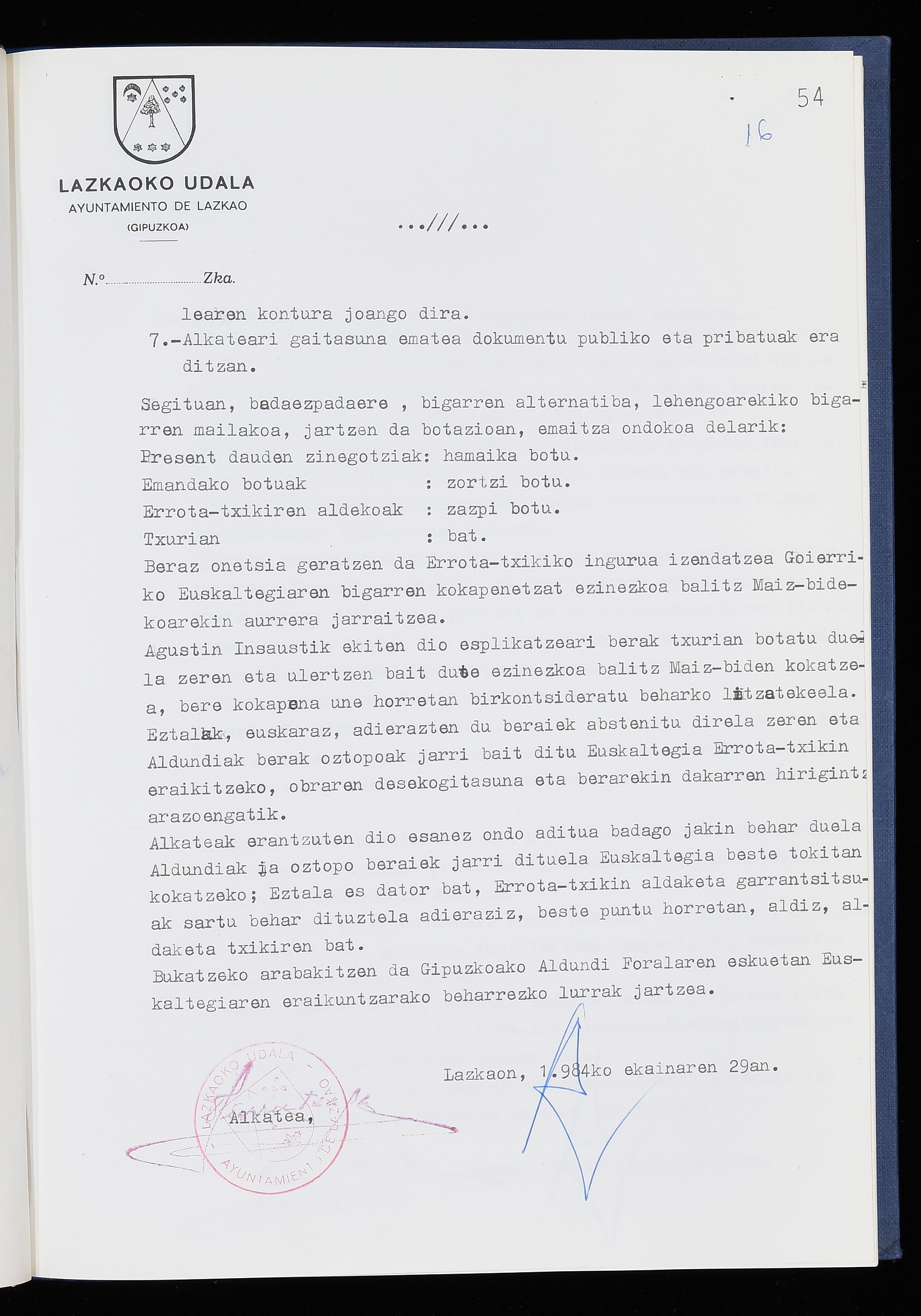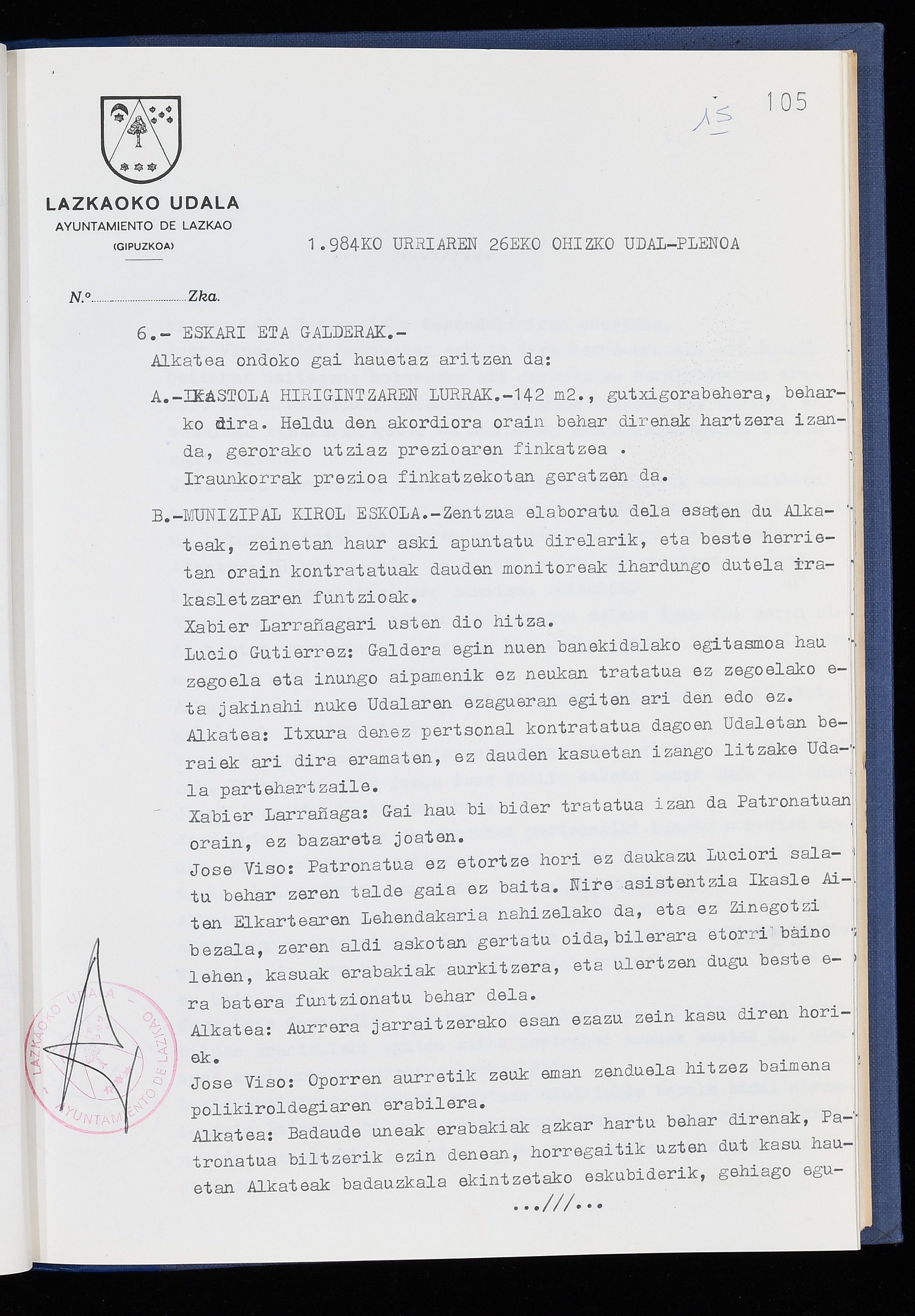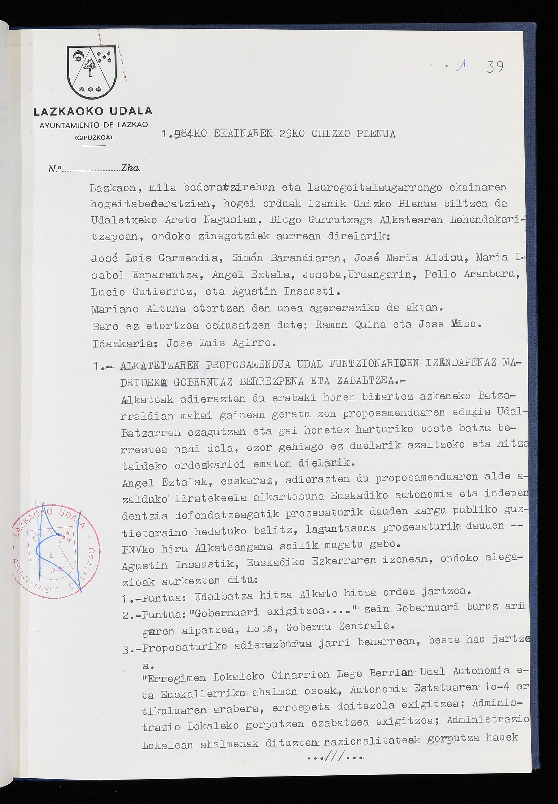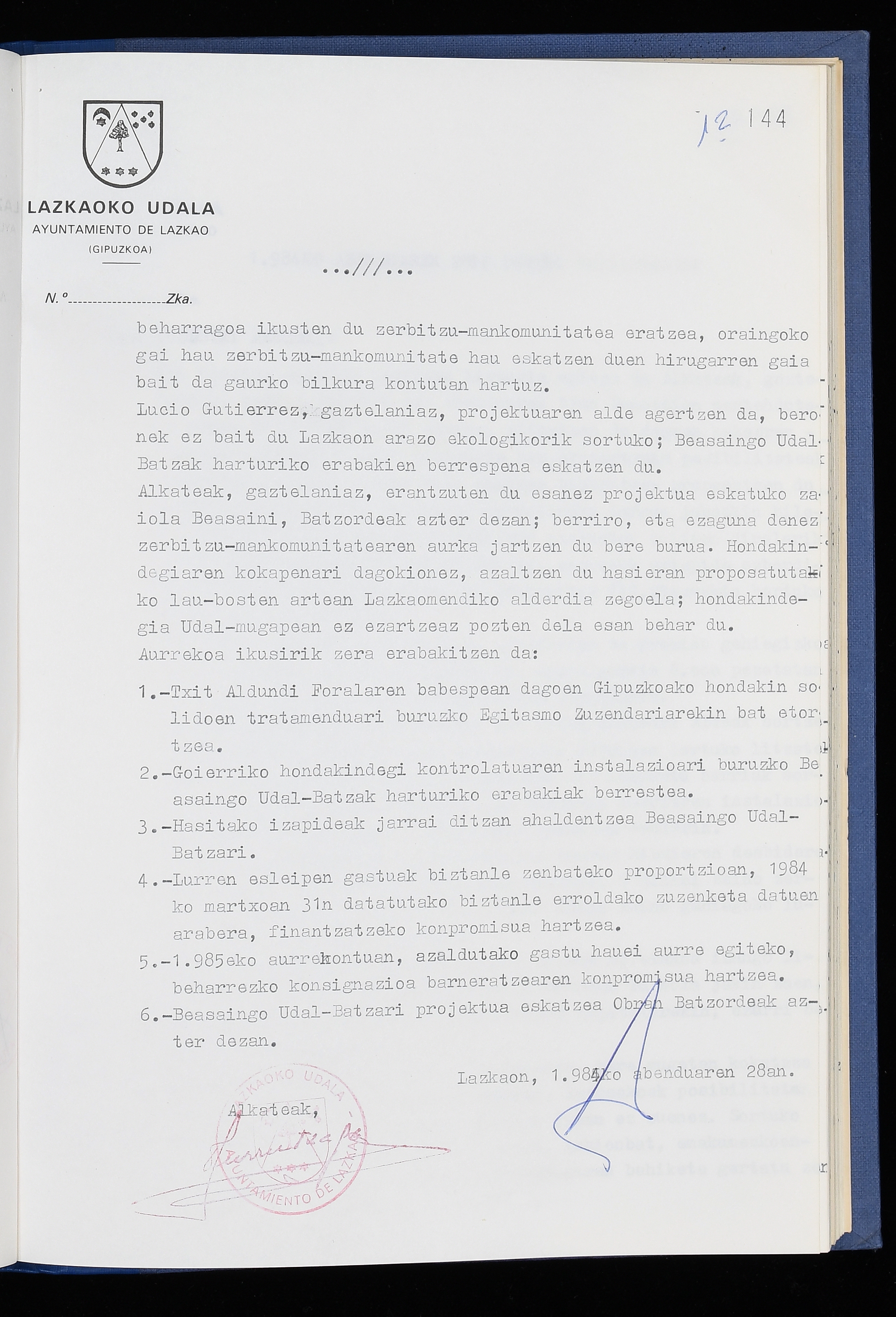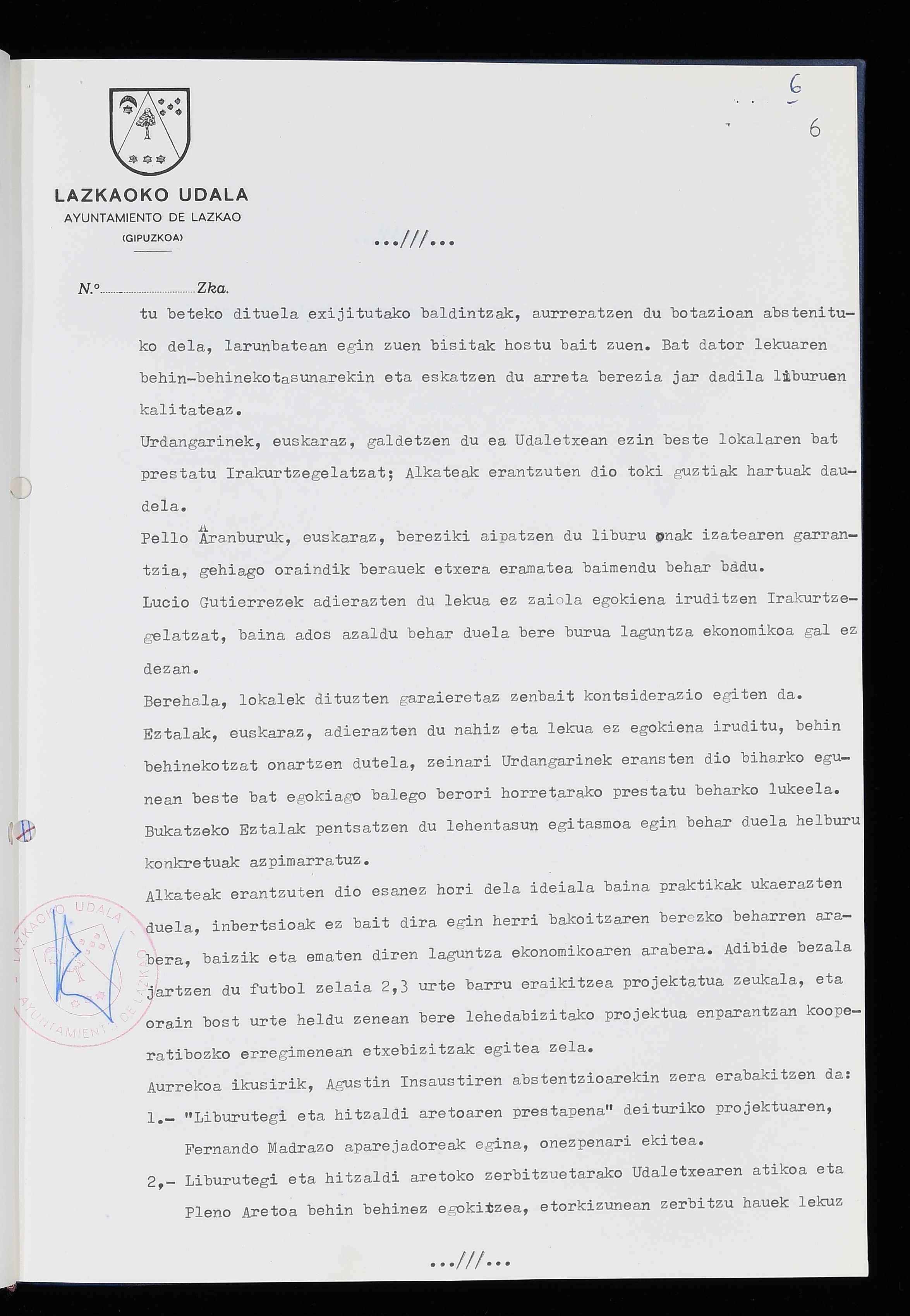 Log in to post commentsEdukiakSailkapenaFuntsaLazkaoko Udal ArtxiboaAtalakUdal AktakSailkapena1.1.4. Osoko Bilkuraren akta liburuakSailkapen berriaOsoko Bilkurako akta liburuakMultimediaIrudiakIdentifikazioaSignaturaakta liburua I-036Hasiera1984-06-01Amaiera1985-06-28AutoritateakTokiaLazkaoLog in to post commentsAkta eratu
