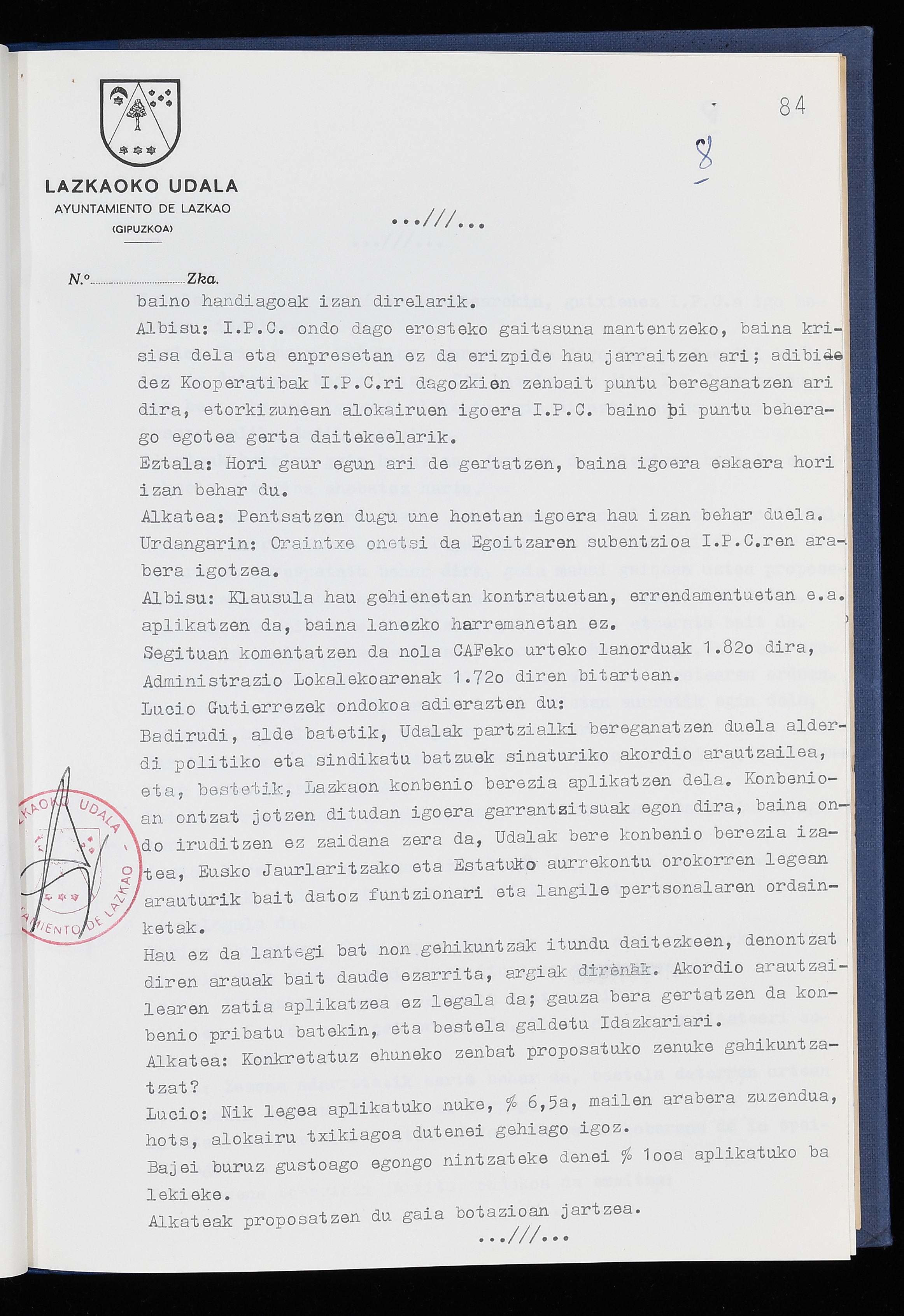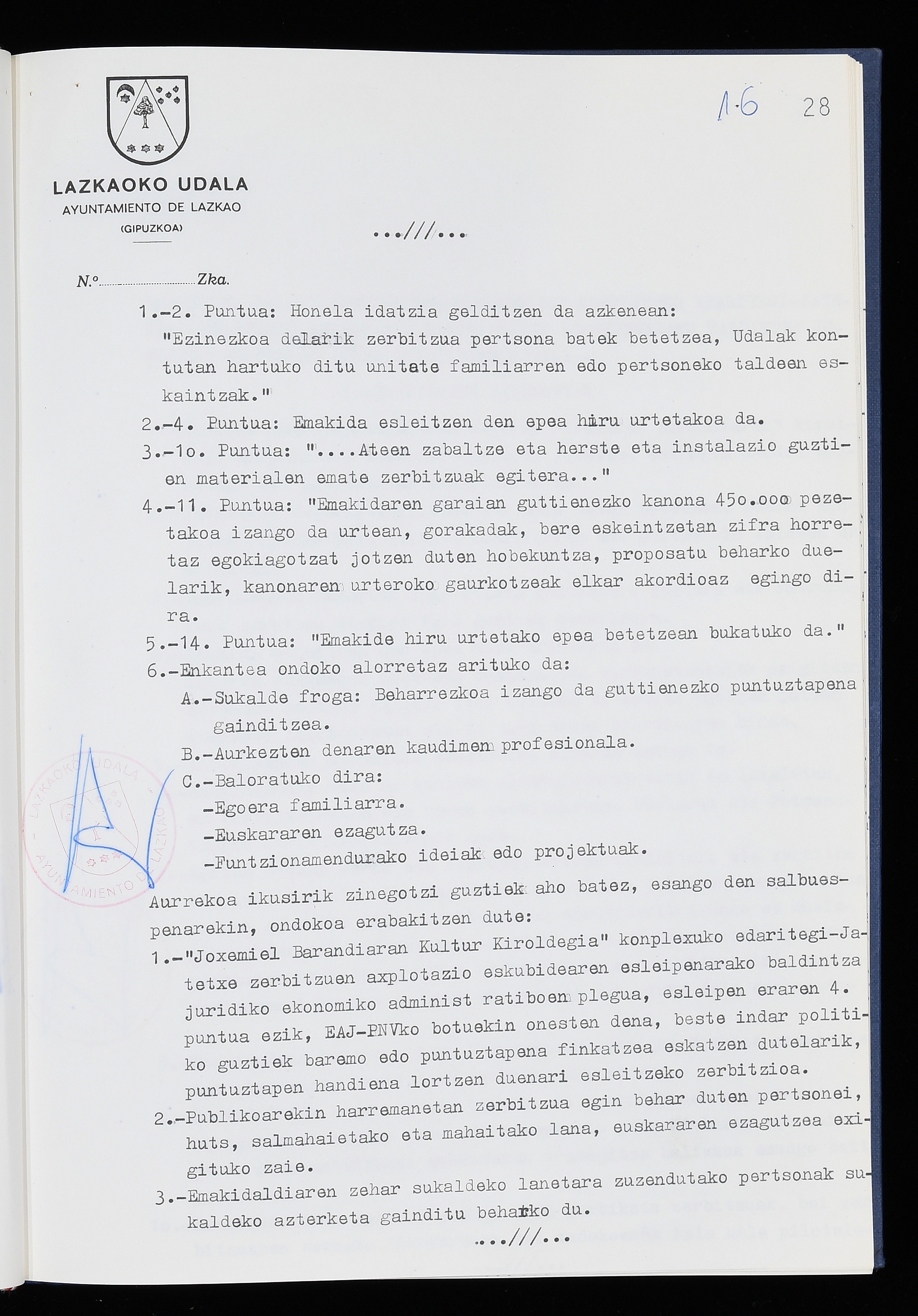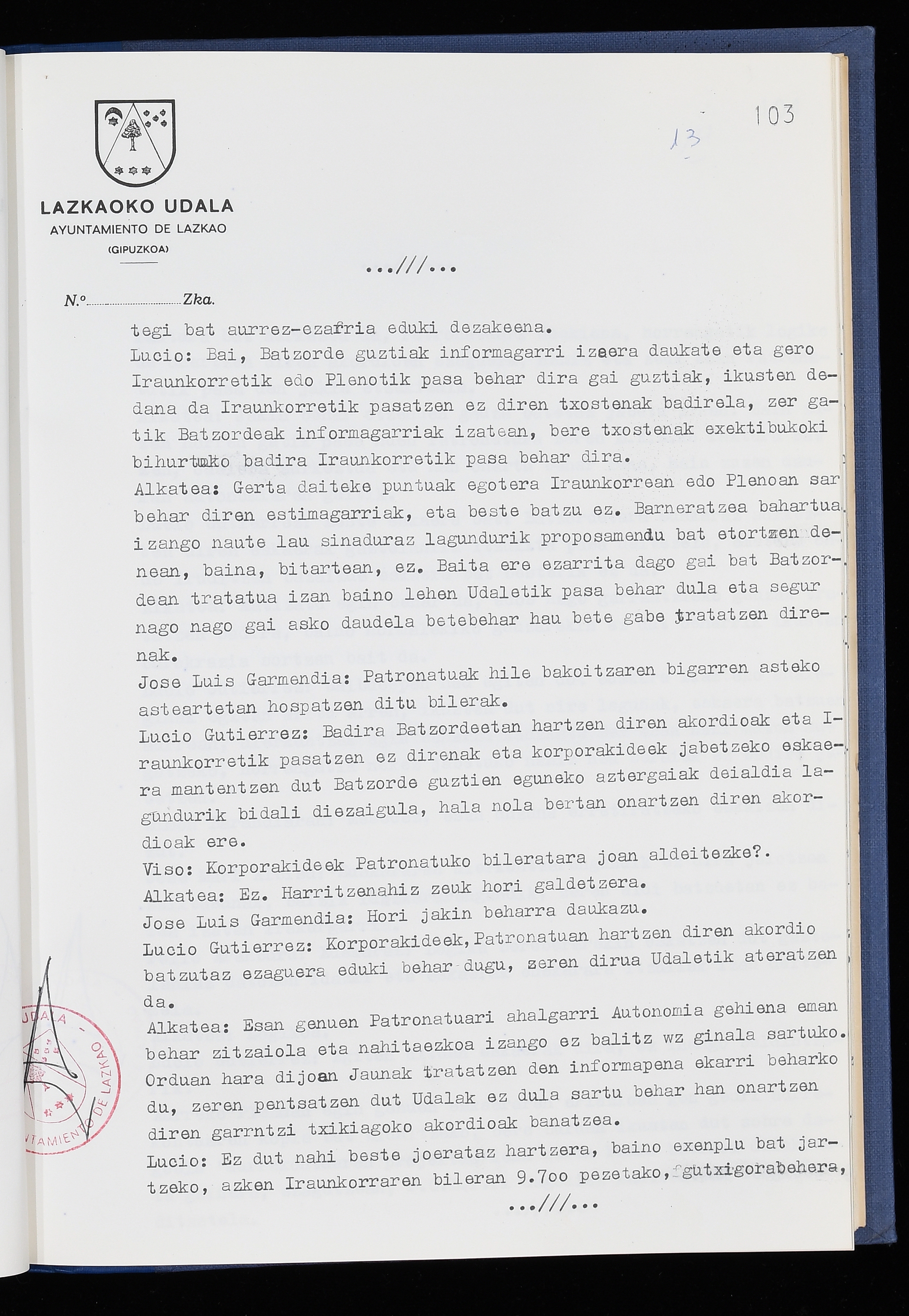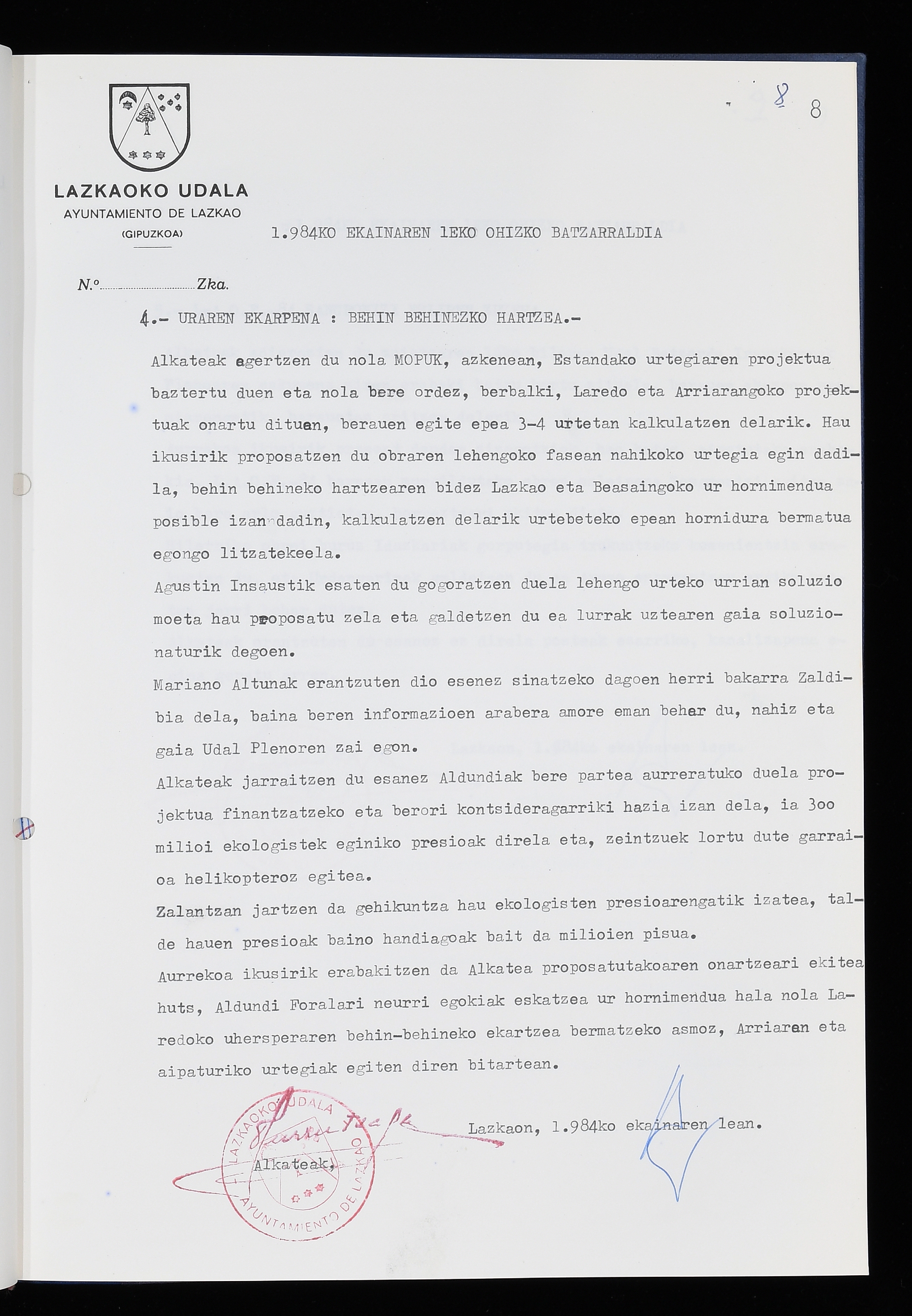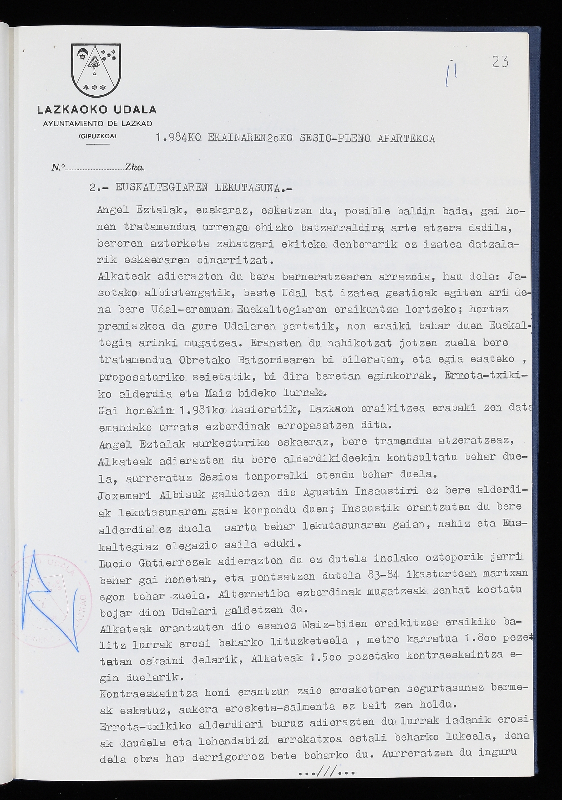 Log in to post commentsEdukiakSailkapenaFuntsaLazkaoko Udal ArtxiboaAtalakUdal AktakSailkapena1.1.4. Osoko Bilkuraren akta liburuakSailkapen berriaOsoko Bilkurako akta liburuakMultimediaIrudiakIdentifikazioaSignaturaakta liburua I-036Hasiera1984-06-01Amaiera1985-06-28AutoritateakTokiaLazkaoLog in to post commentsAkta eratu
