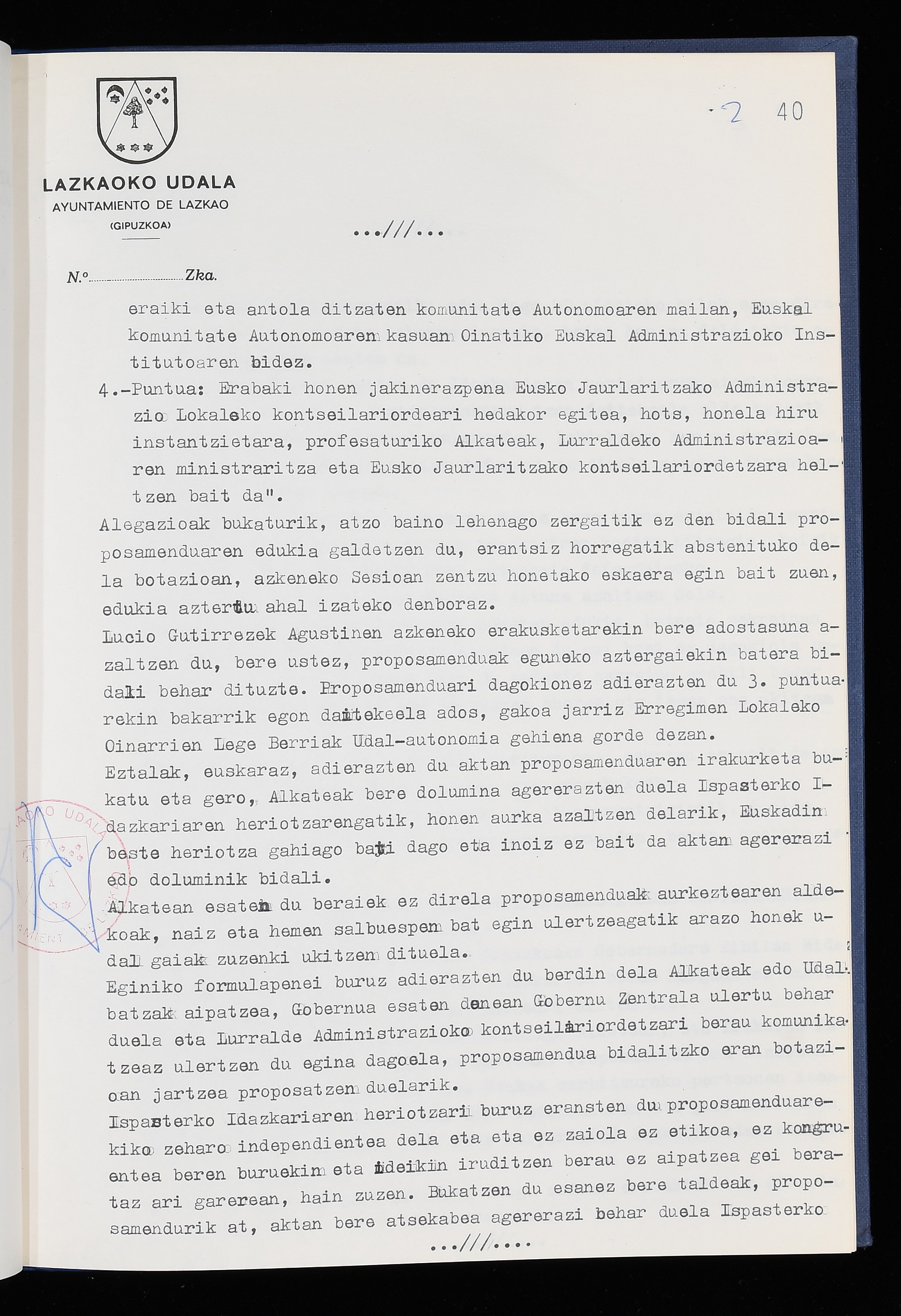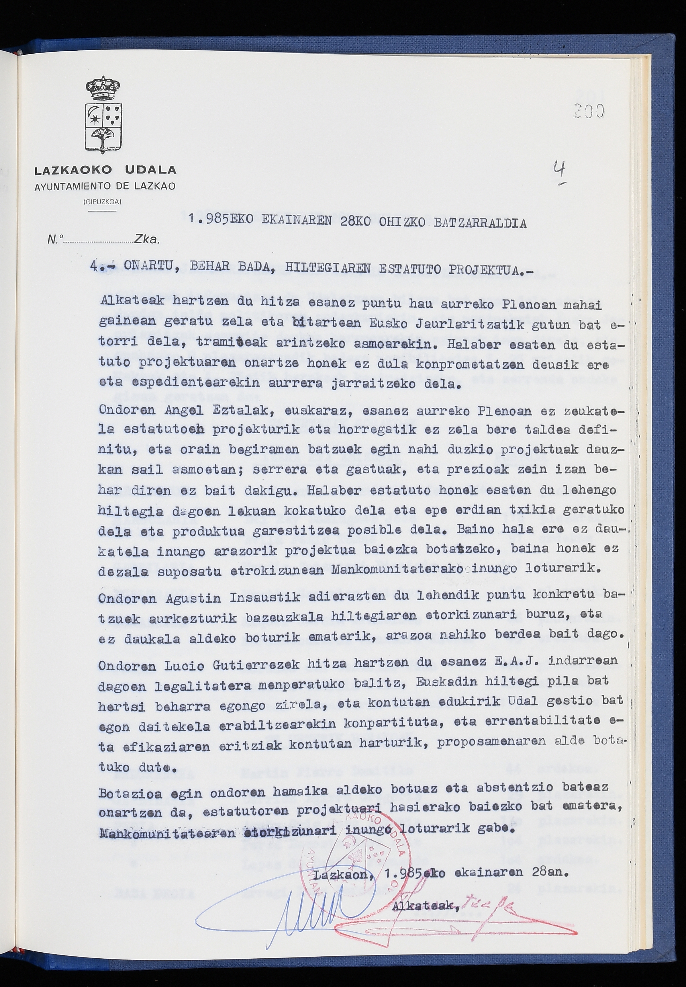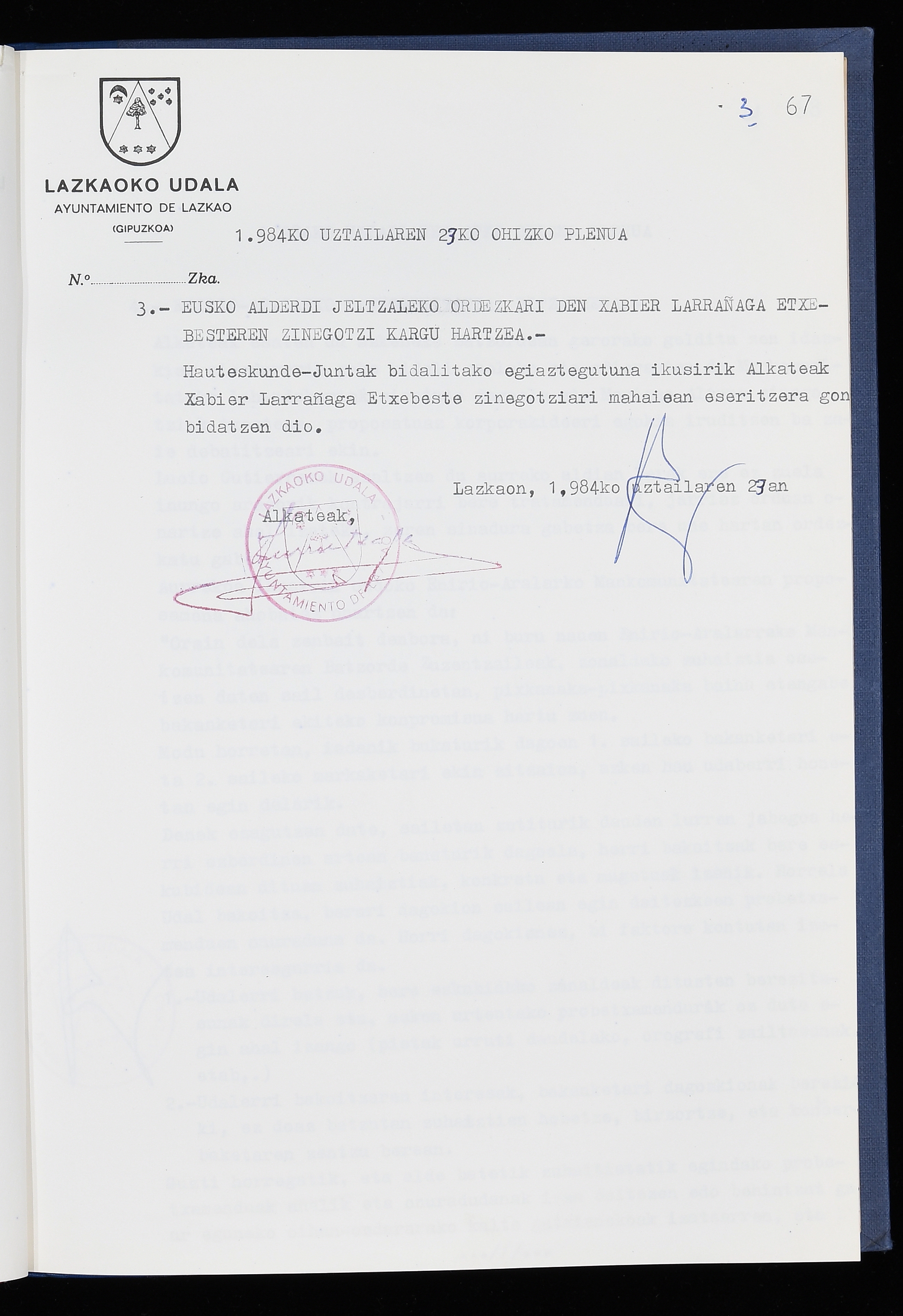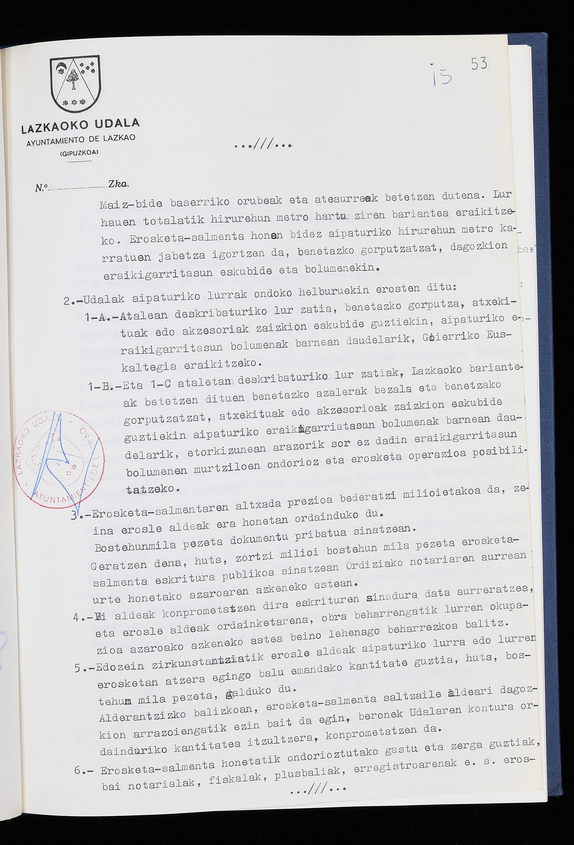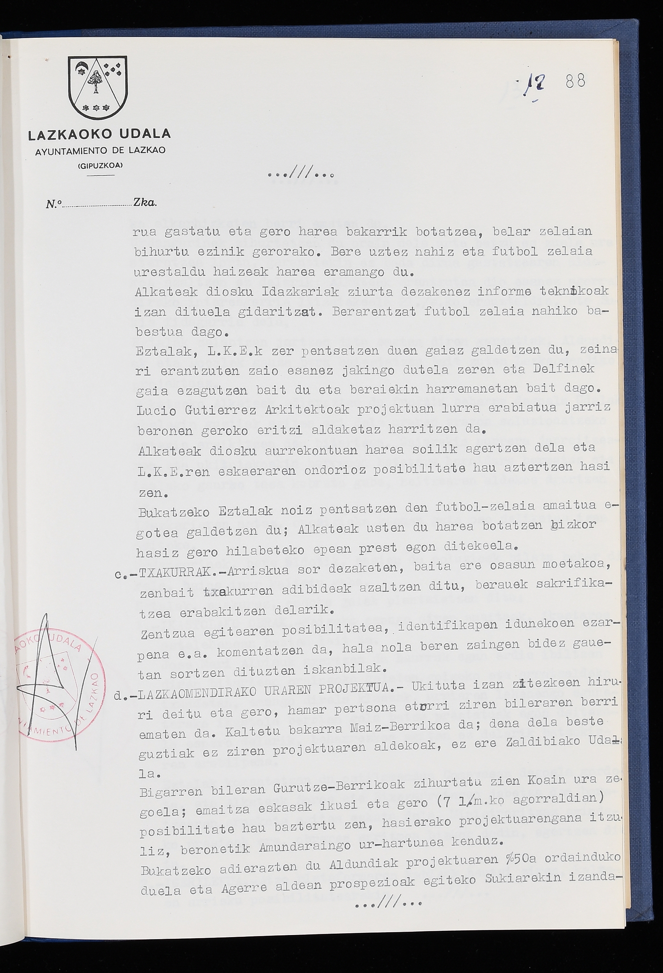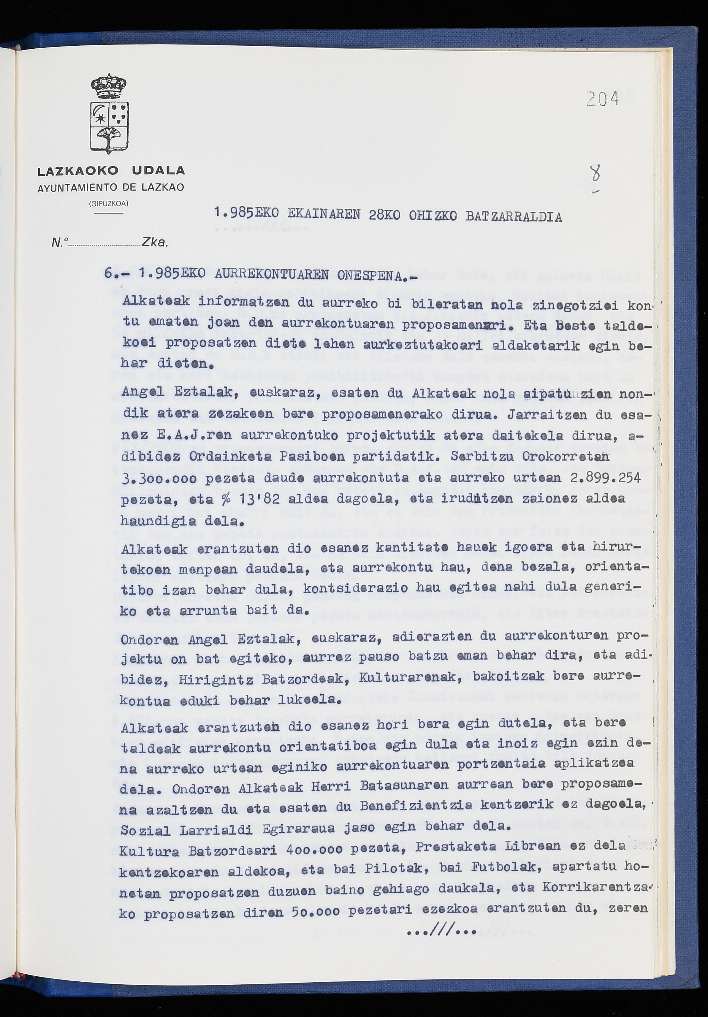 Log in to post commentsEdukiakSailkapenaFuntsaLazkaoko Udal ArtxiboaAtalakUdal AktakSailkapena1.1.4. Osoko Bilkuraren akta liburuakSailkapen berriaOsoko Bilkurako akta liburuakMultimediaIrudiakIdentifikazioaSignaturaakta liburua I-036Hasiera1984-06-01Amaiera1985-06-28AutoritateakTokiaLazkaoLog in to post commentsAkta eratu