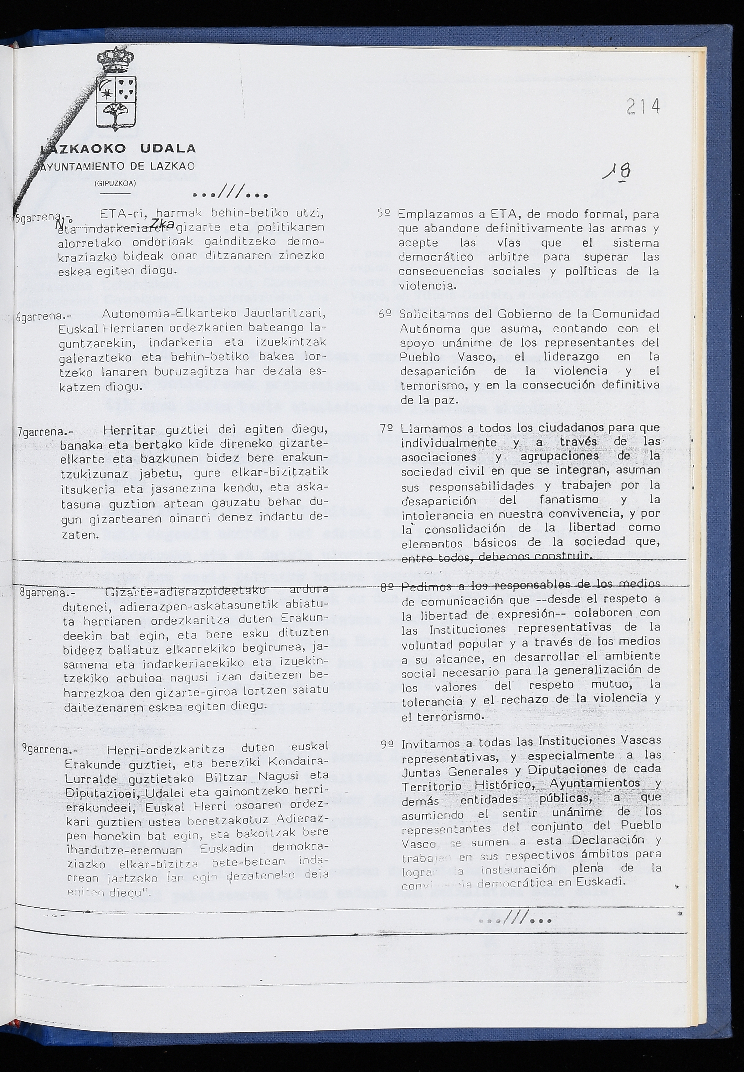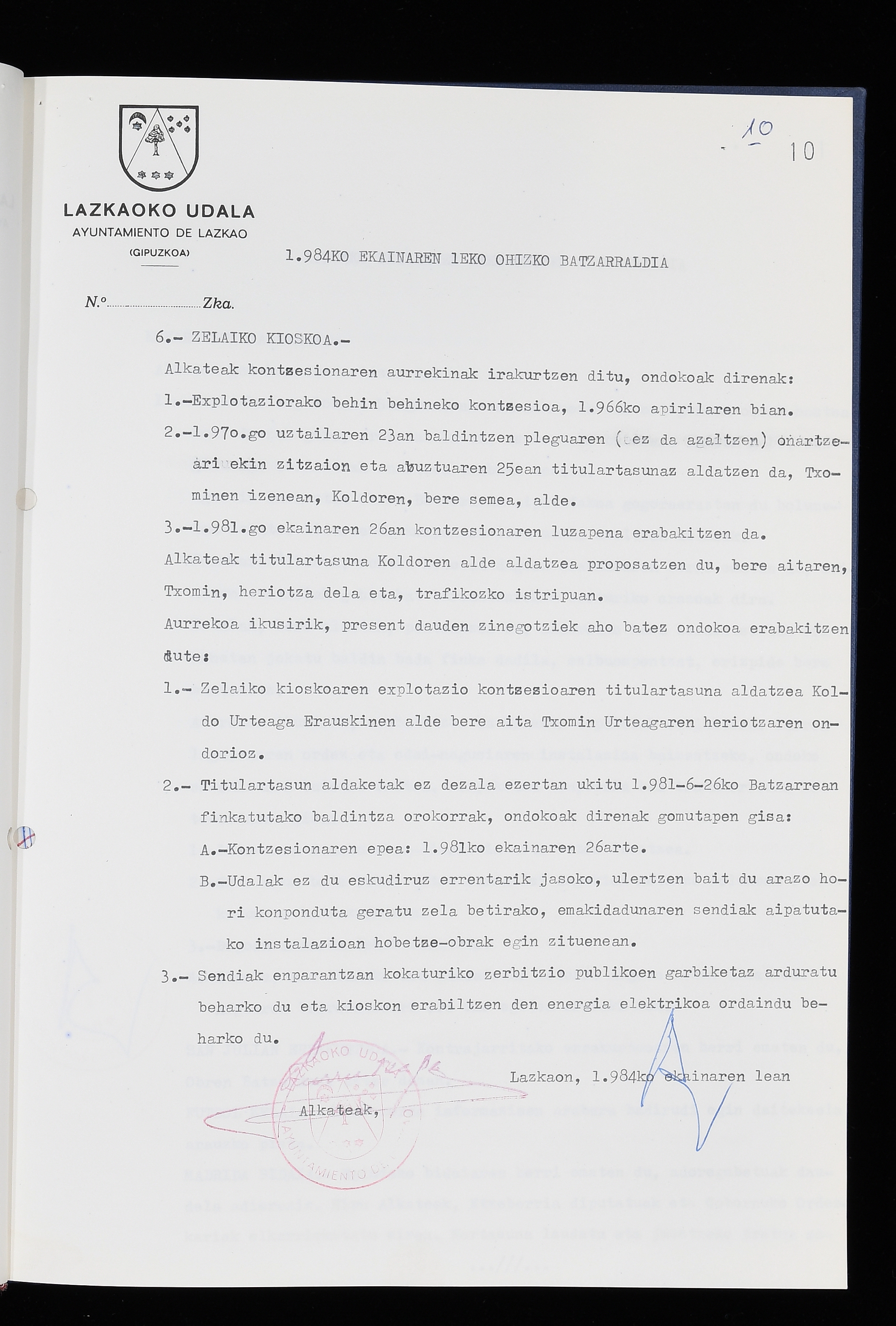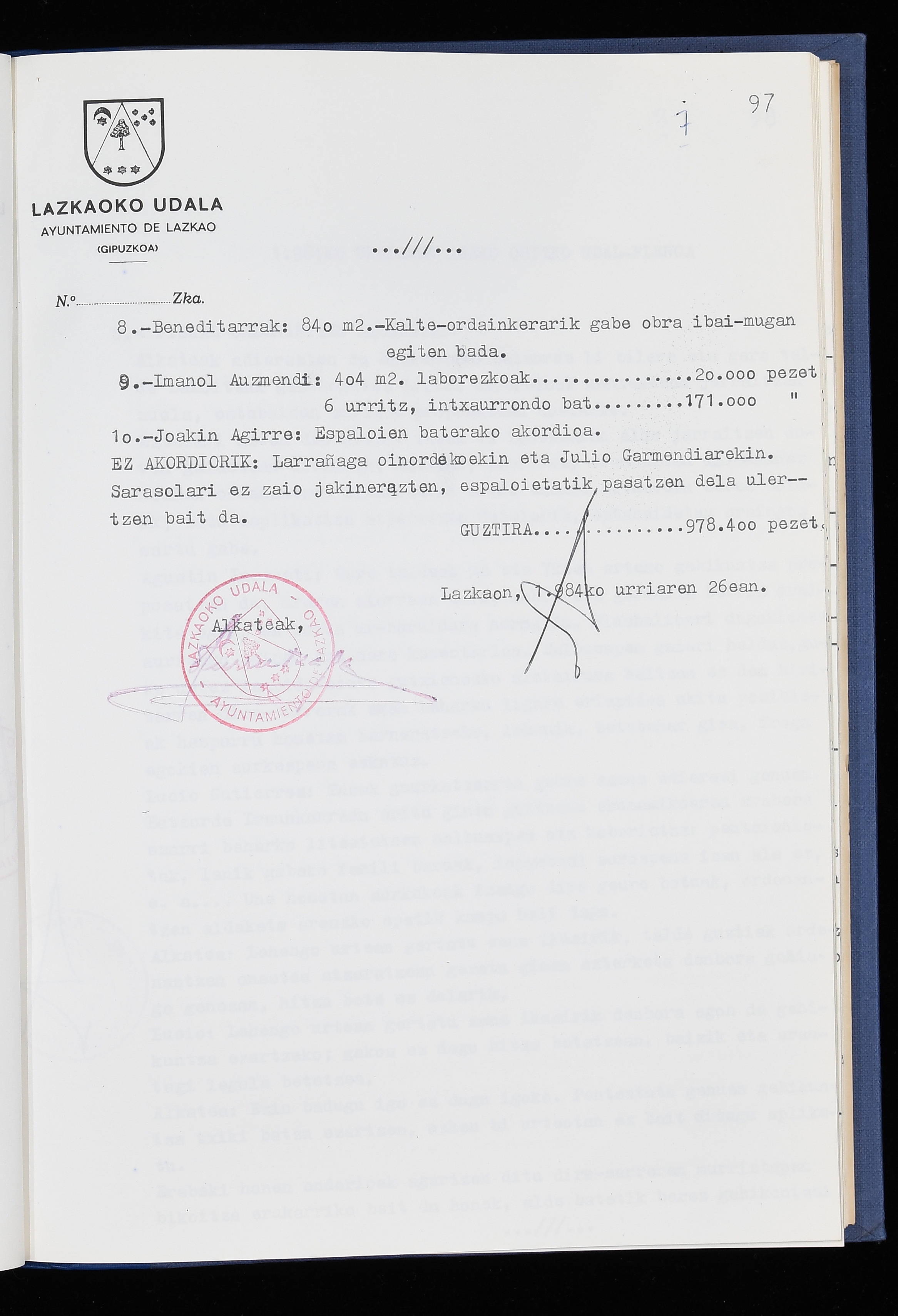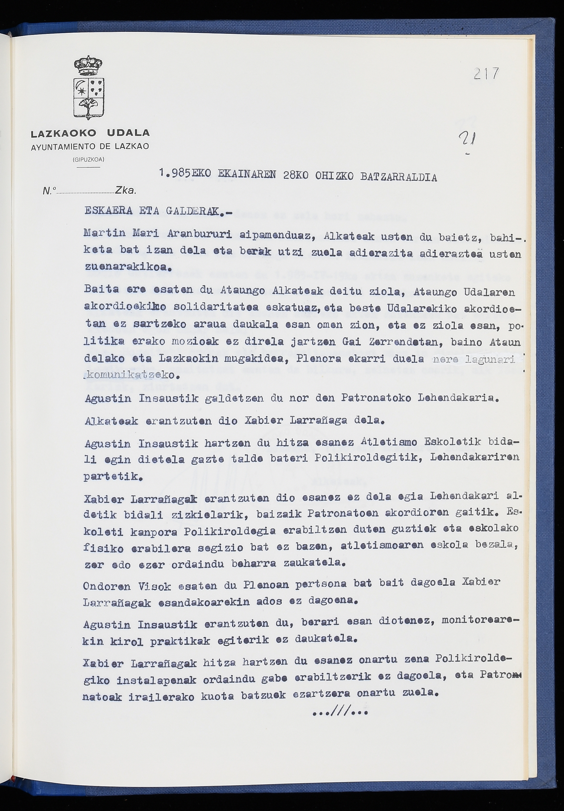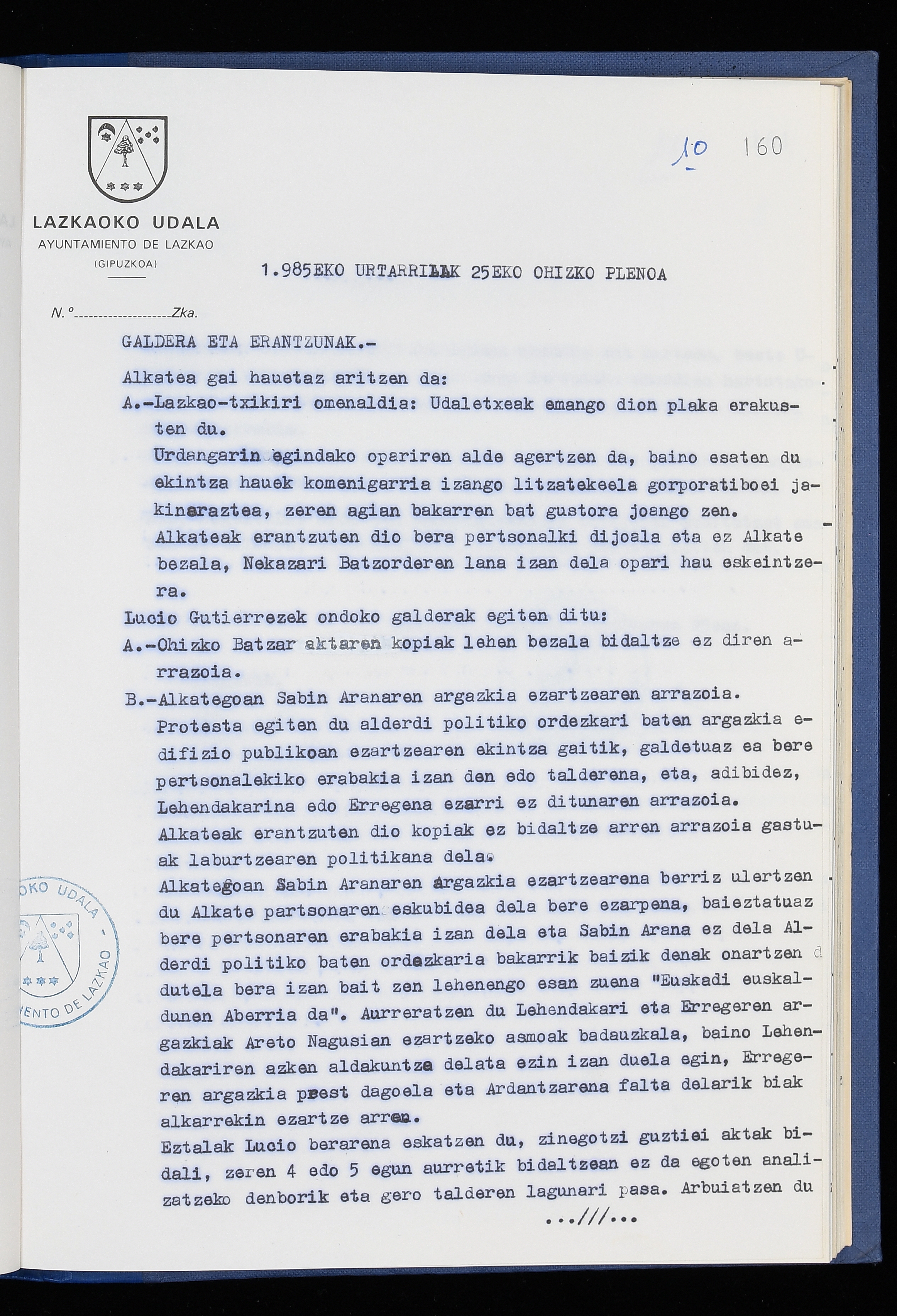 Log in to post commentsEdukiakSailkapenaFuntsaLazkaoko Udal ArtxiboaAtalakUdal AktakSailkapena1.1.4. Osoko Bilkuraren akta liburuakSailkapen berriaOsoko Bilkurako akta liburuakMultimediaIrudiakIdentifikazioaSignaturaakta liburua I-036Hasiera1984-06-01Amaiera1985-06-28AutoritateakTokiaLazkaoLog in to post commentsAkta eratu
