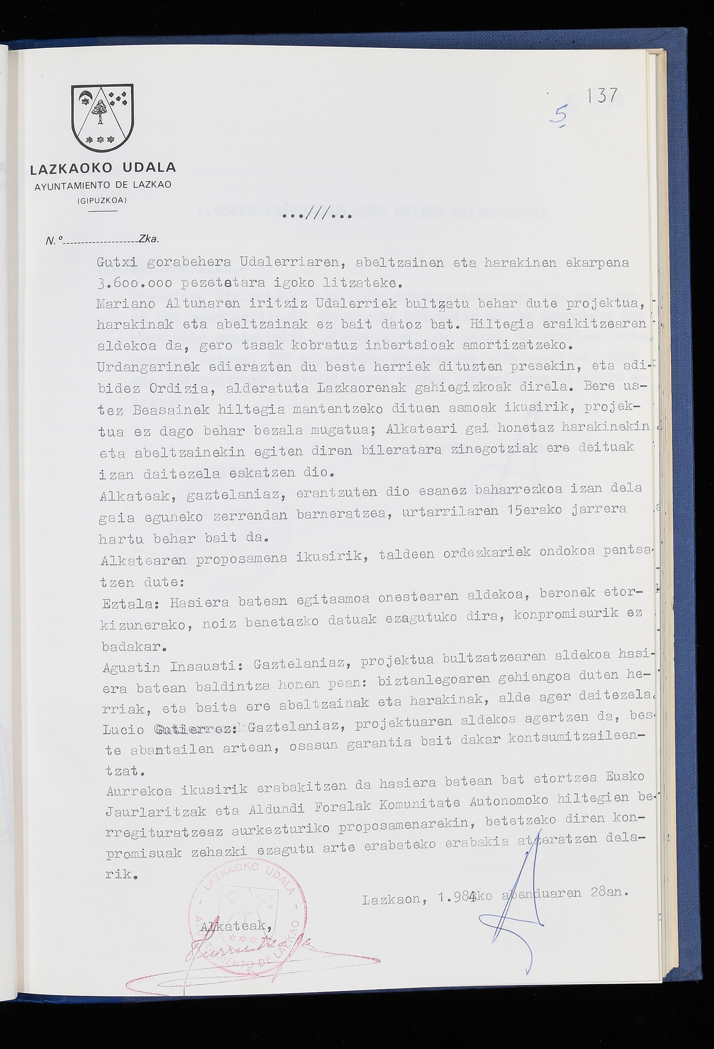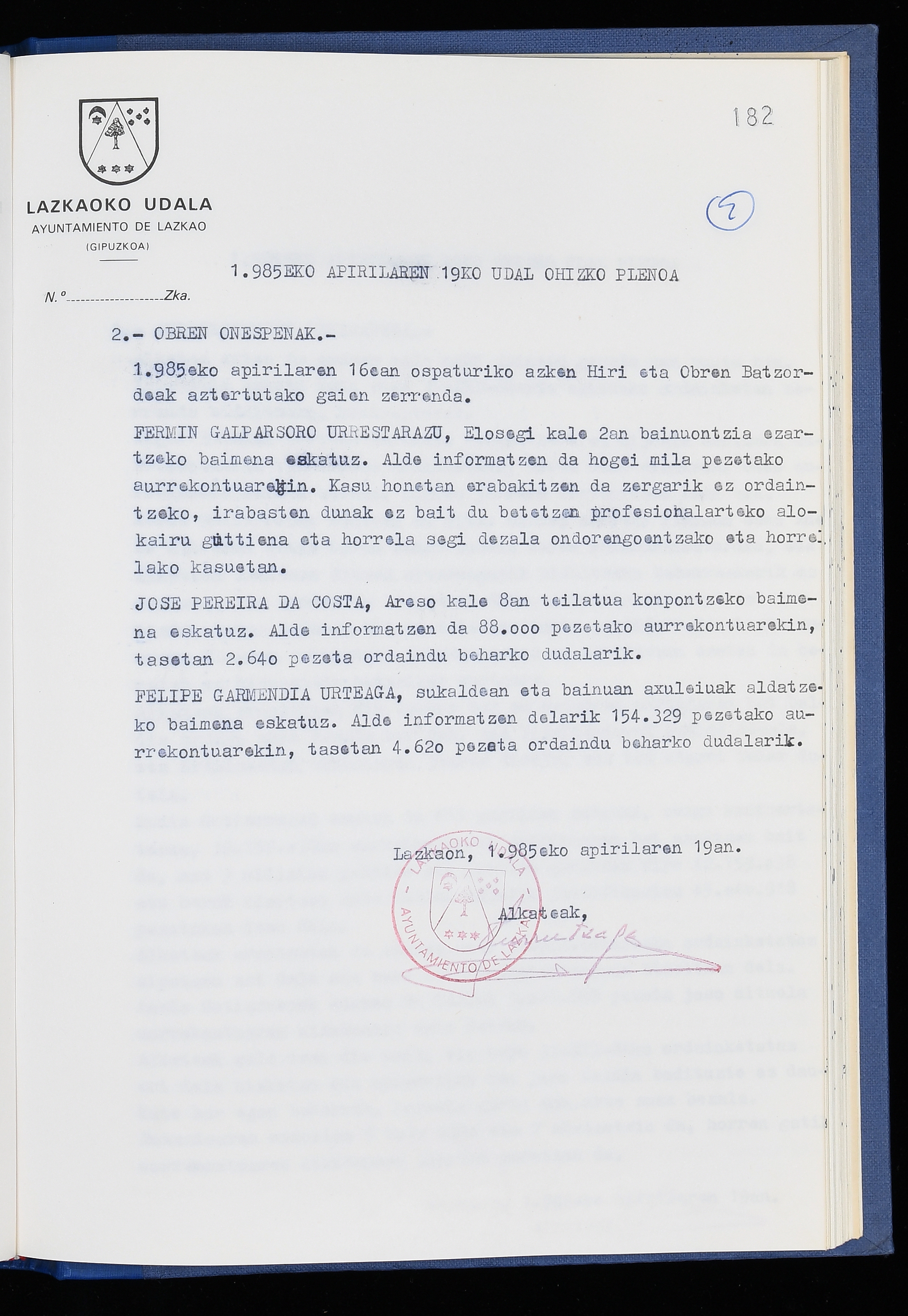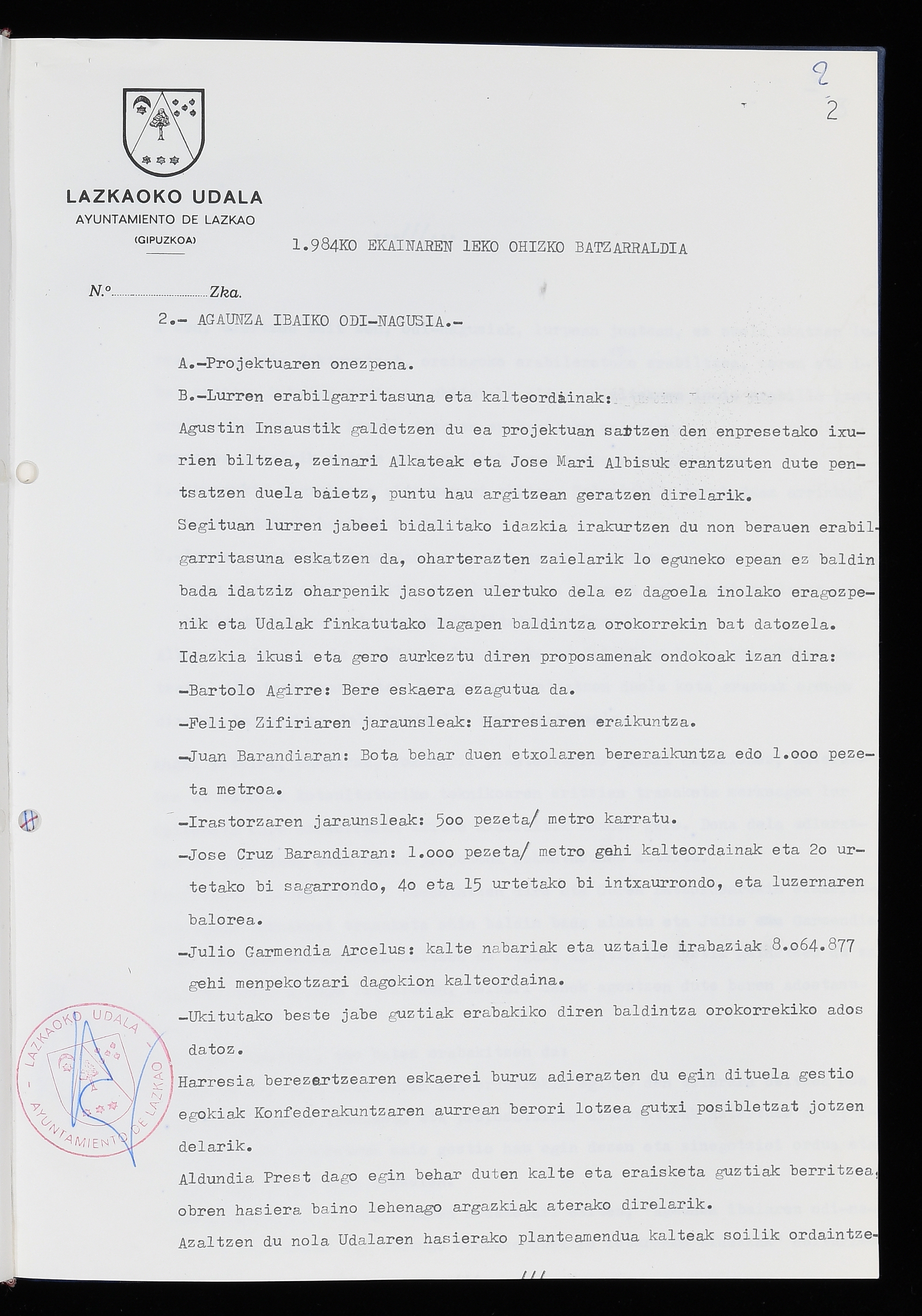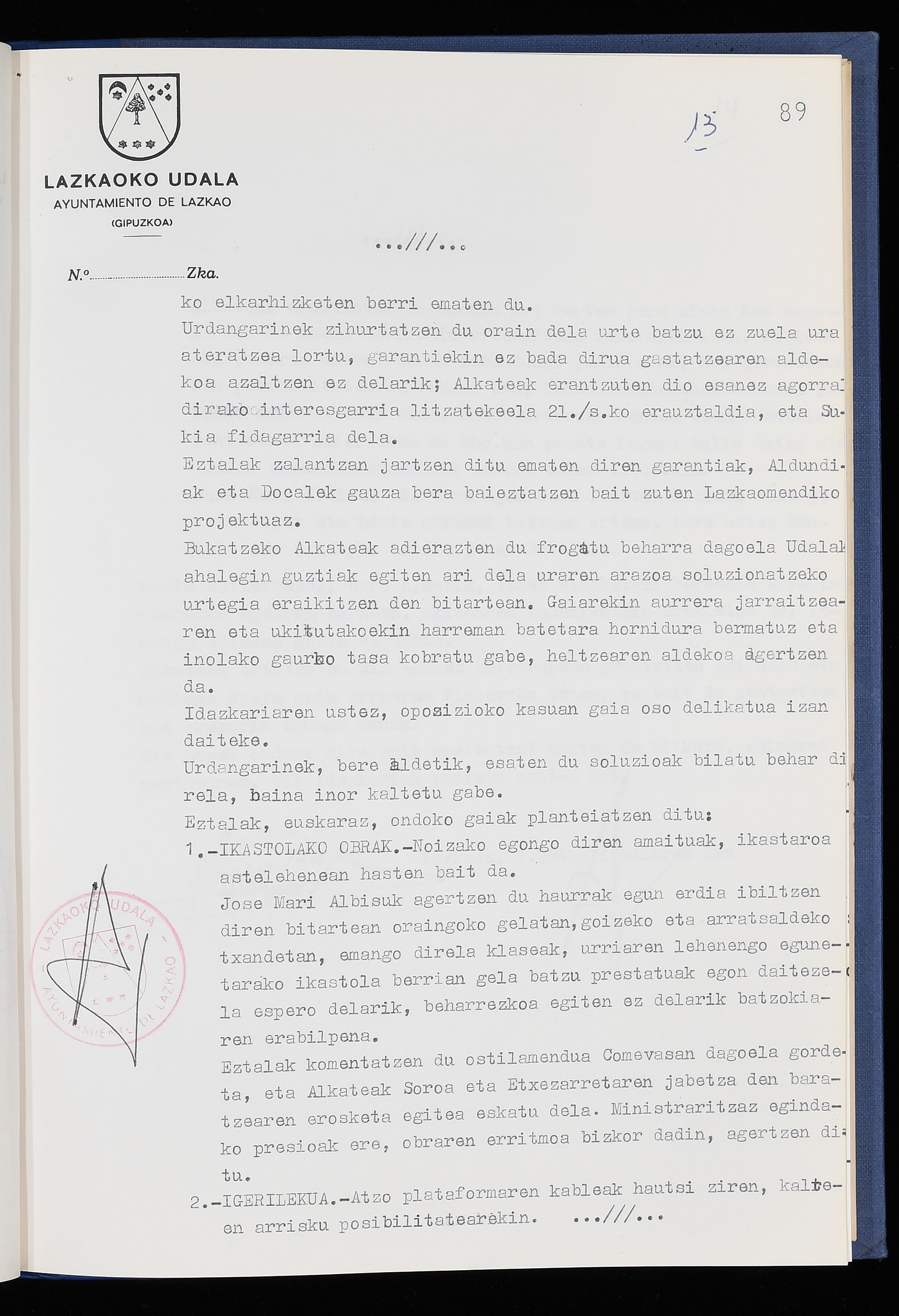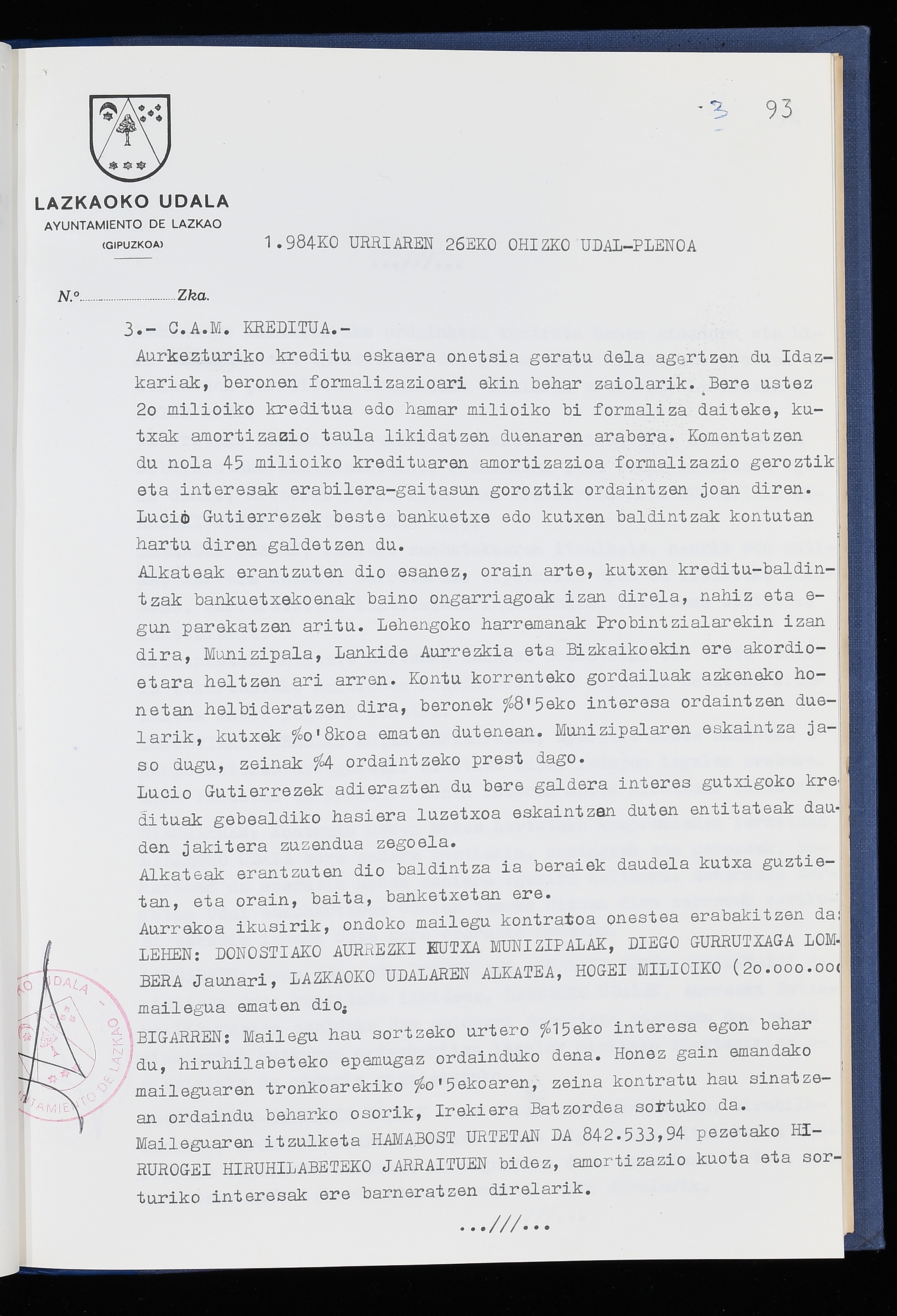 Log in to post commentsEdukiakSailkapenaFuntsaLazkaoko Udal ArtxiboaAtalakUdal AktakSailkapena1.1.4. Osoko Bilkuraren akta liburuakSailkapen berriaOsoko Bilkurako akta liburuakMultimediaIrudiakIdentifikazioaSignaturaakta liburua I-036Hasiera1984-06-01Amaiera1985-06-28AutoritateakTokiaLazkaoLog in to post commentsAkta eratu
