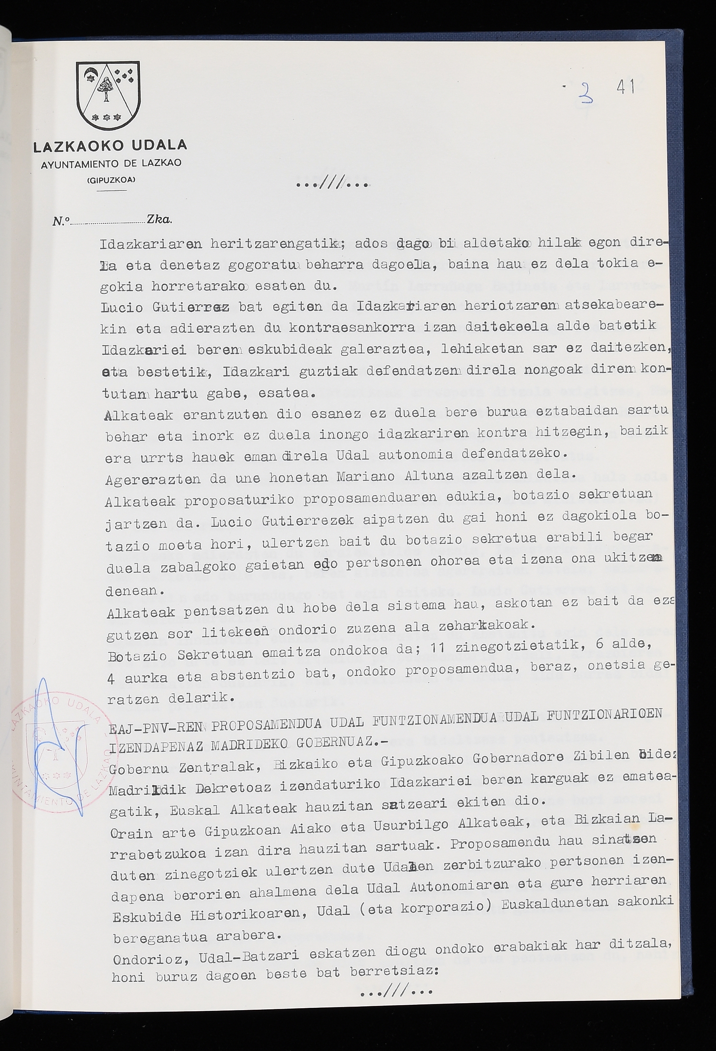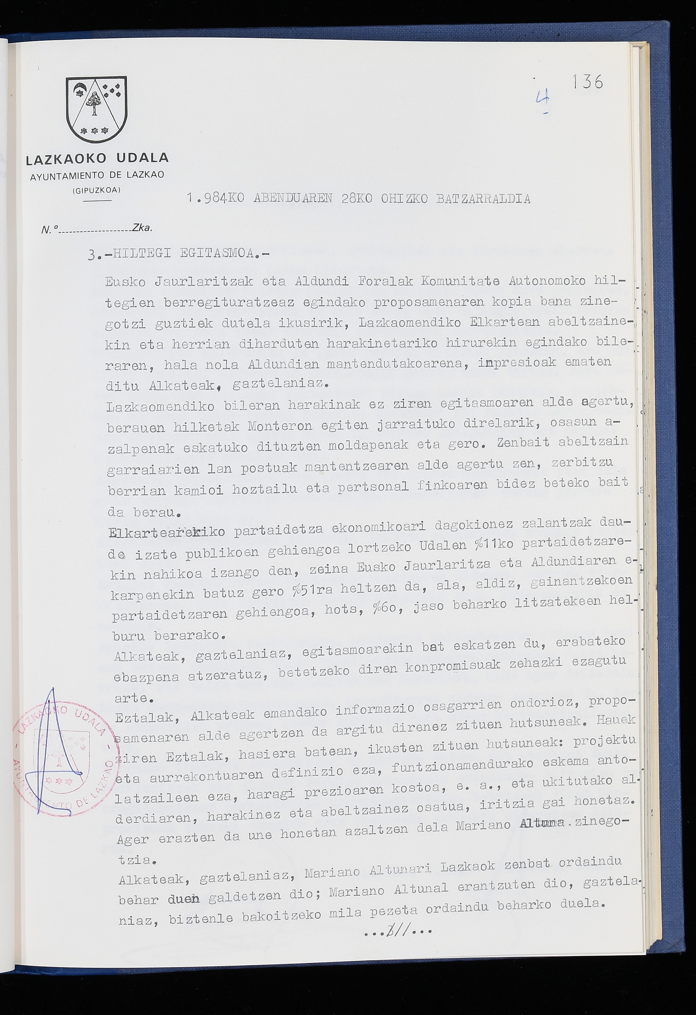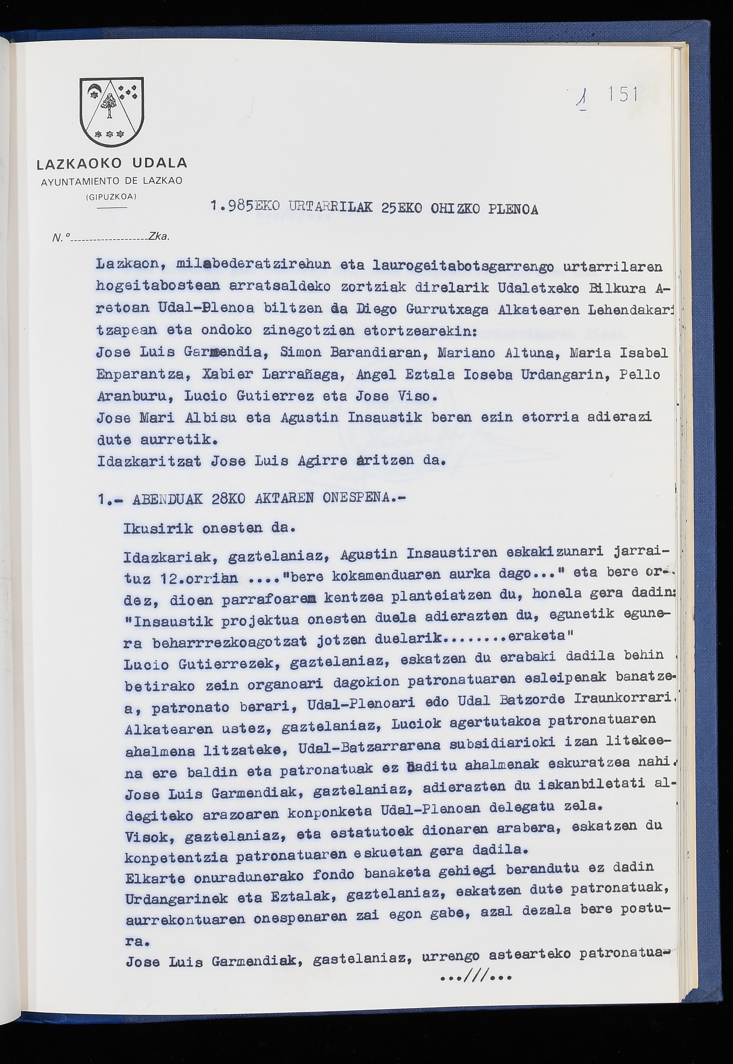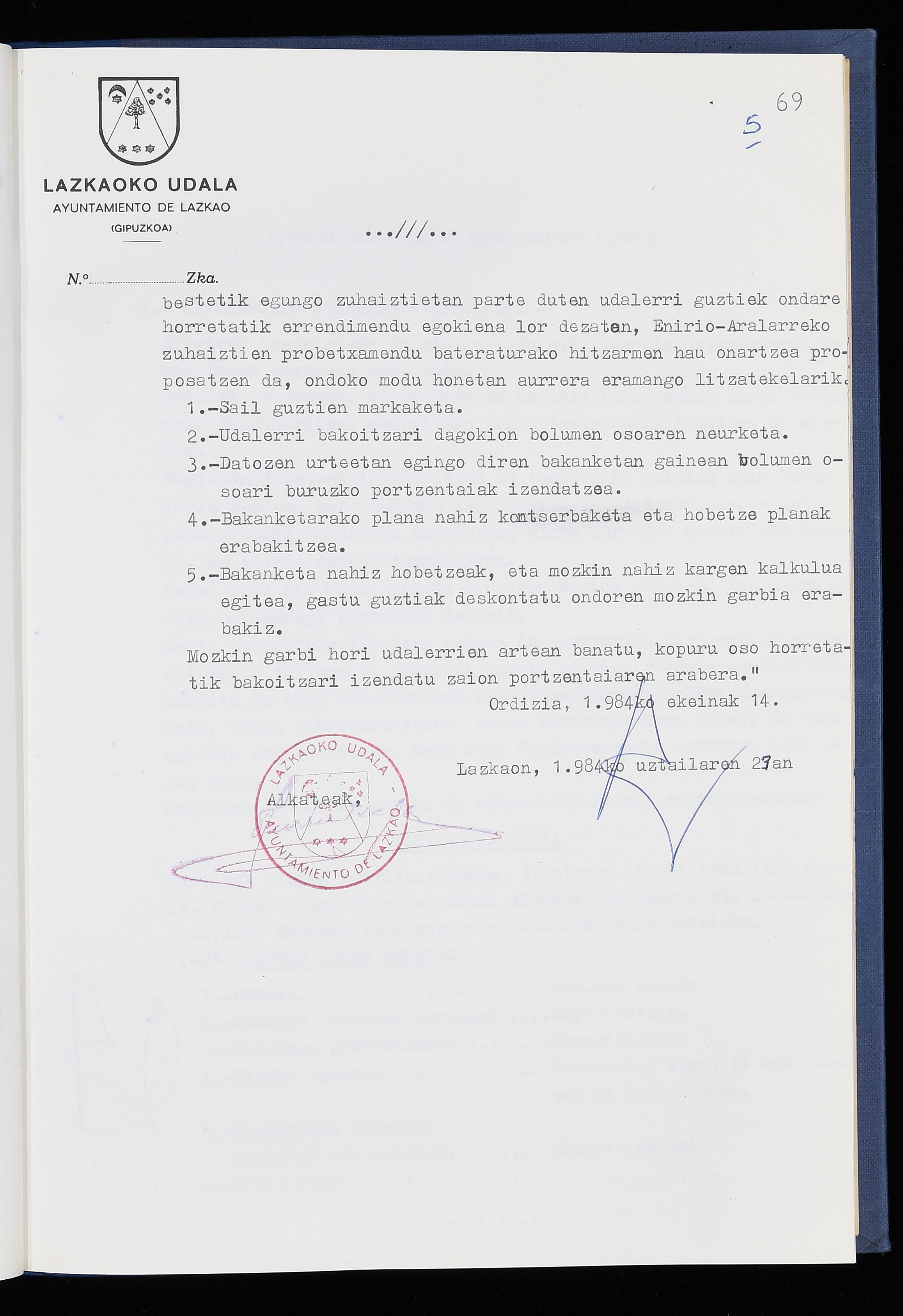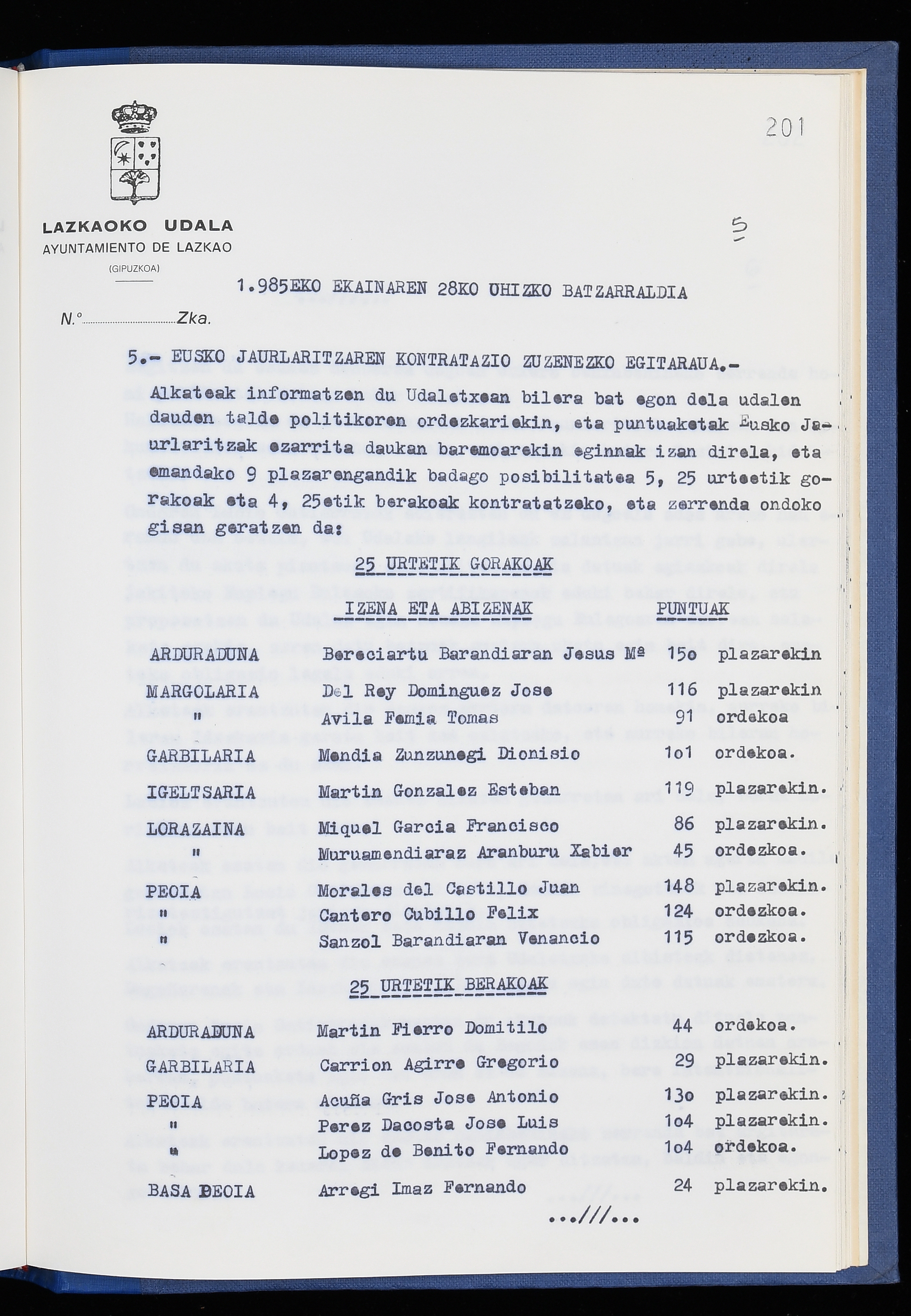 Log in to post commentsEdukiakSailkapenaFuntsaLazkaoko Udal ArtxiboaAtalakUdal AktakSailkapena1.1.4. Osoko Bilkuraren akta liburuakSailkapen berriaOsoko Bilkurako akta liburuakMultimediaIrudiakIdentifikazioaSignaturaakta liburua I-036Hasiera1984-06-01Amaiera1985-06-28AutoritateakTokiaLazkaoLog in to post commentsAkta eratu